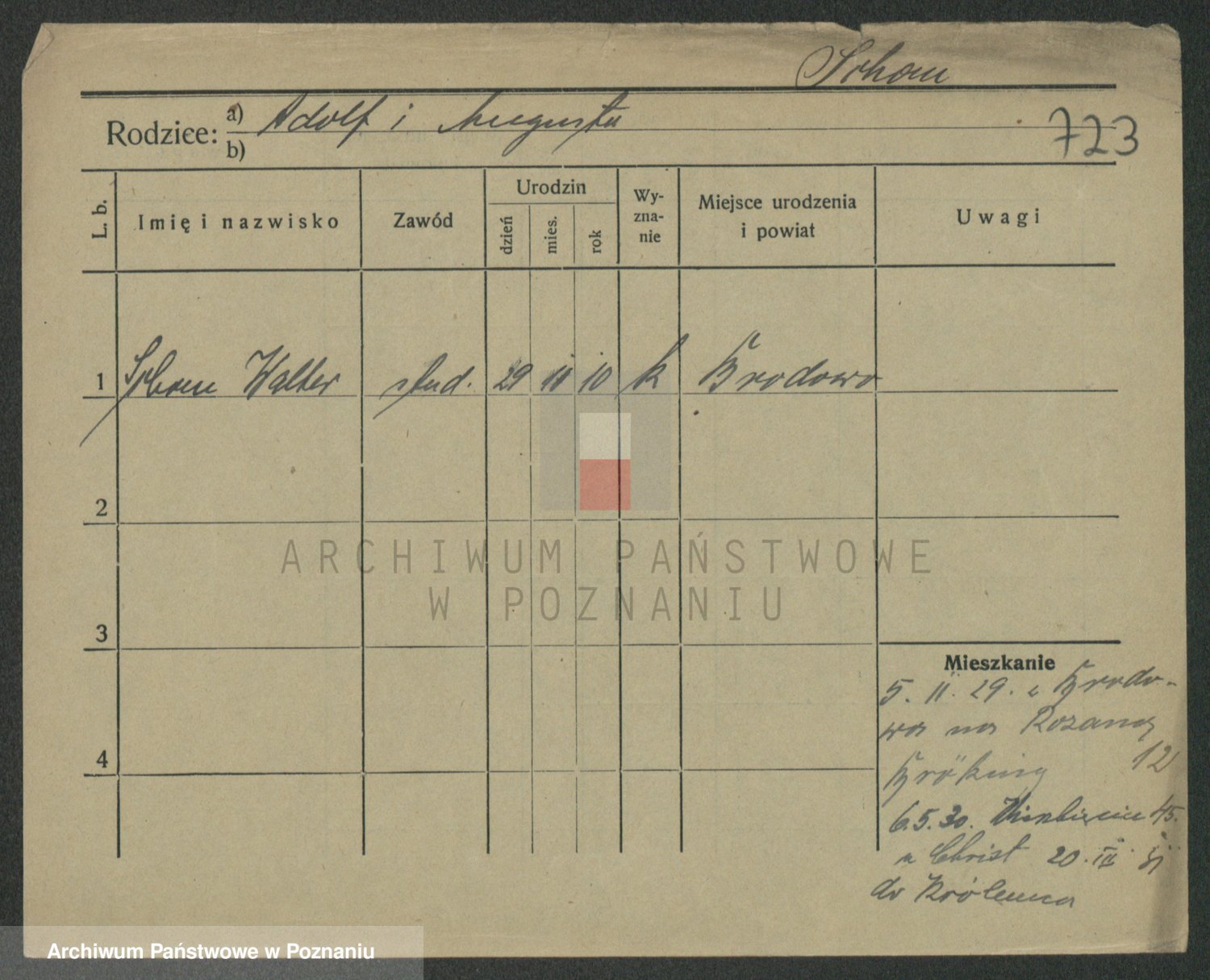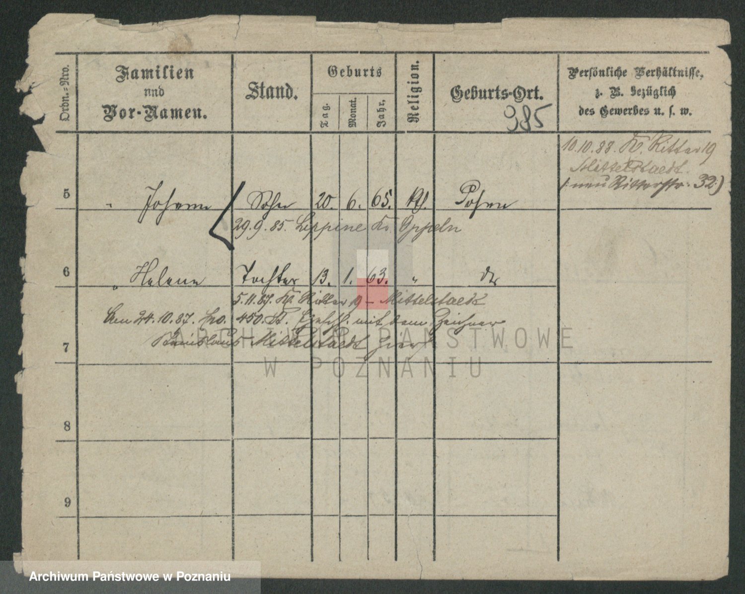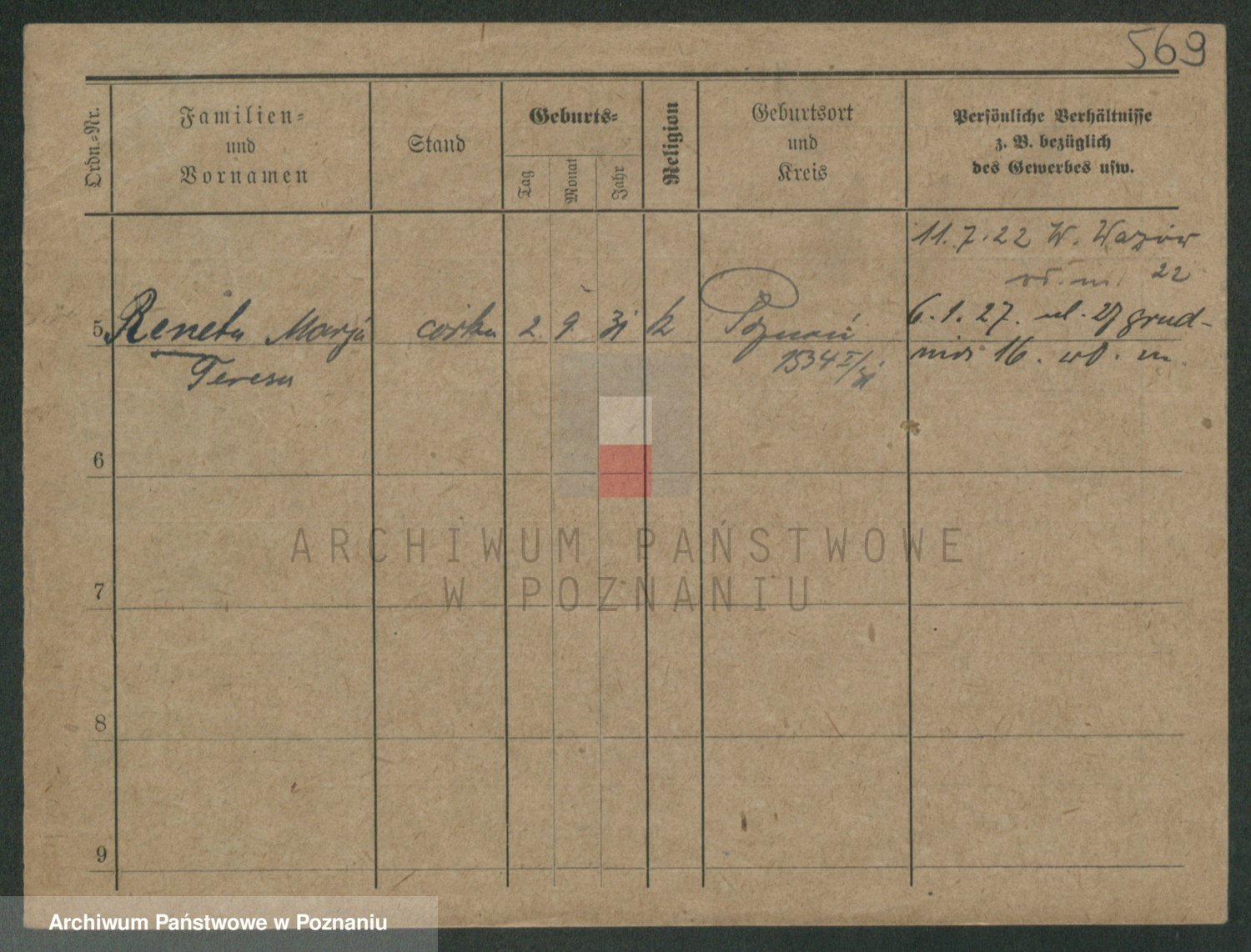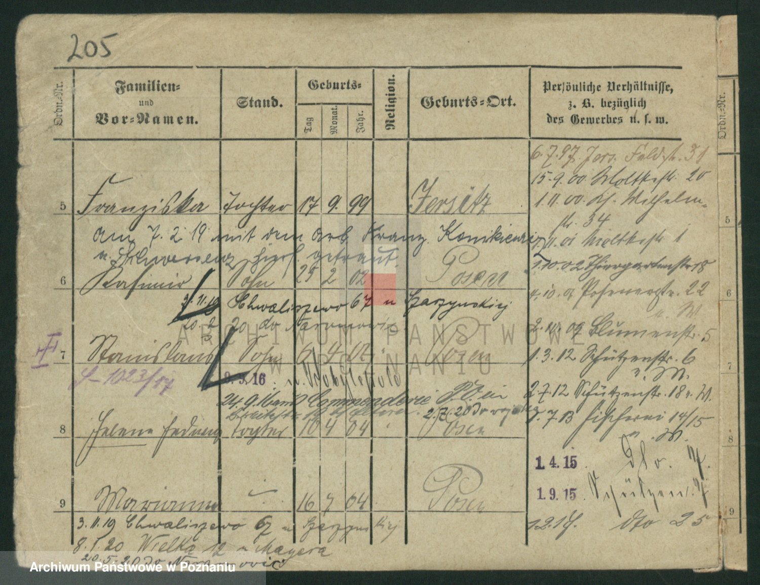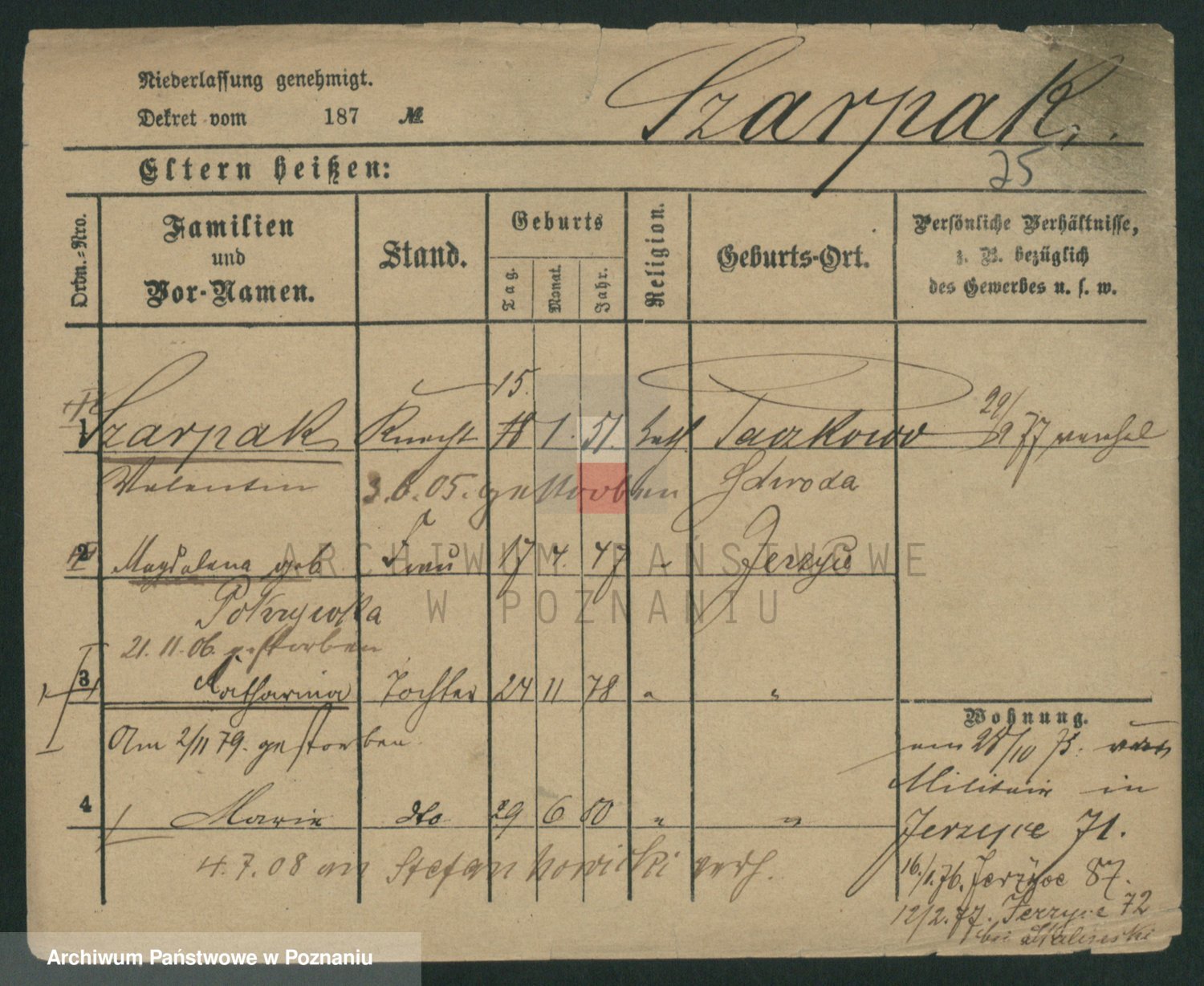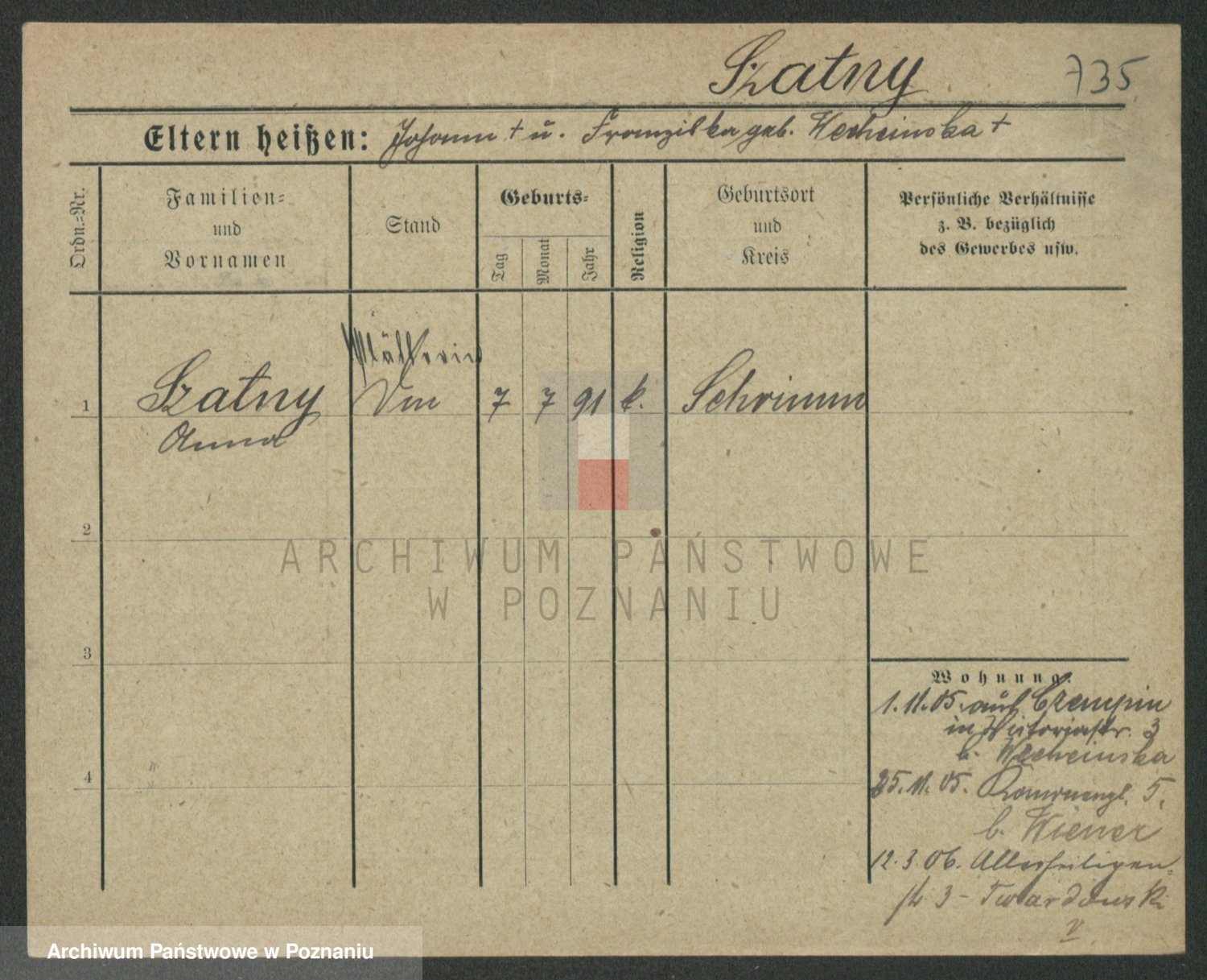 Podgląd karty osobowej dostępny jest po kliknięciu na nazwisko lub ikonkę karty. Można dokonywać powiększenia (ikony na górze) lub przechodzić między kolejnymi skanami (strzałki po bokach).