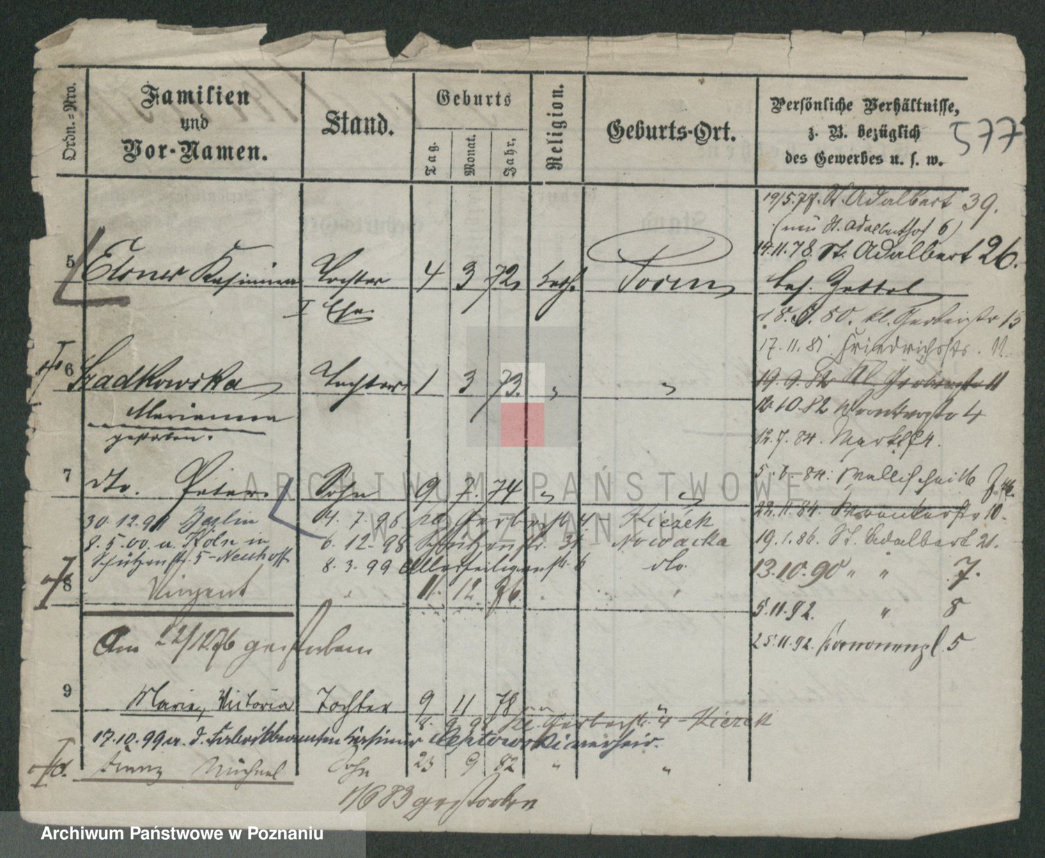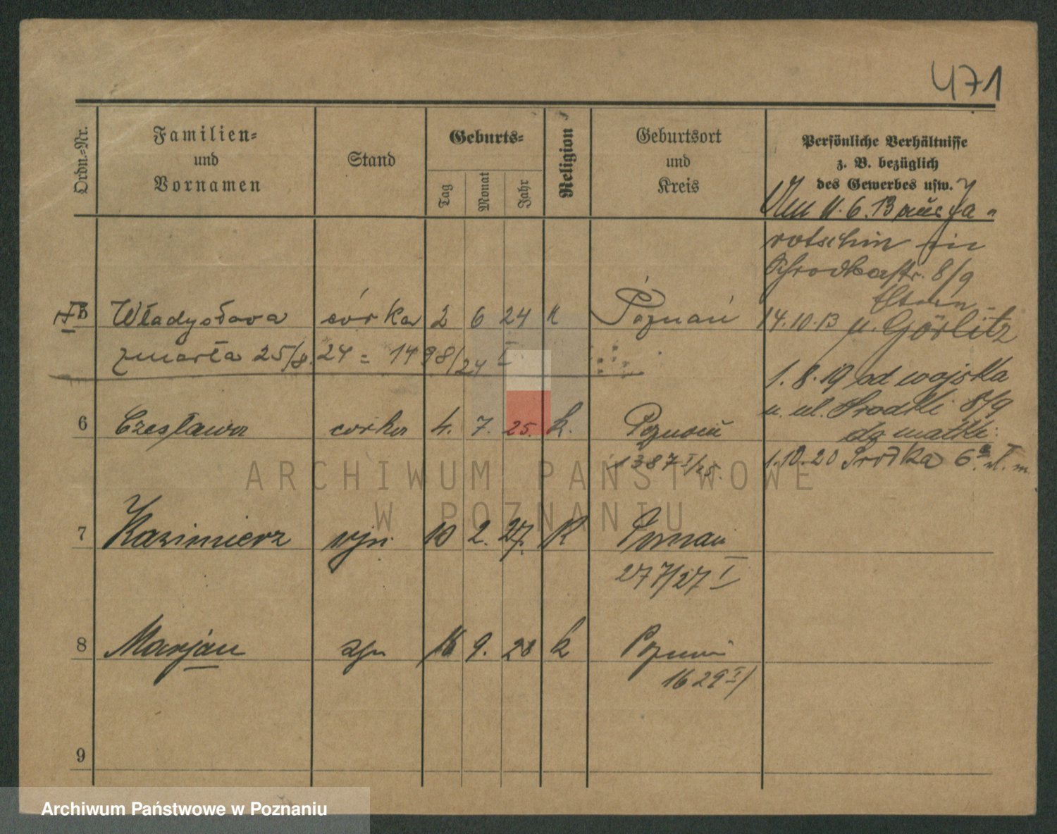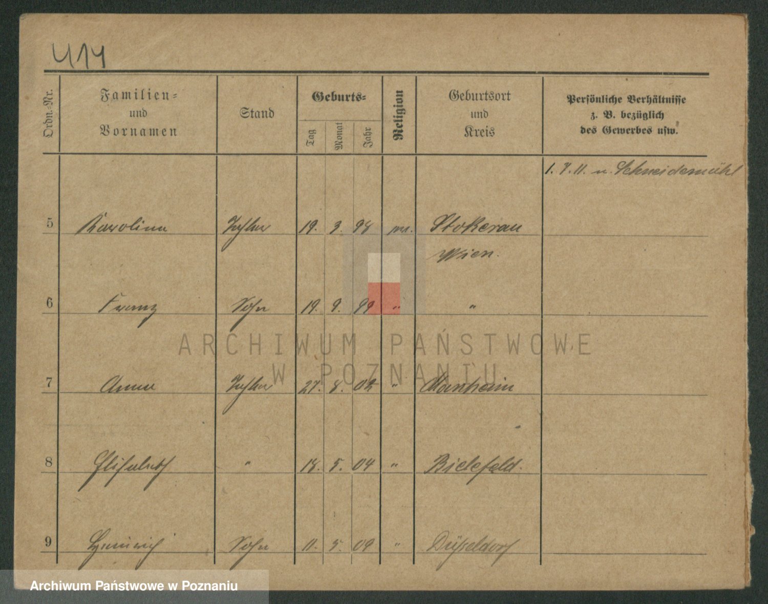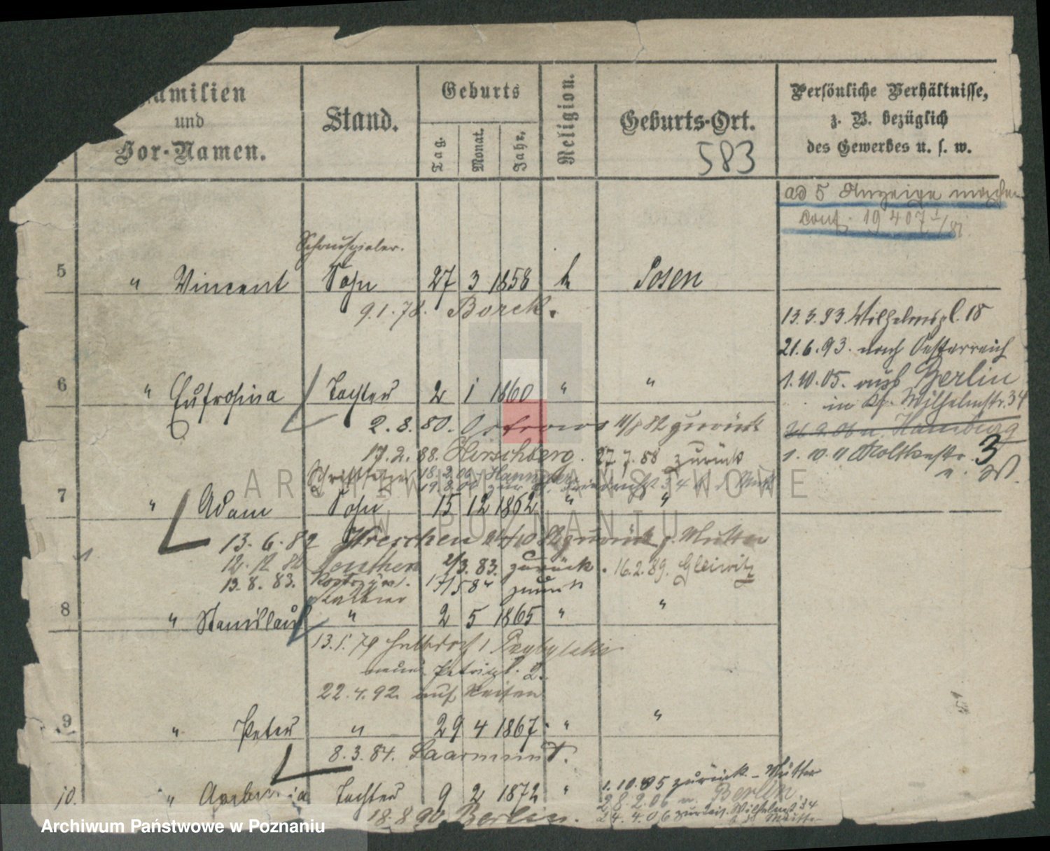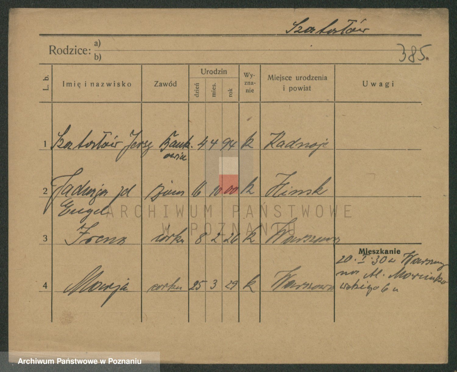 Podgląd karty osobowej dostępny jest po kliknięciu na nazwisko lub ikonkę karty. Można dokonywać powiększenia (ikony na górze) lub przechodzić między kolejnymi skanami (strzałki po bokach).