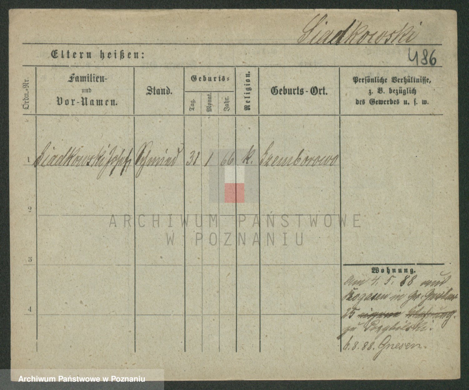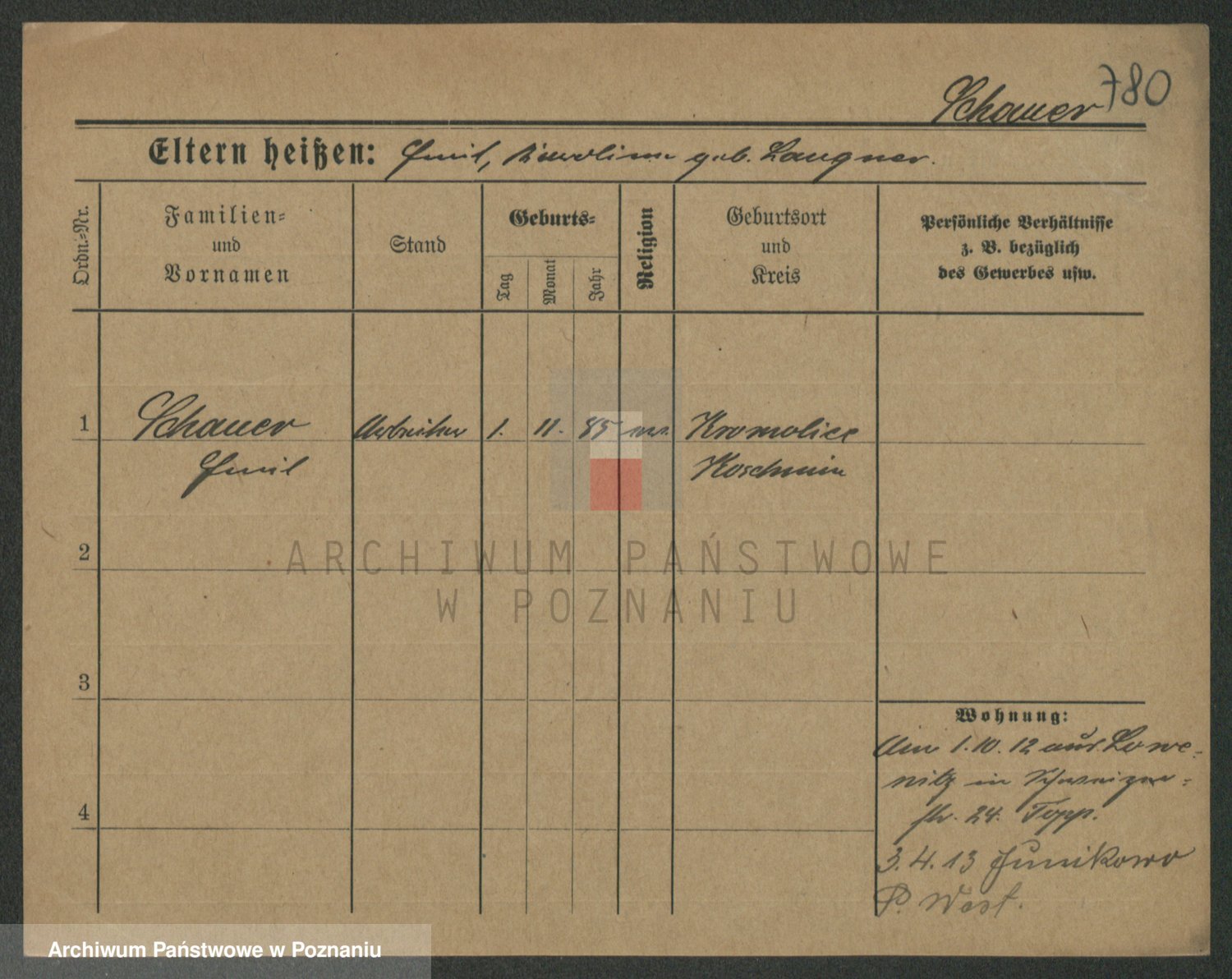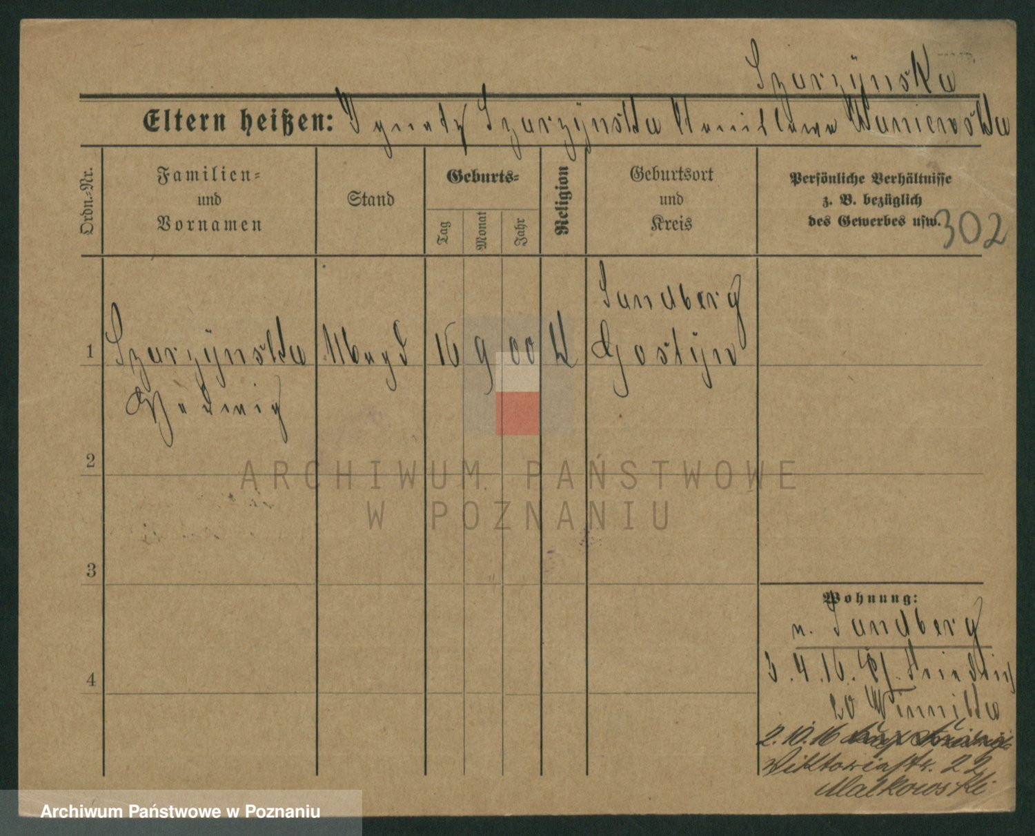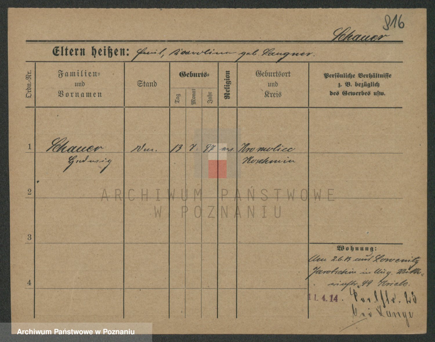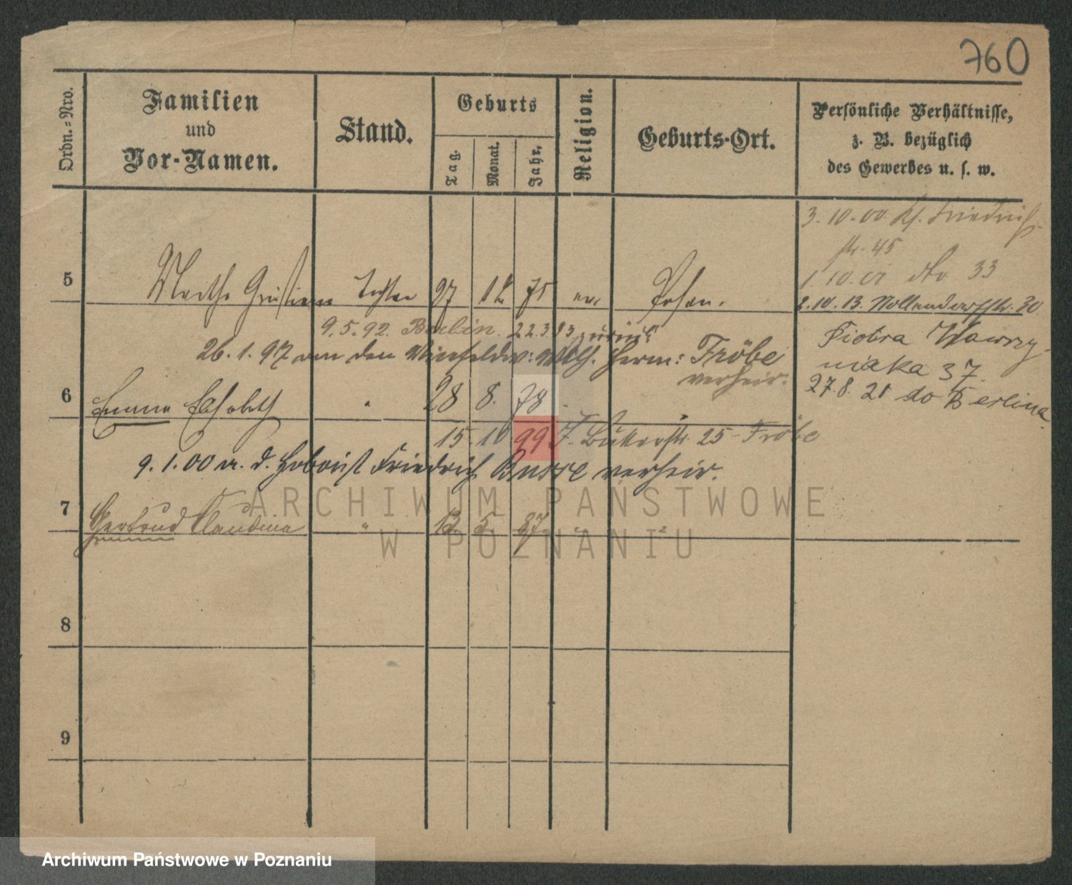 Podgląd karty osobowej dostępny jest po kliknięciu na nazwisko lub ikonkę karty. Można dokonywać powiększenia (ikony na górze) lub przechodzić między kolejnymi skanami (strzałki po bokach).