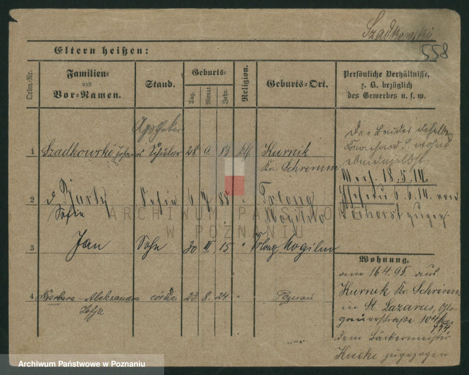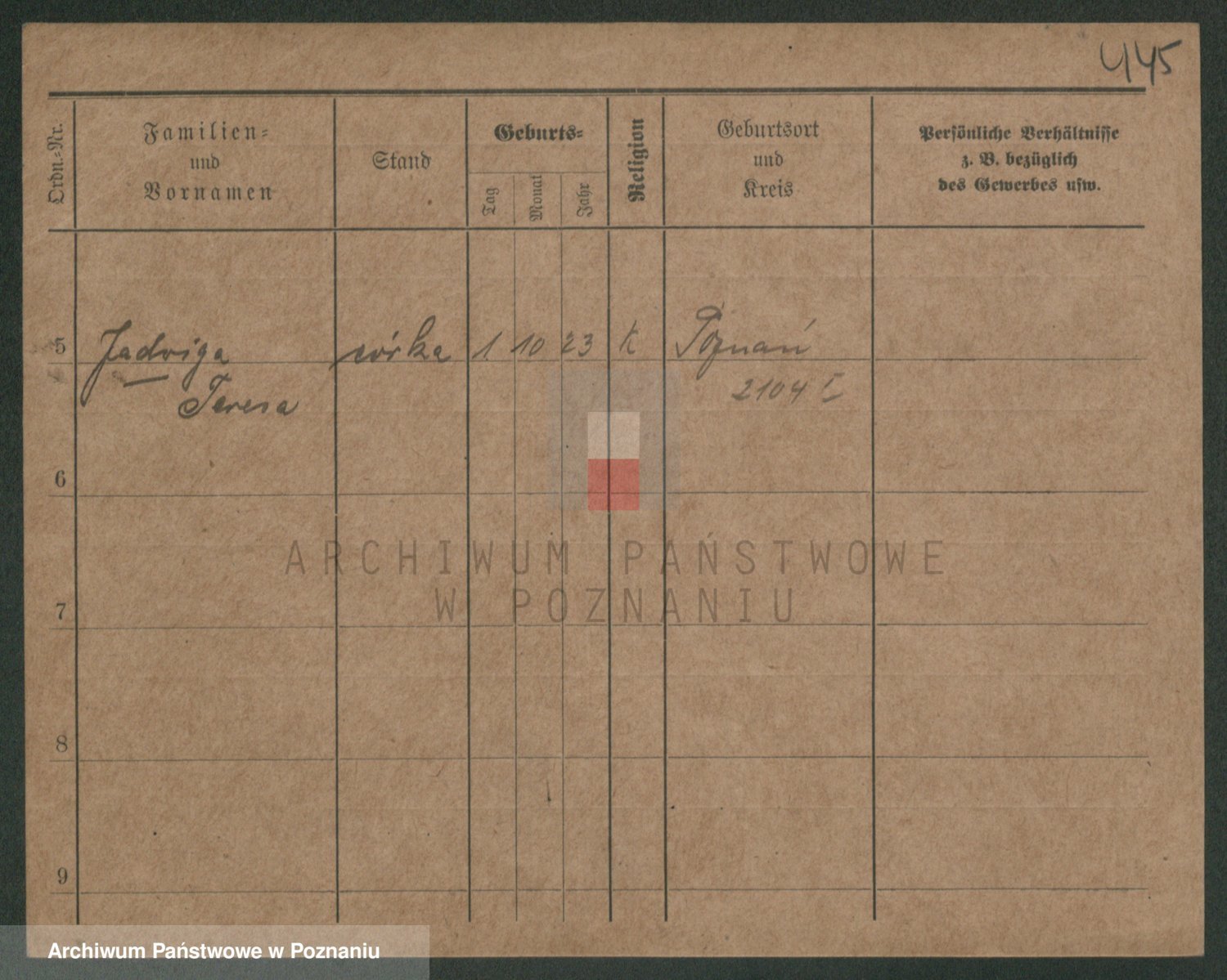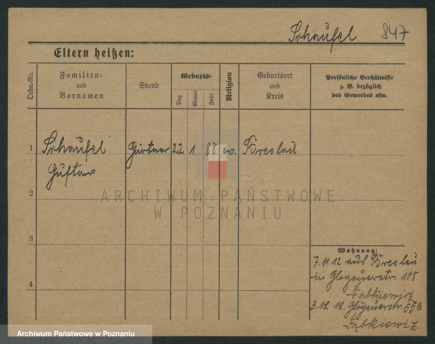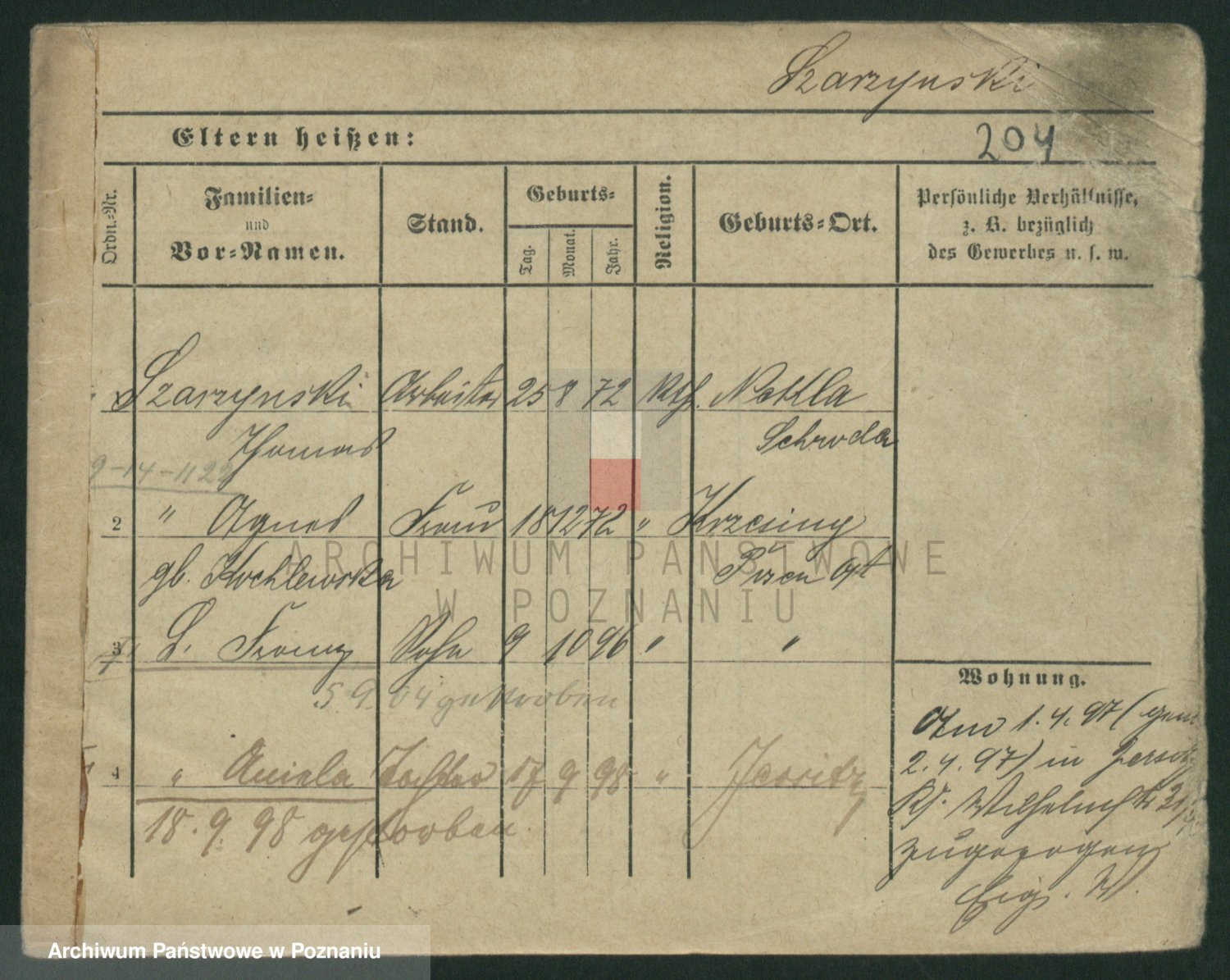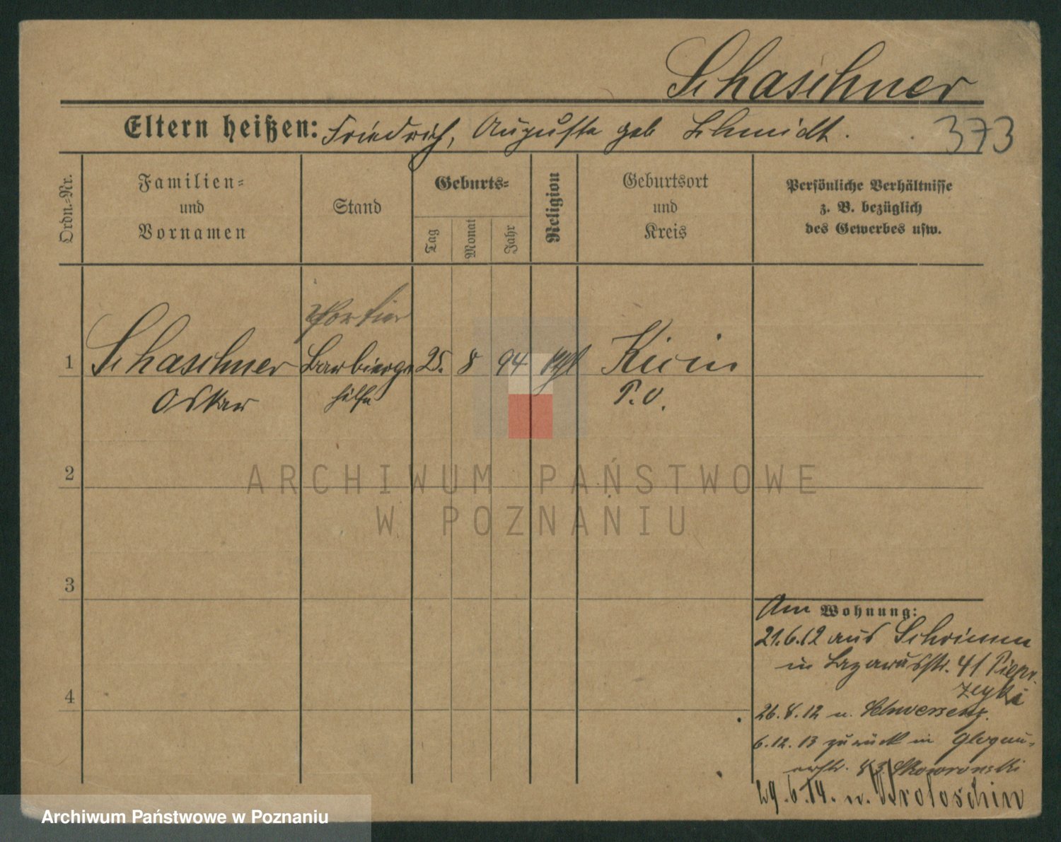 Podgląd karty osobowej dostępny jest po kliknięciu na nazwisko lub ikonkę karty. Można dokonywać powiększenia (ikony na górze) lub przechodzić między kolejnymi skanami (strzałki po bokach).