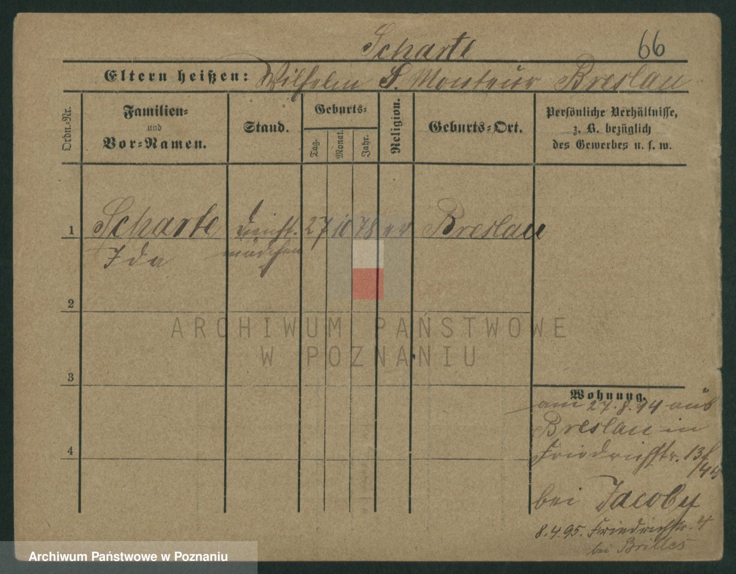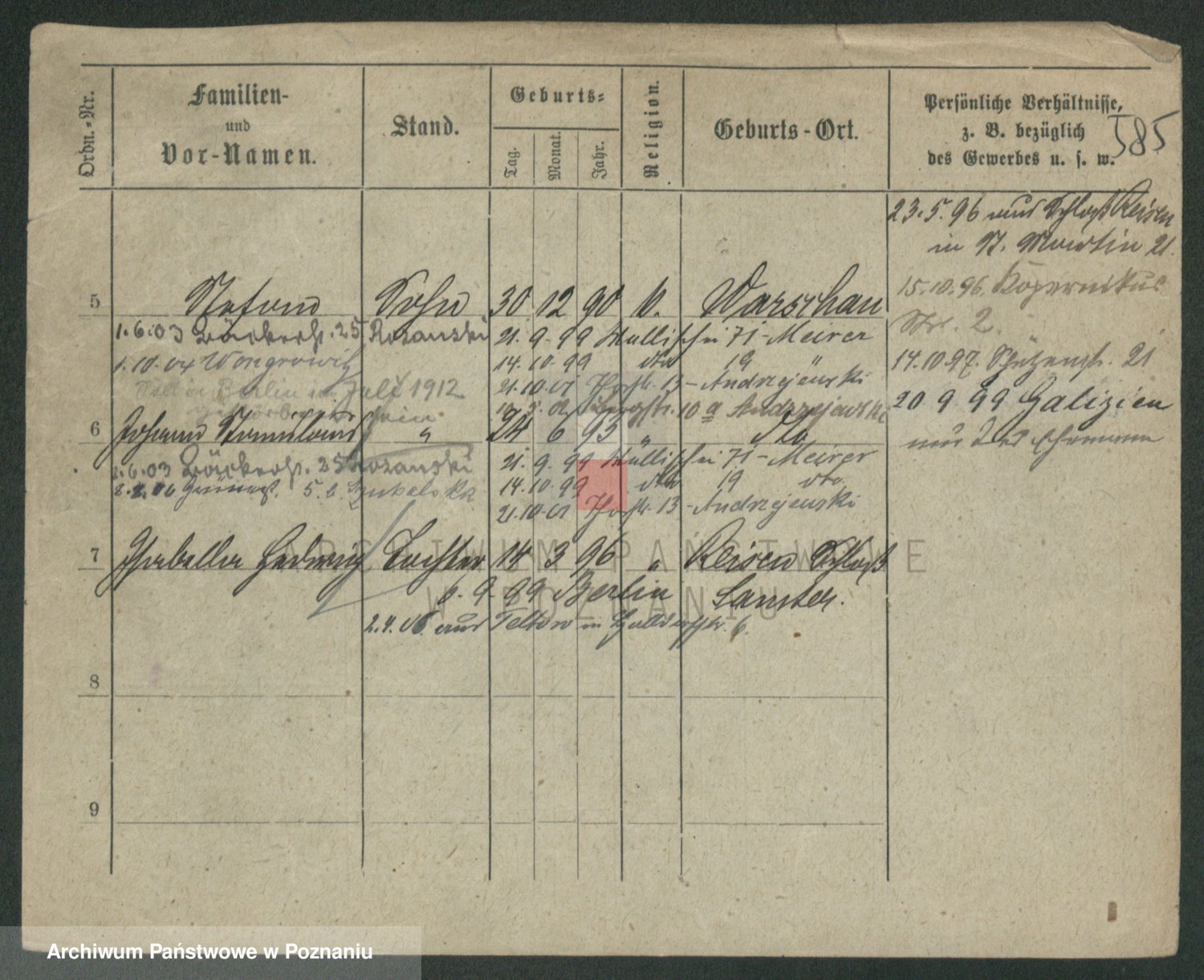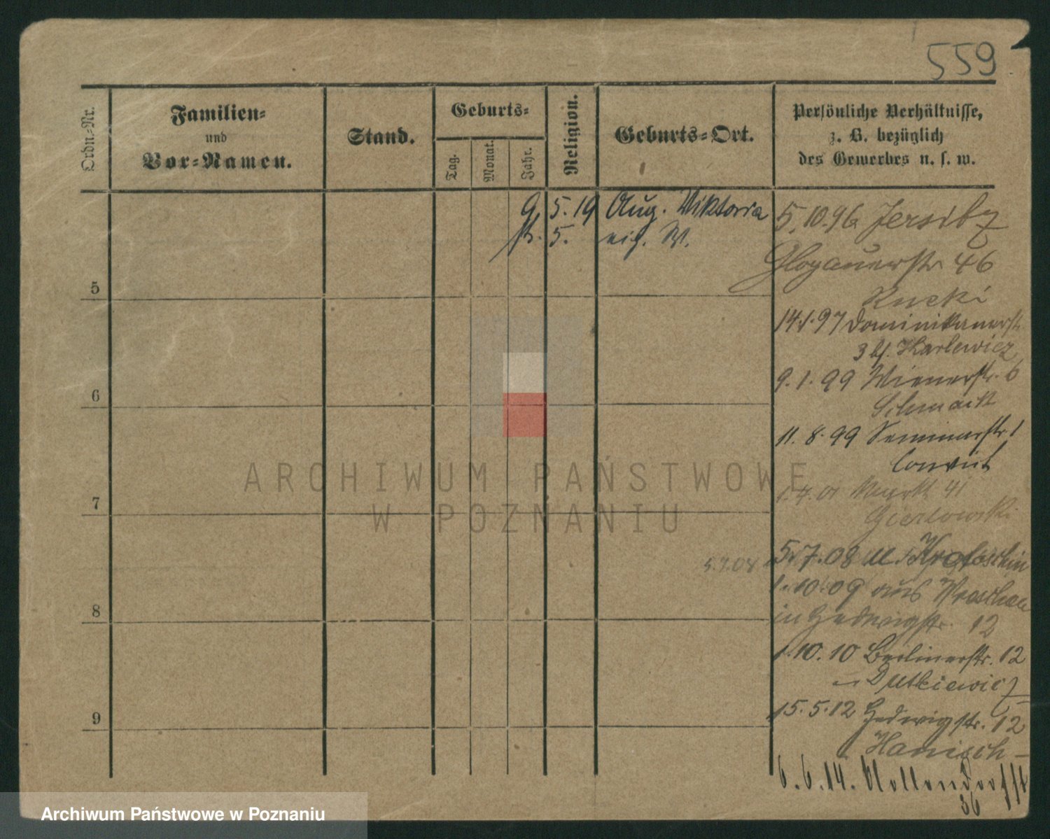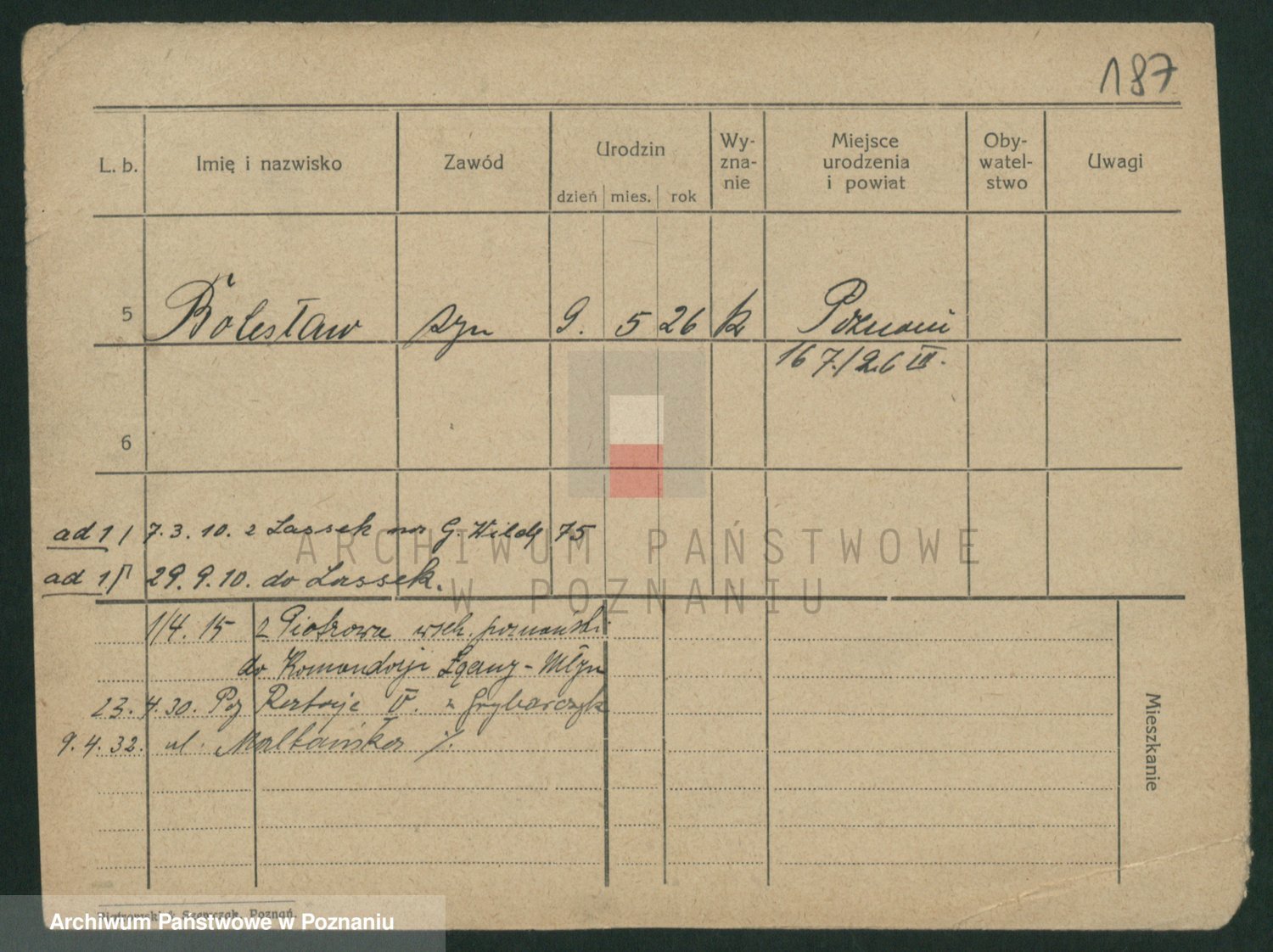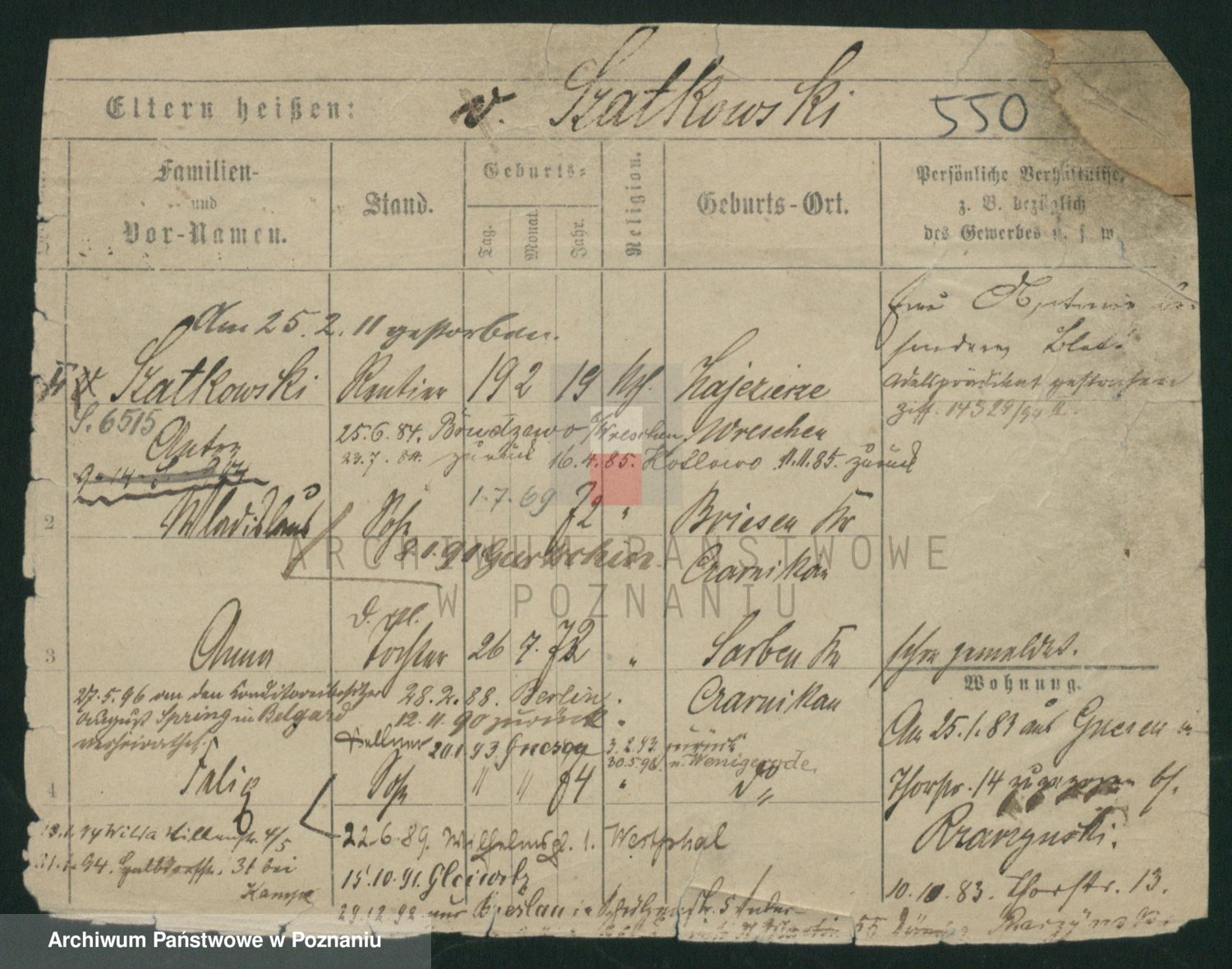 Podgląd karty osobowej dostępny jest po kliknięciu na nazwisko lub ikonkę karty. Można dokonywać powiększenia (ikony na górze) lub przechodzić między kolejnymi skanami (strzałki po bokach).