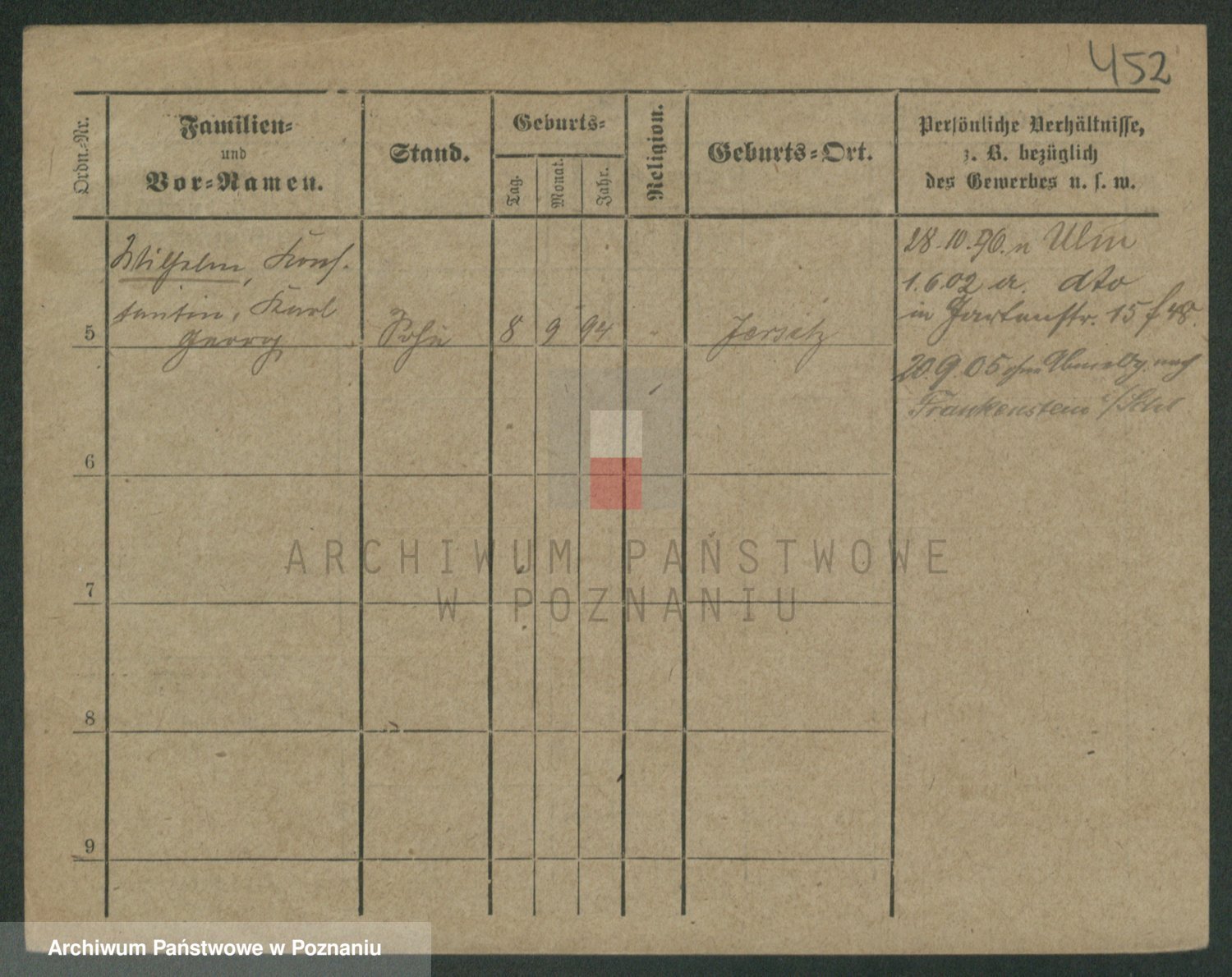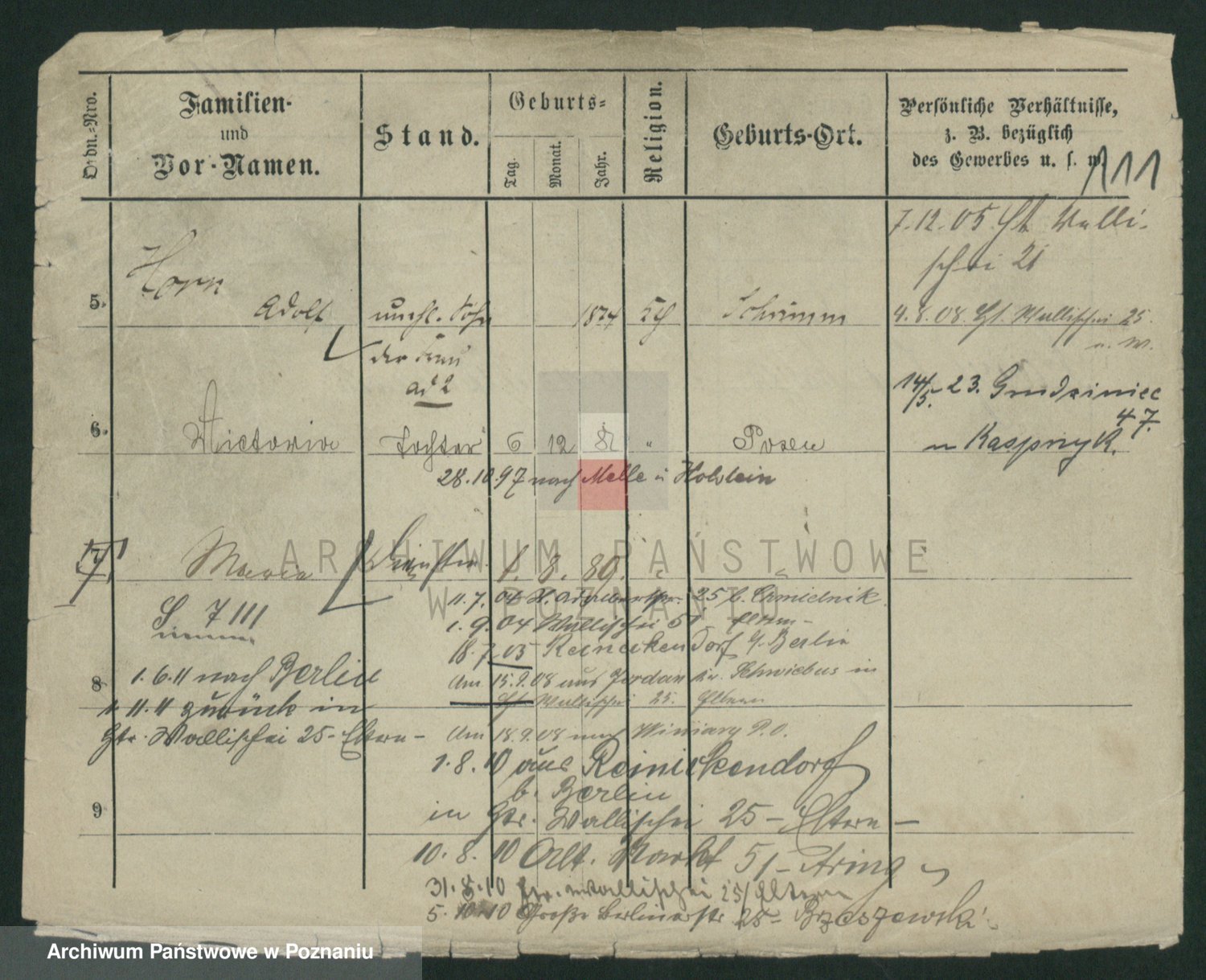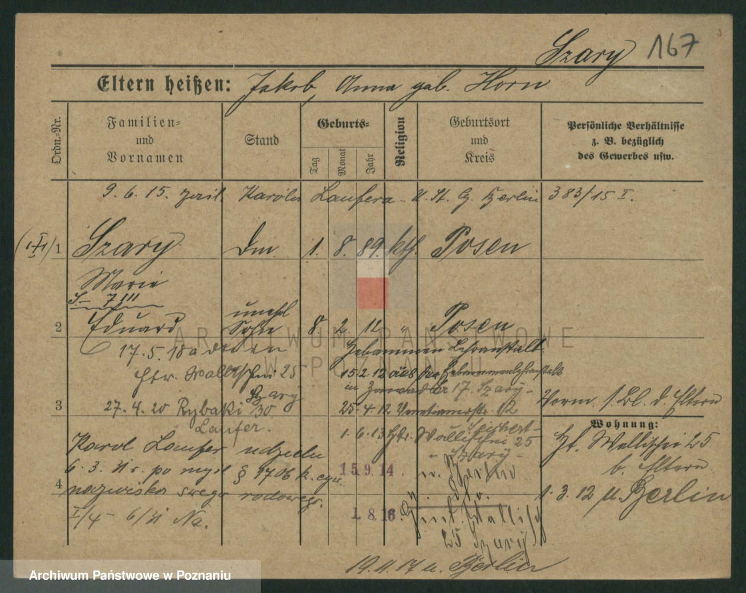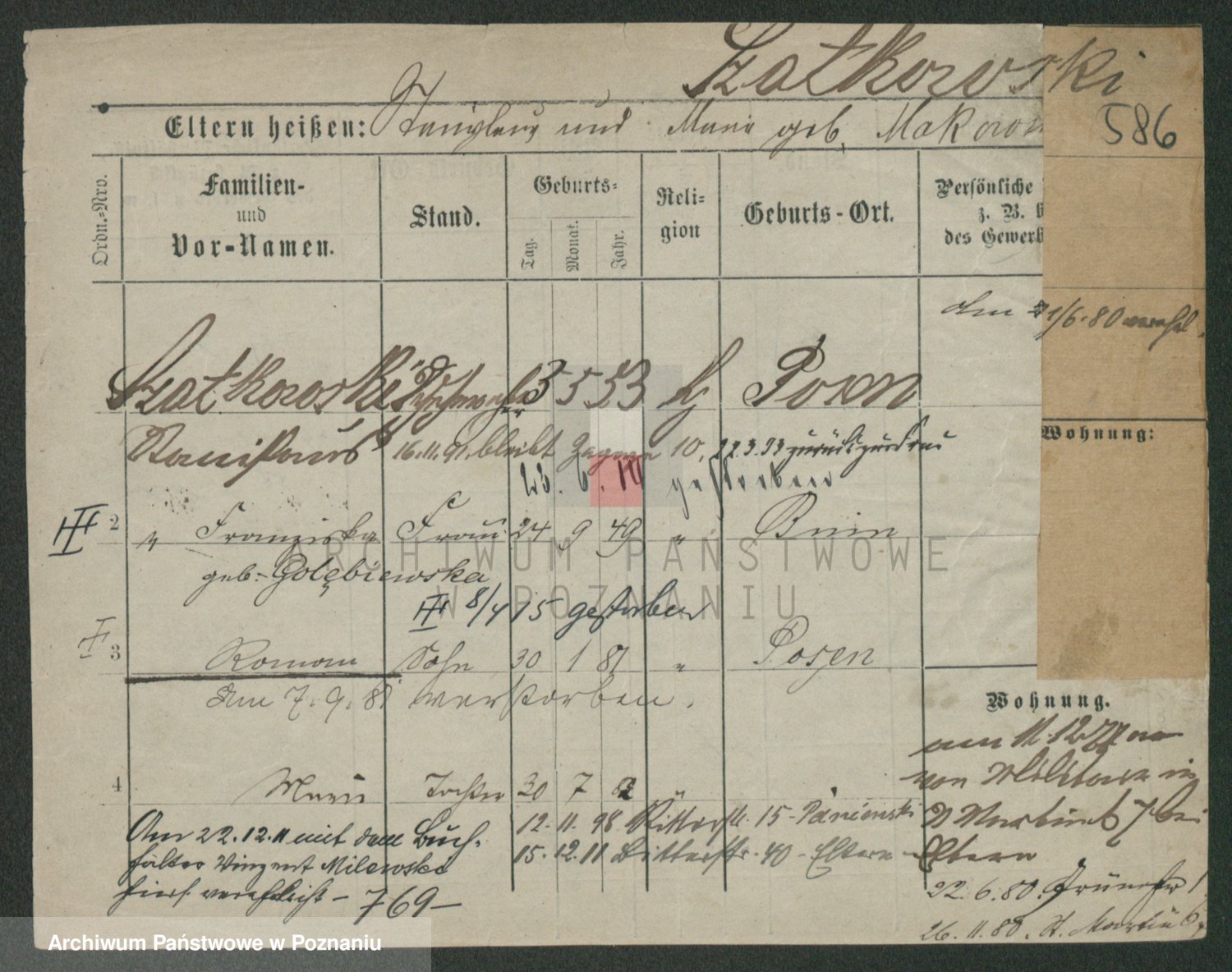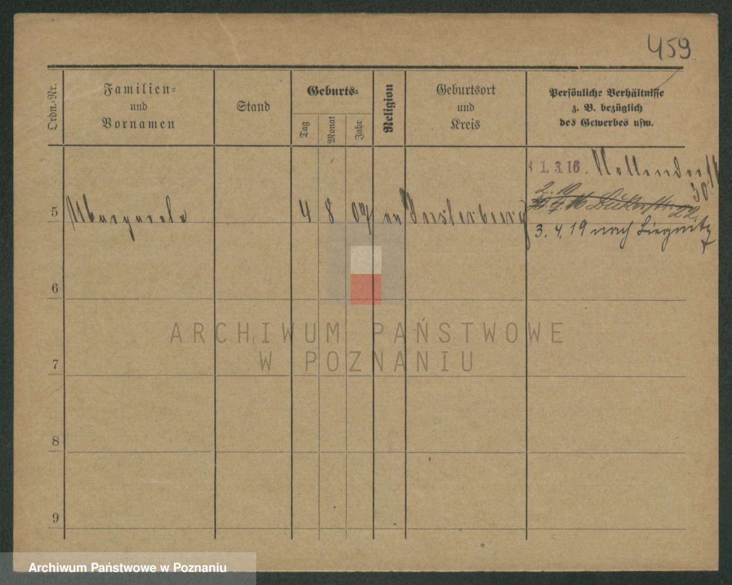 Podgląd karty osobowej dostępny jest po kliknięciu na nazwisko lub ikonkę karty. Można dokonywać powiększenia (ikony na górze) lub przechodzić między kolejnymi skanami (strzałki po bokach).