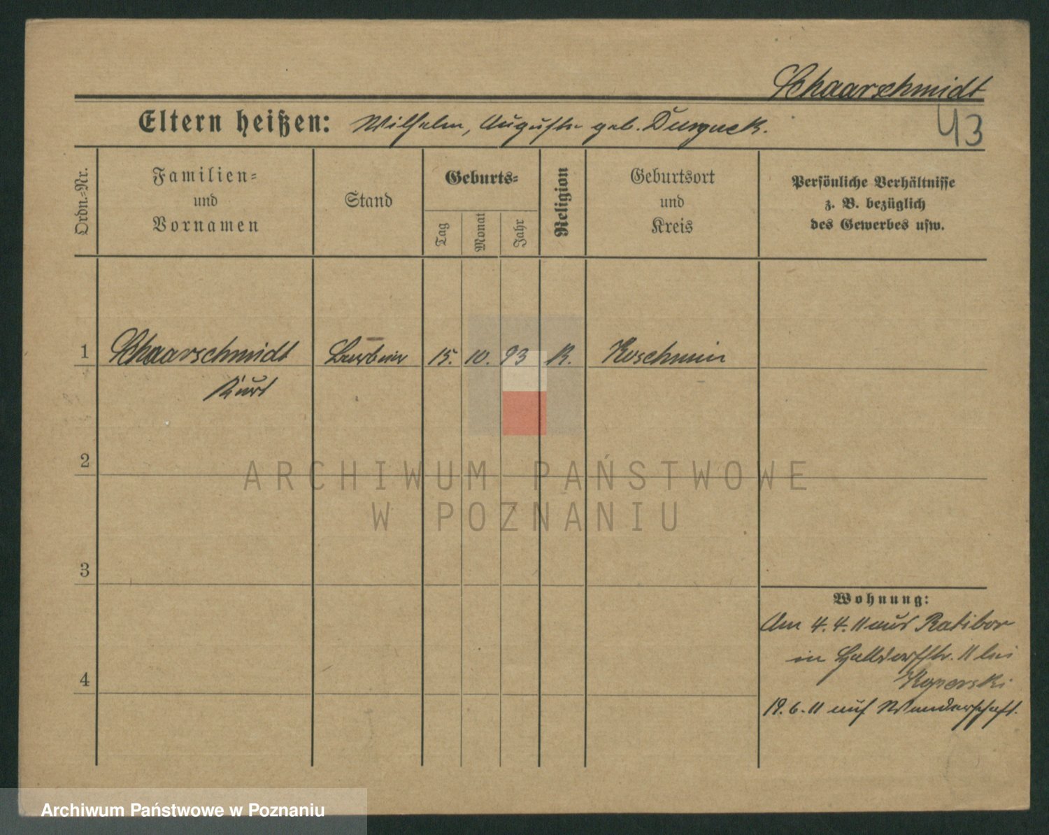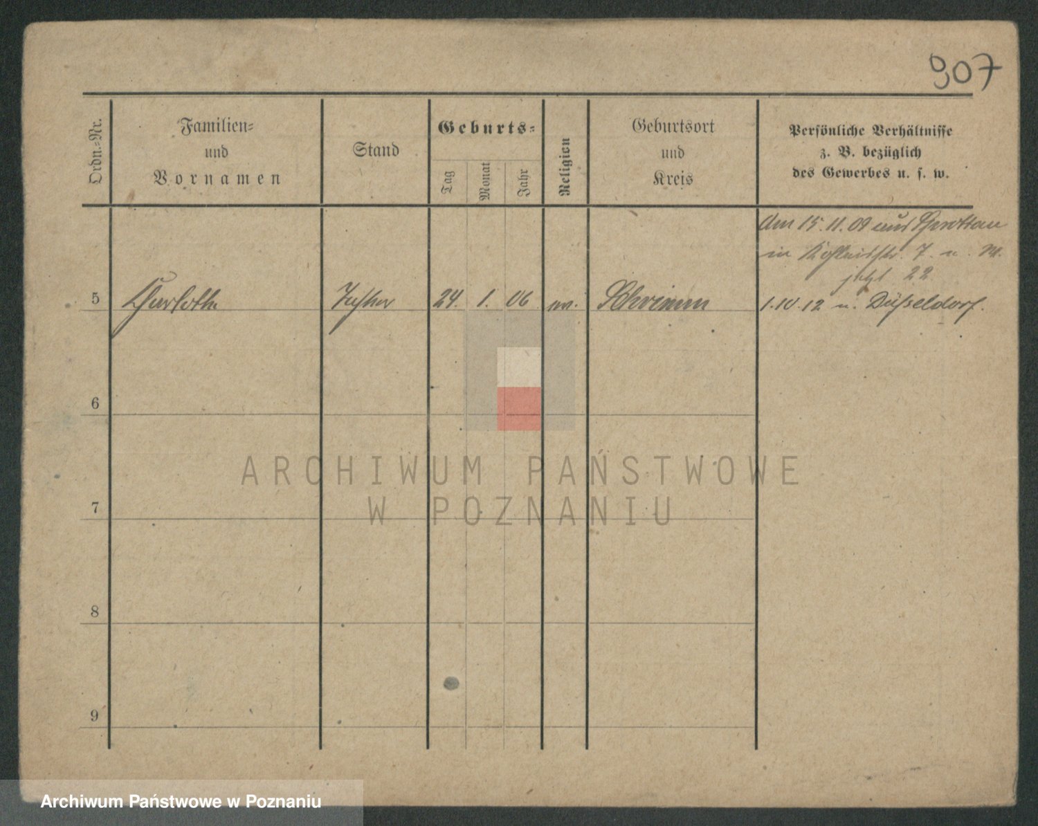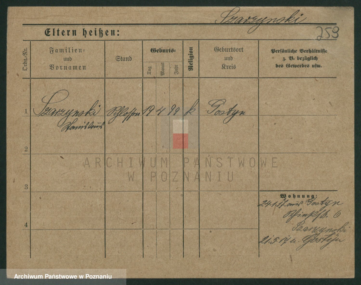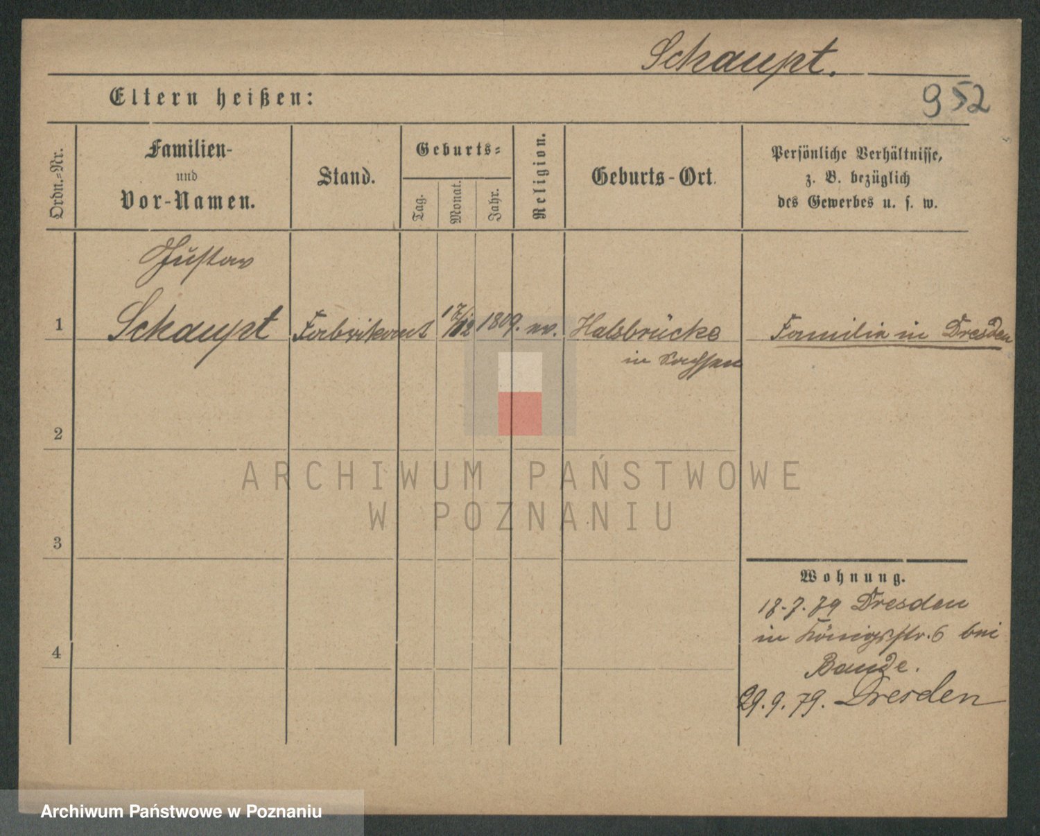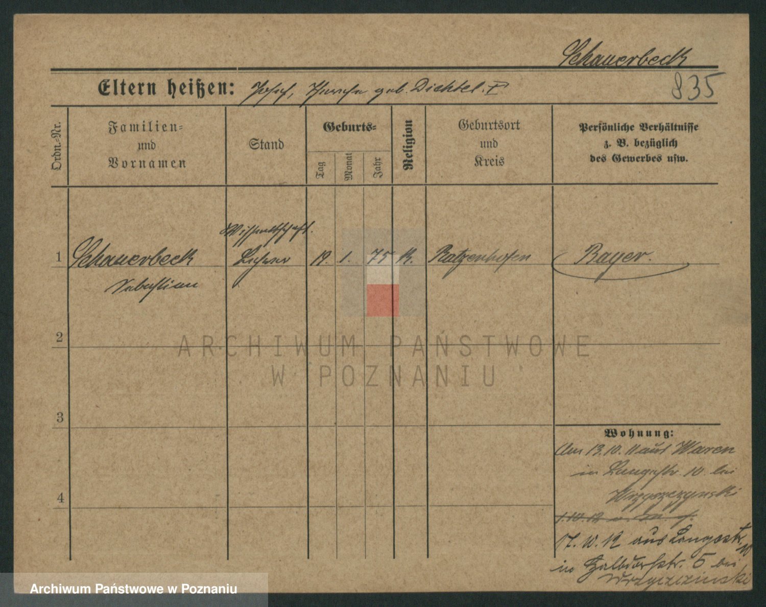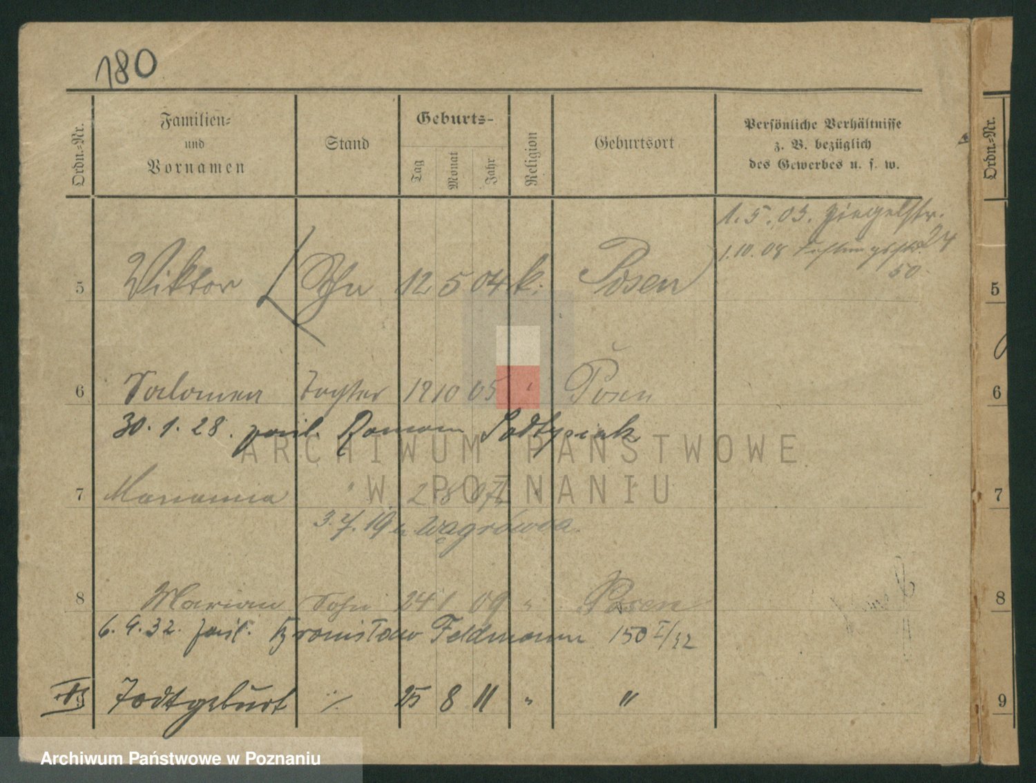 Podgląd karty osobowej dostępny jest po kliknięciu na nazwisko lub ikonkę karty. Można dokonywać powiększenia (ikony na górze) lub przechodzić między kolejnymi skanami (strzałki po bokach).