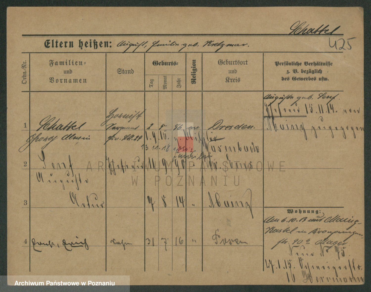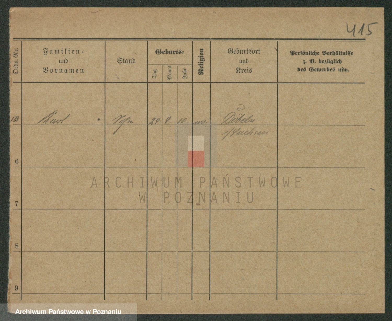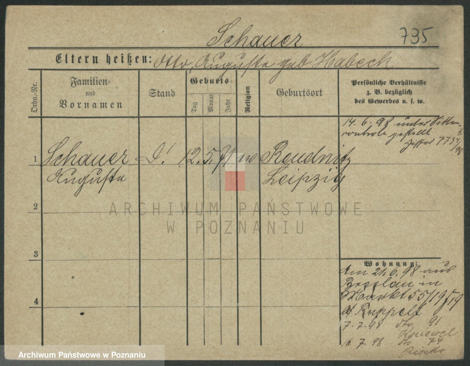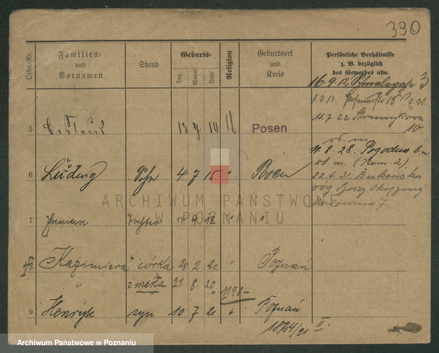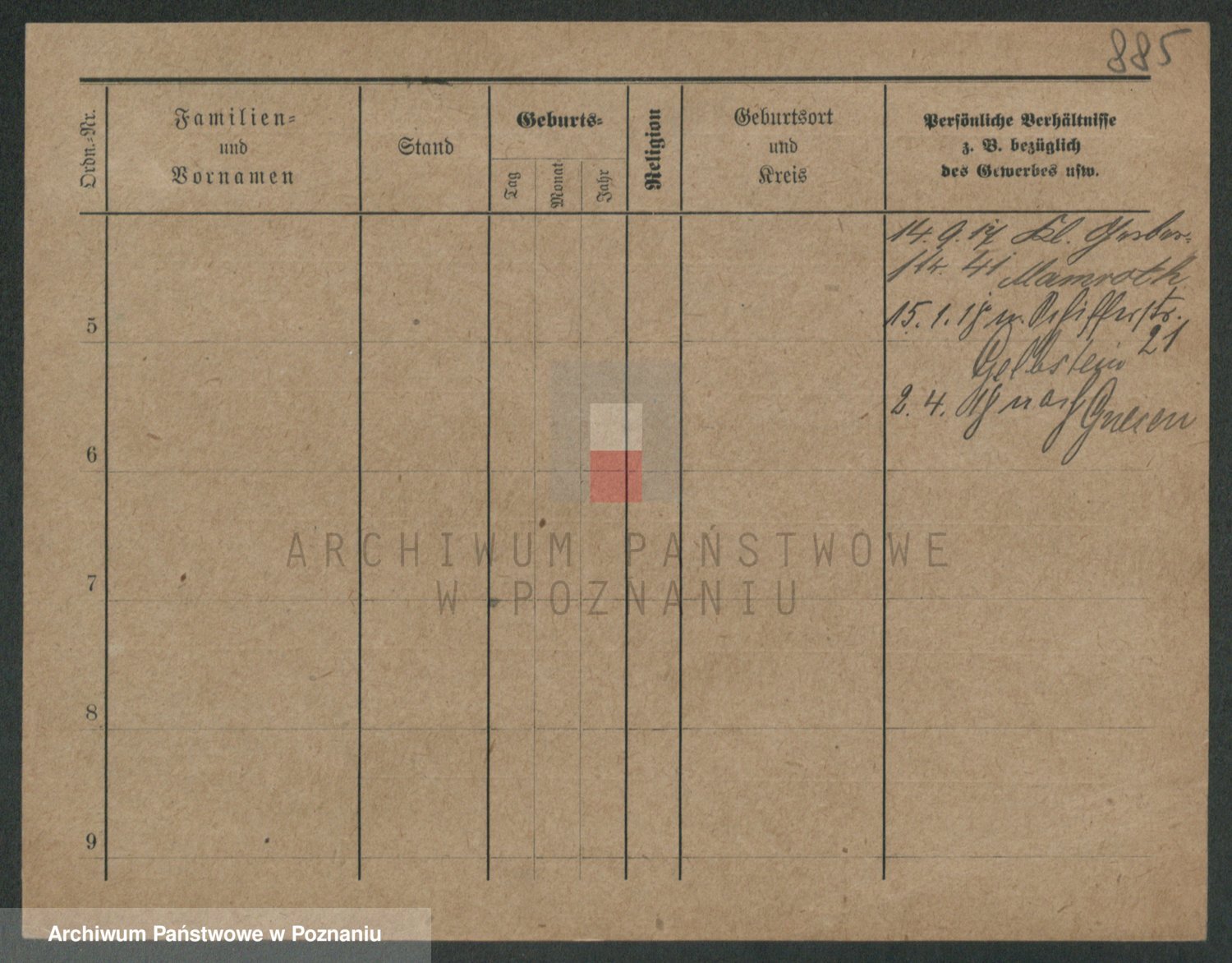 Podgląd karty osobowej dostępny jest po kliknięciu na nazwisko lub ikonkę karty. Można dokonywać powiększenia (ikony na górze) lub przechodzić między kolejnymi skanami (strzałki po bokach).