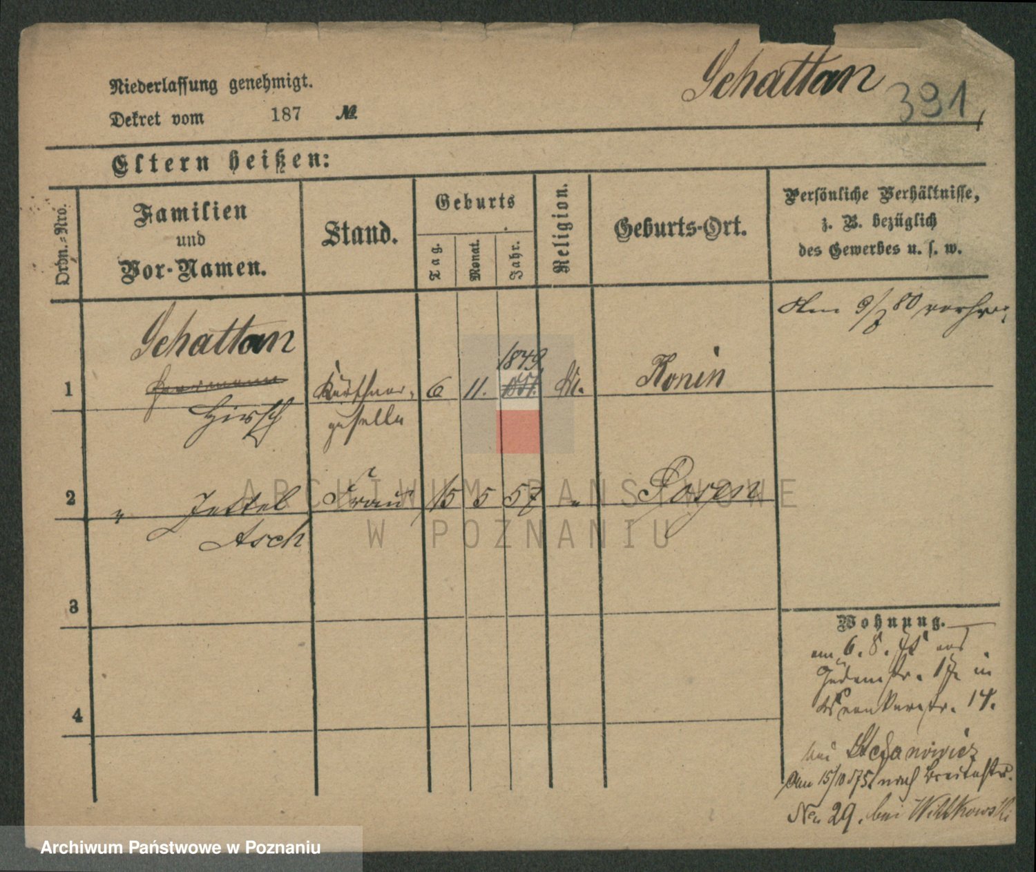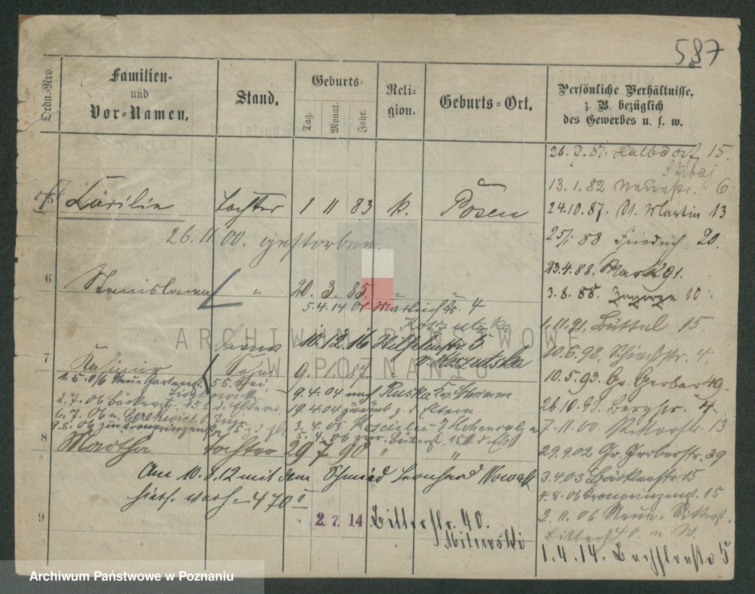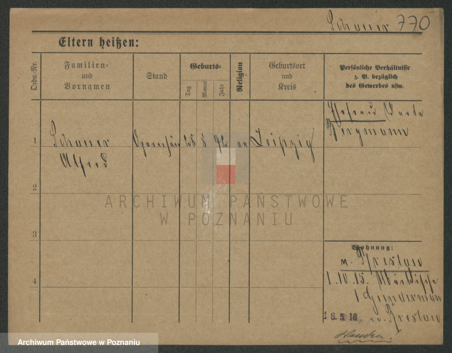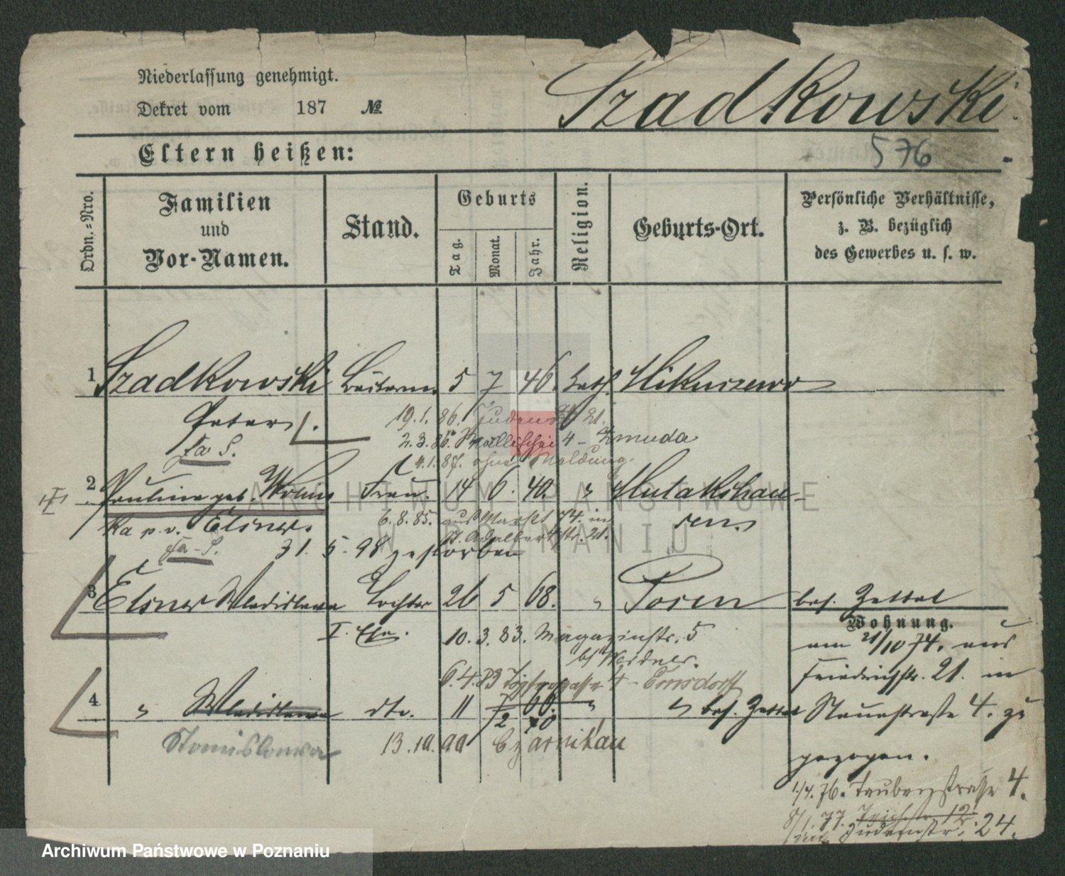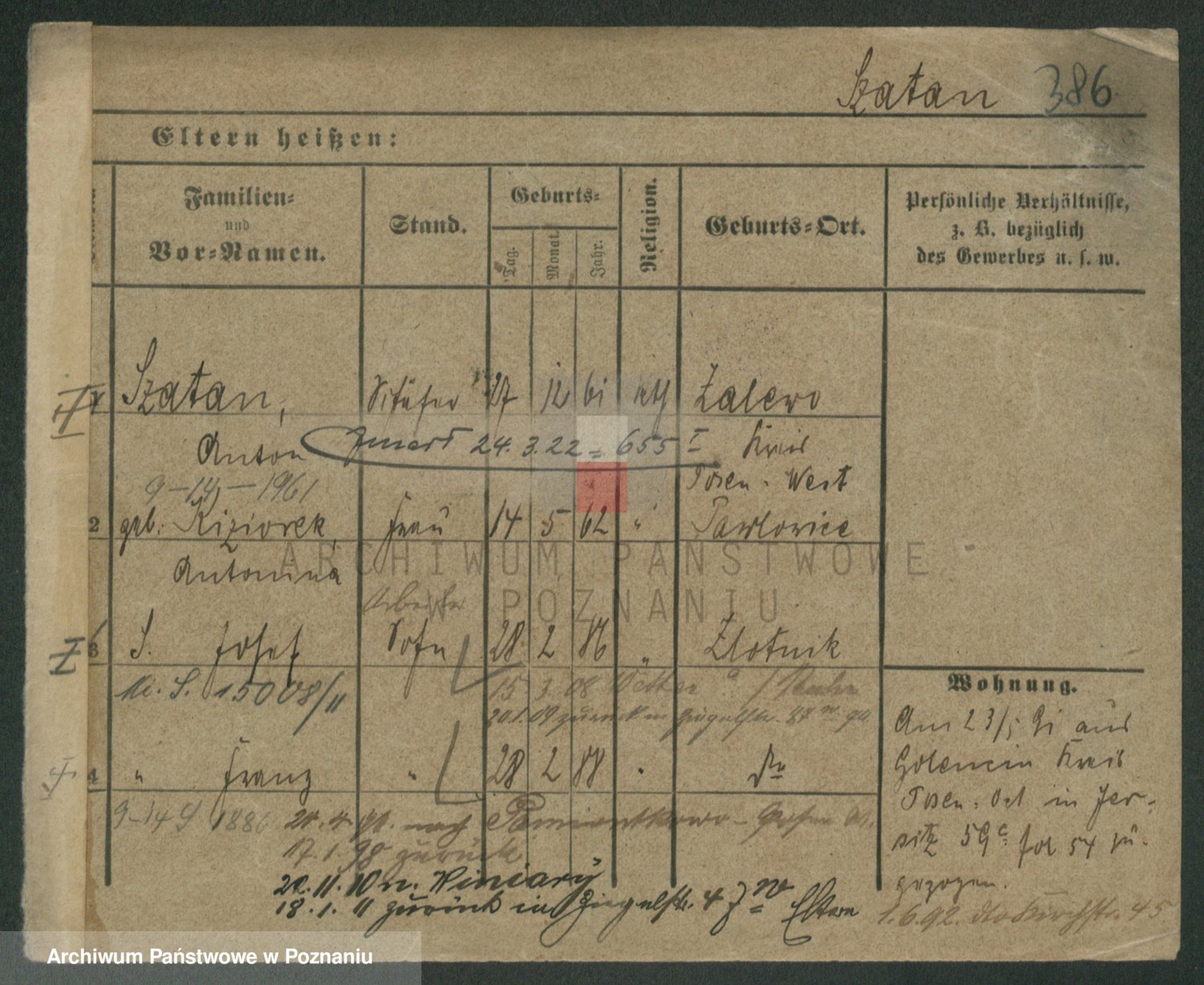 Podgląd karty osobowej dostępny jest po kliknięciu na nazwisko lub ikonkę karty. Można dokonywać powiększenia (ikony na górze) lub przechodzić między kolejnymi skanami (strzałki po bokach).
