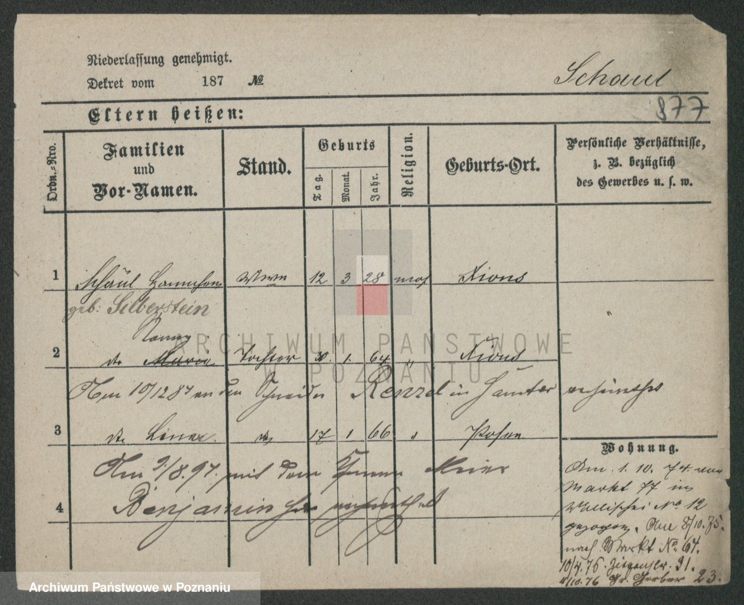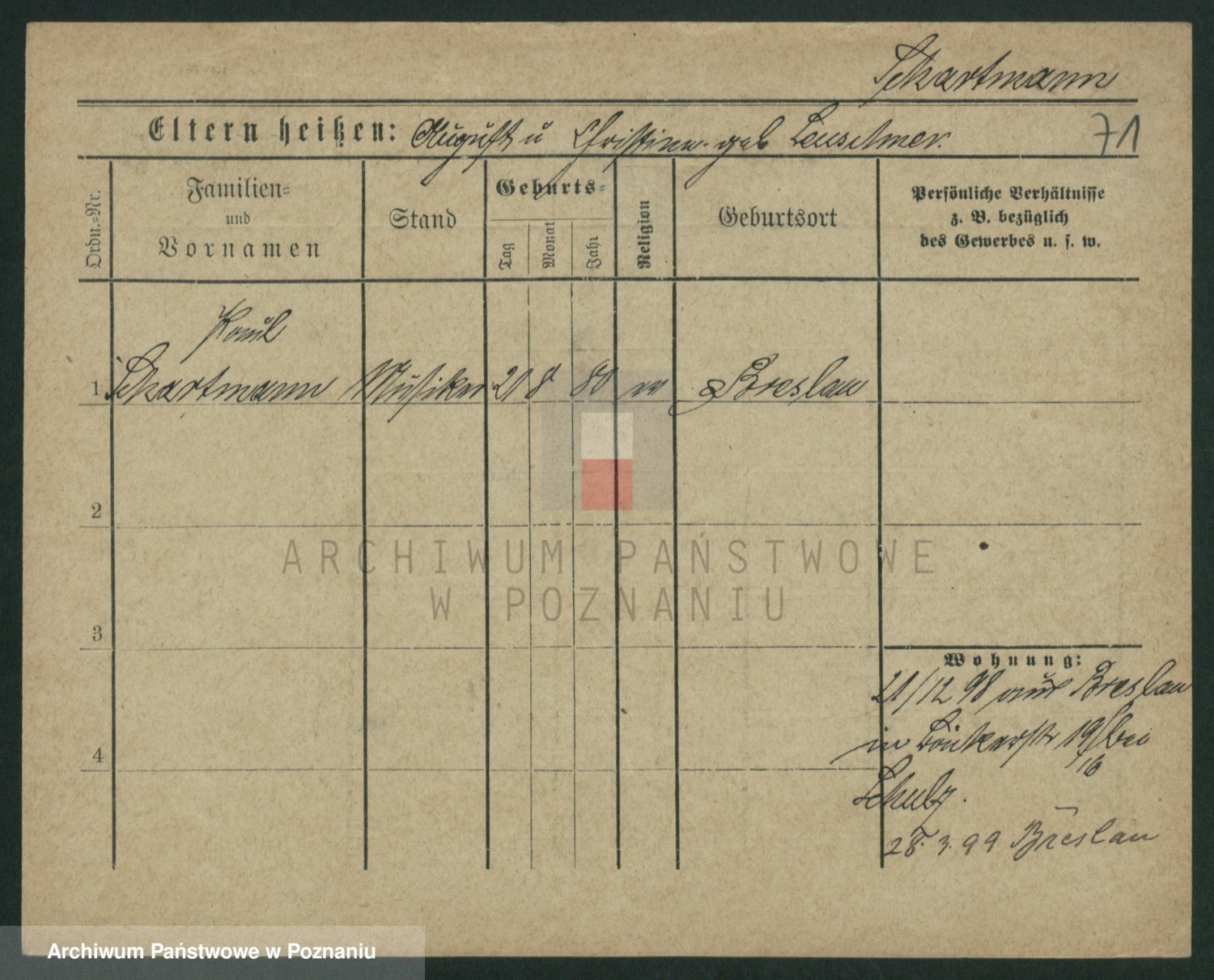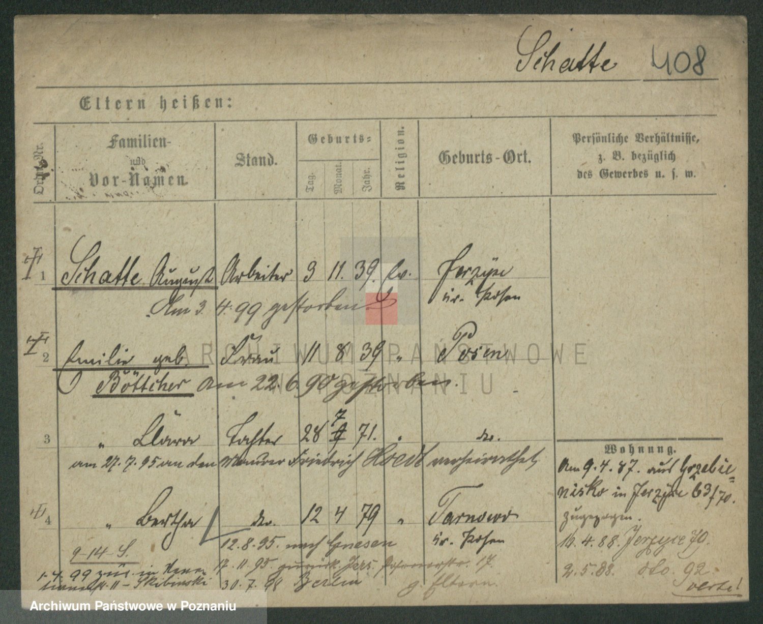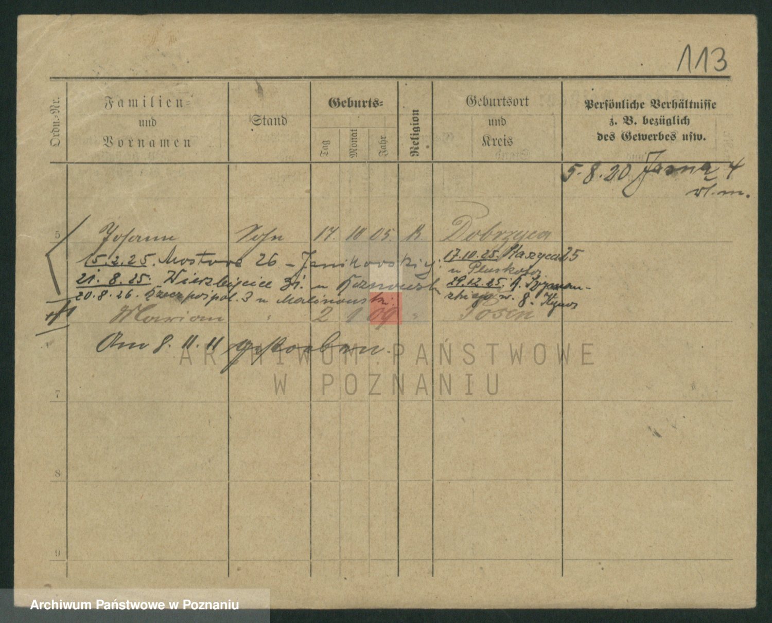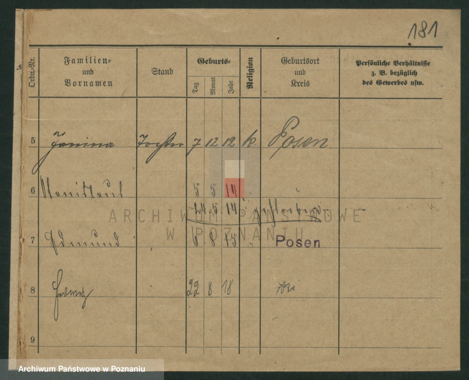 Podgląd karty osobowej dostępny jest po kliknięciu na nazwisko lub ikonkę karty. Można dokonywać powiększenia (ikony na górze) lub przechodzić między kolejnymi skanami (strzałki po bokach).