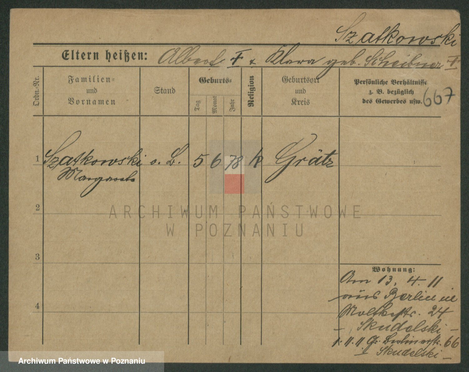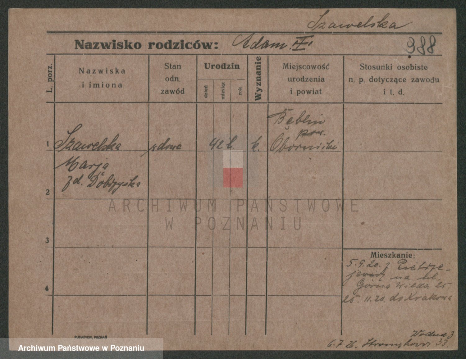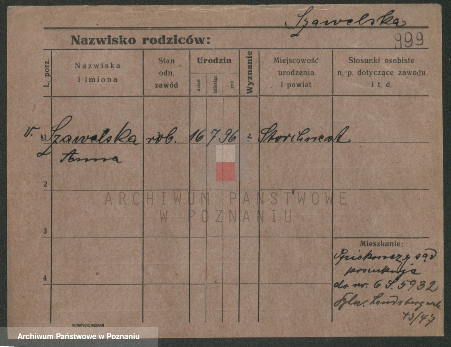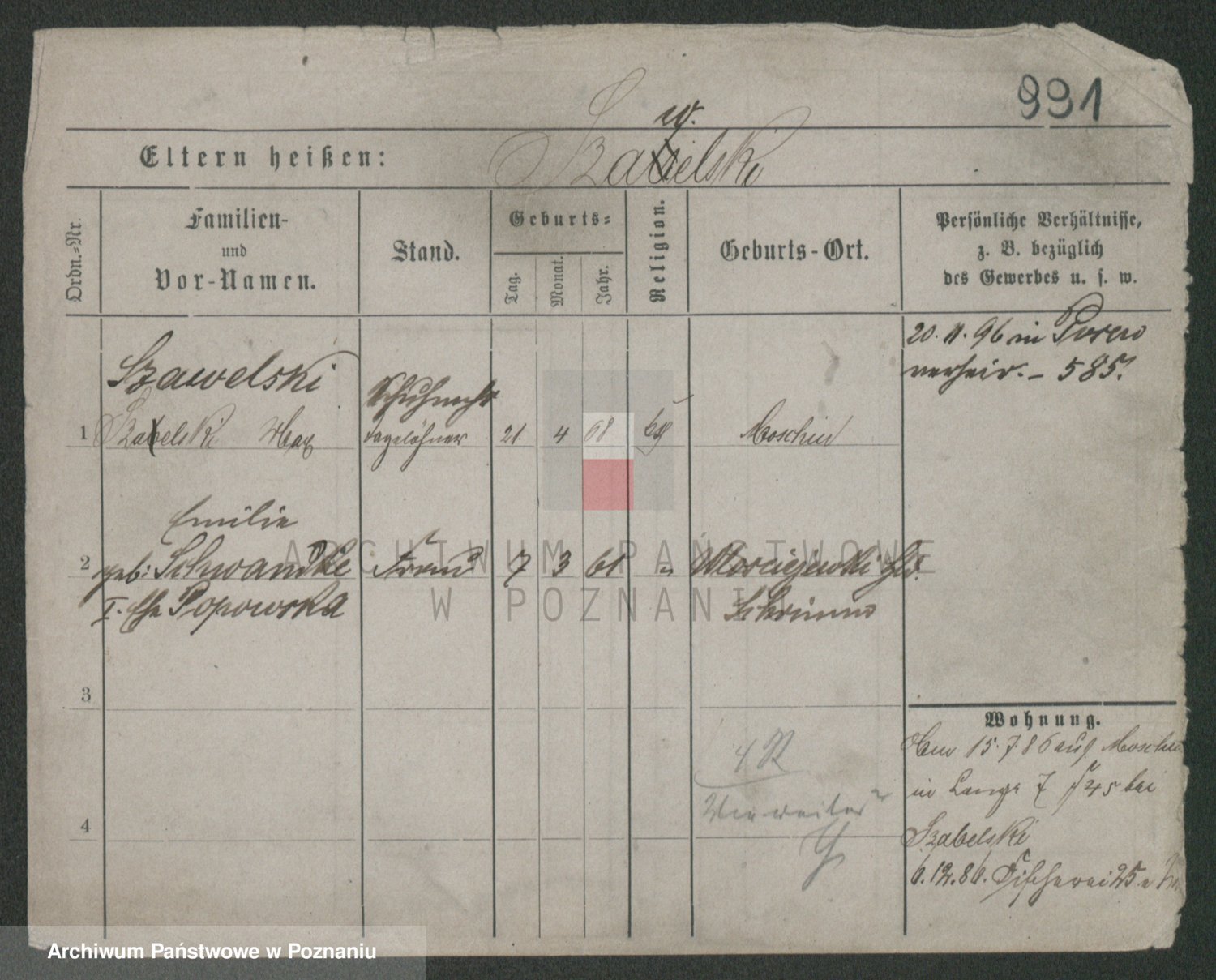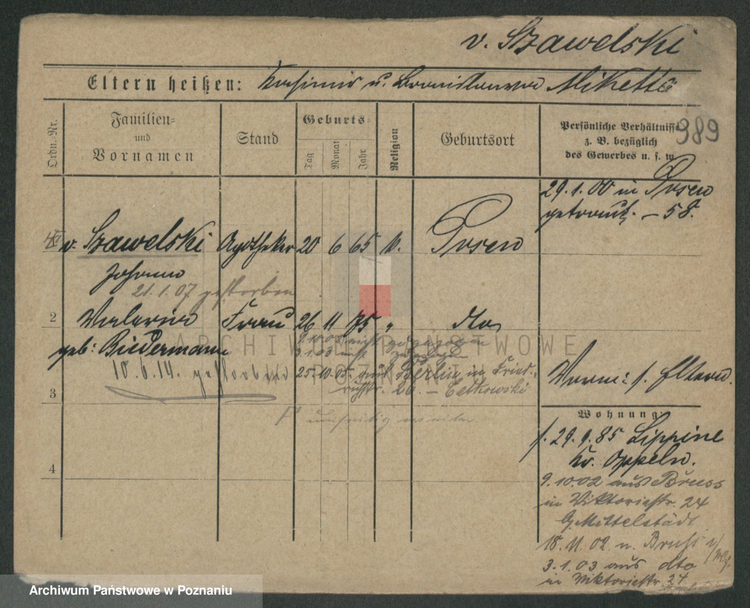 Szawelski z.d. Schwandke I voto Popowska, Emilie