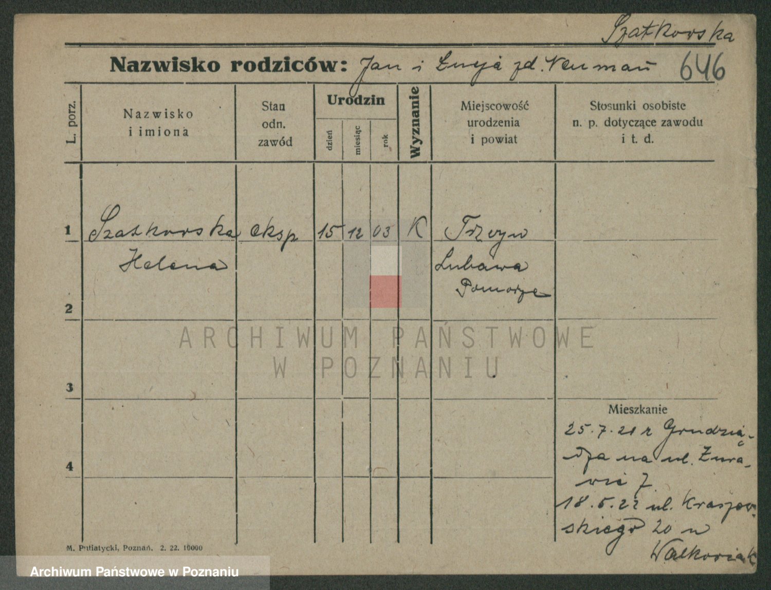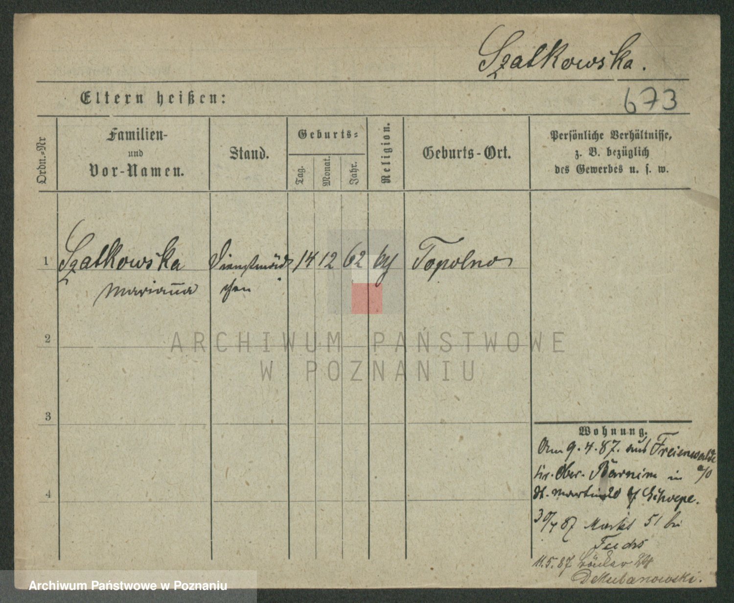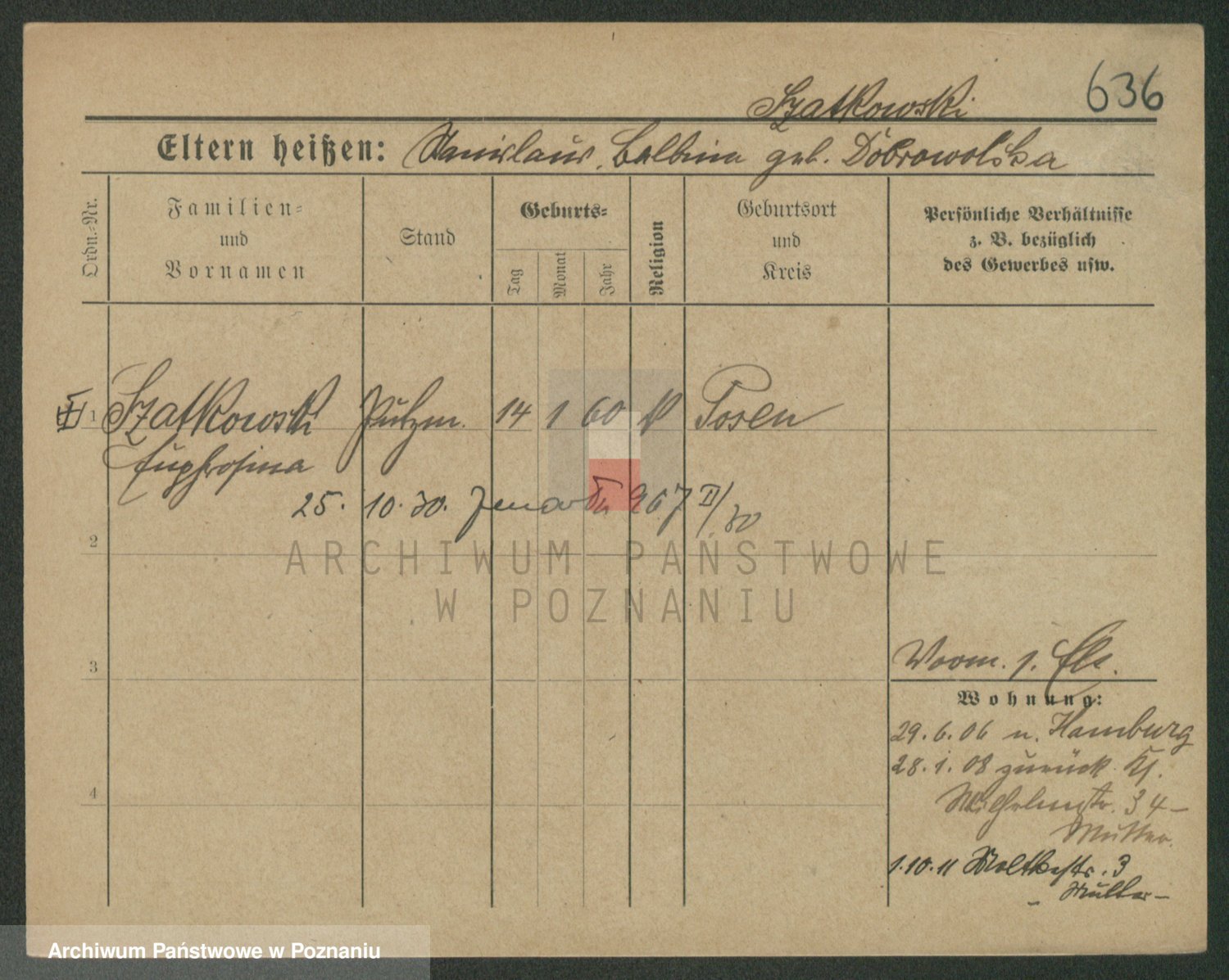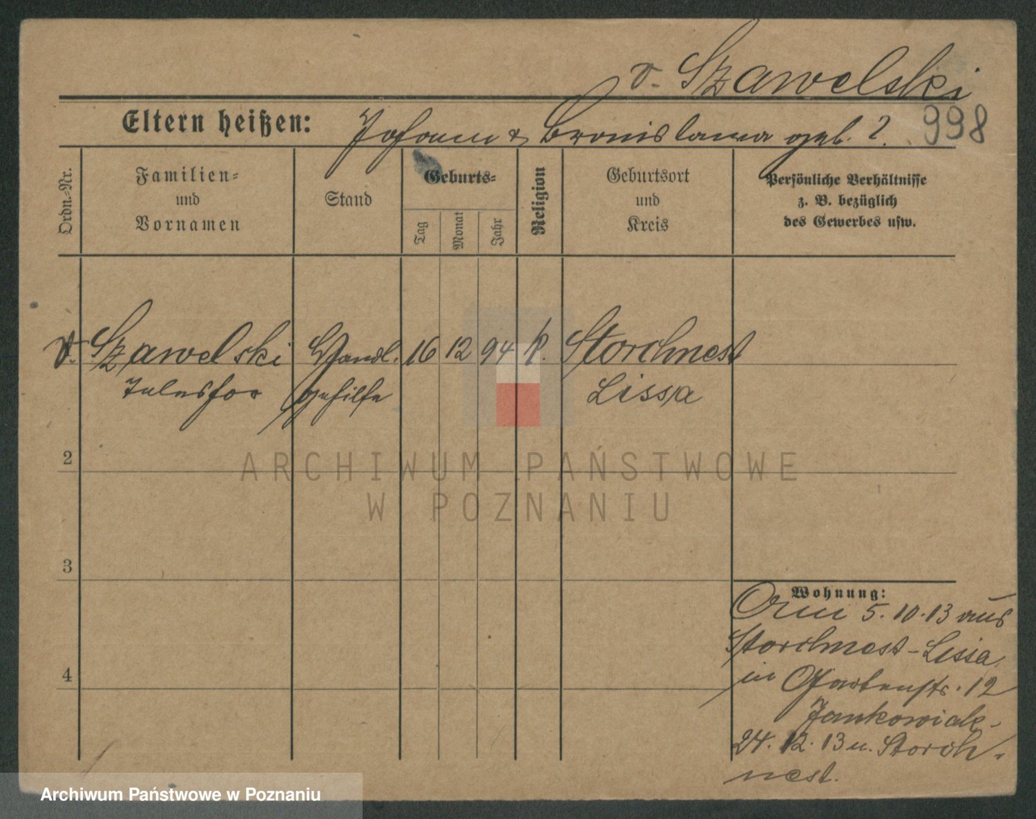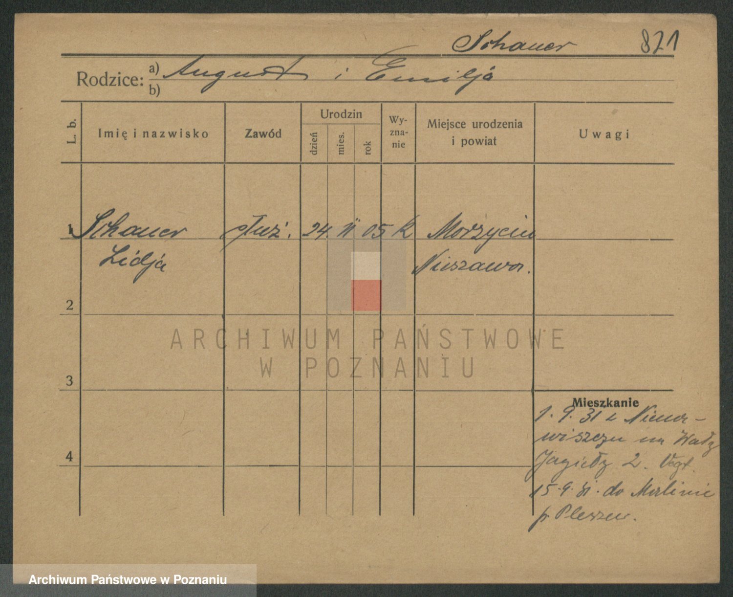 Szawelski z.d. Schwandke I voto Popowska, Emilie