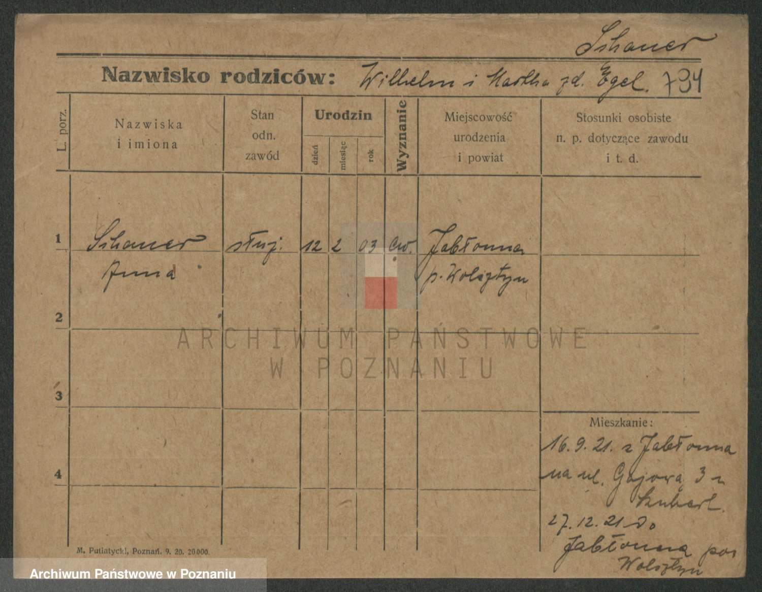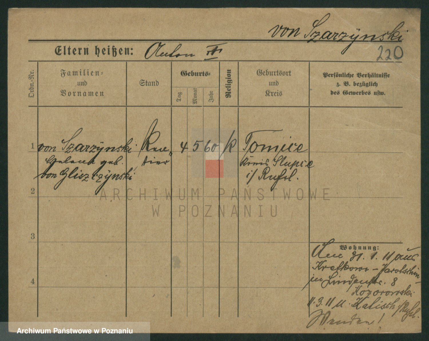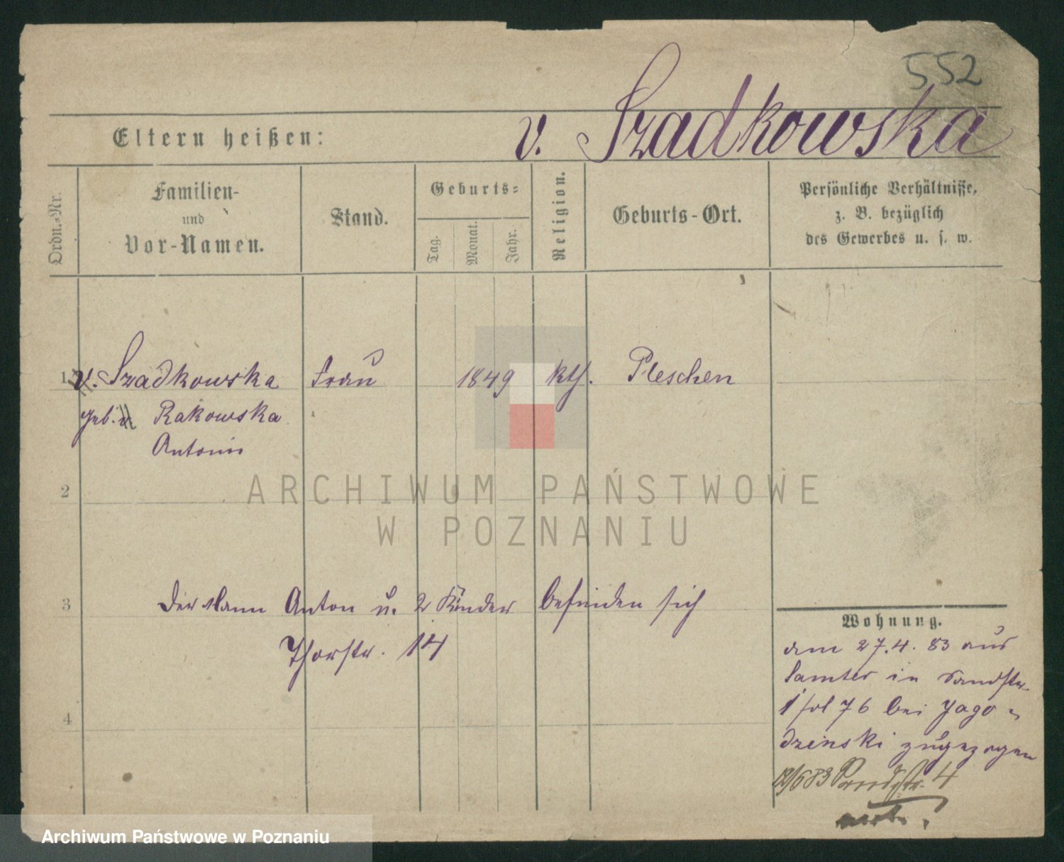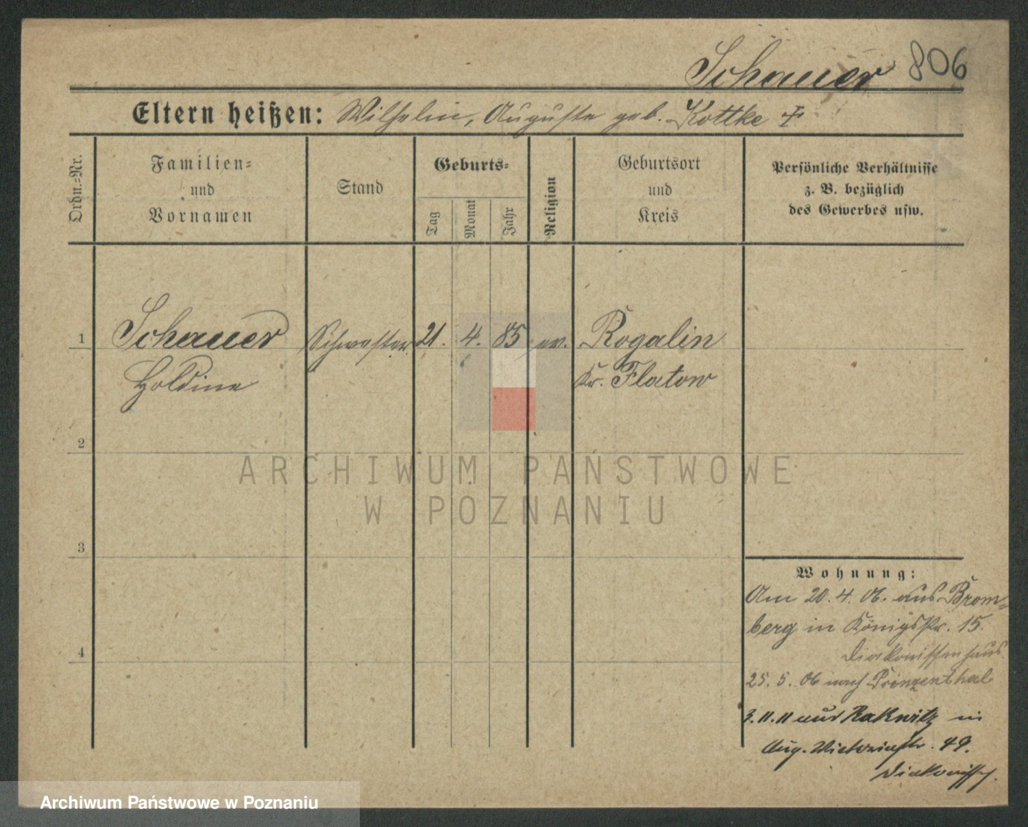 Szawelski z.d. Schwandke I voto Popowska, Emilie