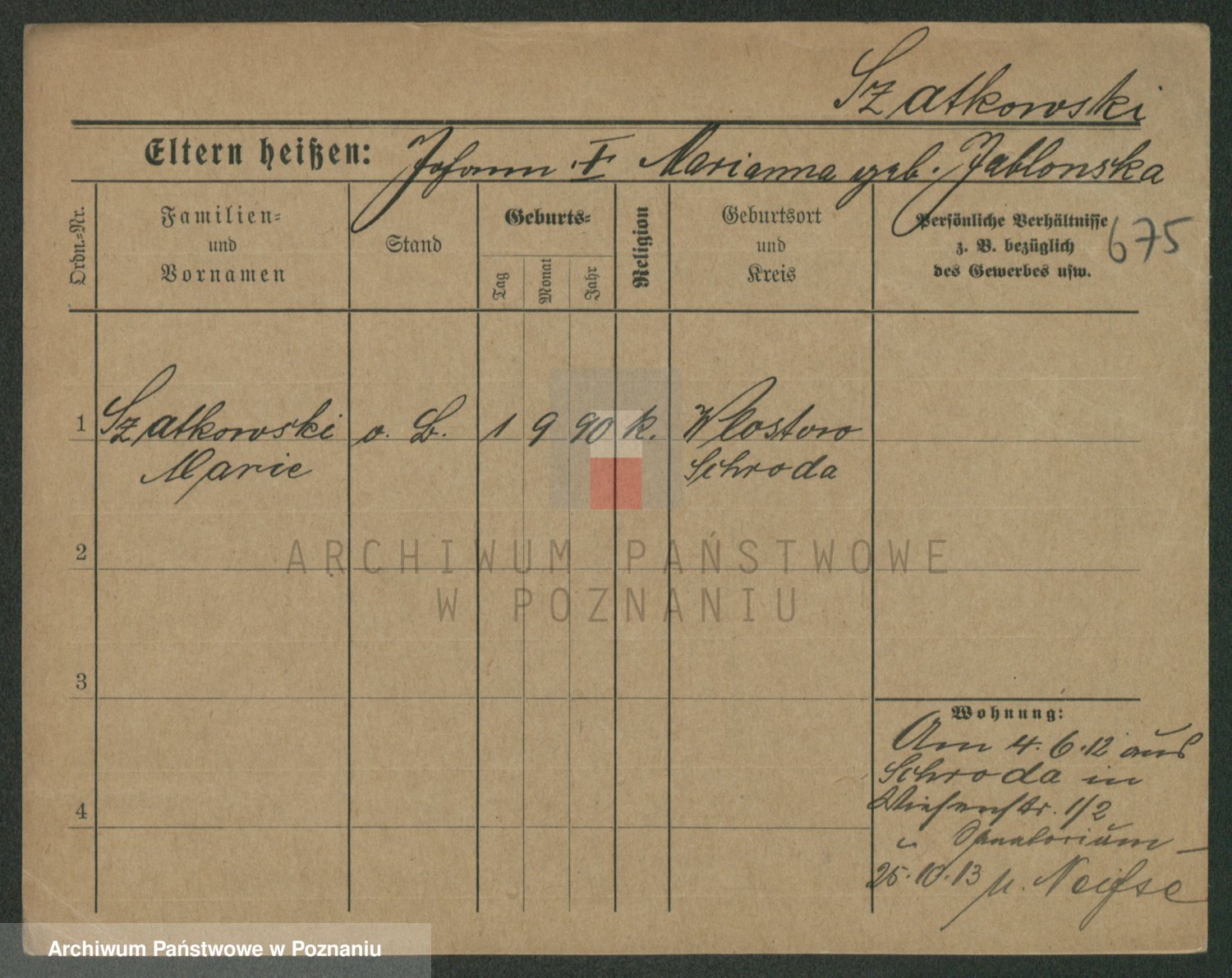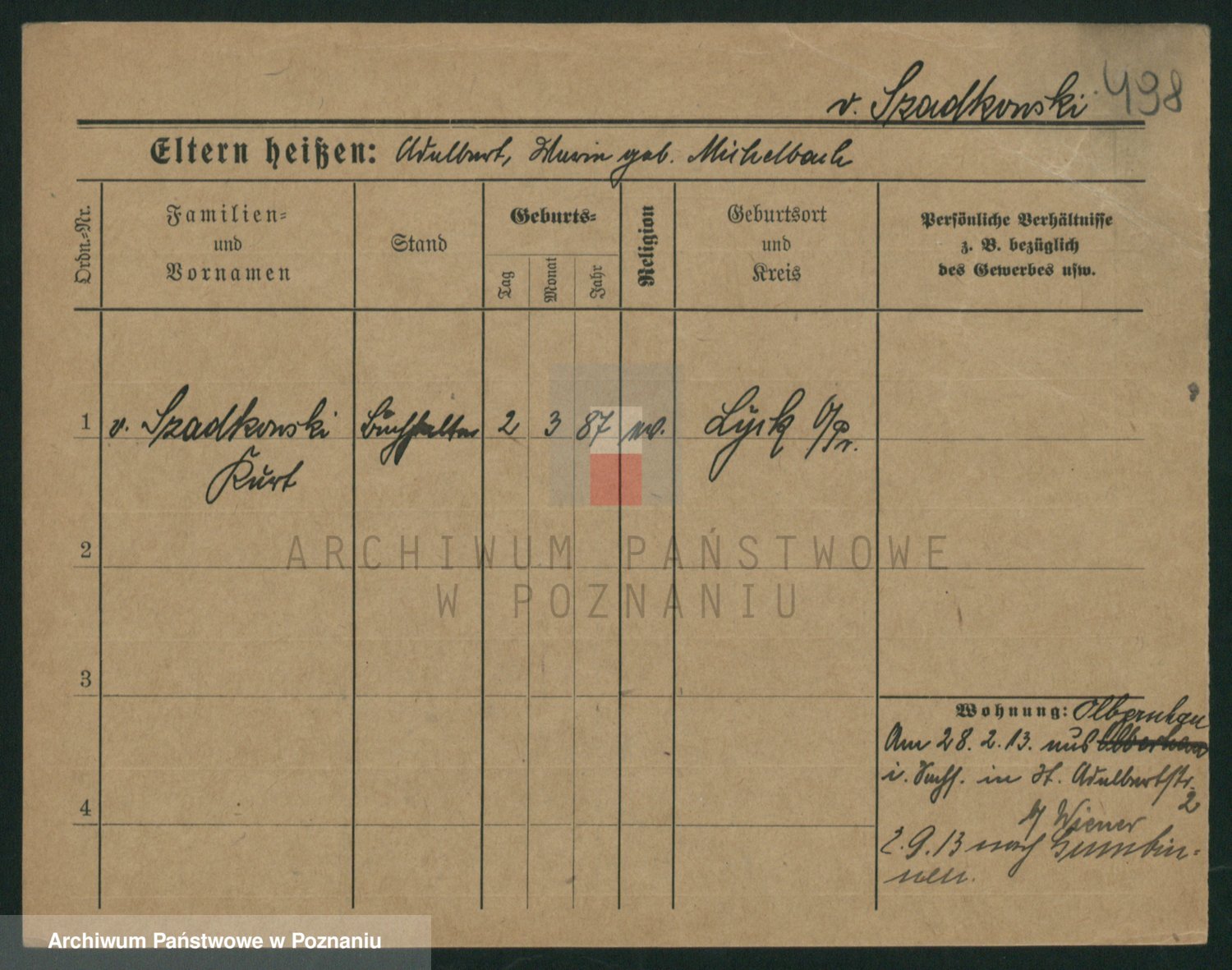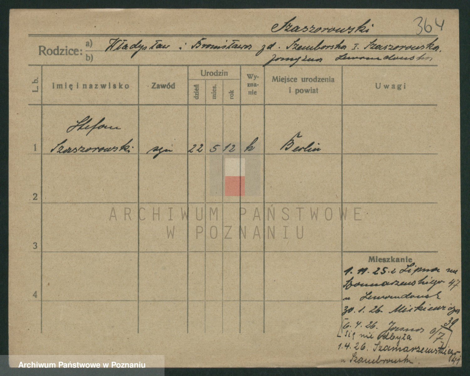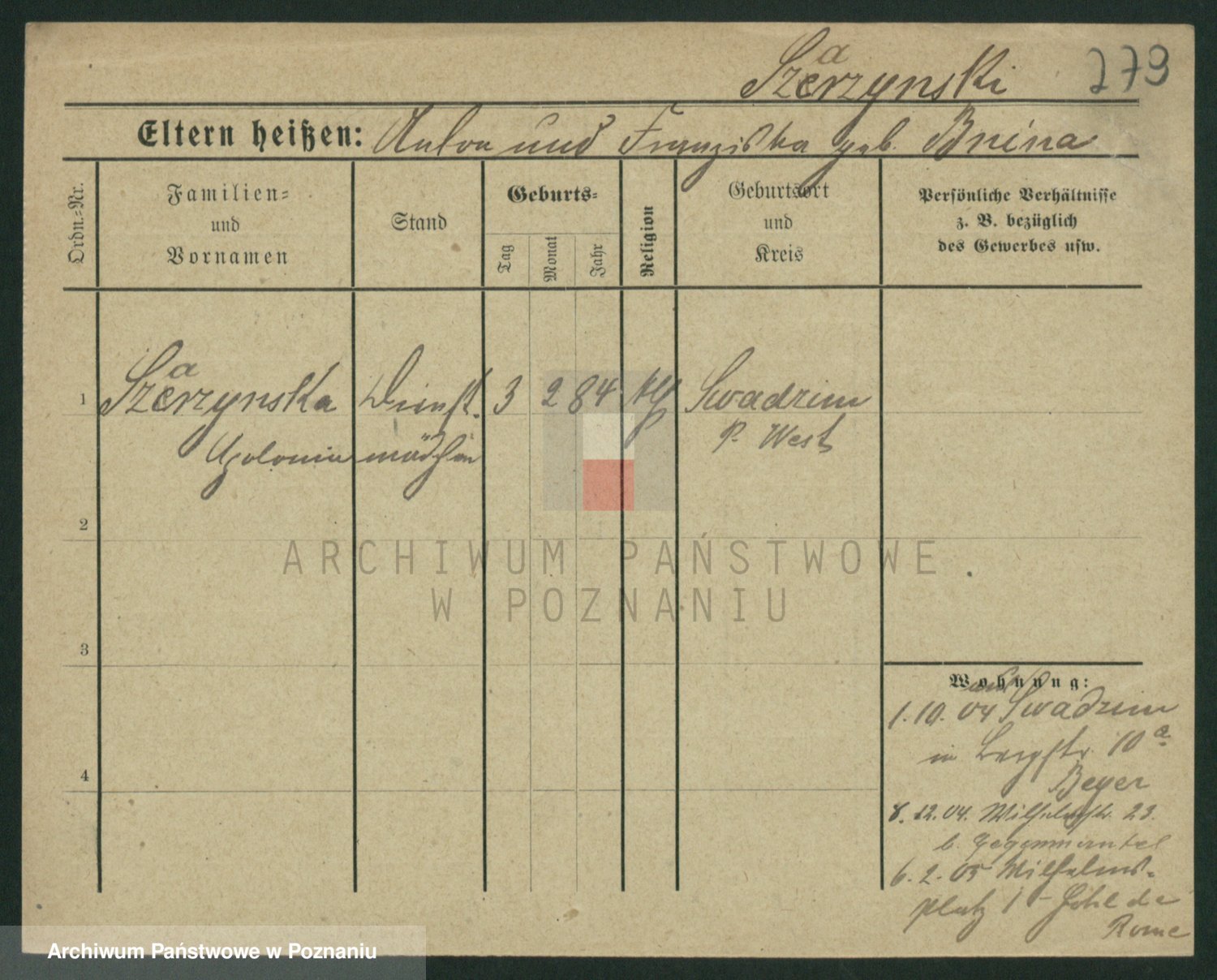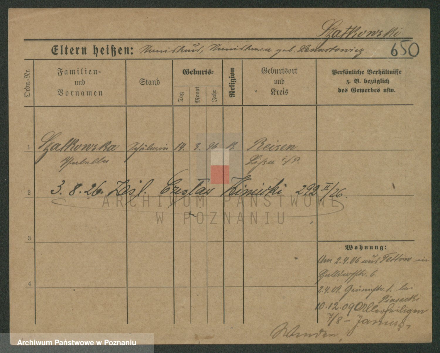 Szawelski z.d. Schwandke I voto Popowska, Emilie