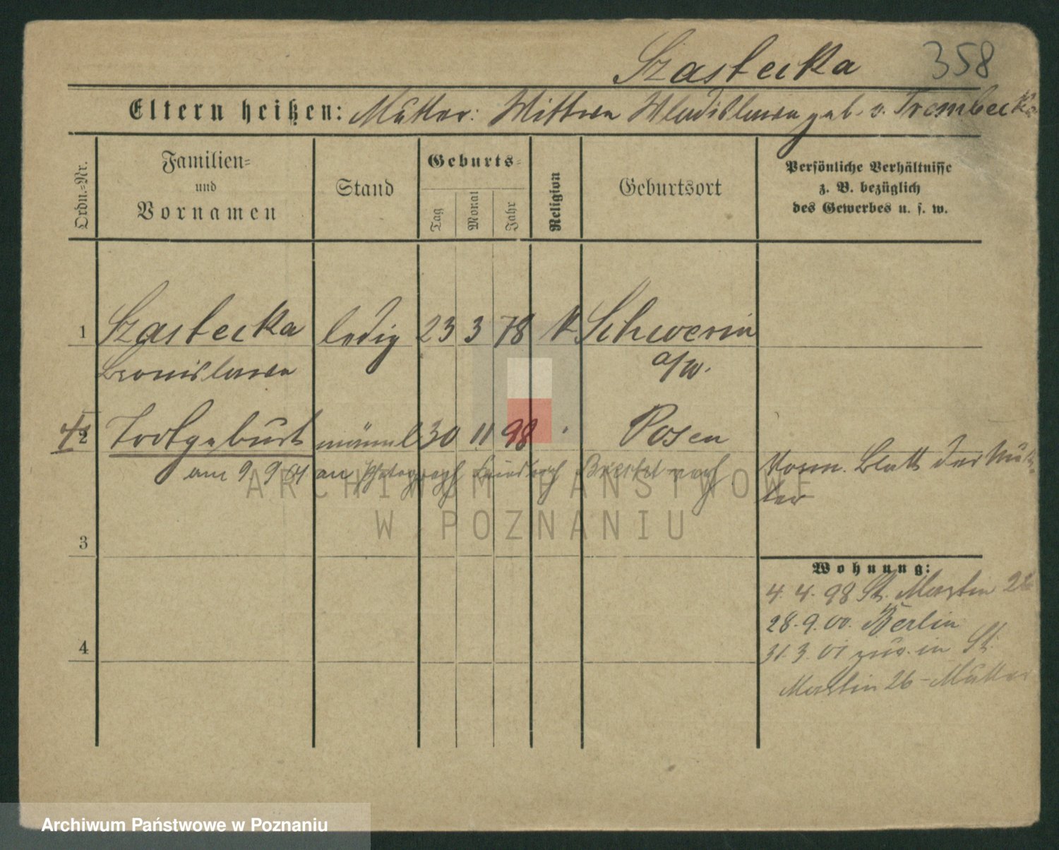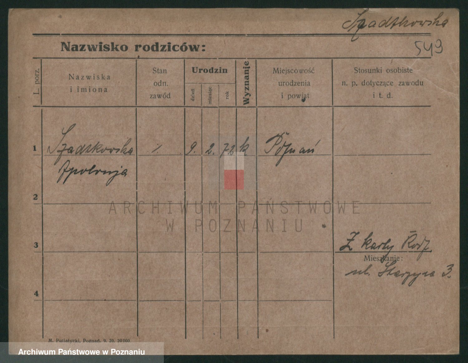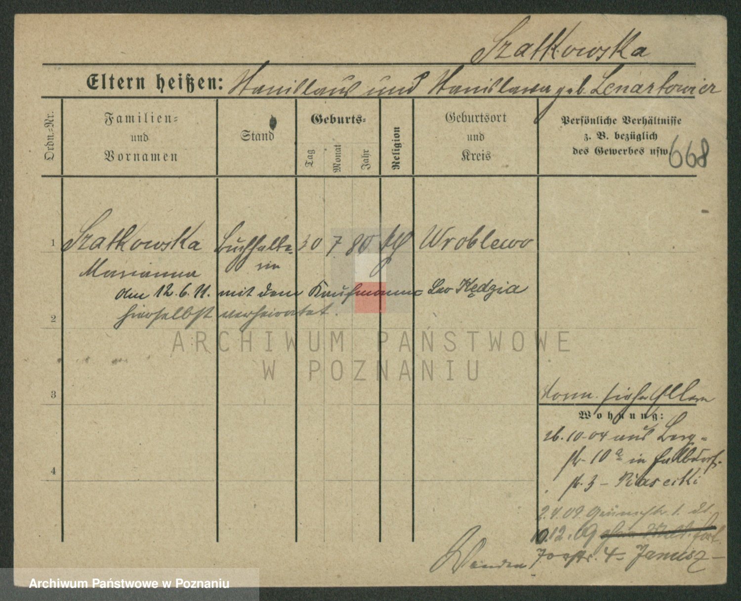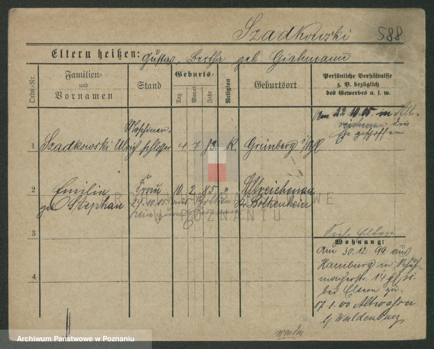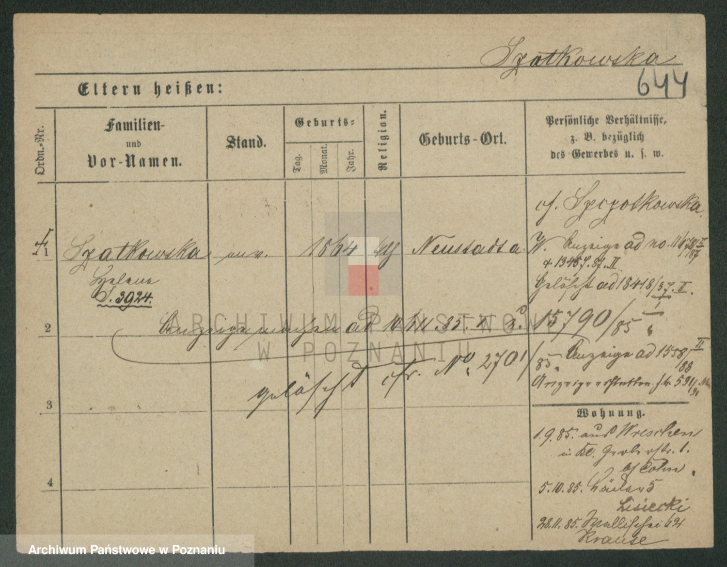 Szawelski z.d. Schwandke I voto Popowska, Emilie