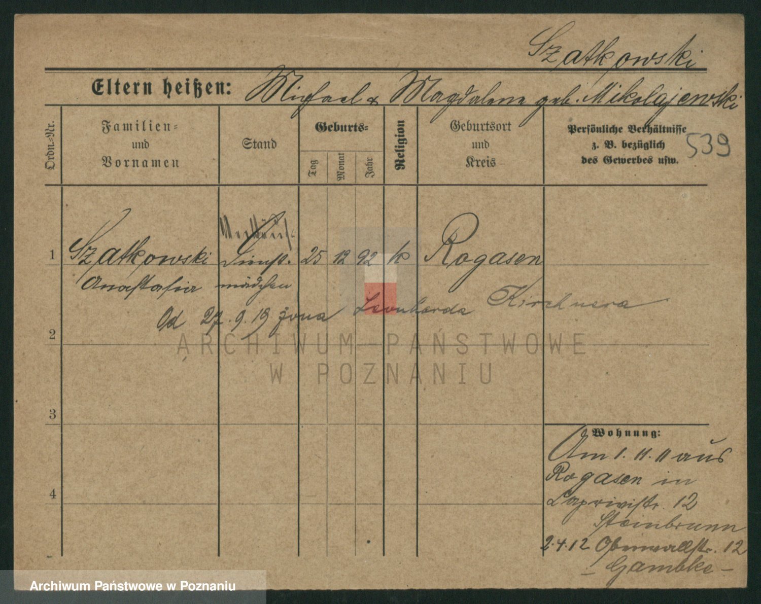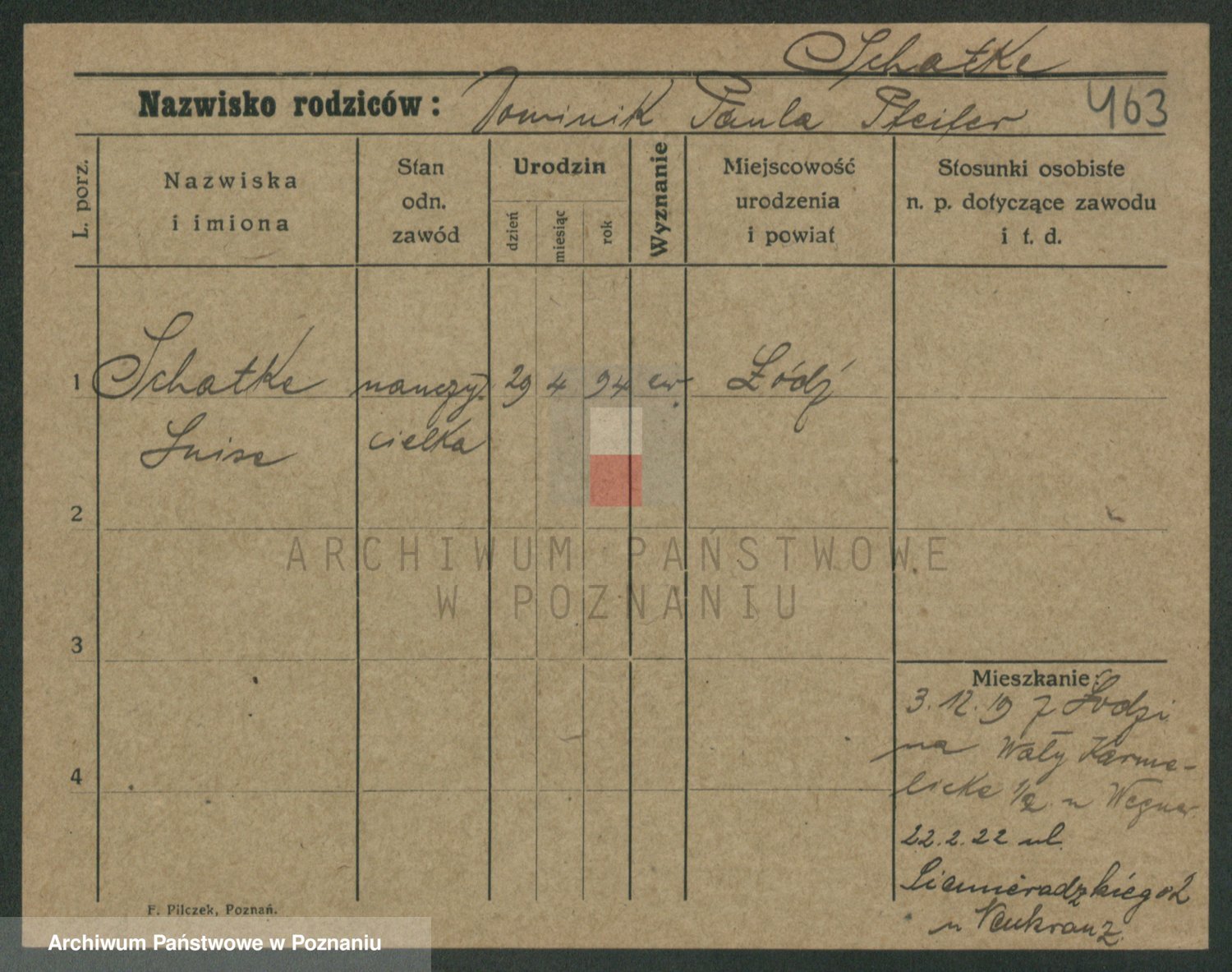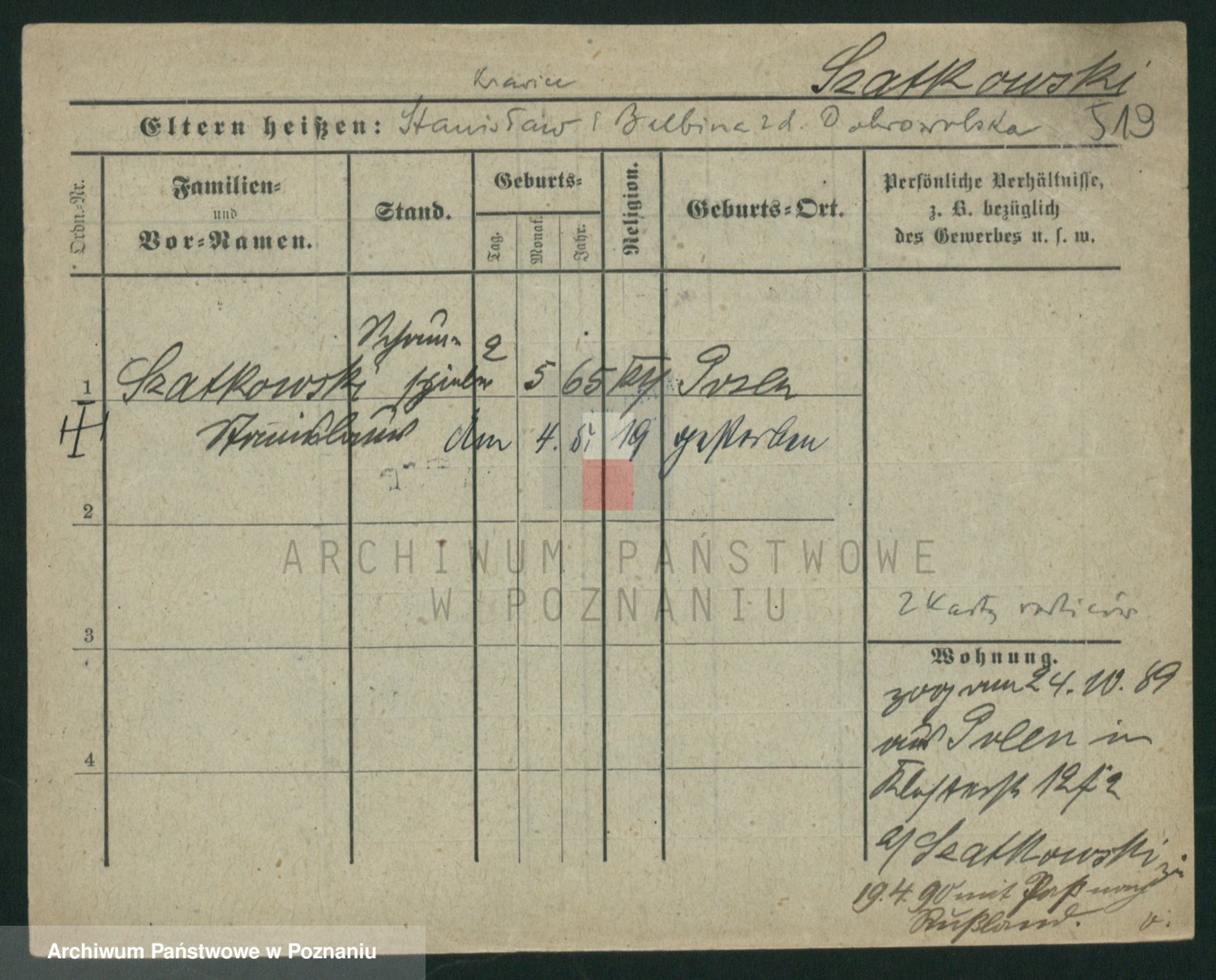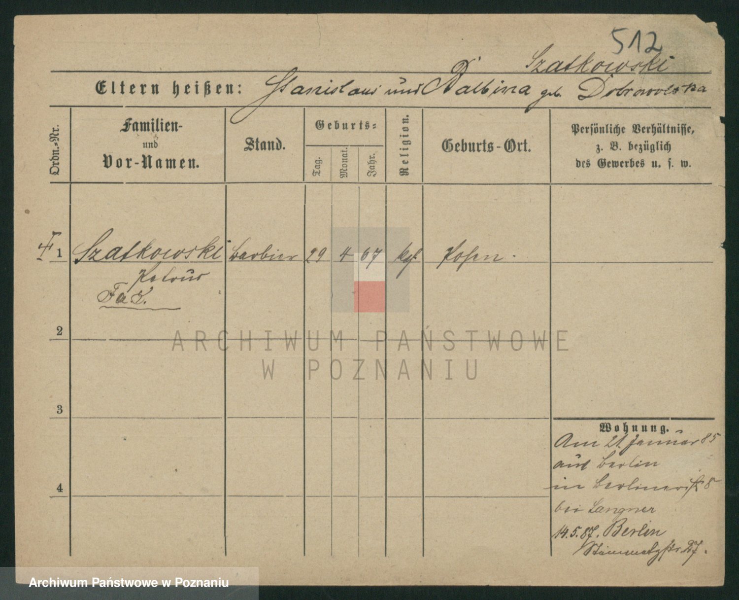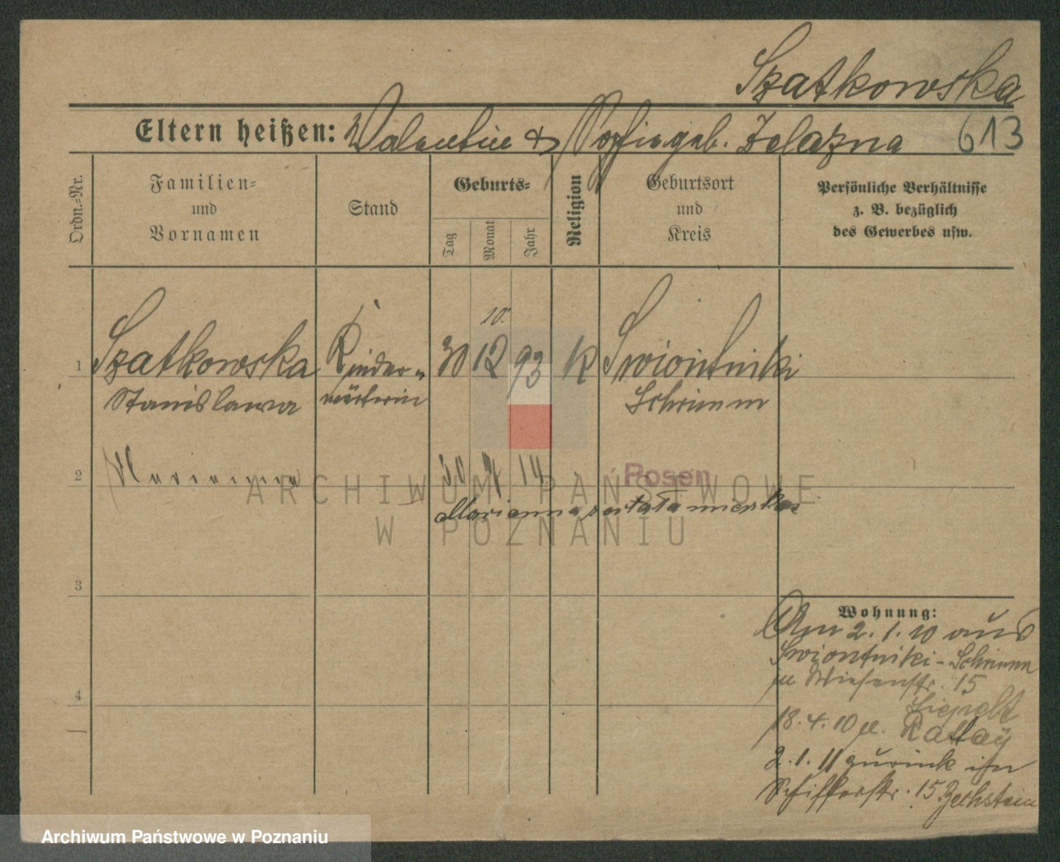 Szawelski z.d. Schwandke I voto Popowska, Emilie