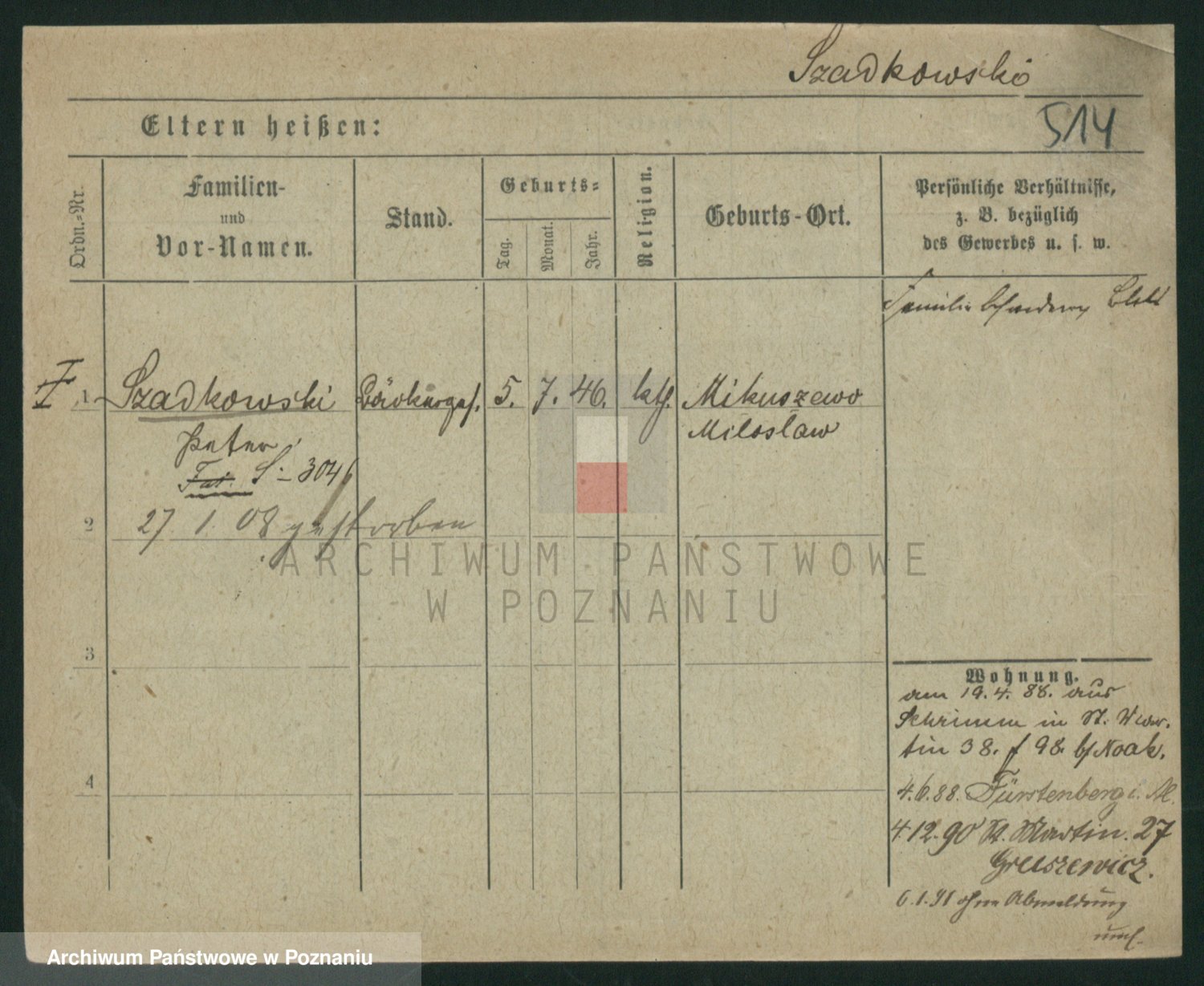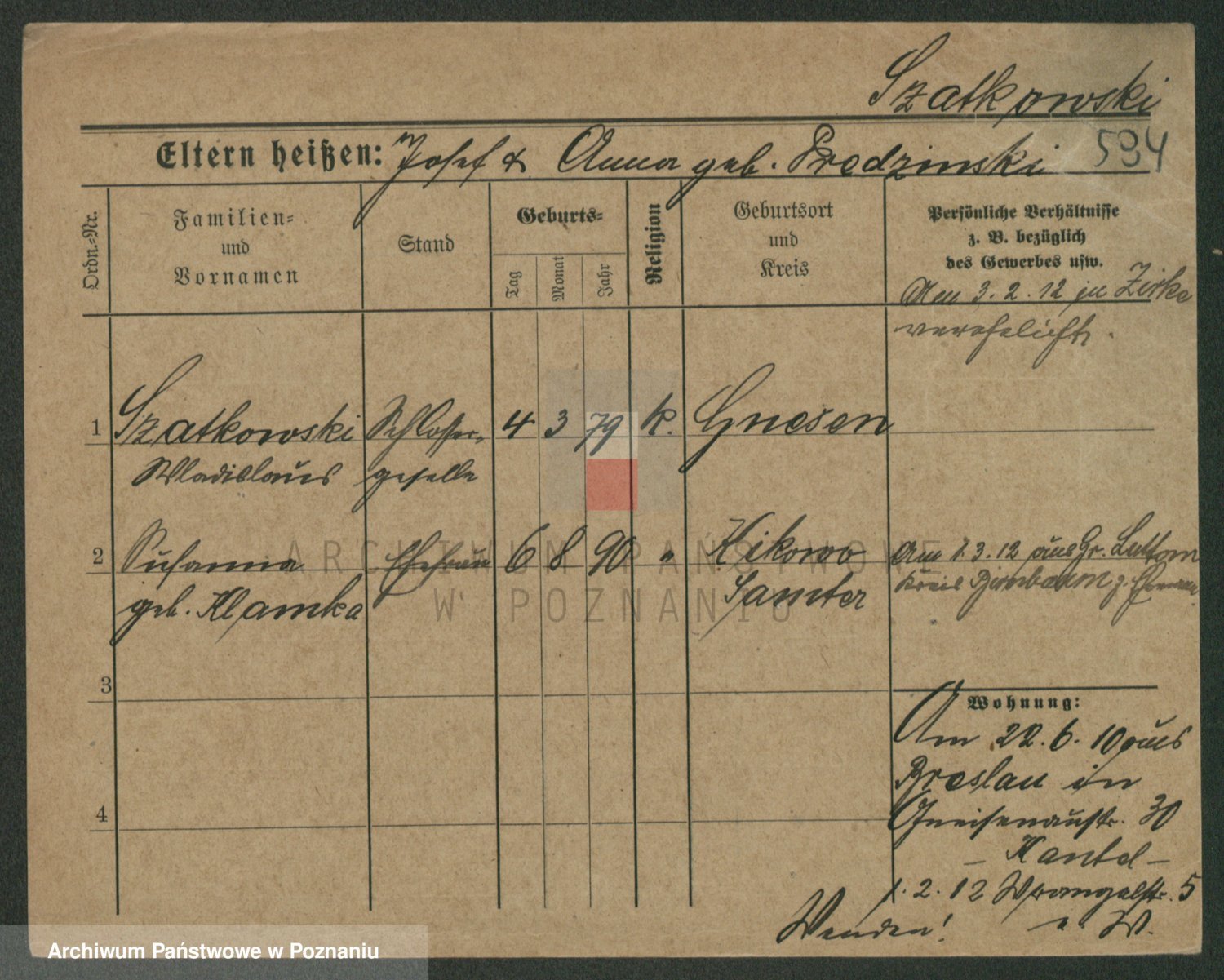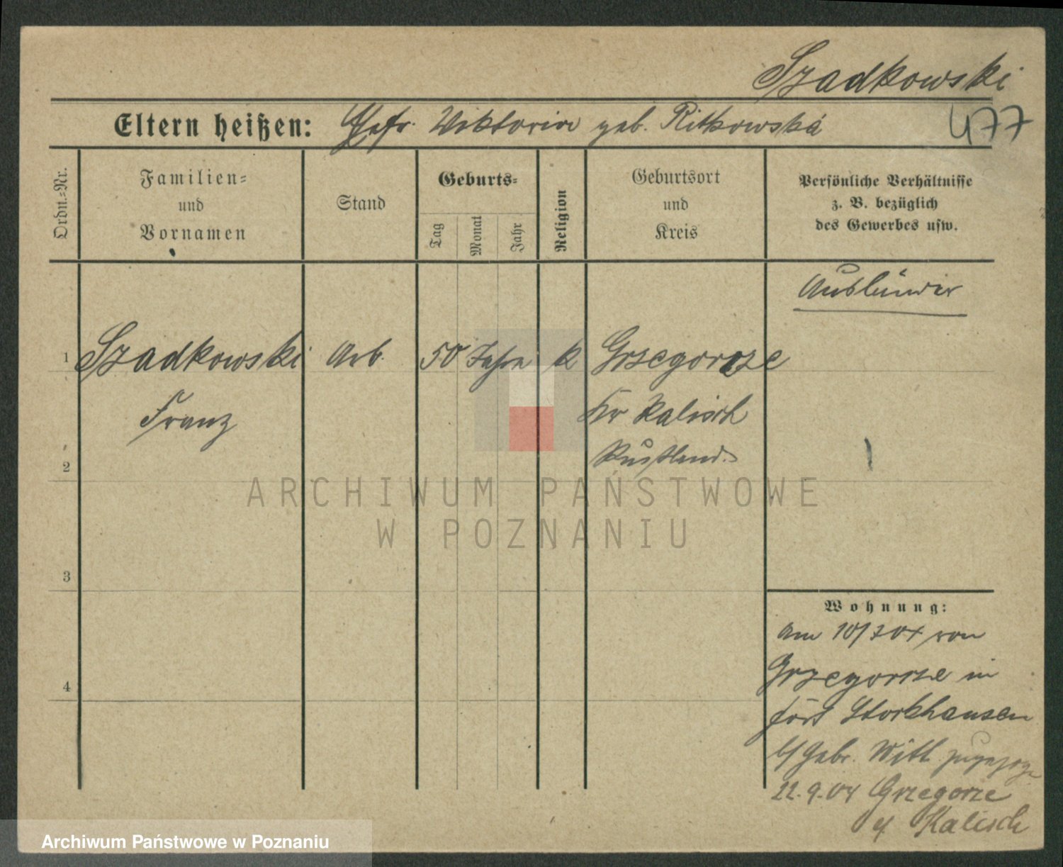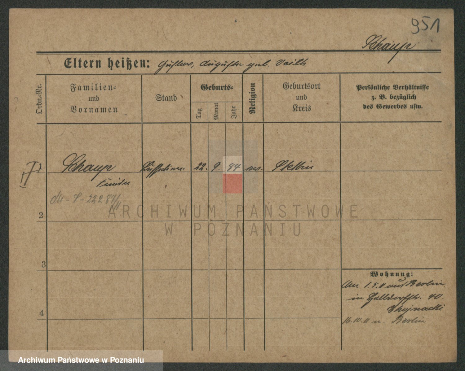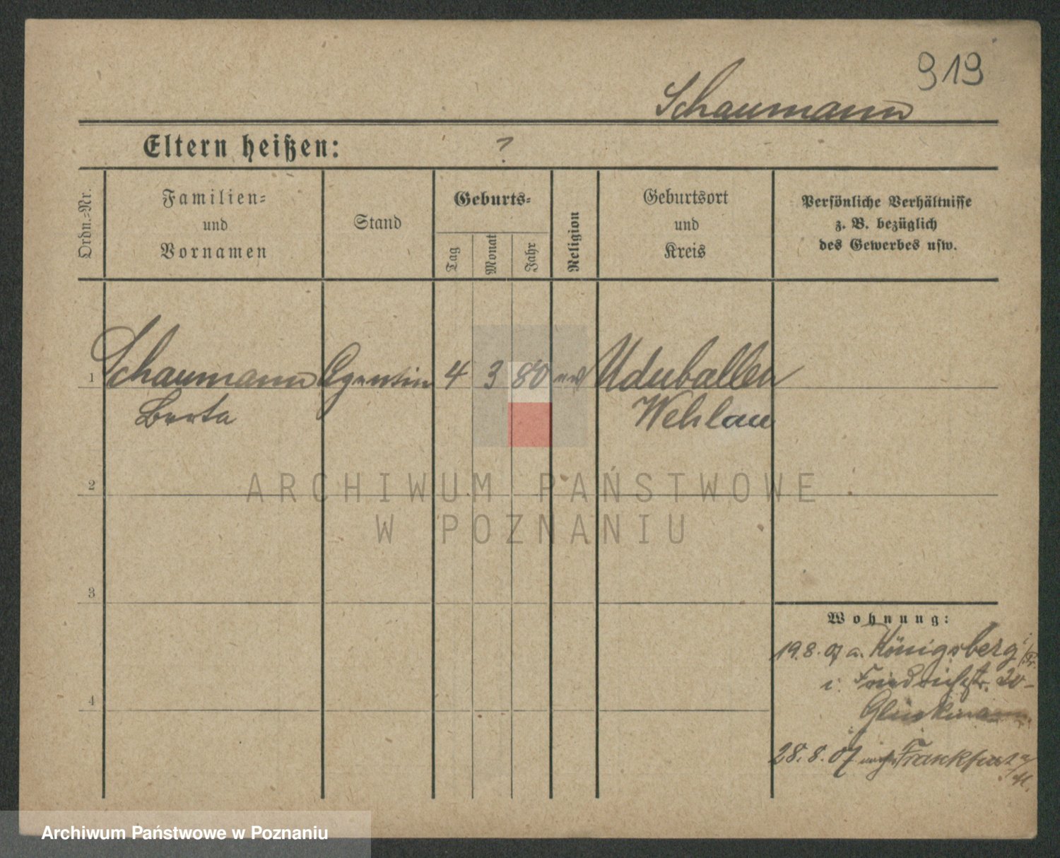 Szawelski z.d. Schwandke I voto Popowska, Emilie