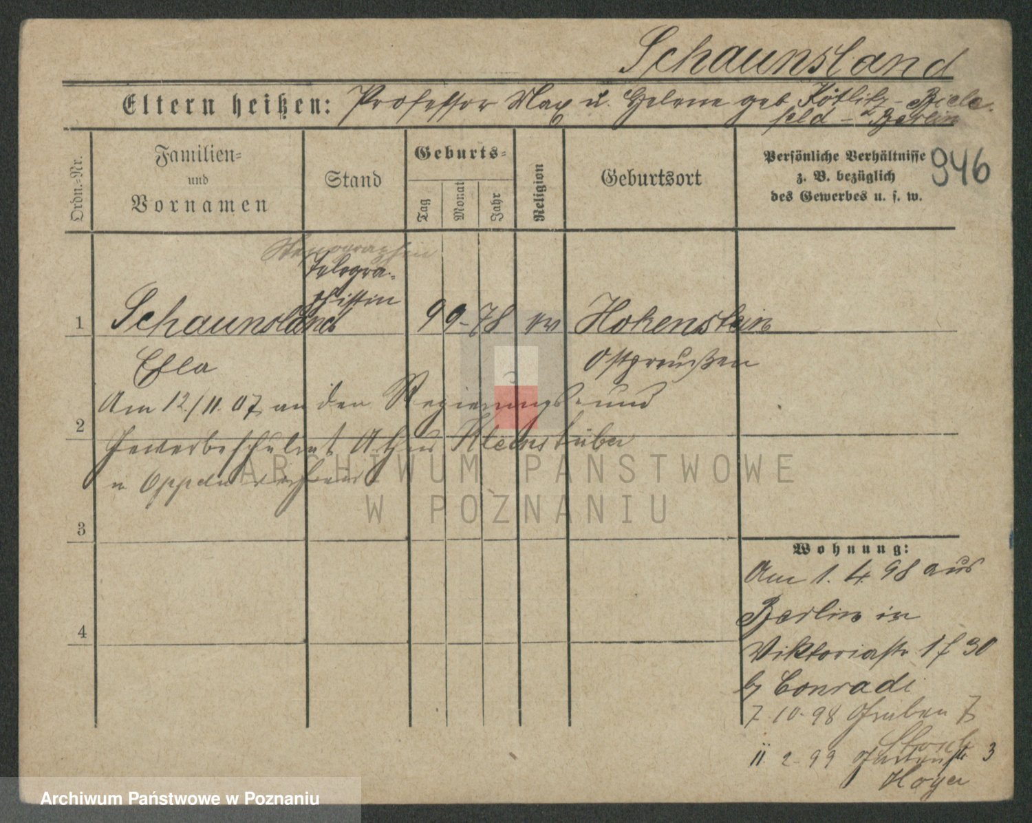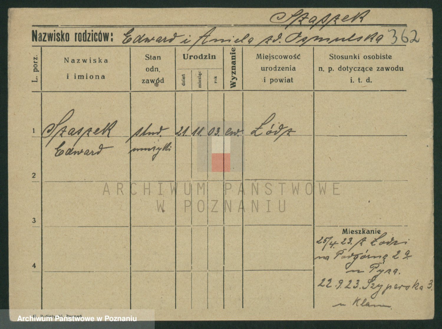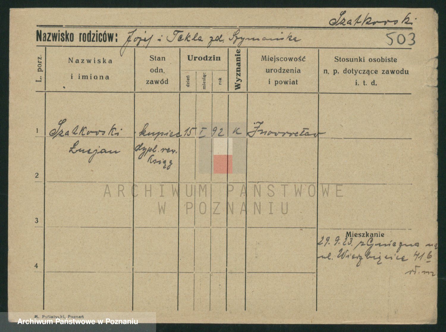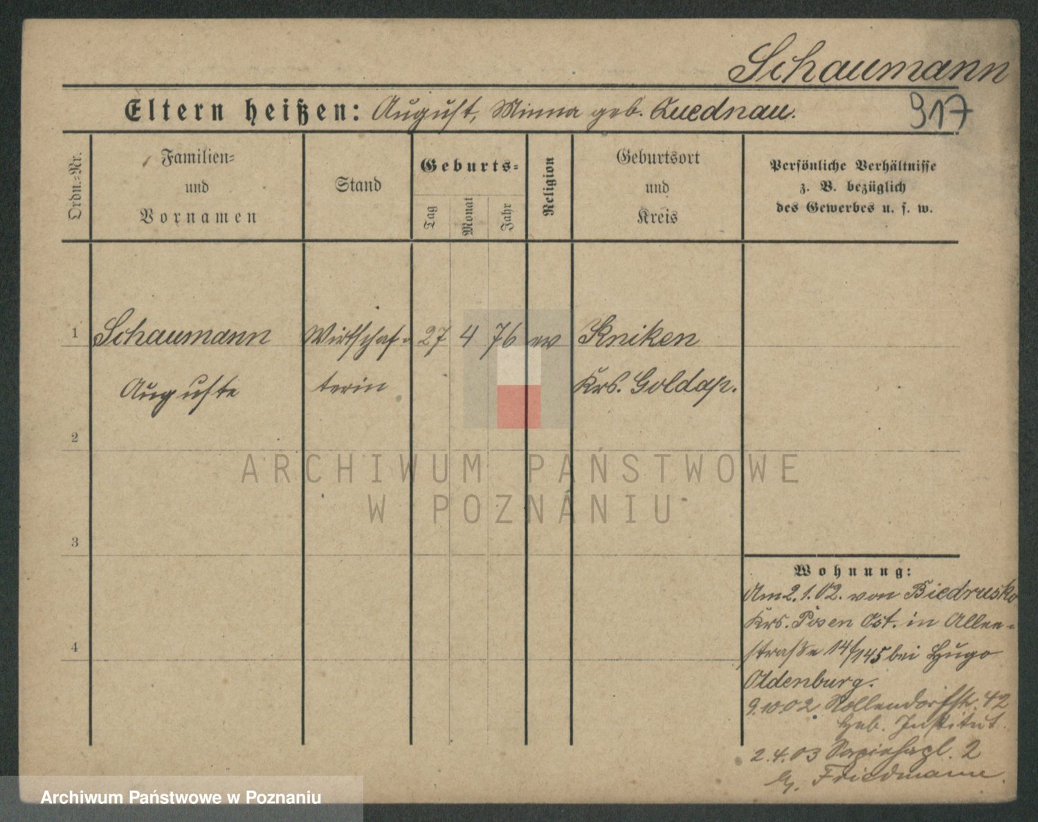 Szawelski z.d. Schwandke I voto Popowska, Emilie