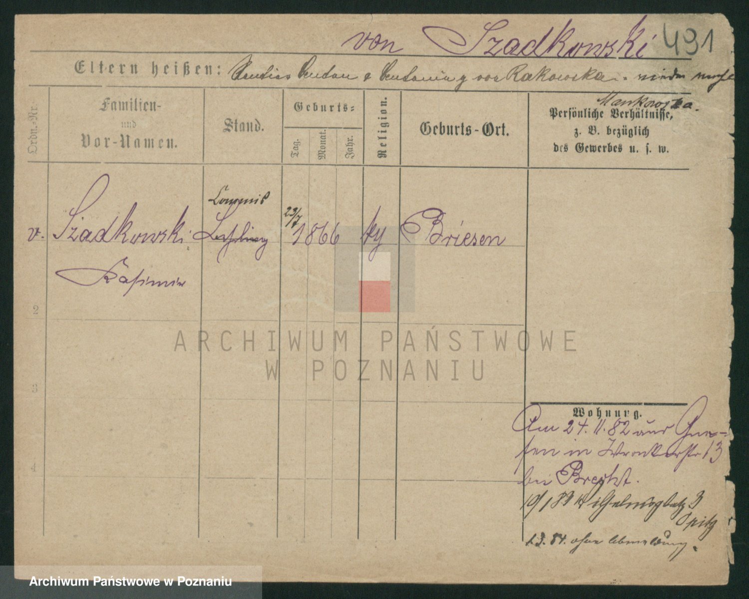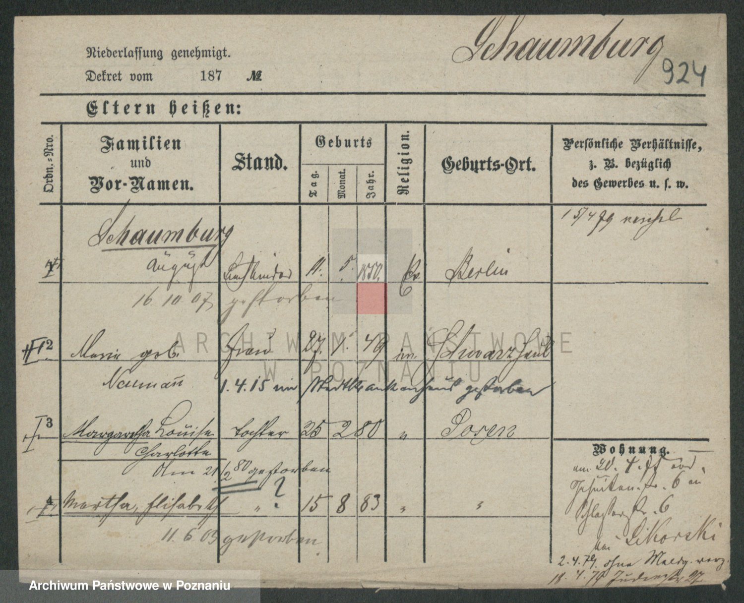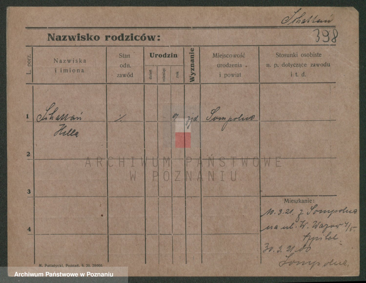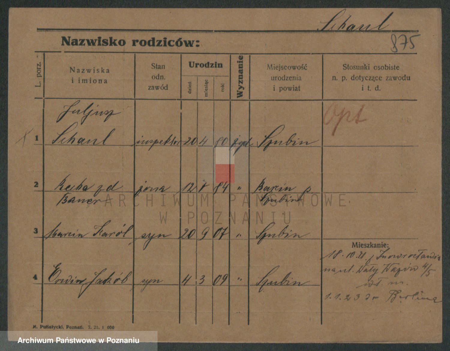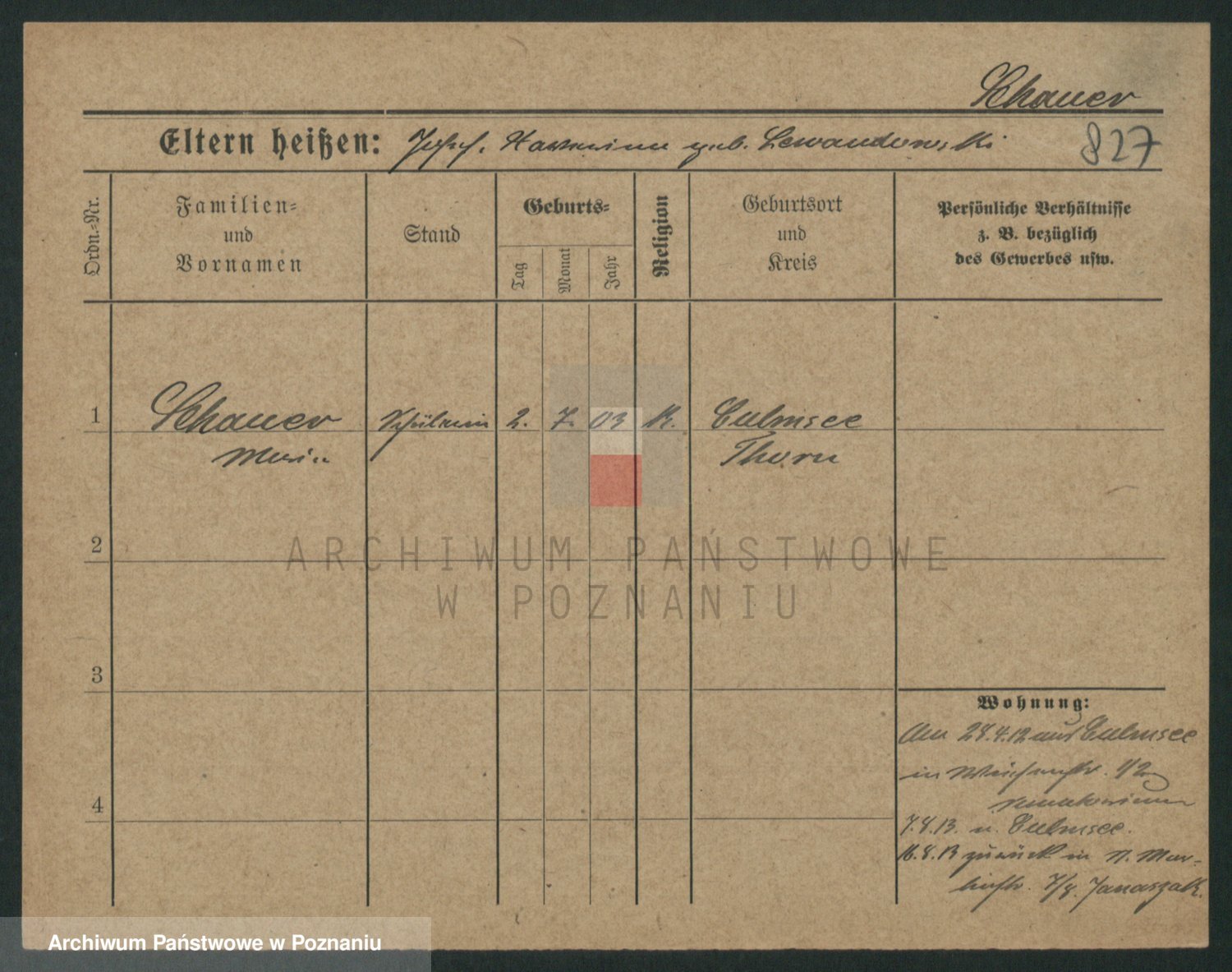 Szawelski z.d. Schwandke I voto Popowska, Emilie