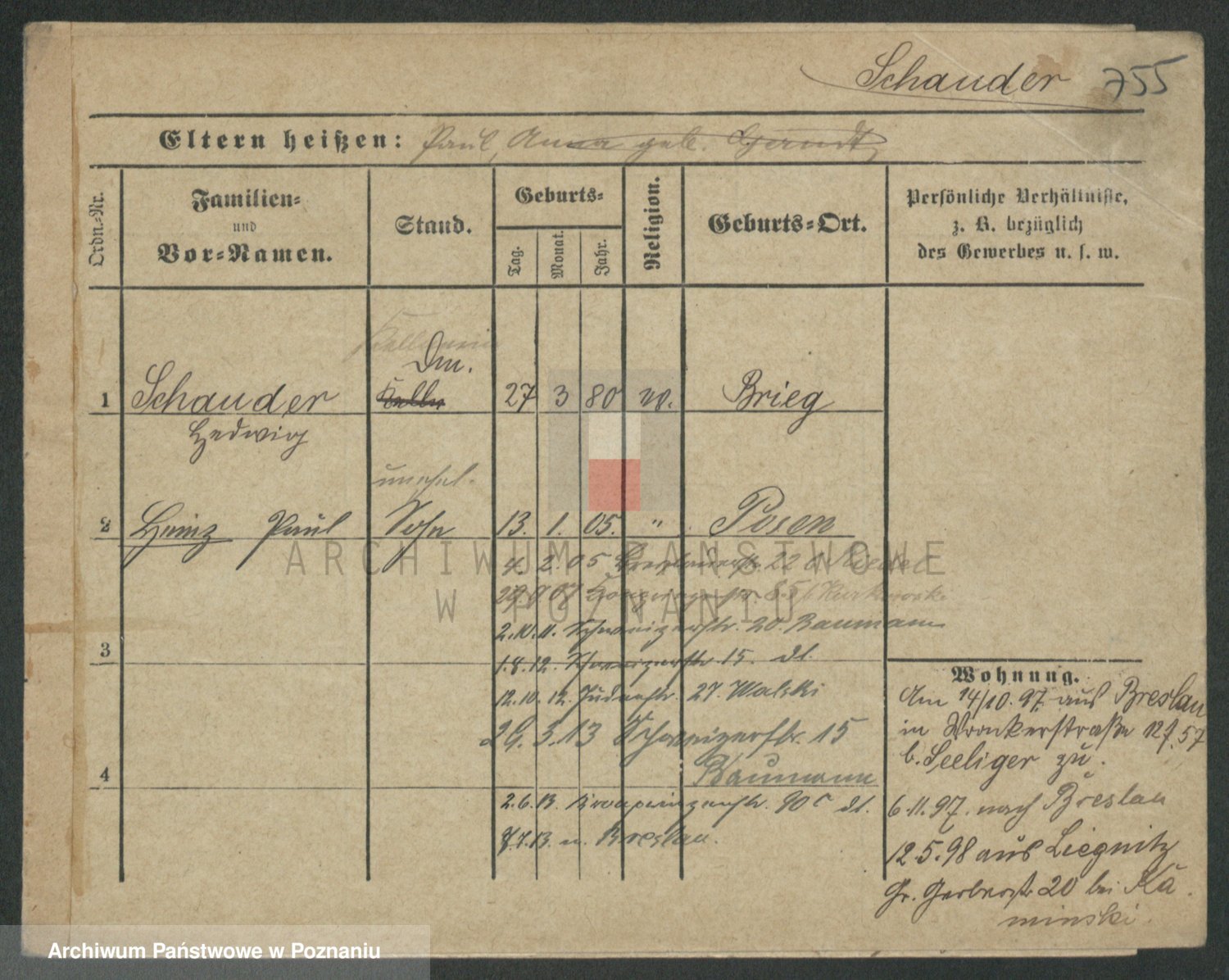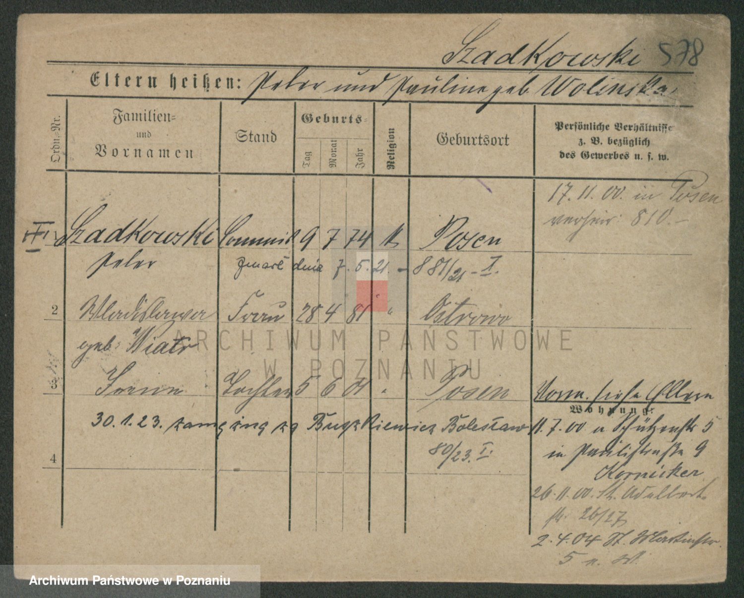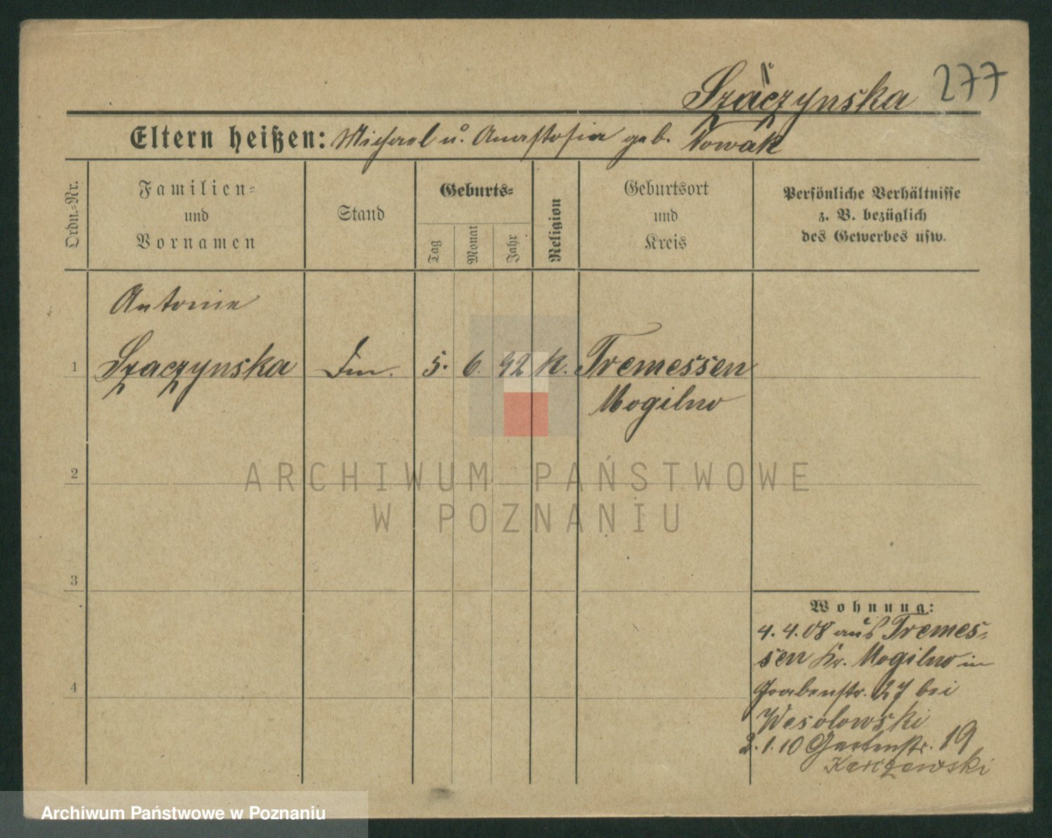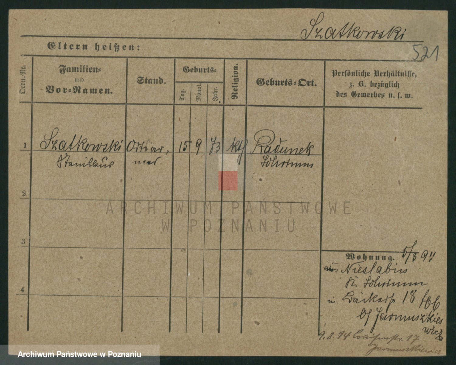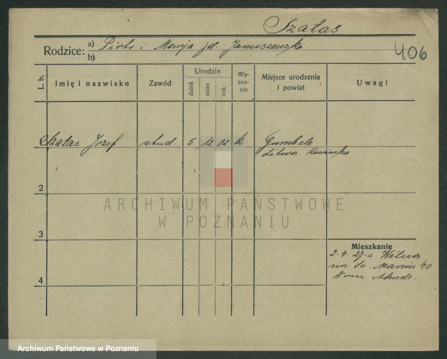 Szawelski z.d. Schwandke I voto Popowska, Emilie