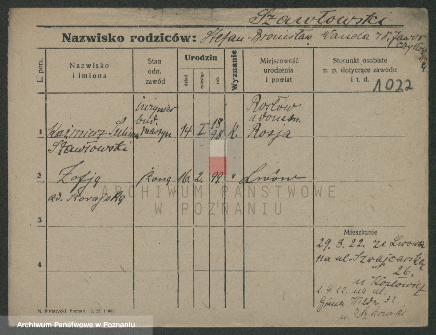 karta: 1022