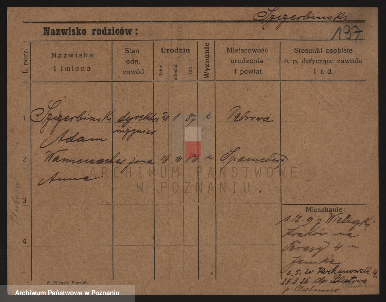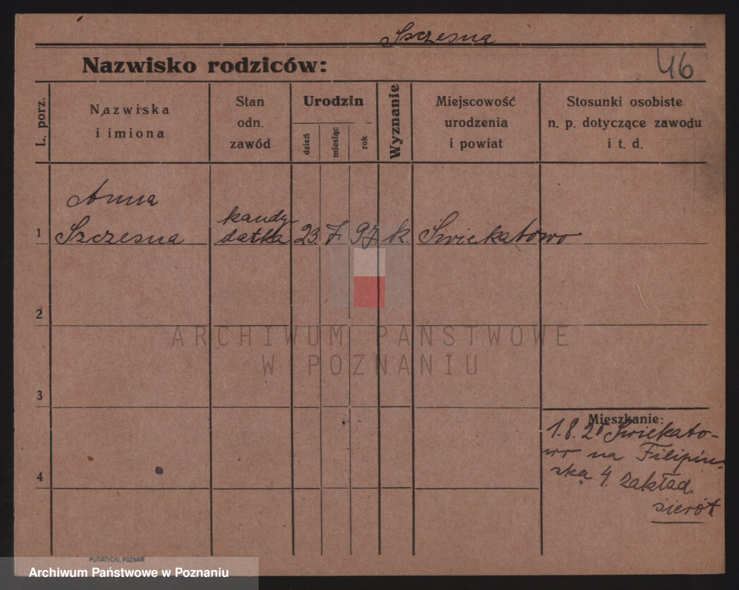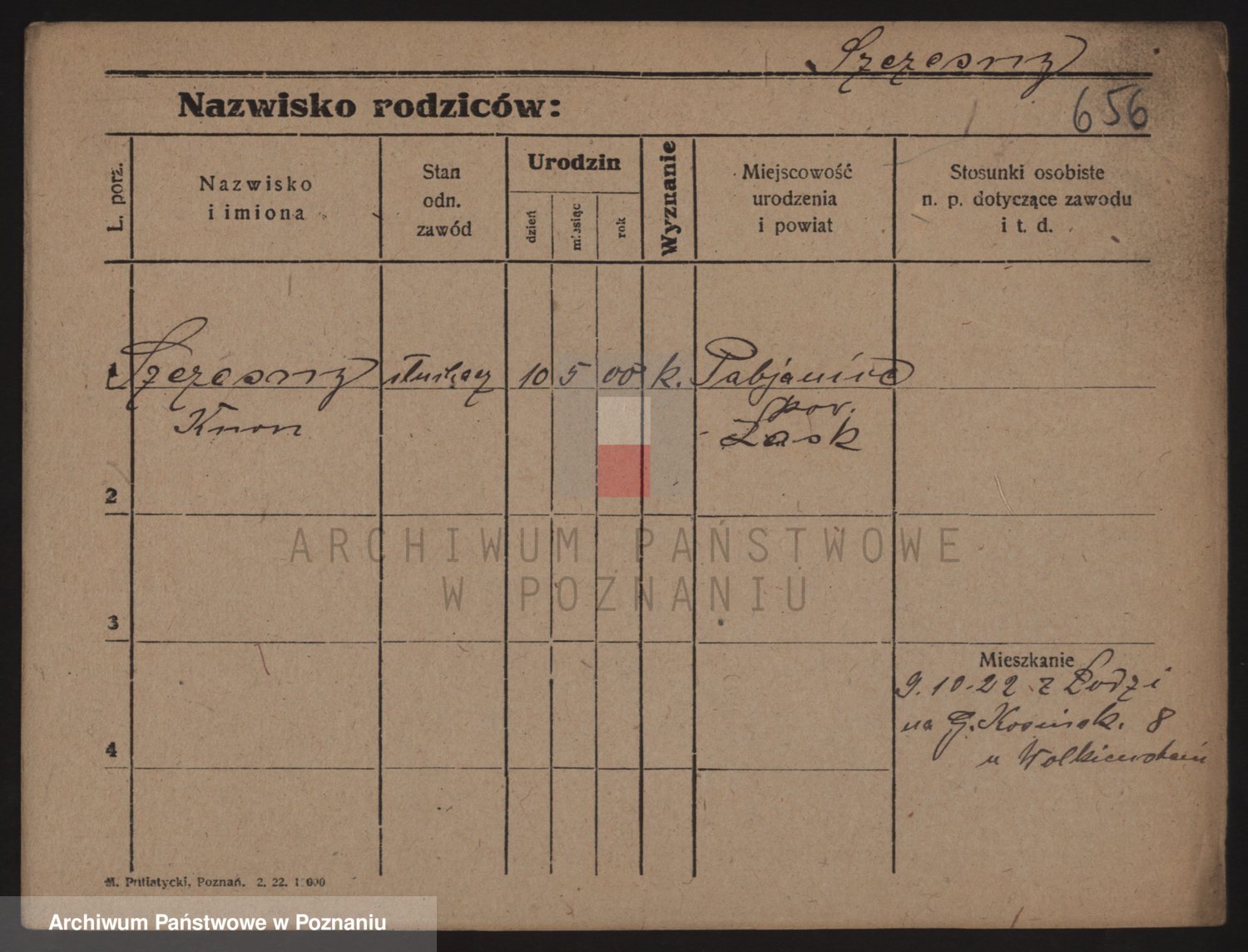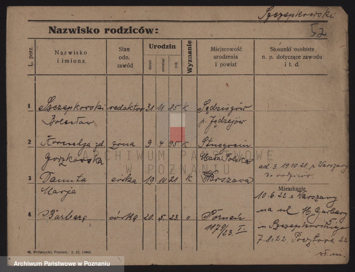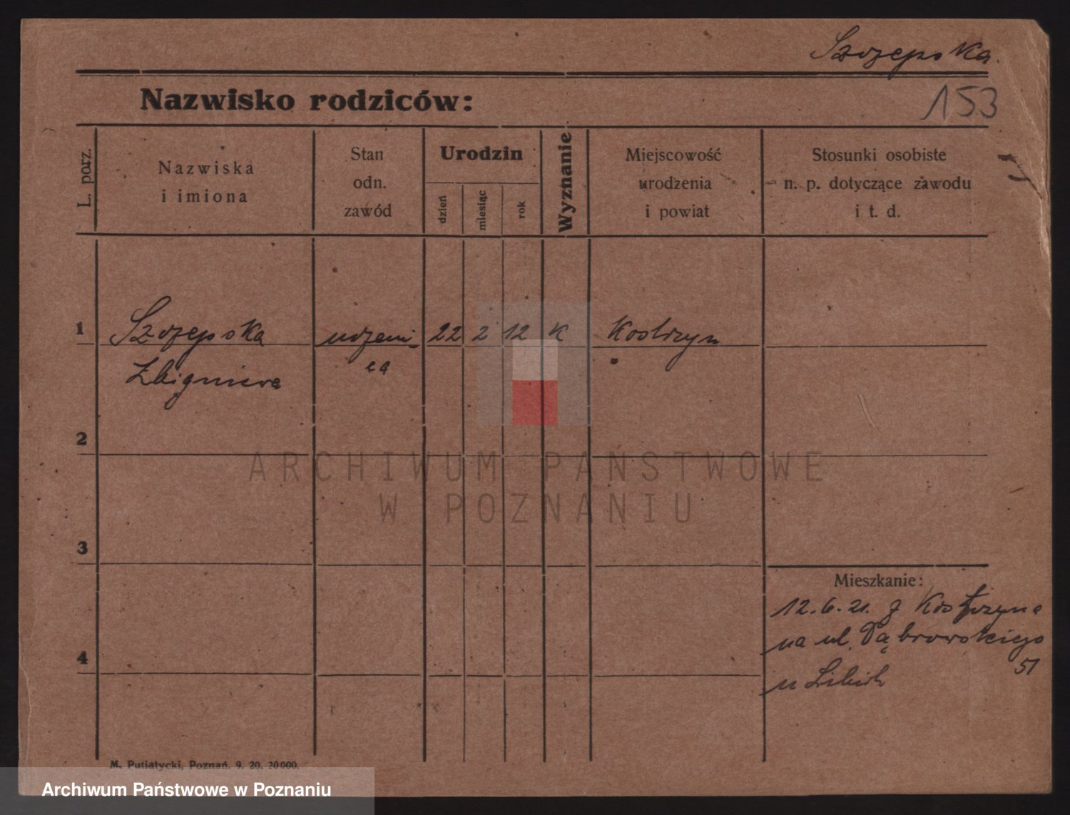 Podgląd karty osobowej dostępny jest po kliknięciu na nazwisko lub ikonkę karty. Można dokonywać powiększenia (ikony na górze) lub przechodzić między kolejnymi skanami (strzałki po bokach).