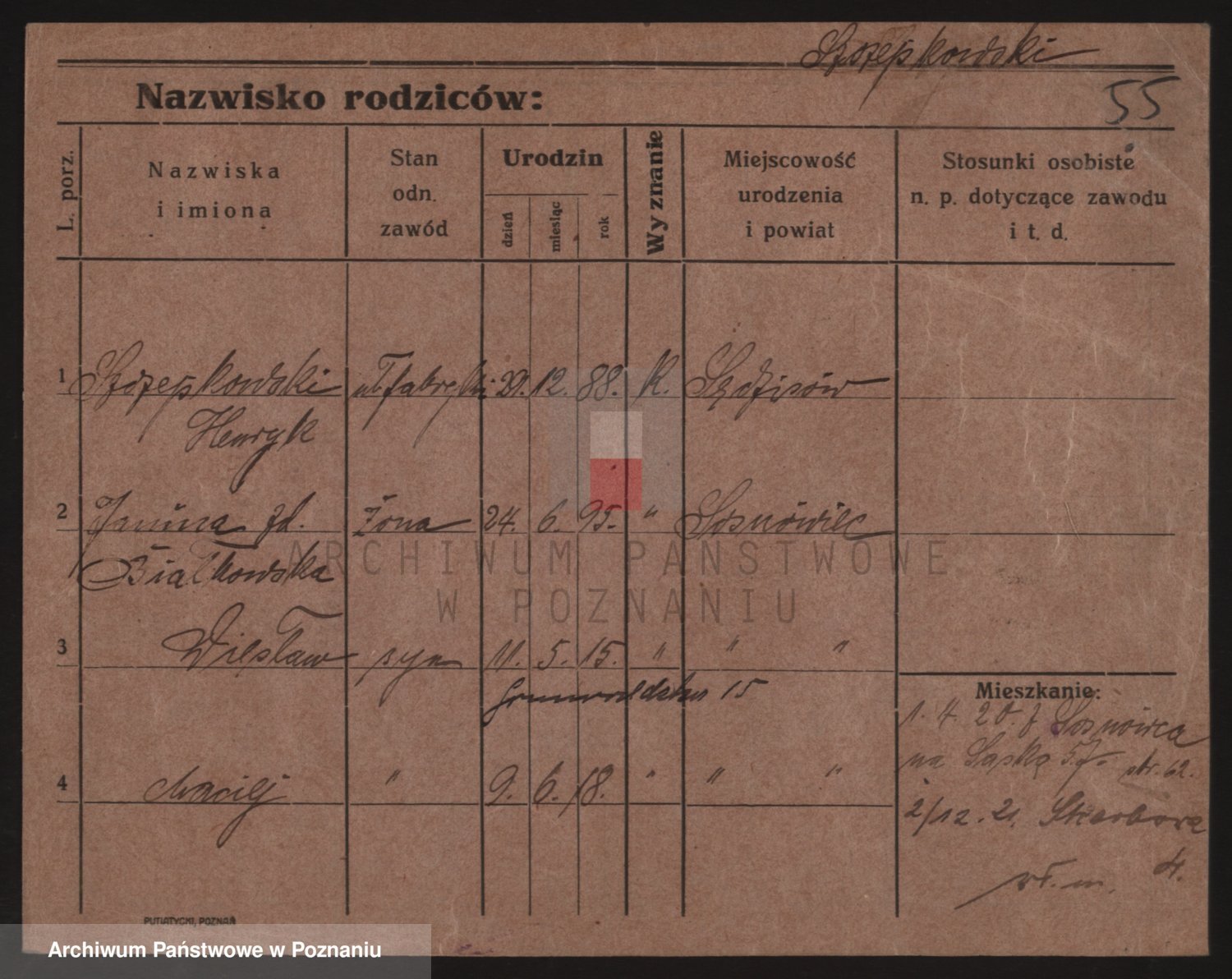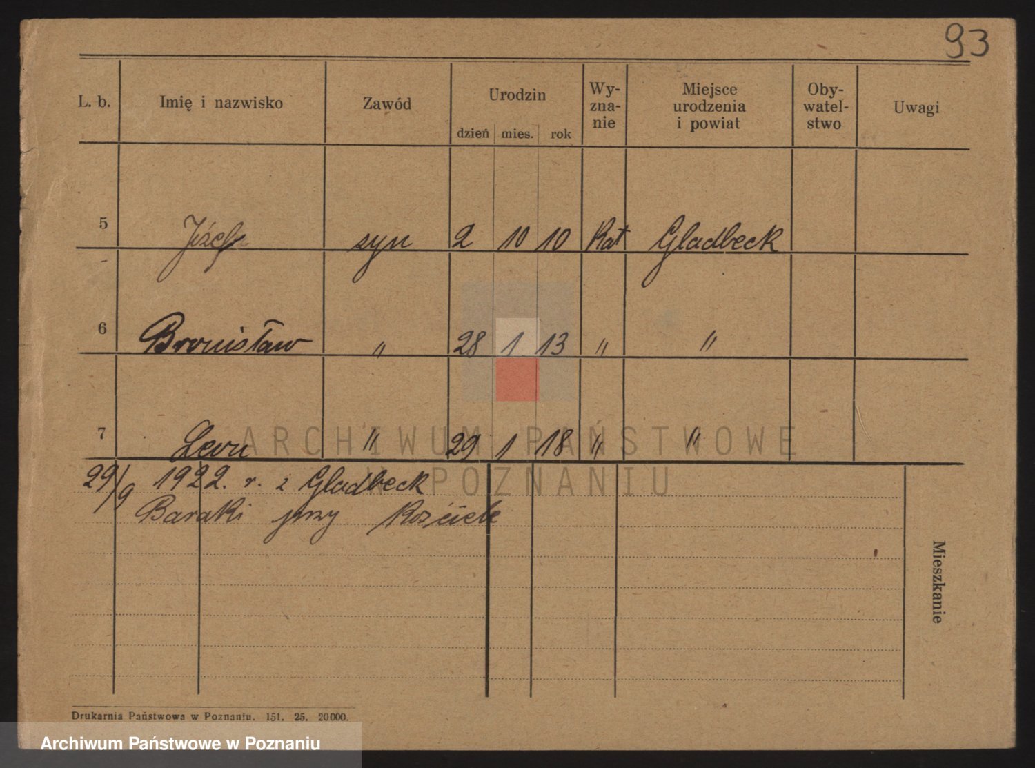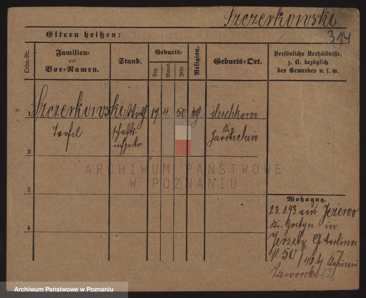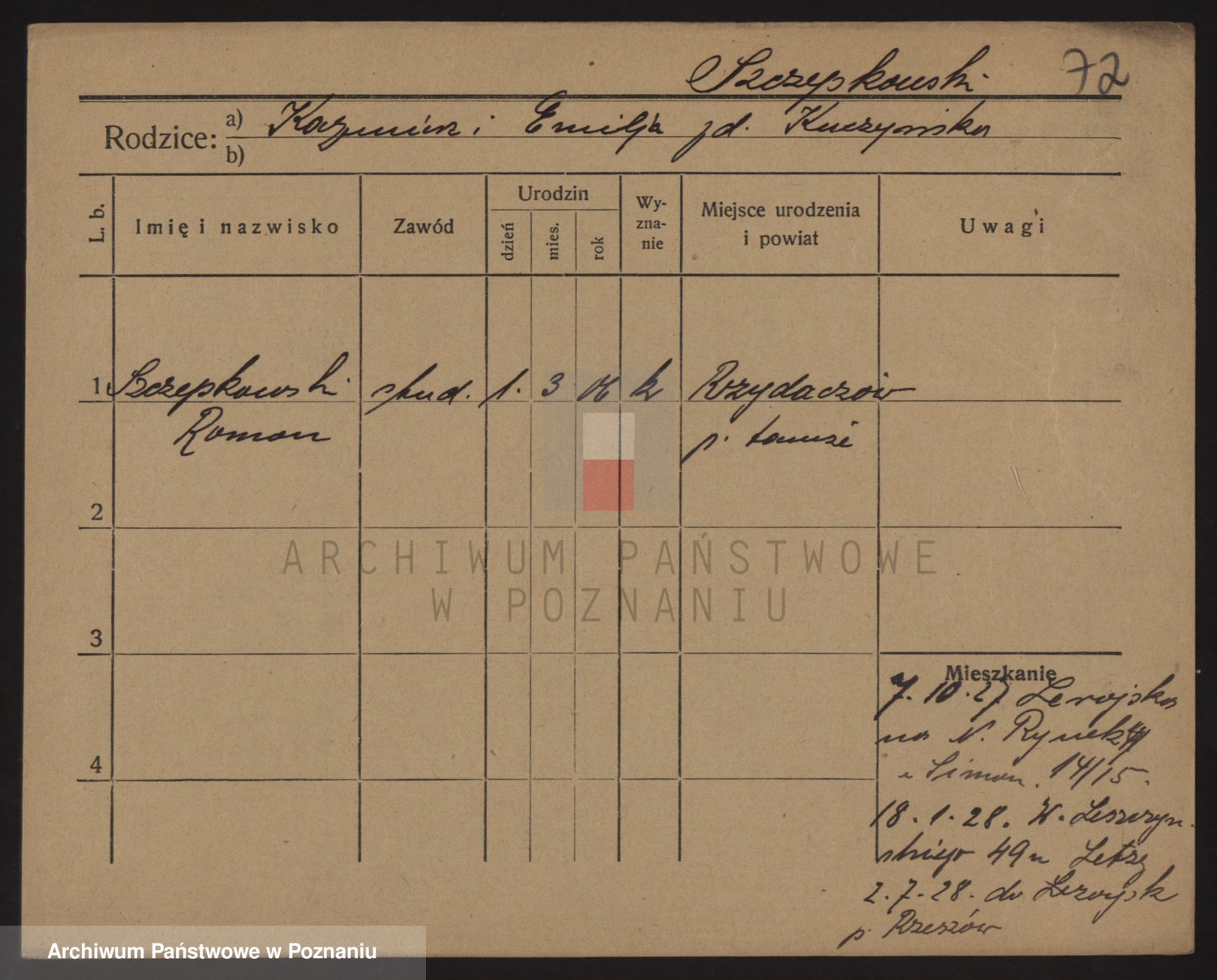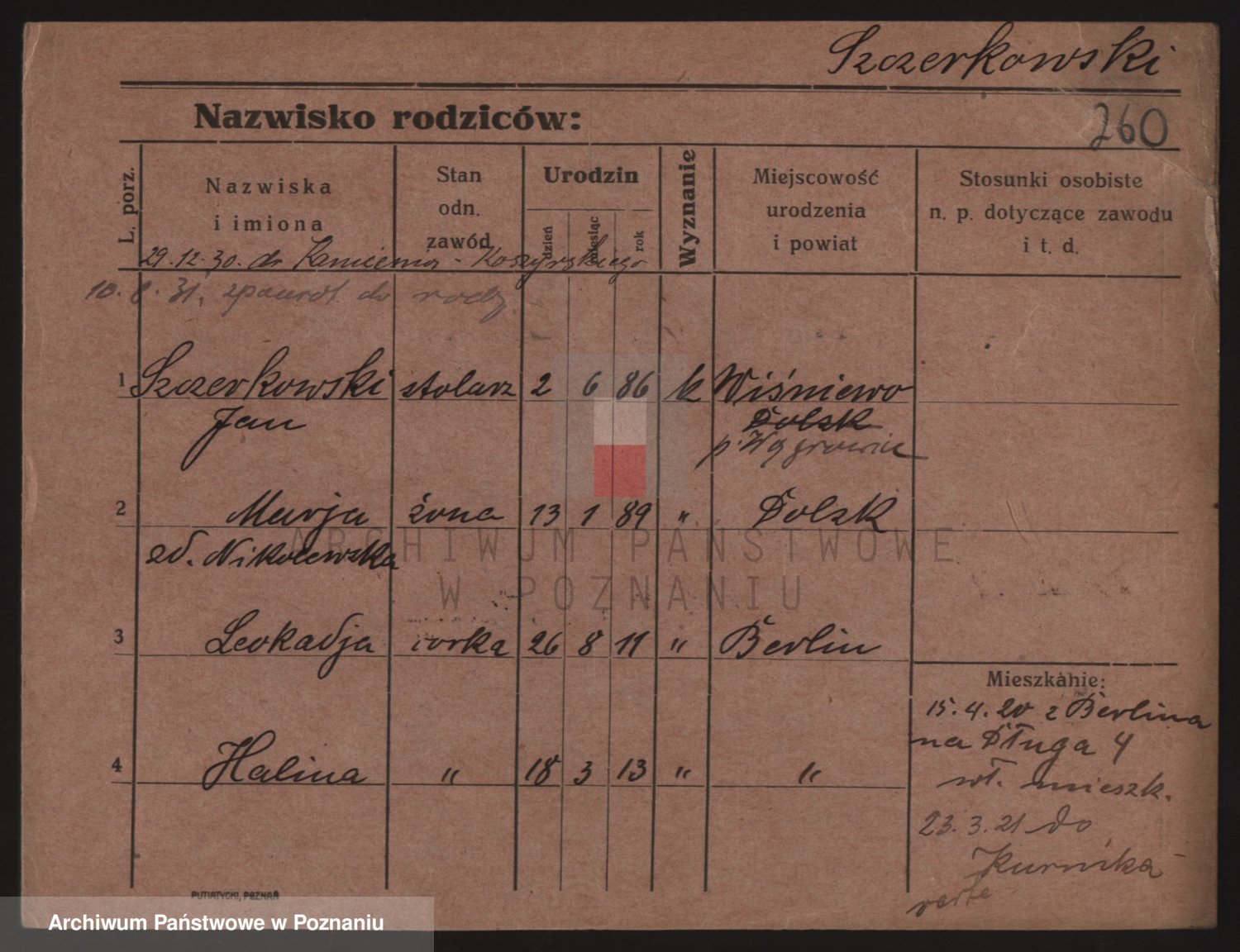 Podgląd karty osobowej dostępny jest po kliknięciu na nazwisko lub ikonkę karty. Można dokonywać powiększenia (ikony na górze) lub przechodzić między kolejnymi skanami (strzałki po bokach).