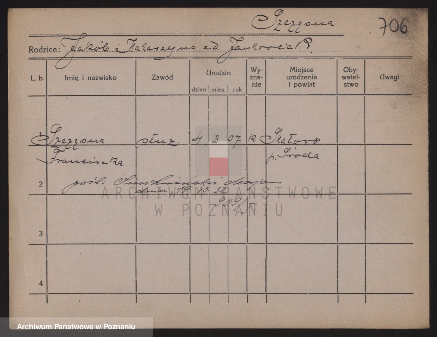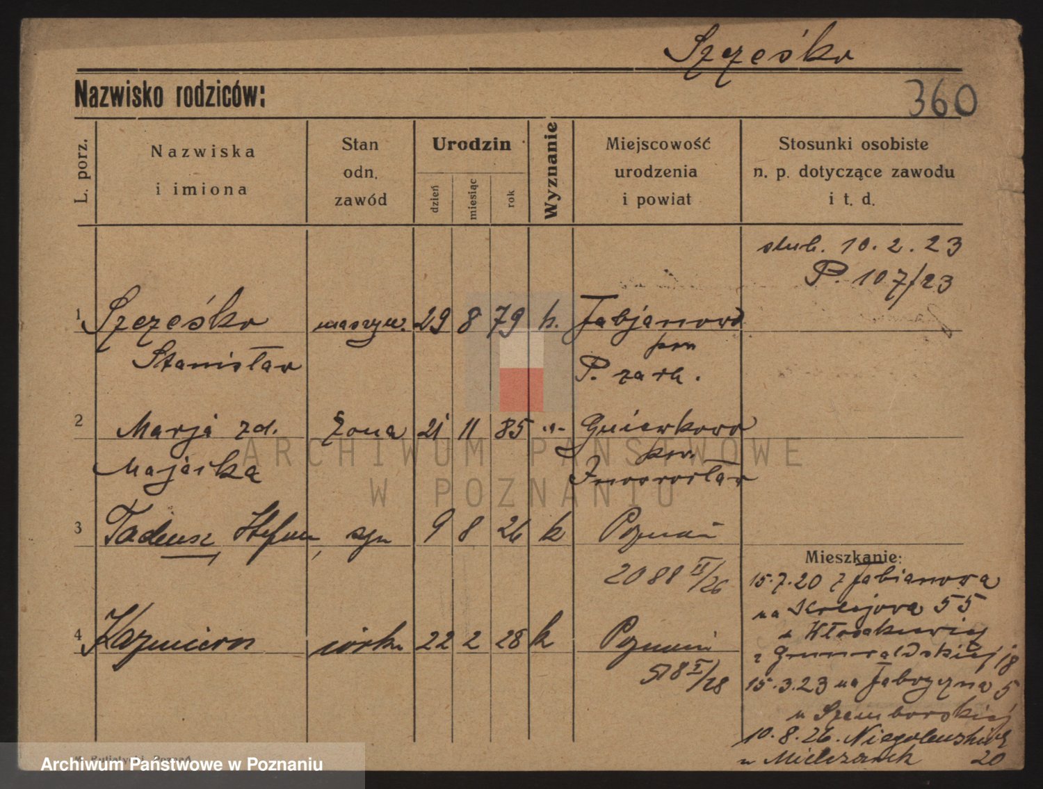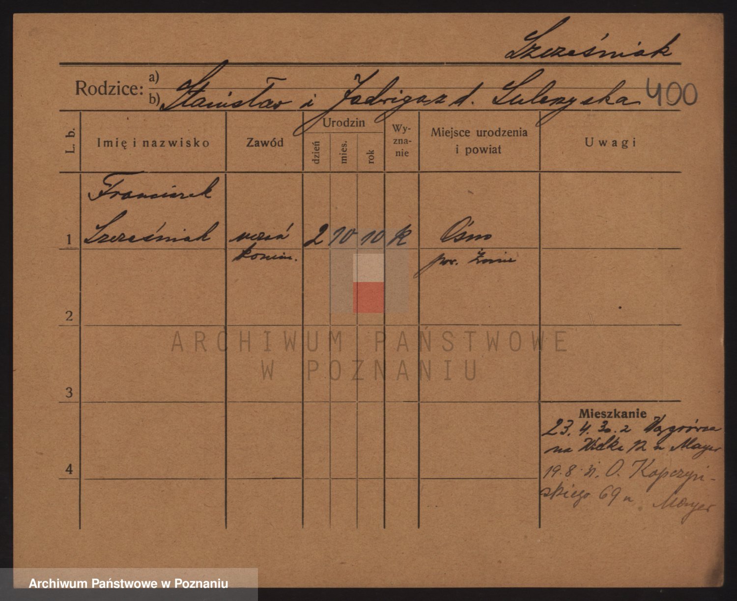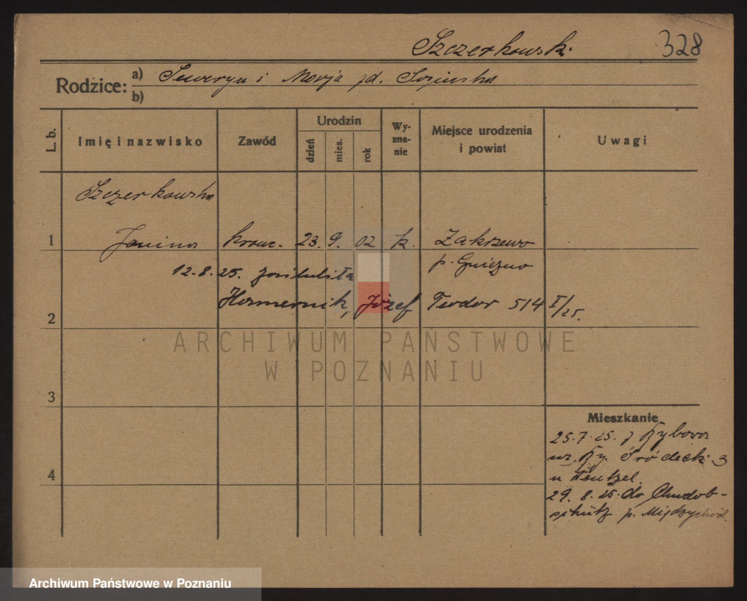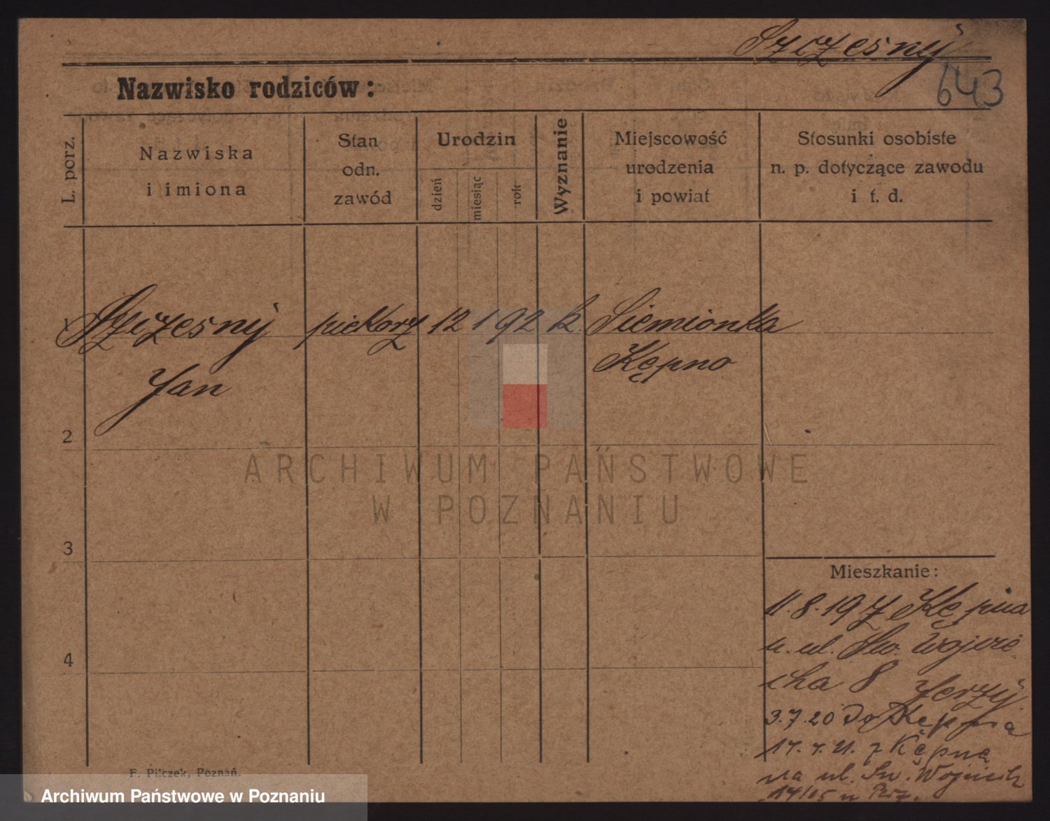 Podgląd karty osobowej dostępny jest po kliknięciu na nazwisko lub ikonkę karty. Można dokonywać powiększenia (ikony na górze) lub przechodzić między kolejnymi skanami (strzałki po bokach).