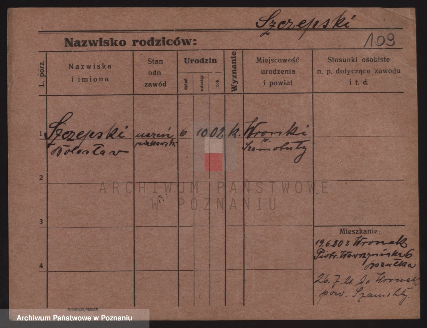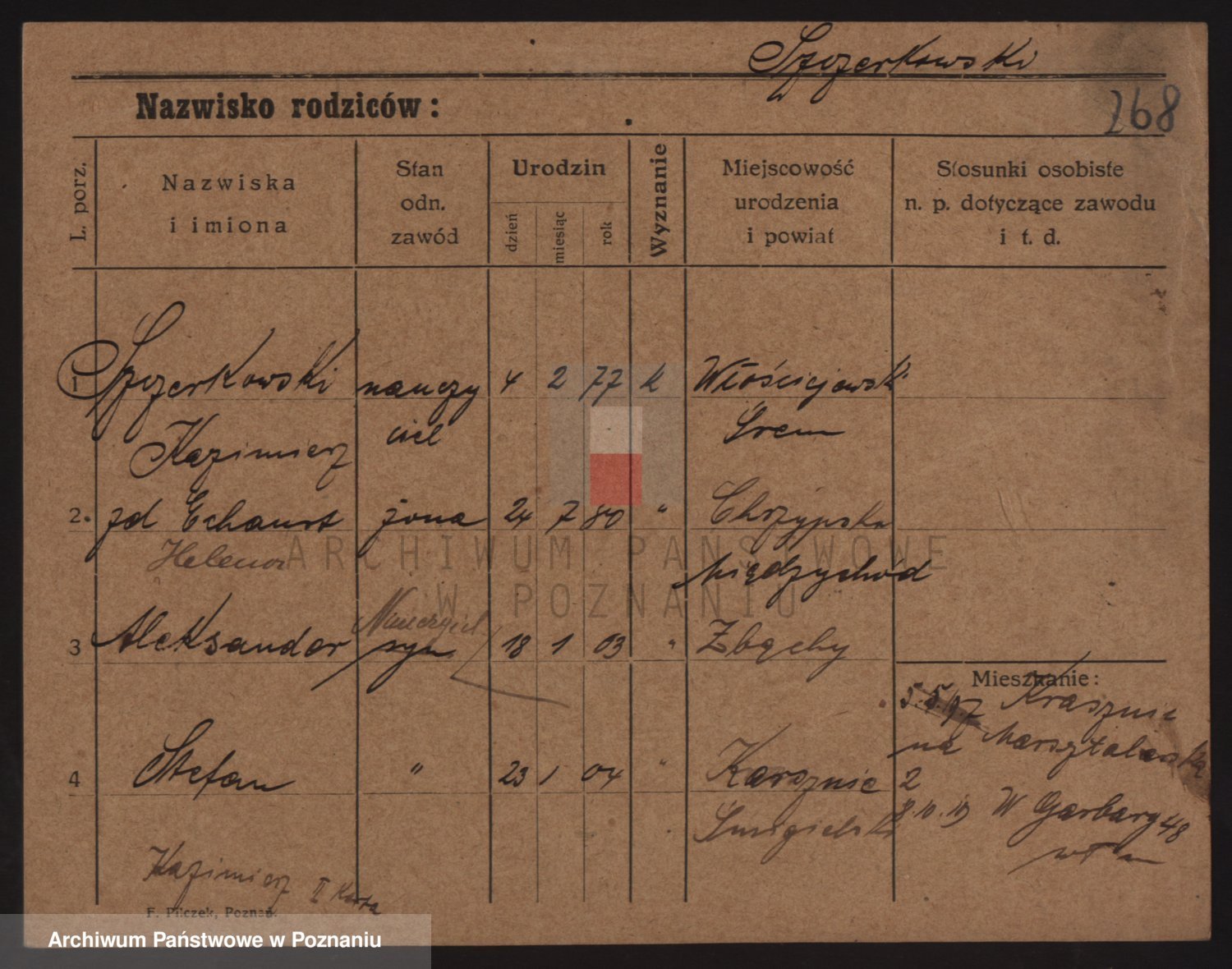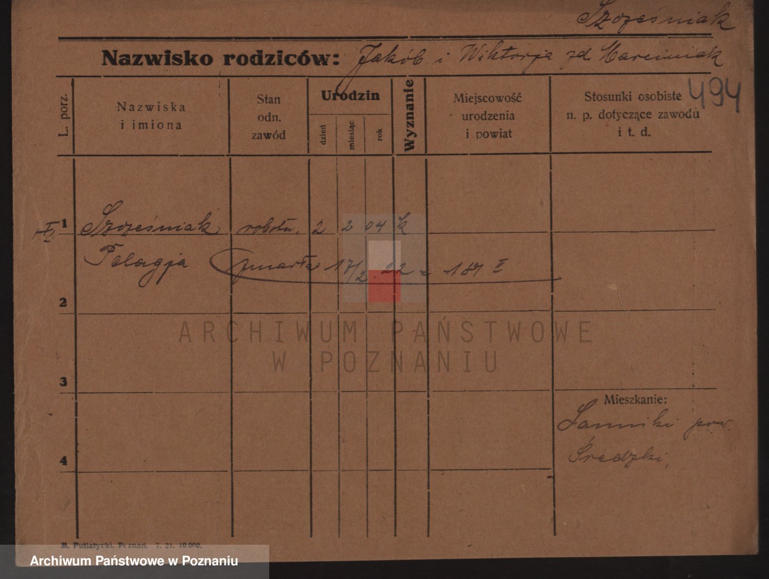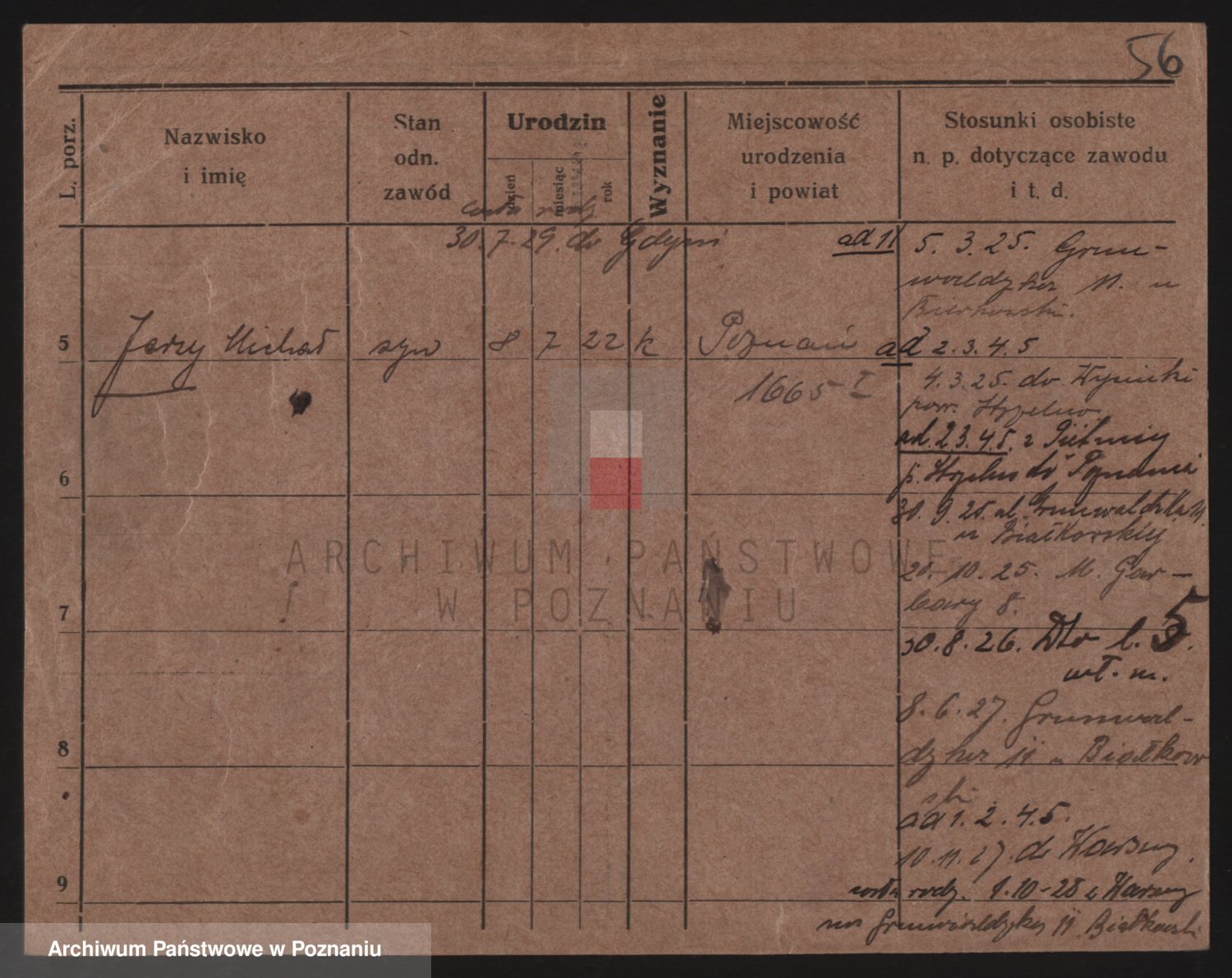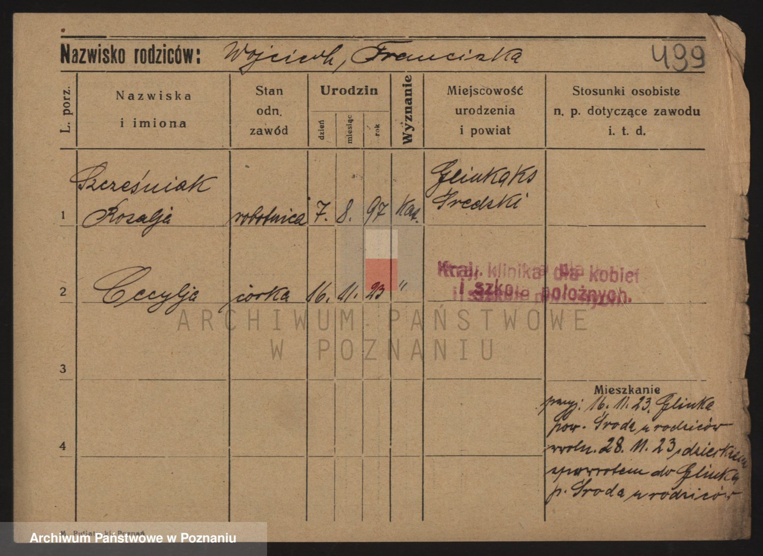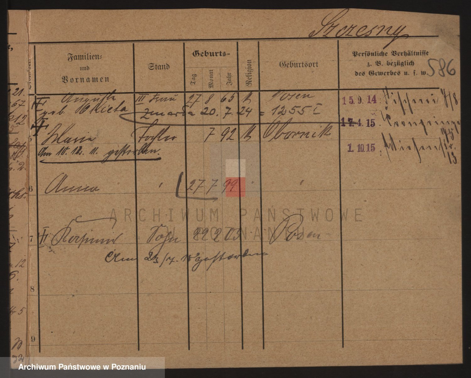 Podgląd karty osobowej dostępny jest po kliknięciu na nazwisko lub ikonkę karty. Można dokonywać powiększenia (ikony na górze) lub przechodzić między kolejnymi skanami (strzałki po bokach).