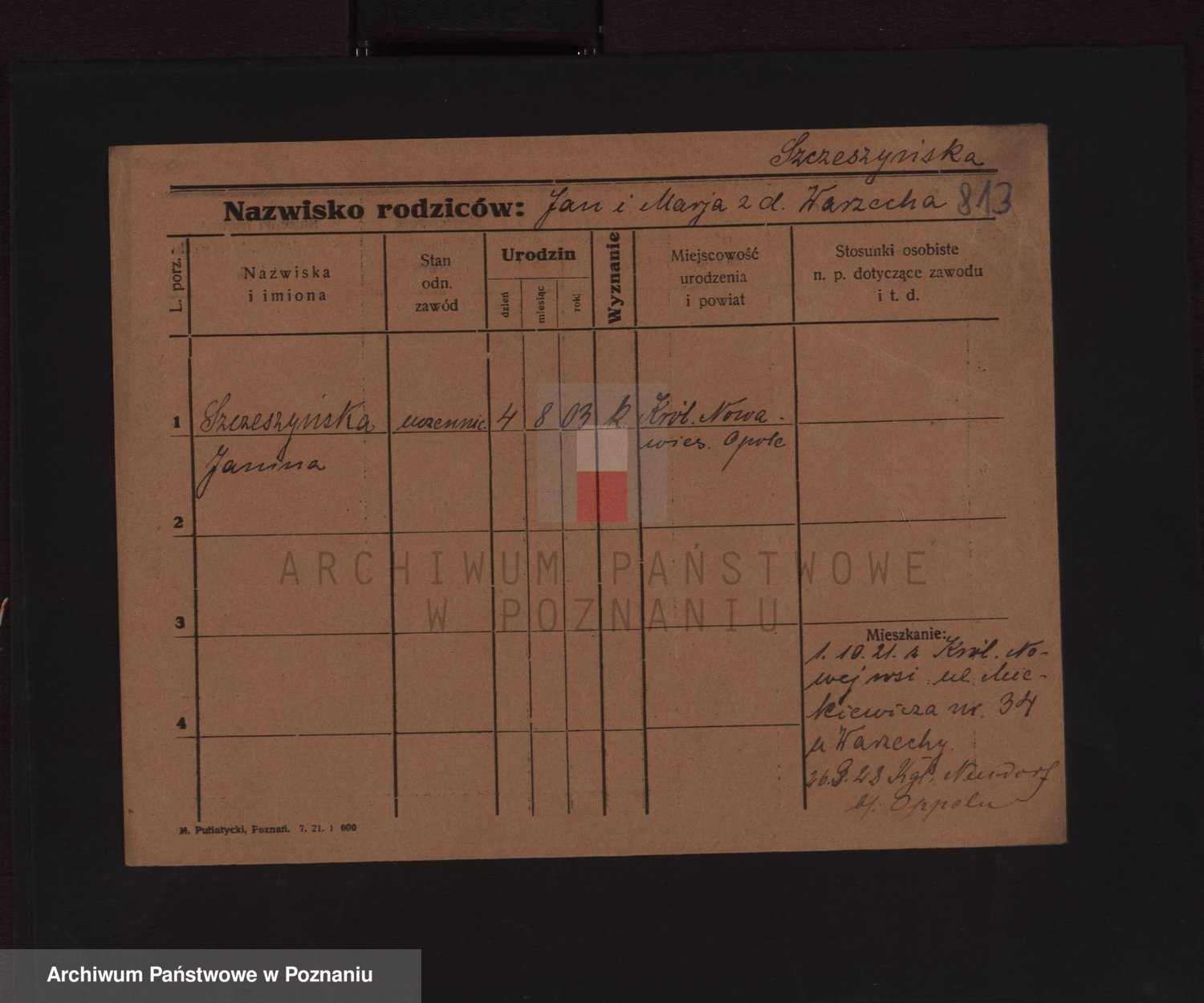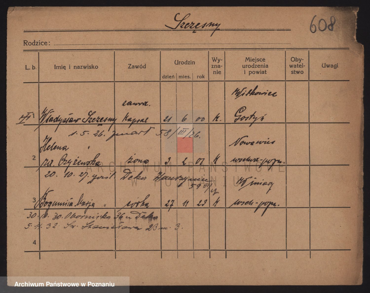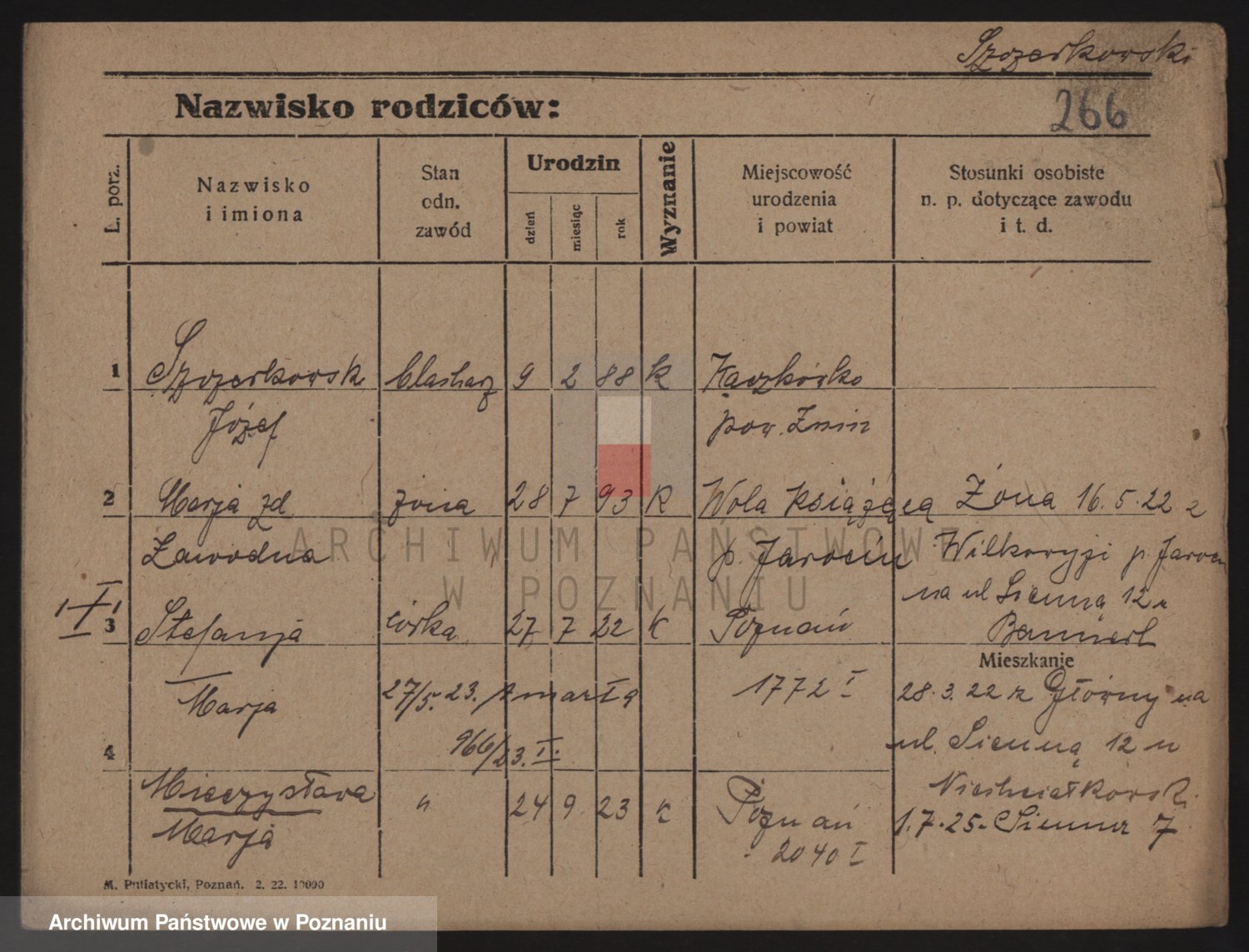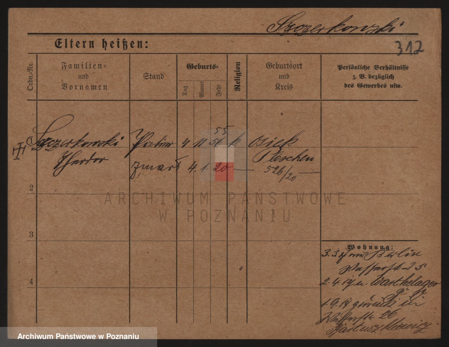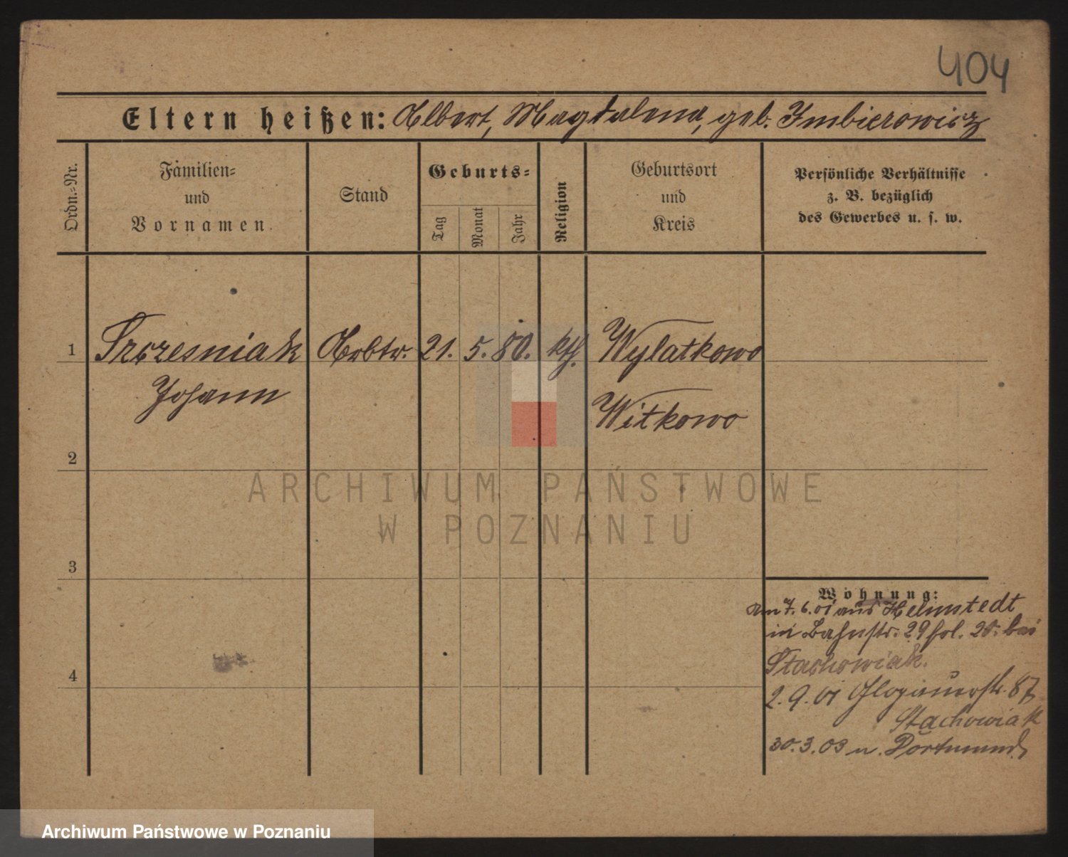 Podgląd karty osobowej dostępny jest po kliknięciu na nazwisko lub ikonkę karty. Można dokonywać powiększenia (ikony na górze) lub przechodzić między kolejnymi skanami (strzałki po bokach).
