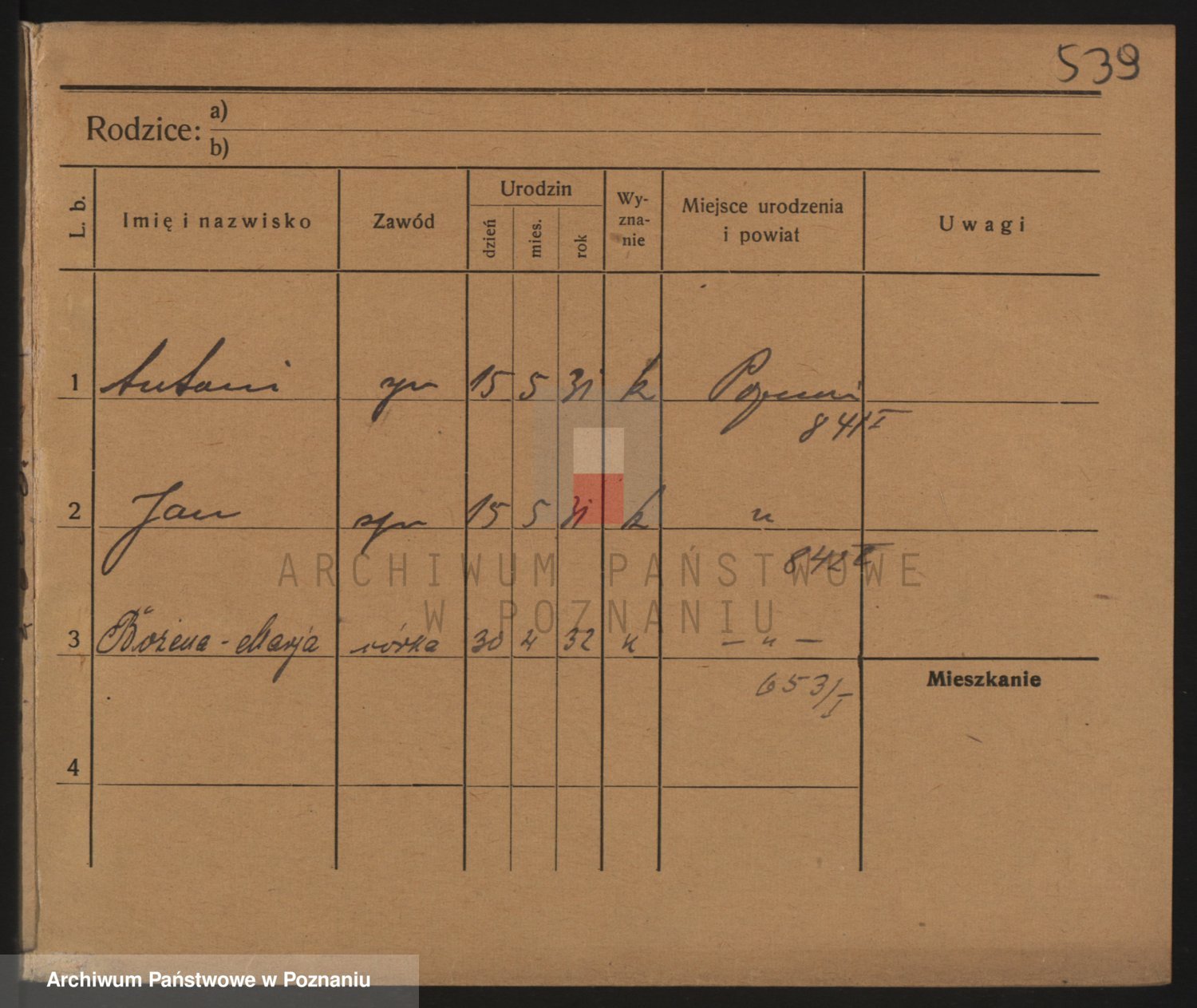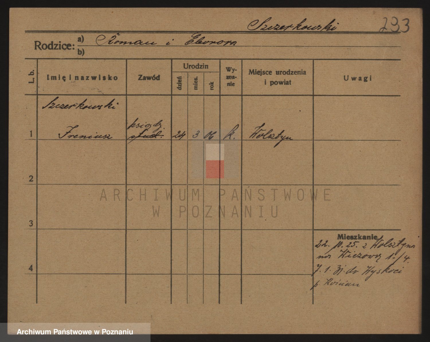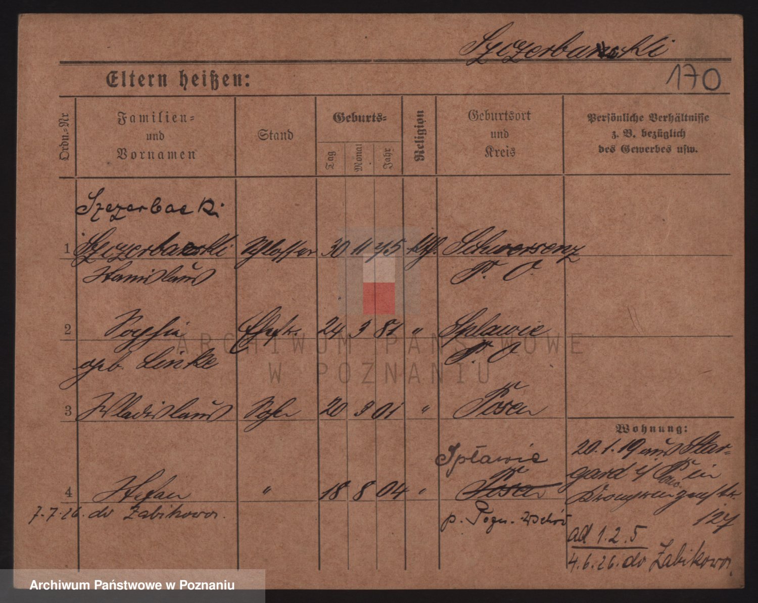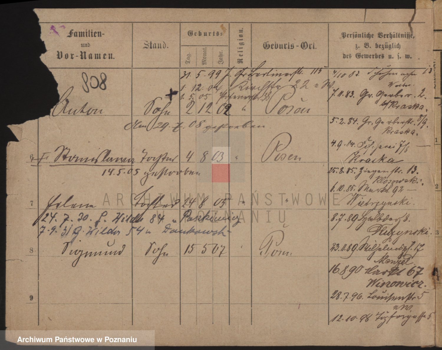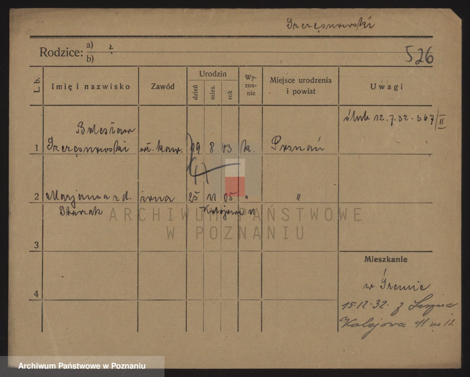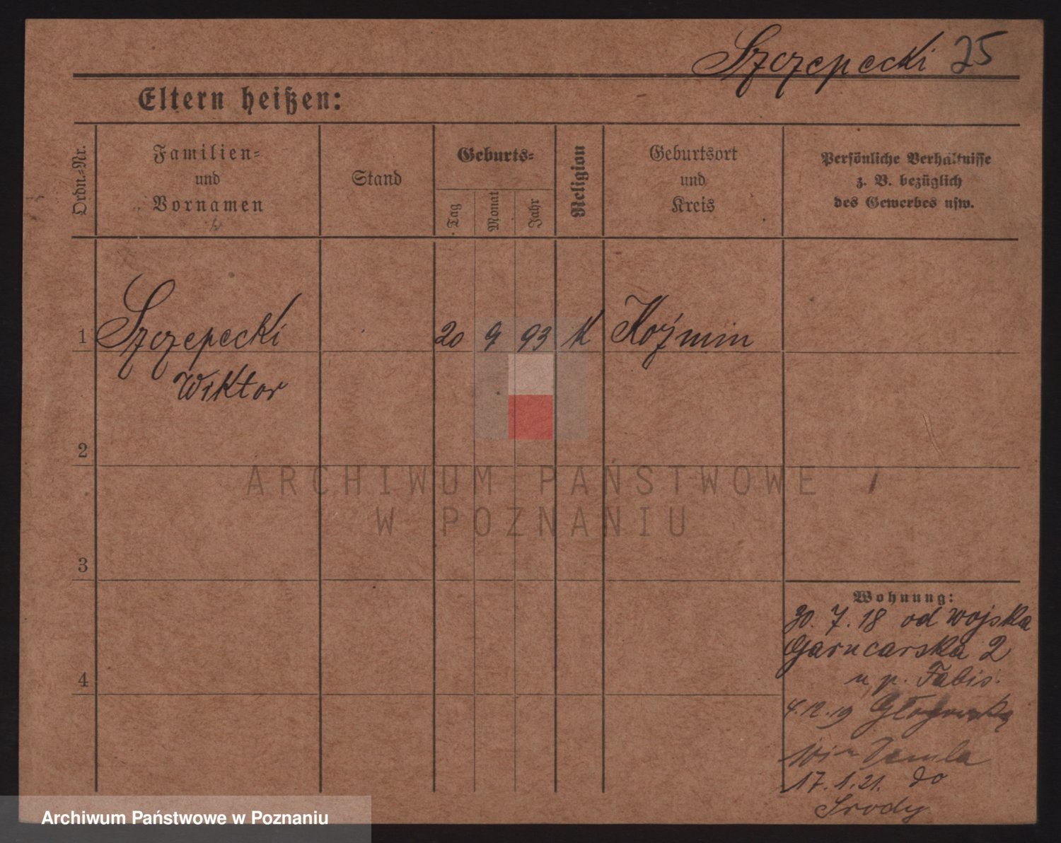 Podgląd karty osobowej dostępny jest po kliknięciu na nazwisko lub ikonkę karty. Można dokonywać powiększenia (ikony na górze) lub przechodzić między kolejnymi skanami (strzałki po bokach).