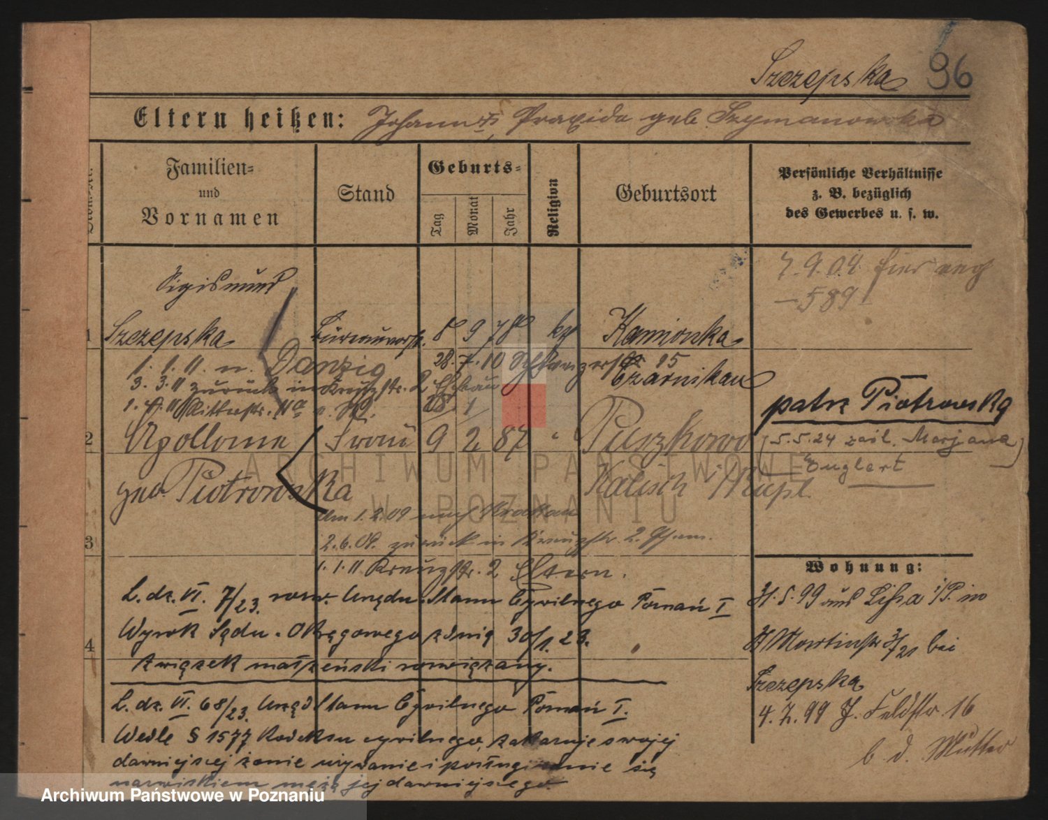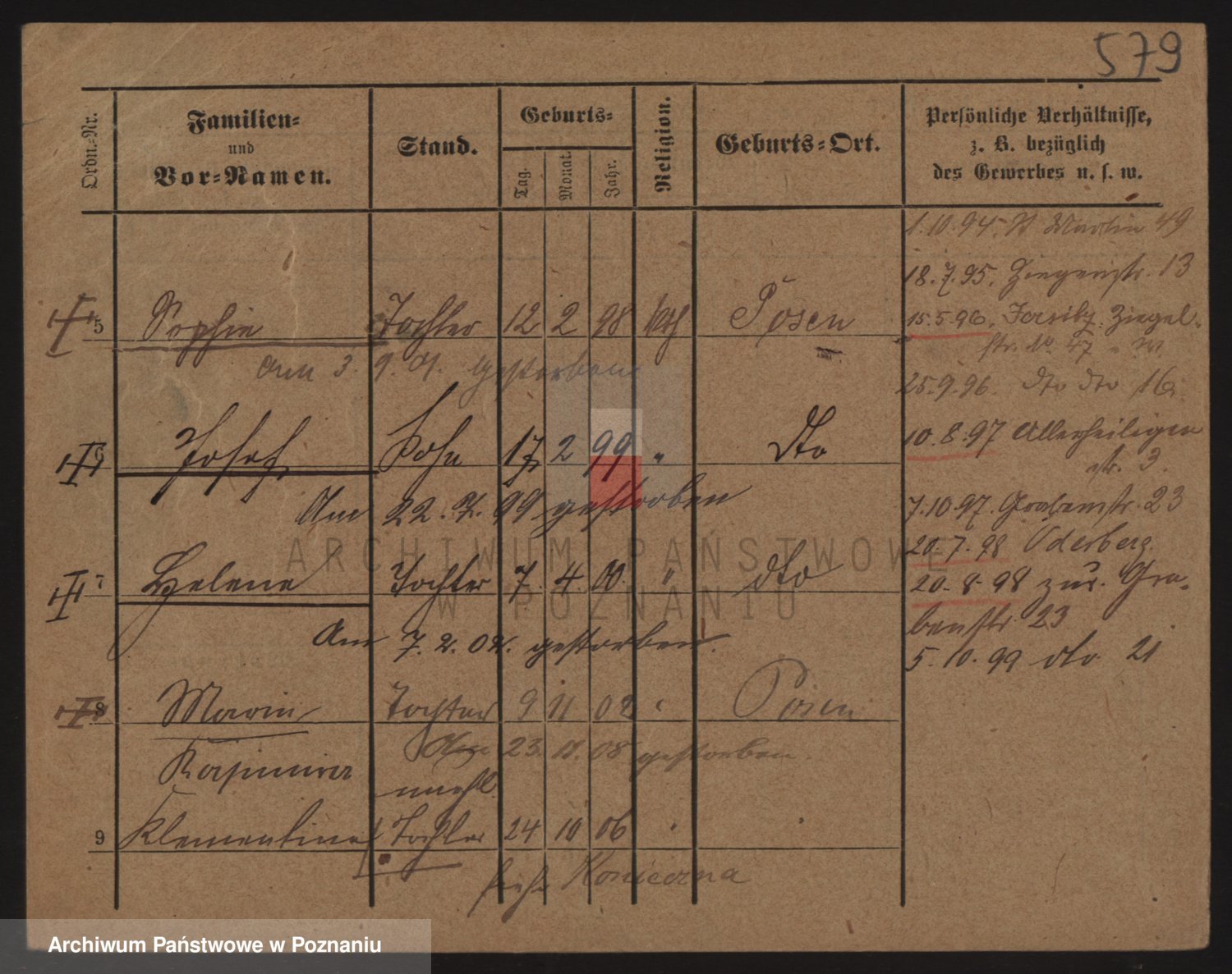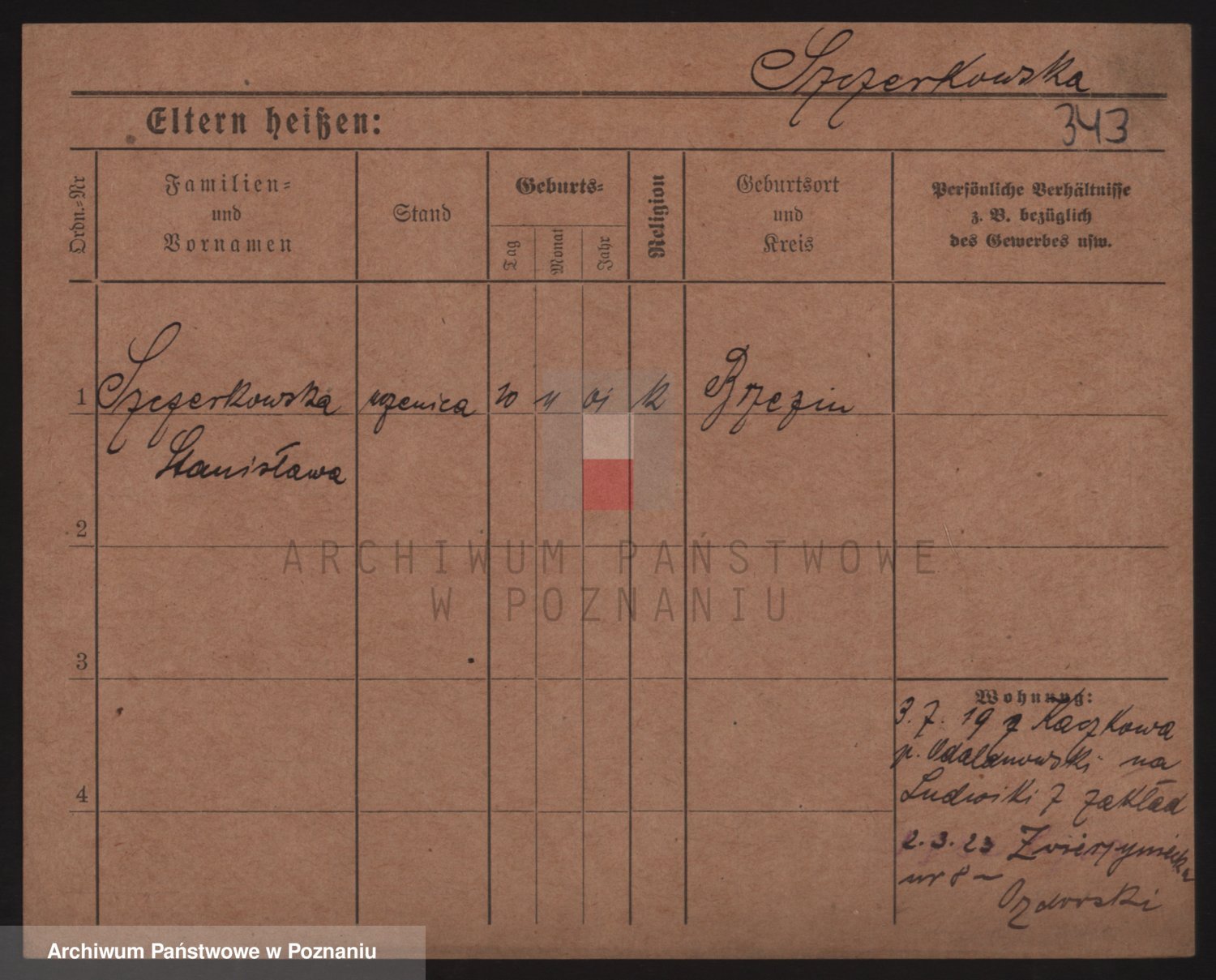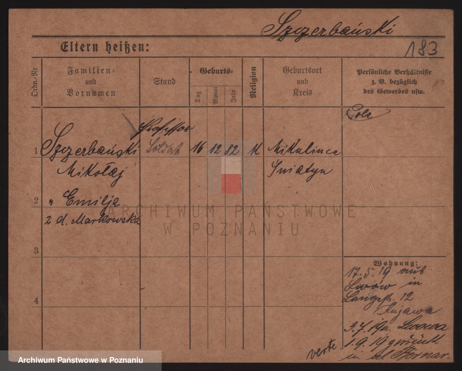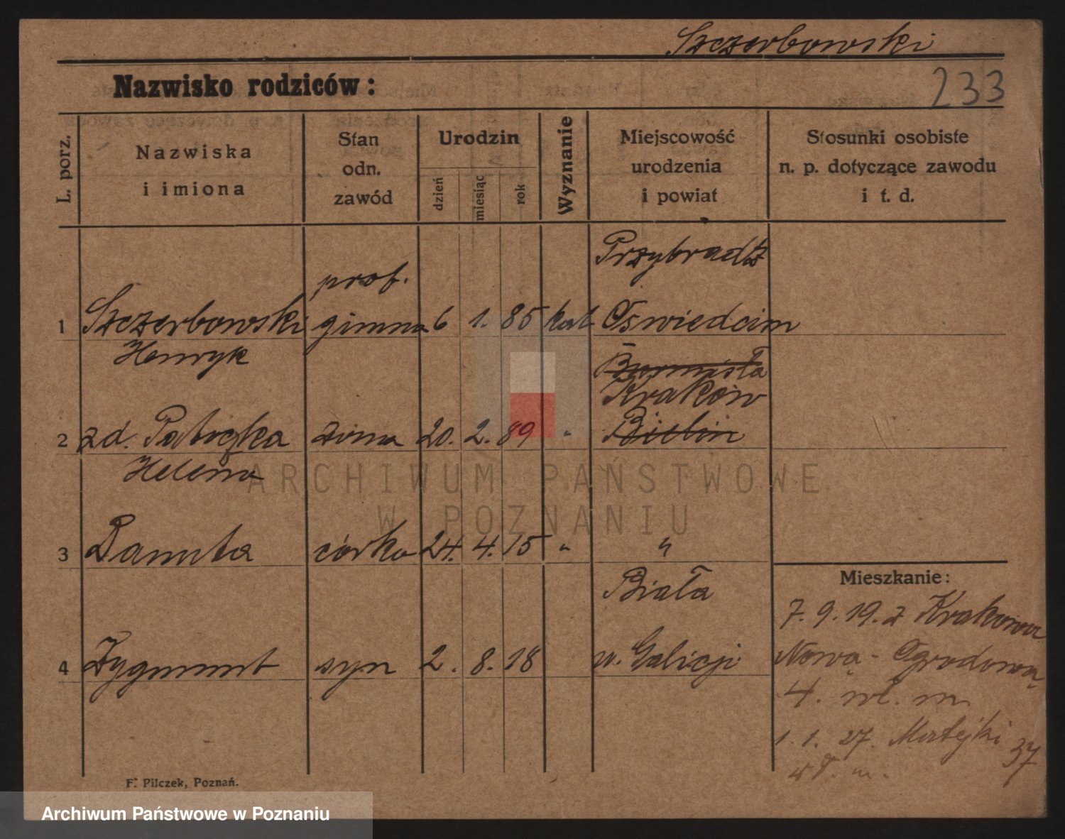 Podgląd karty osobowej dostępny jest po kliknięciu na nazwisko lub ikonkę karty. Można dokonywać powiększenia (ikony na górze) lub przechodzić między kolejnymi skanami (strzałki po bokach).
