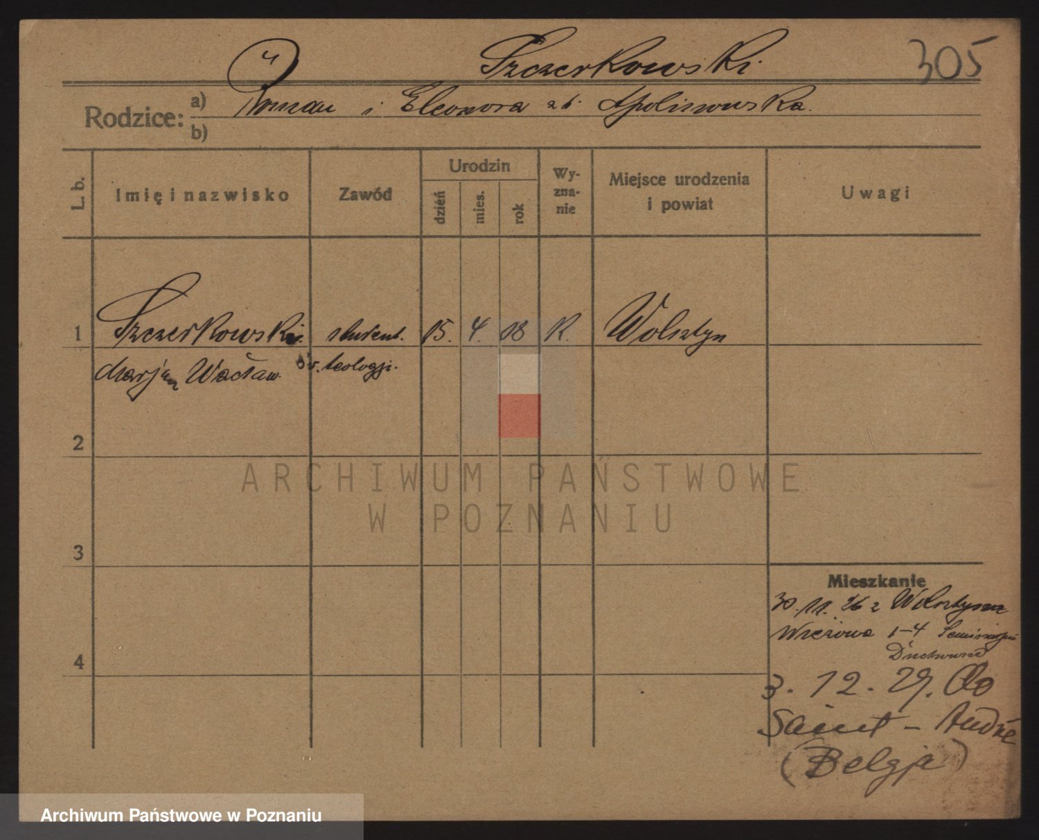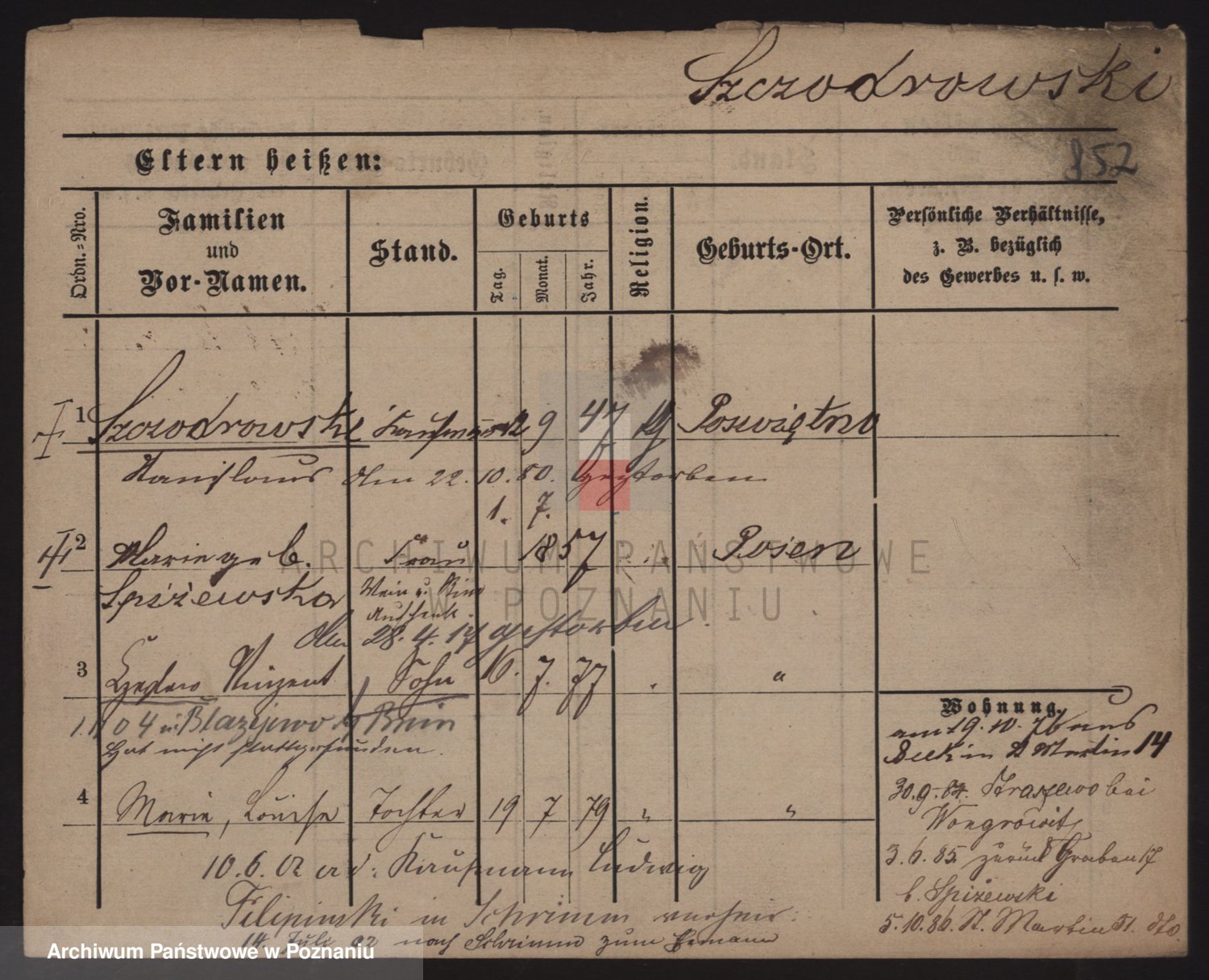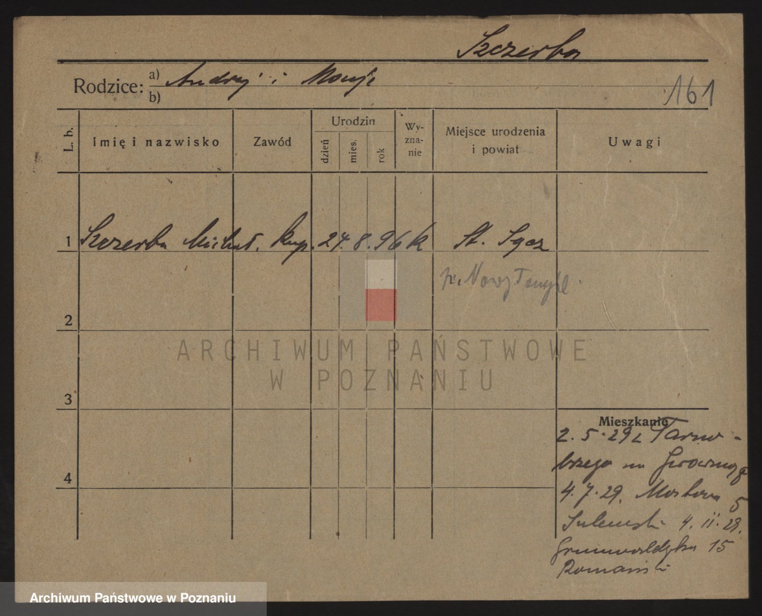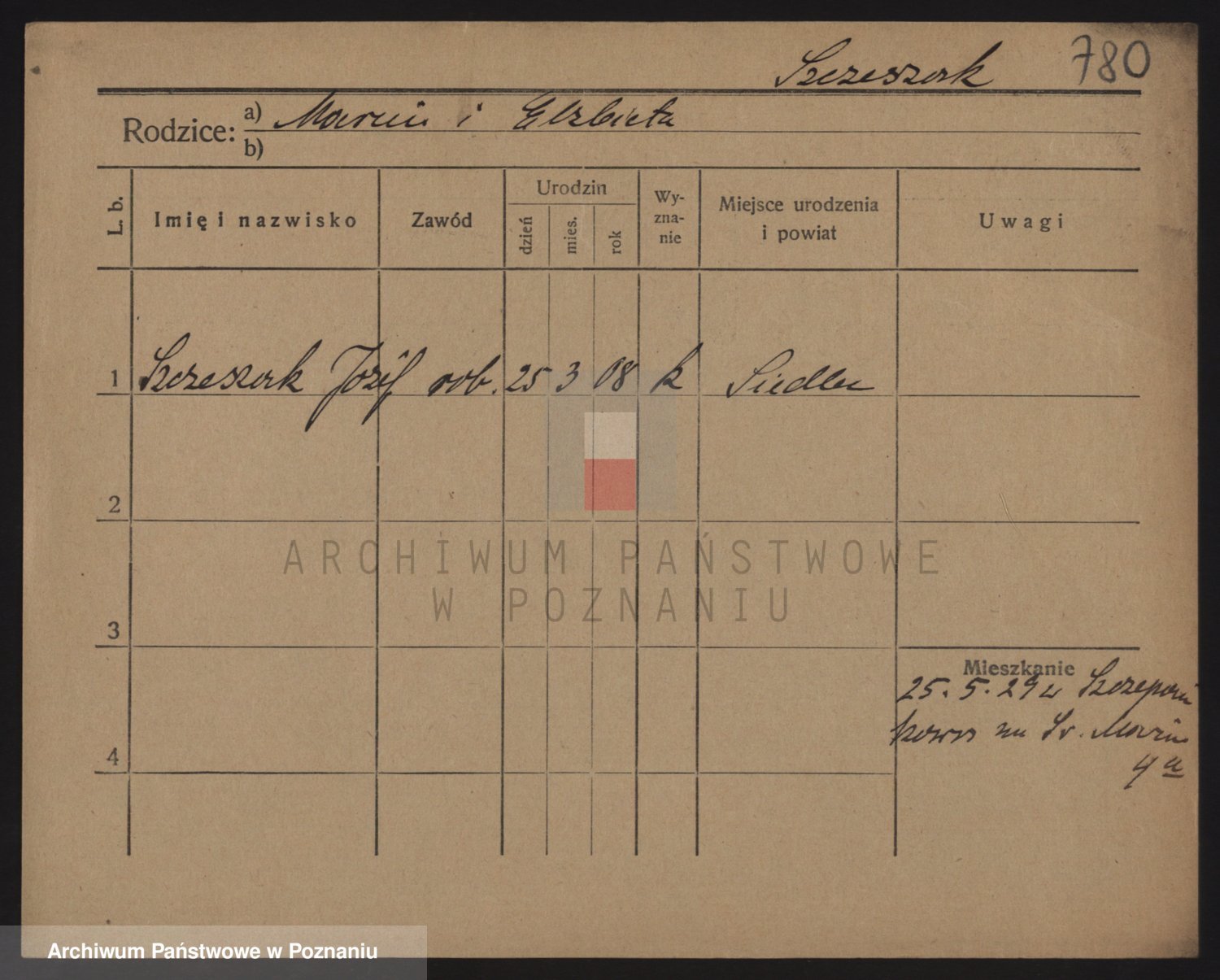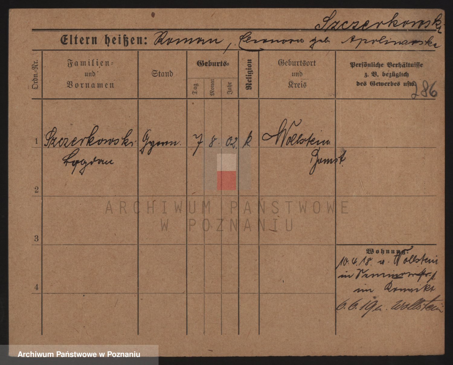 Podgląd karty osobowej dostępny jest po kliknięciu na nazwisko lub ikonkę karty. Można dokonywać powiększenia (ikony na górze) lub przechodzić między kolejnymi skanami (strzałki po bokach).
