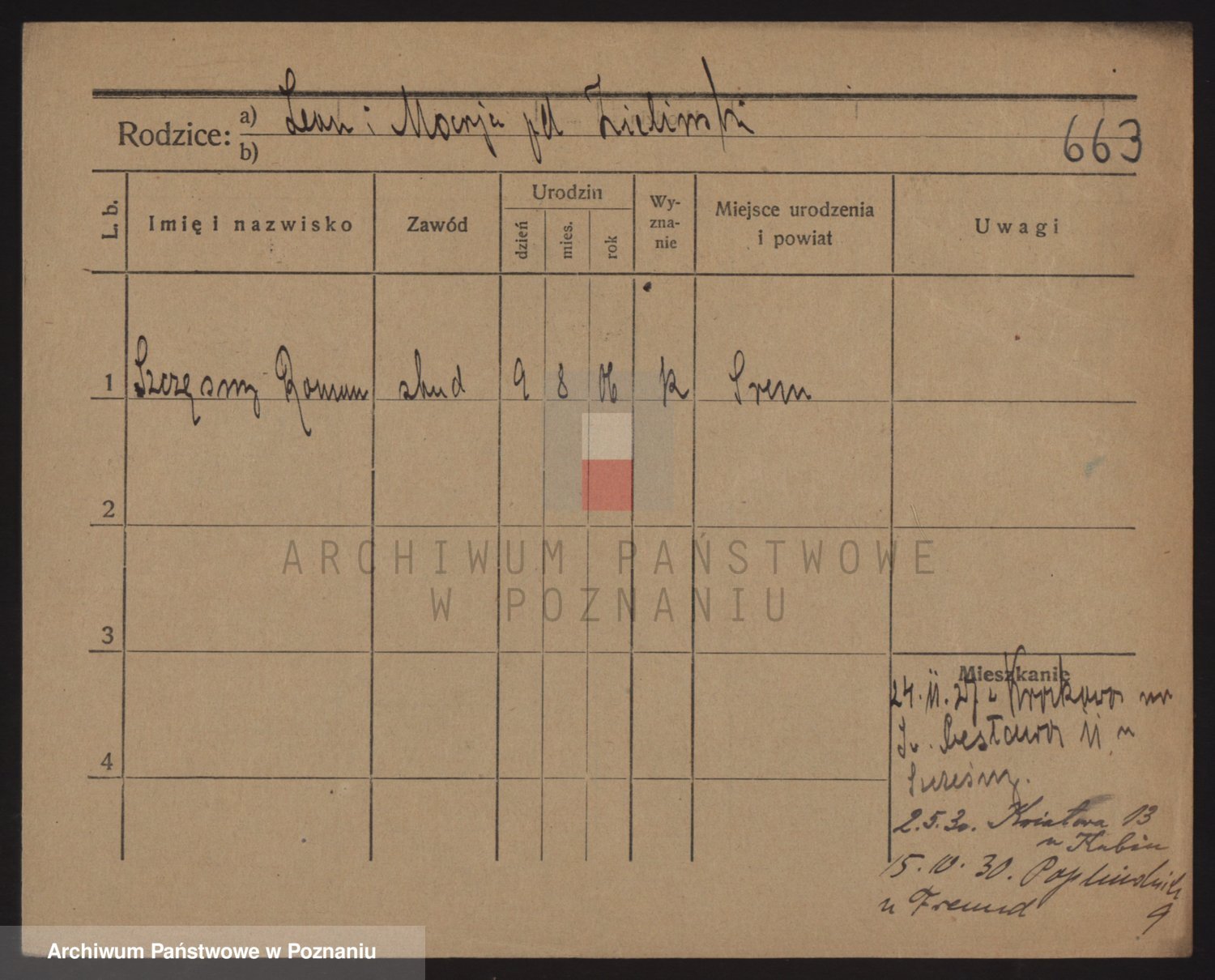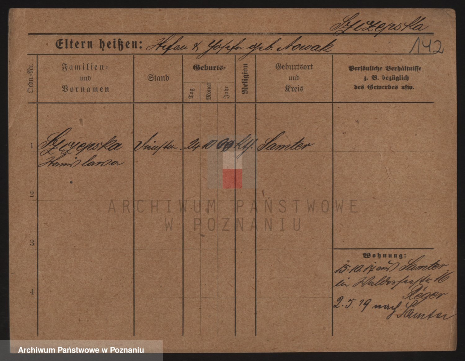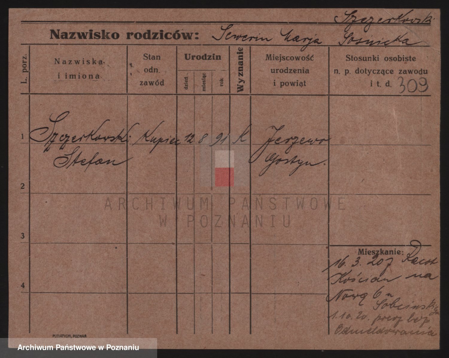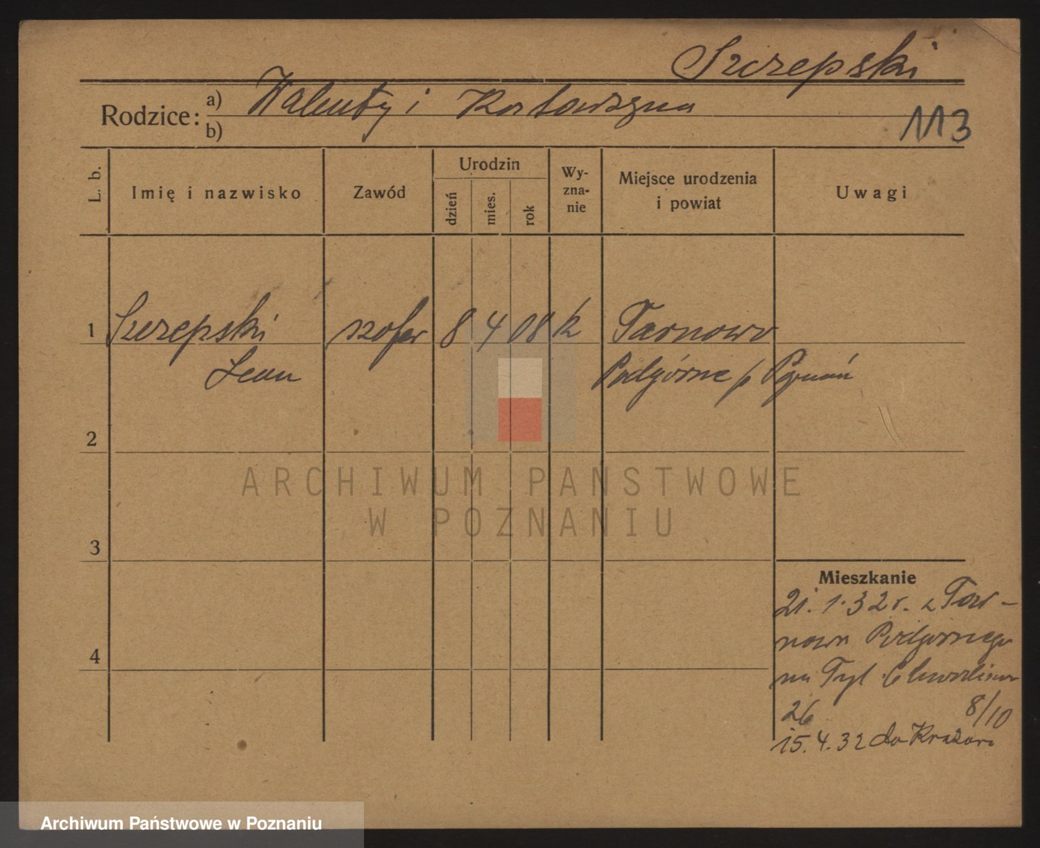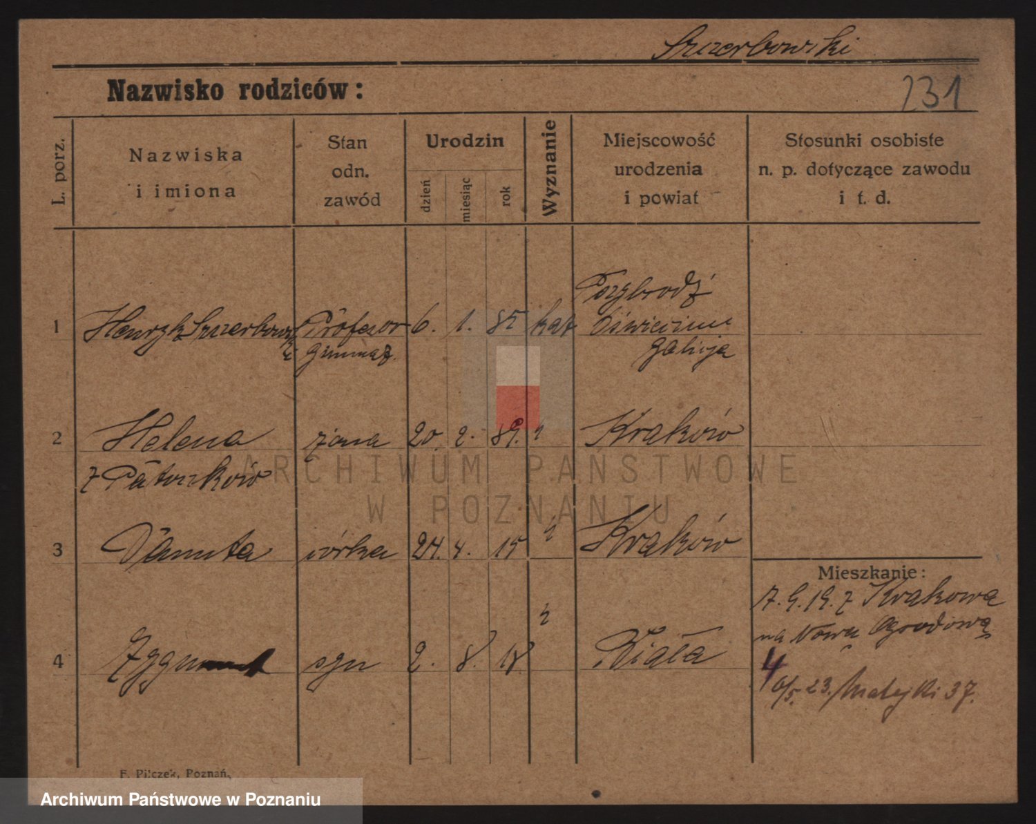 Podgląd karty osobowej dostępny jest po kliknięciu na nazwisko lub ikonkę karty. Można dokonywać powiększenia (ikony na górze) lub przechodzić między kolejnymi skanami (strzałki po bokach).