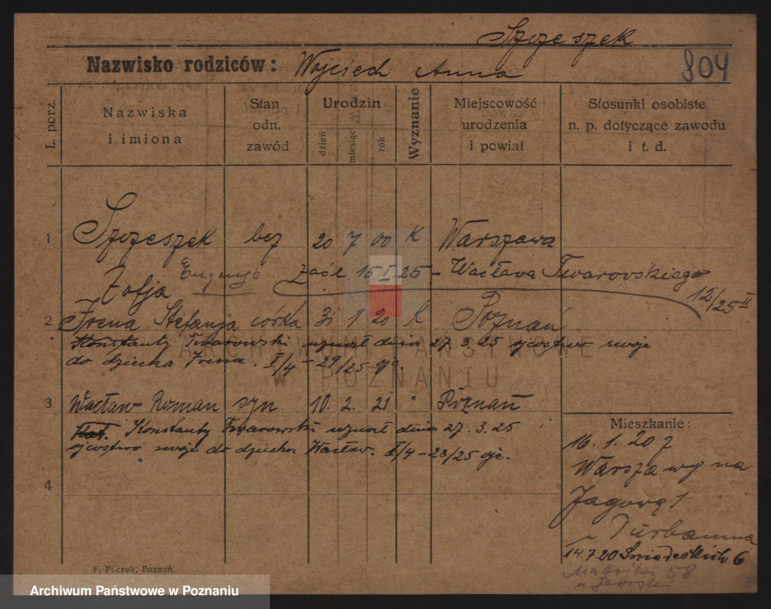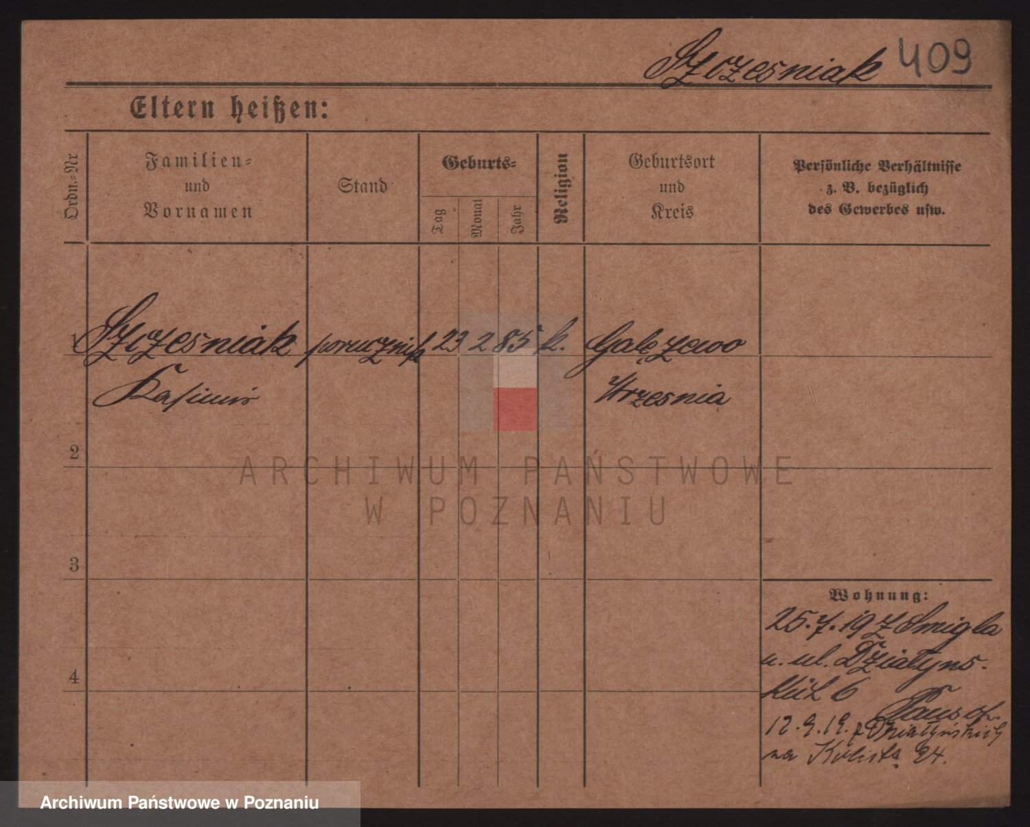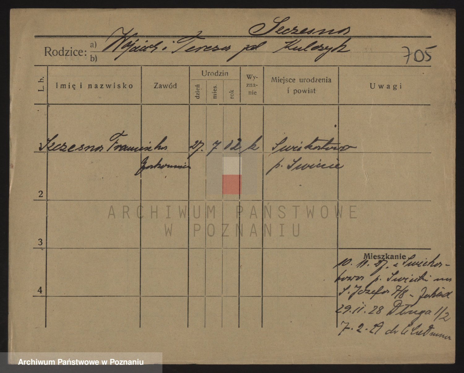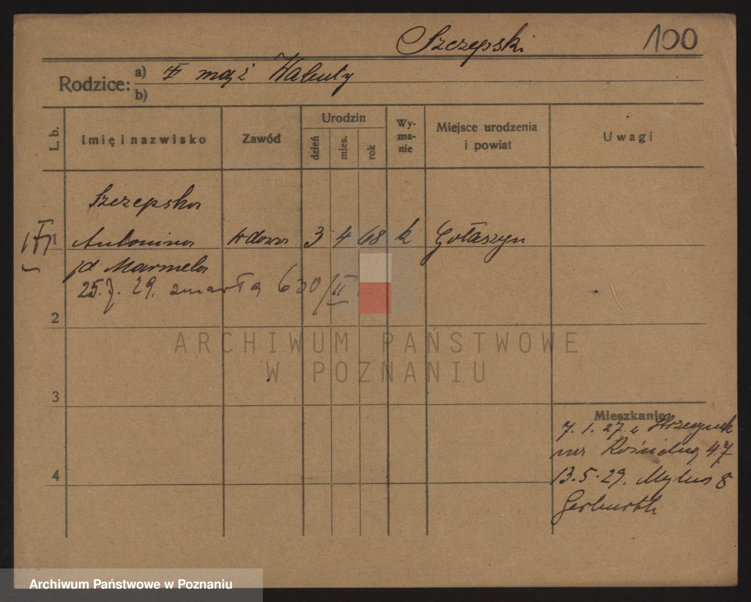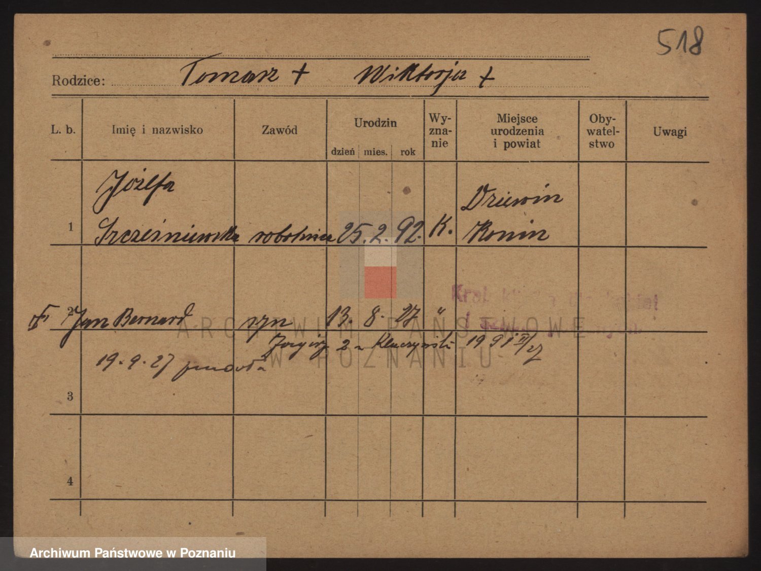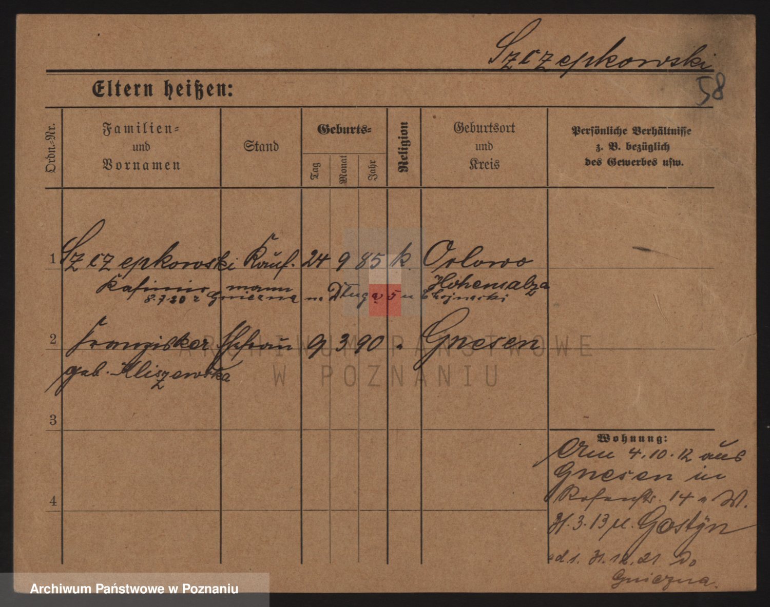 Podgląd karty osobowej dostępny jest po kliknięciu na nazwisko lub ikonkę karty. Można dokonywać powiększenia (ikony na górze) lub przechodzić między kolejnymi skanami (strzałki po bokach).