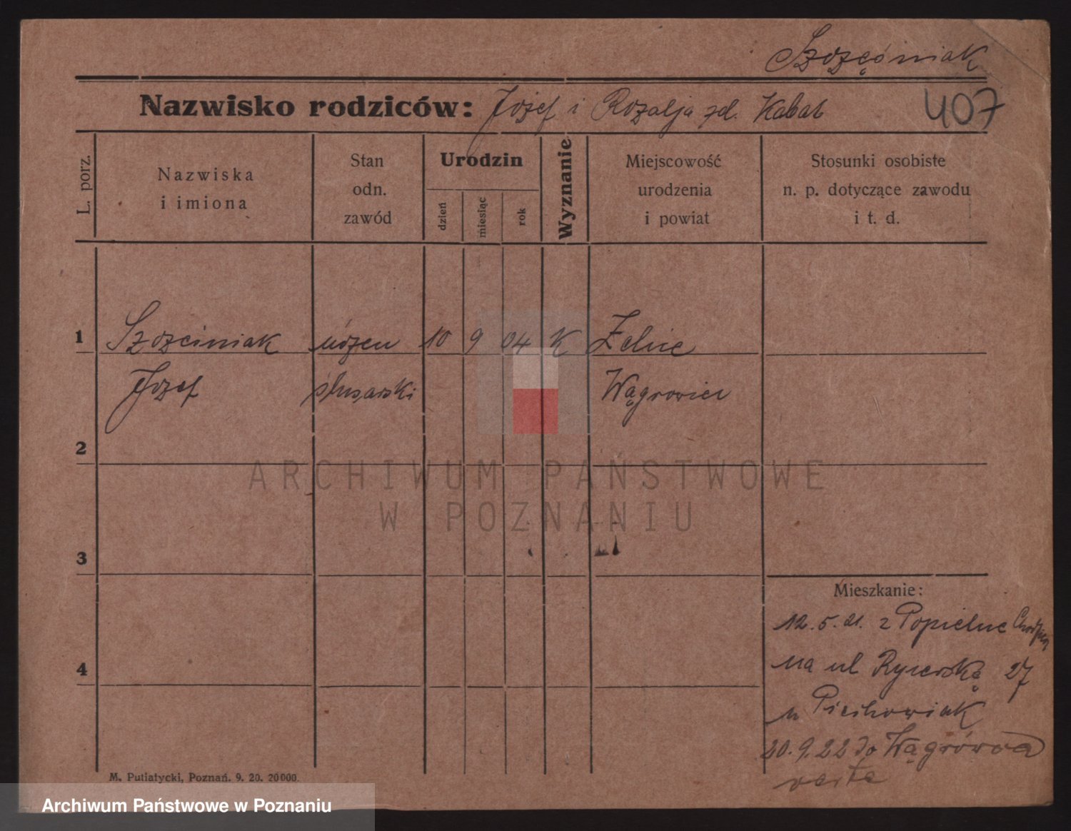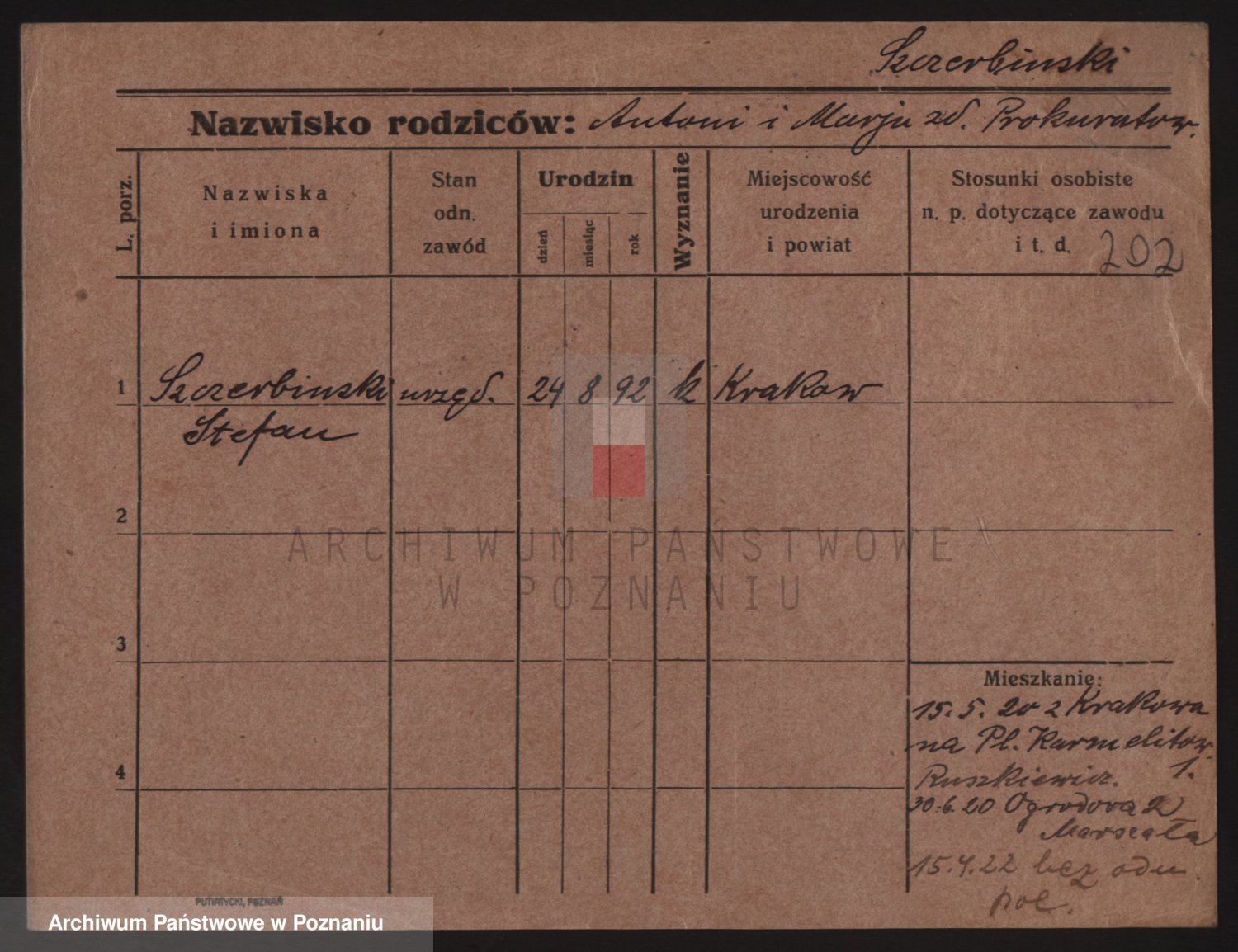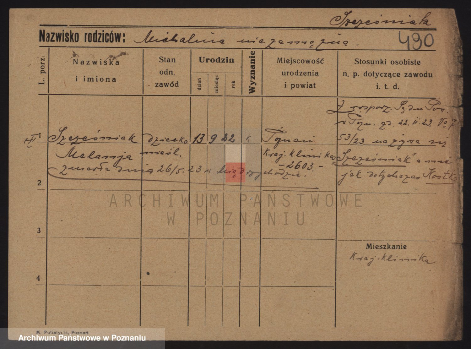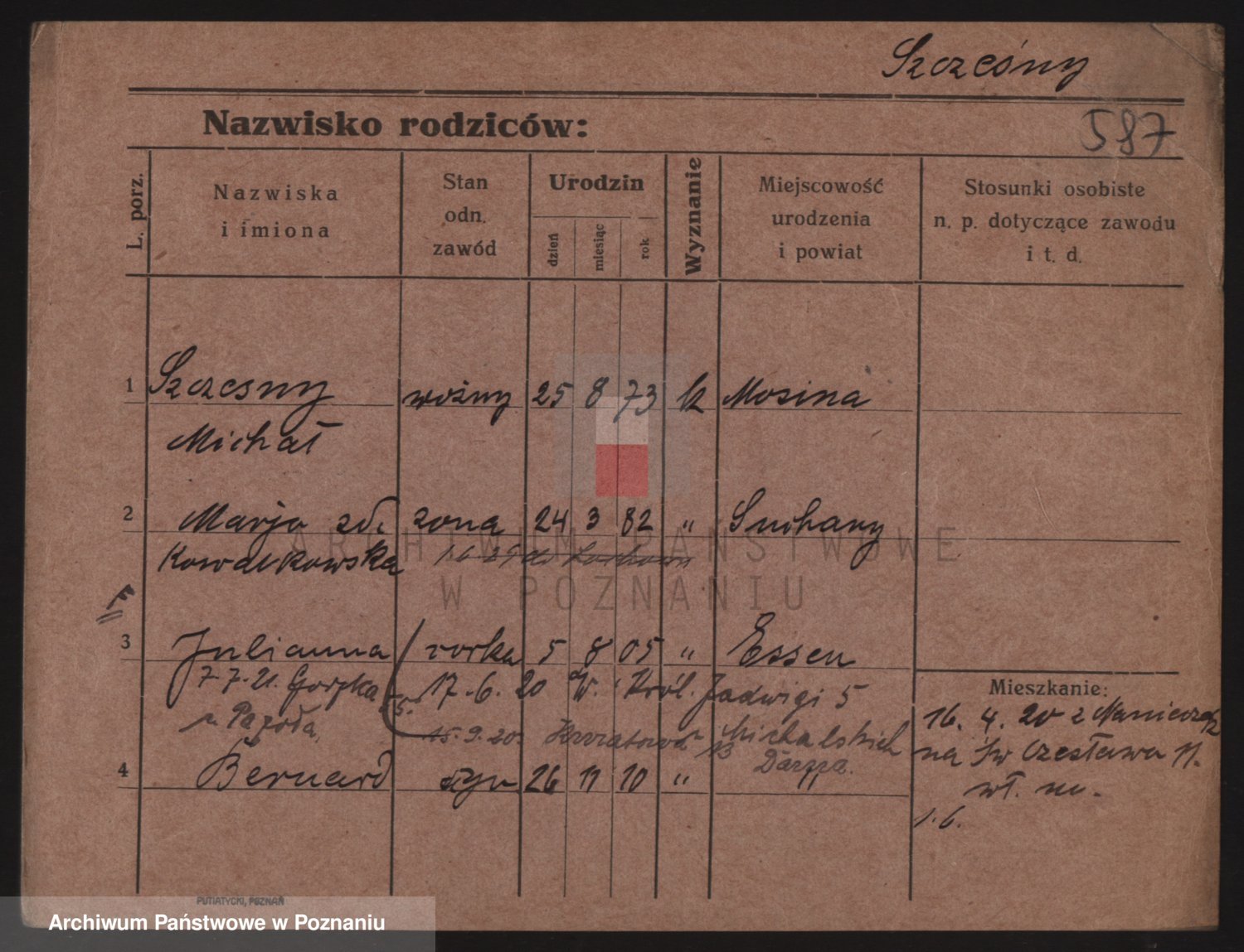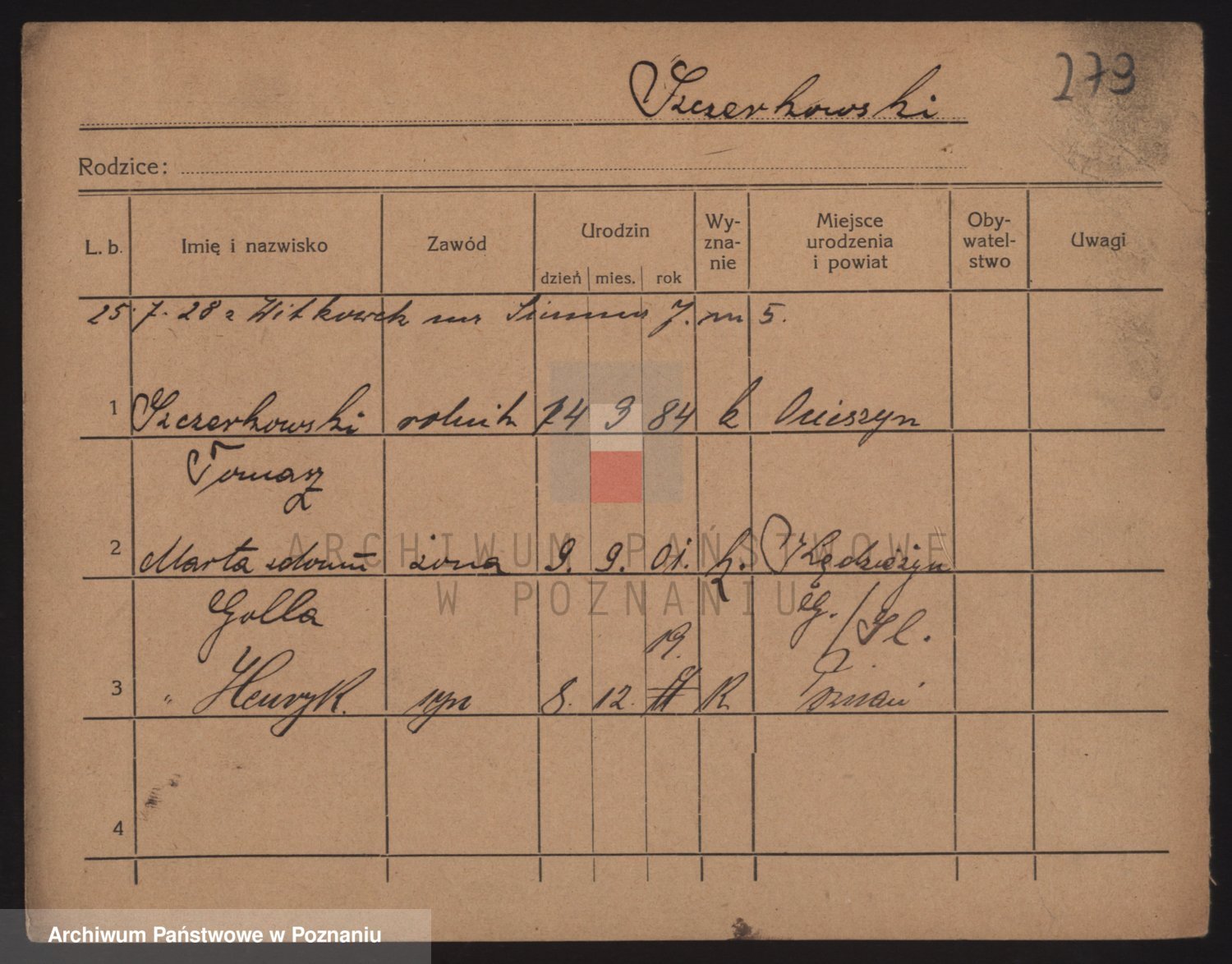Podgląd karty osobowej dostępny jest po kliknięciu na nazwisko lub ikonkę karty. Można dokonywać powiększenia (ikony na górze) lub przechodzić między kolejnymi skanami (strzałki po bokach).