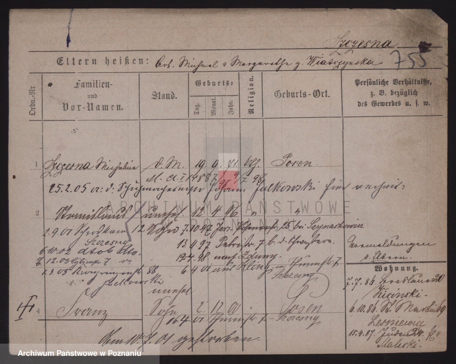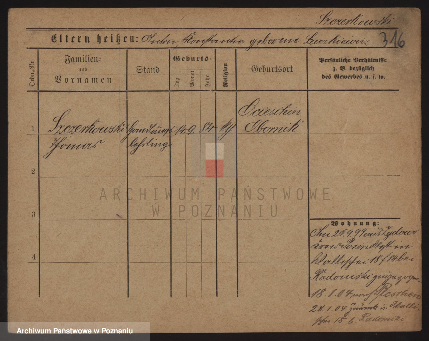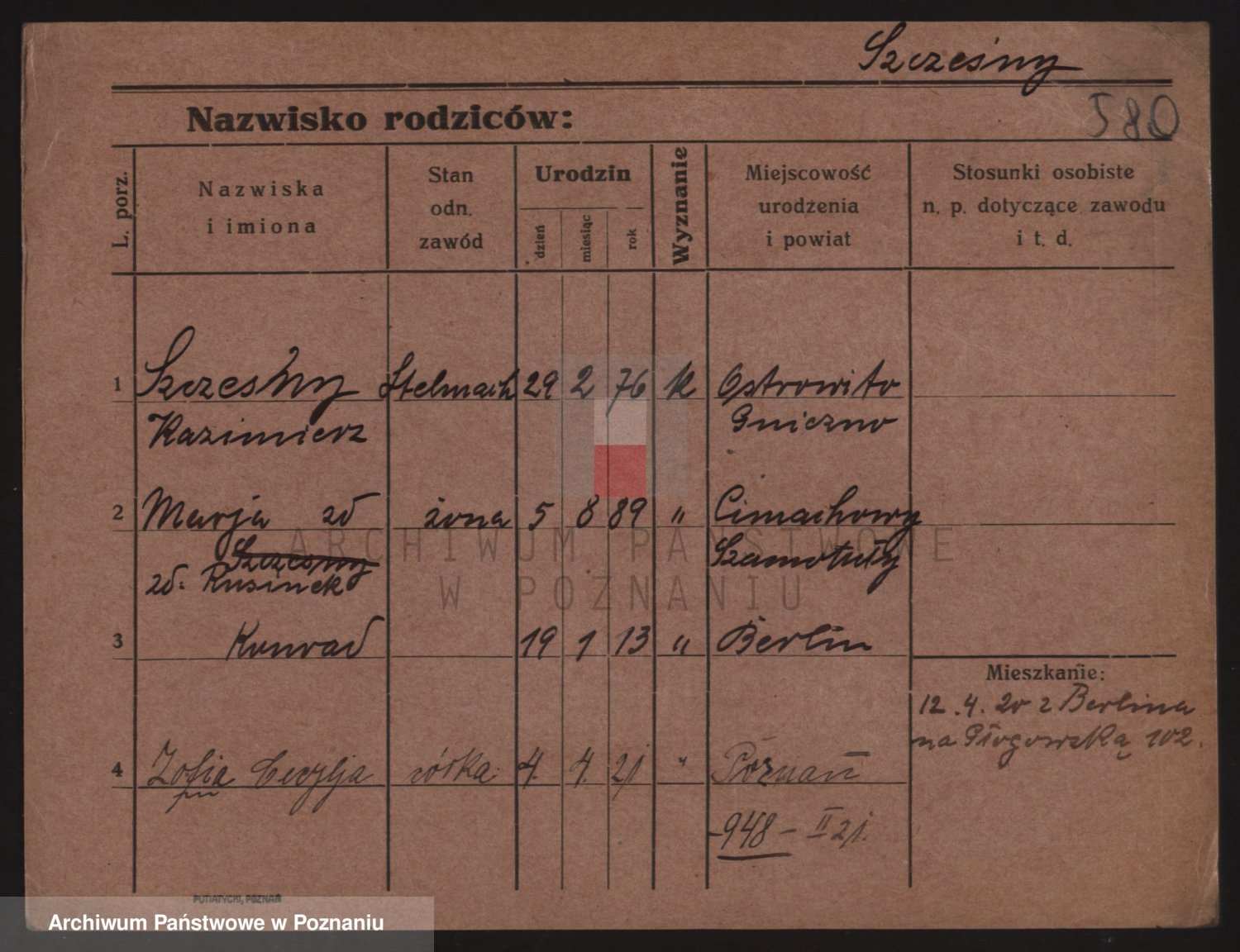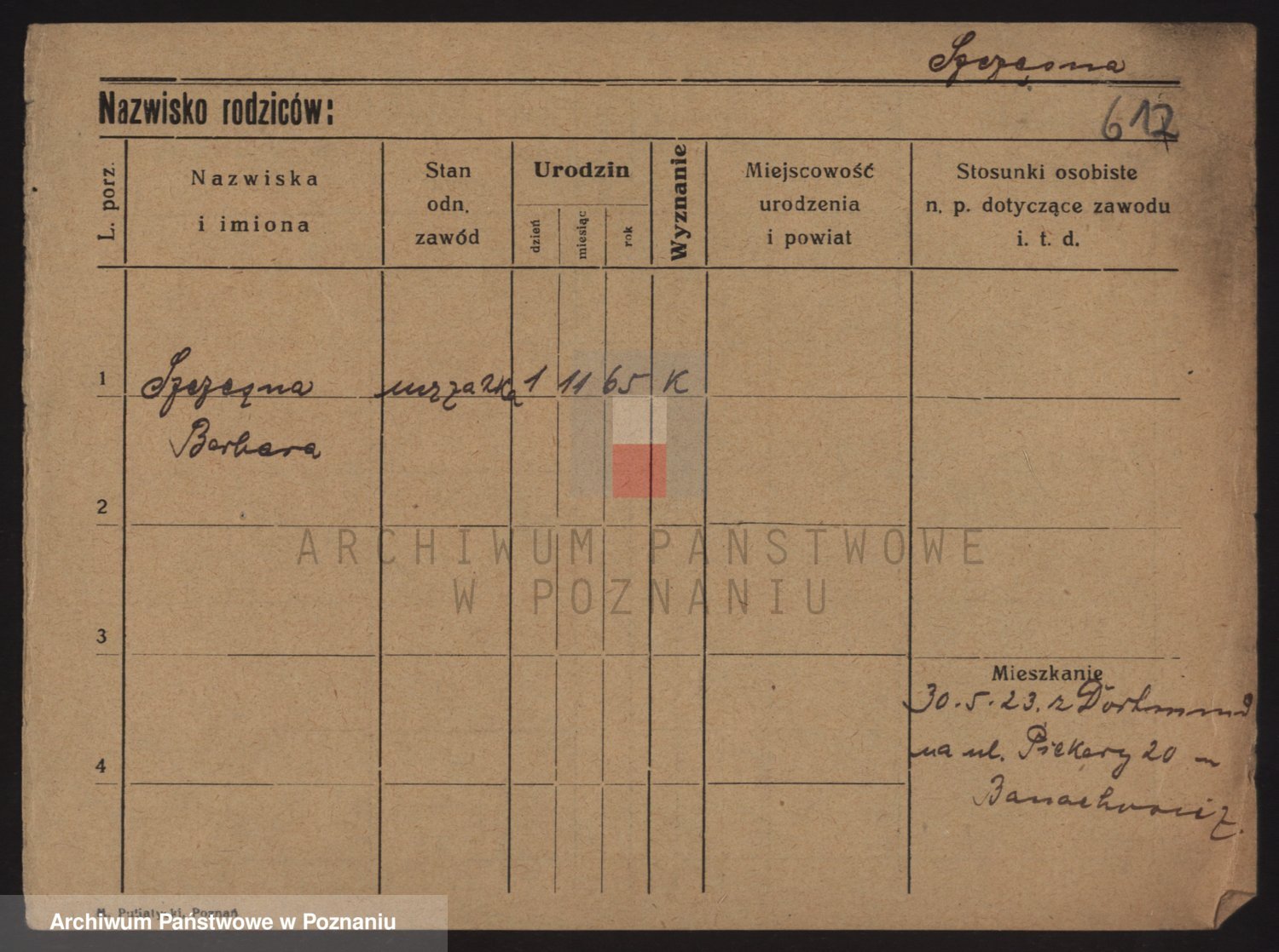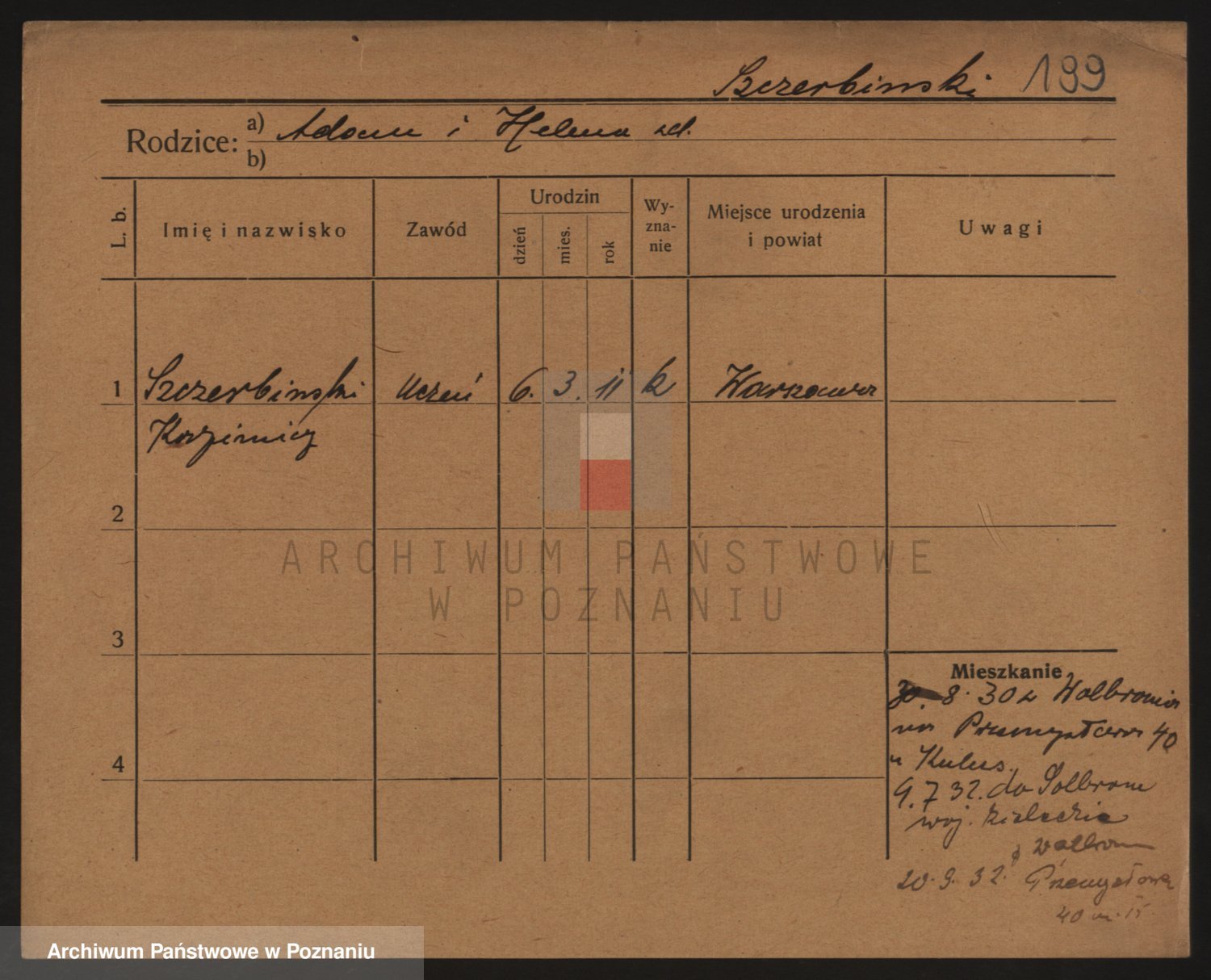Podgląd karty osobowej dostępny jest po kliknięciu na nazwisko lub ikonkę karty. Można dokonywać powiększenia (ikony na górze) lub przechodzić między kolejnymi skanami (strzałki po bokach).