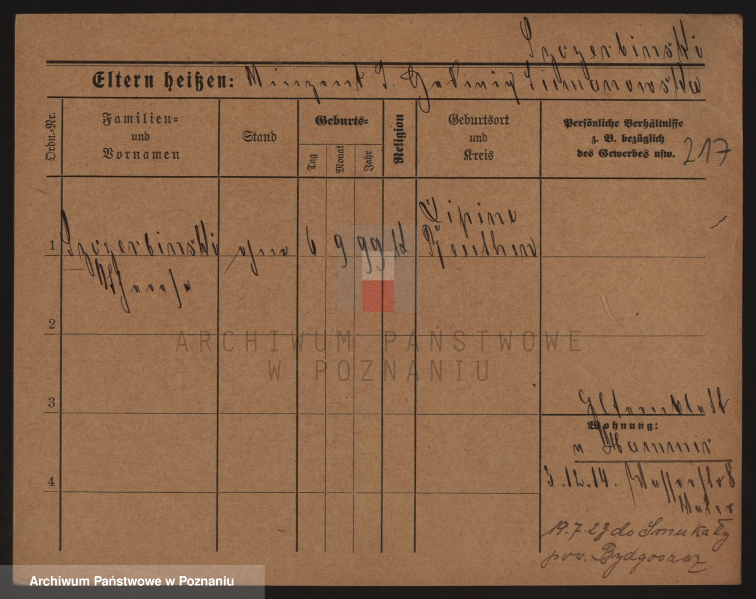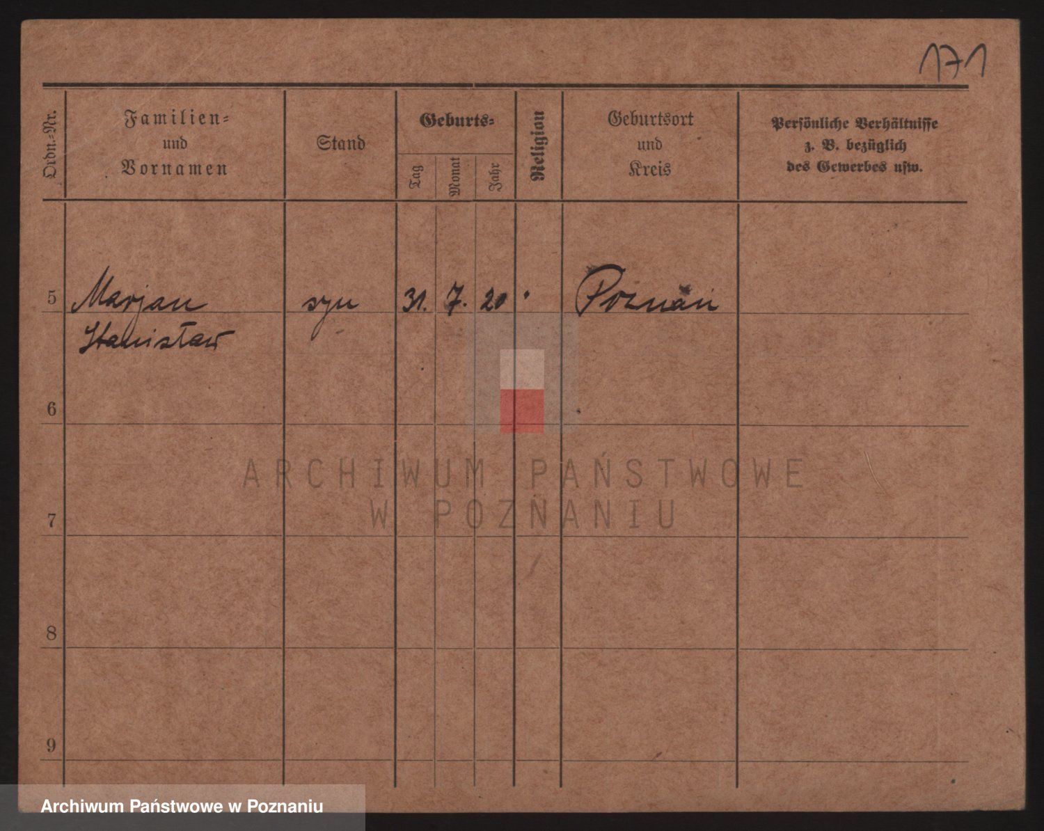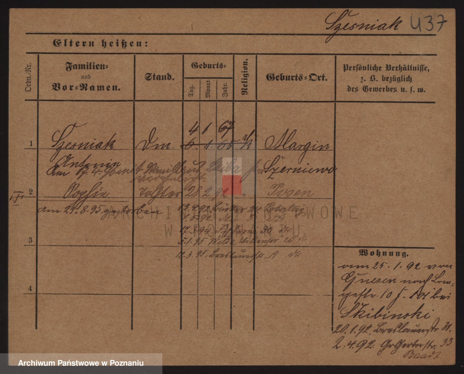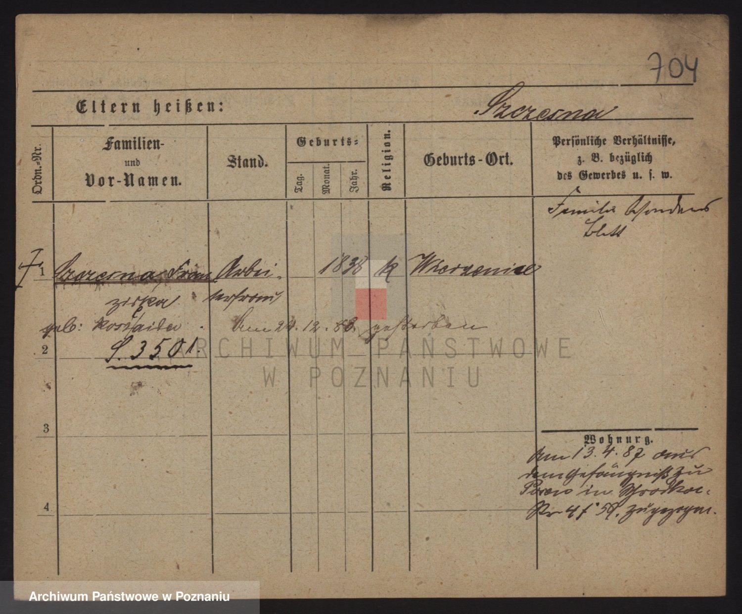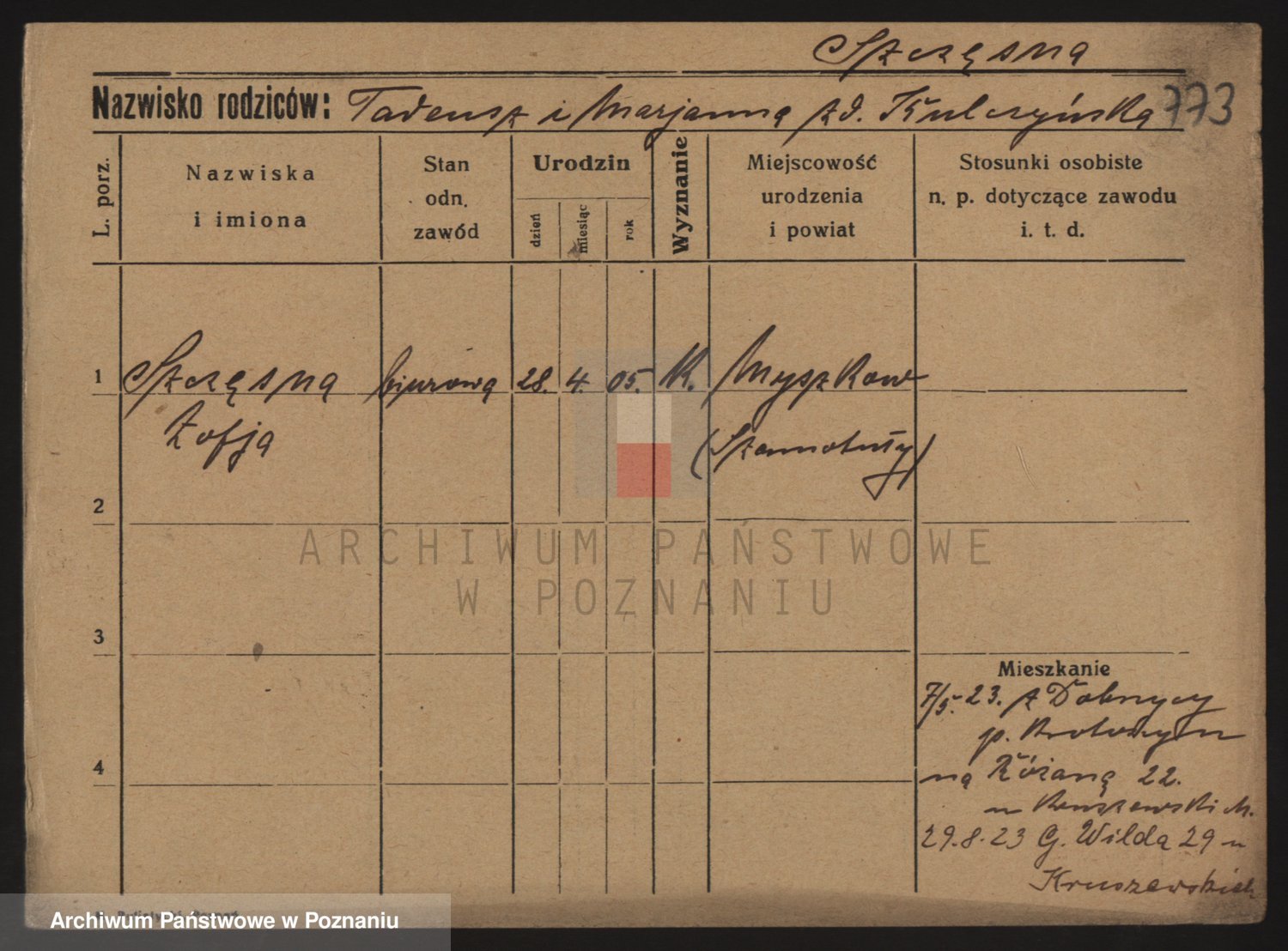 Podgląd karty osobowej dostępny jest po kliknięciu na nazwisko lub ikonkę karty. Można dokonywać powiększenia (ikony na górze) lub przechodzić między kolejnymi skanami (strzałki po bokach).