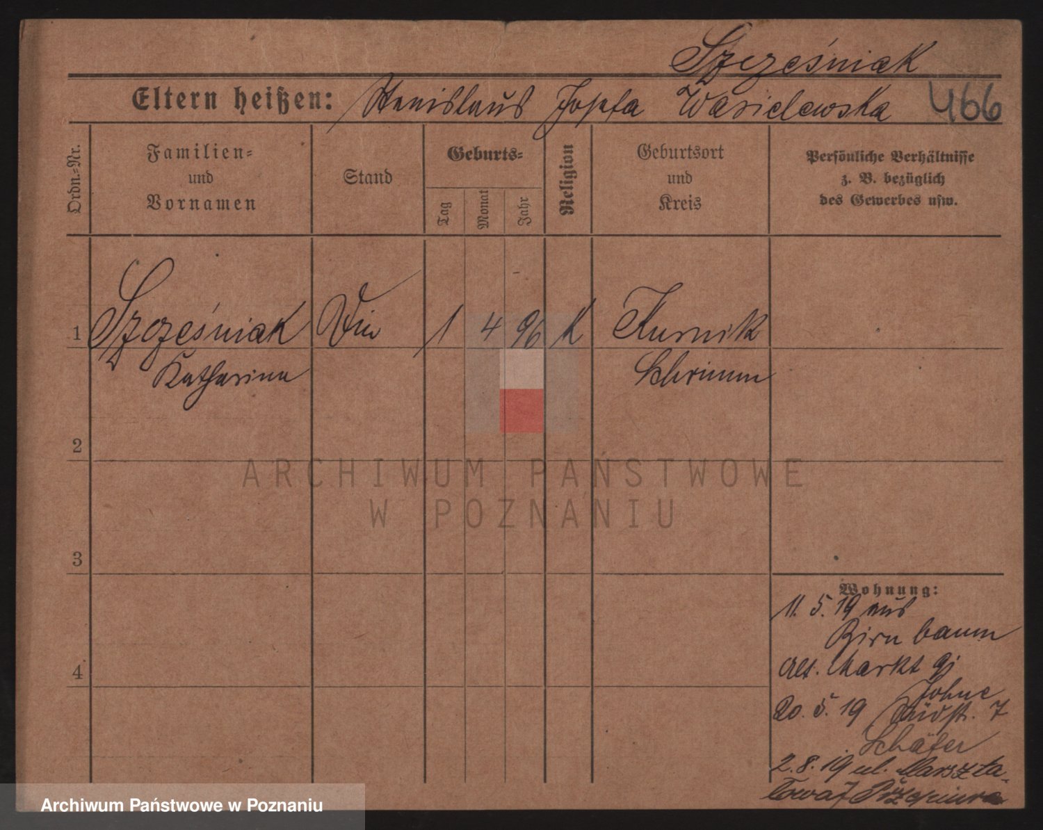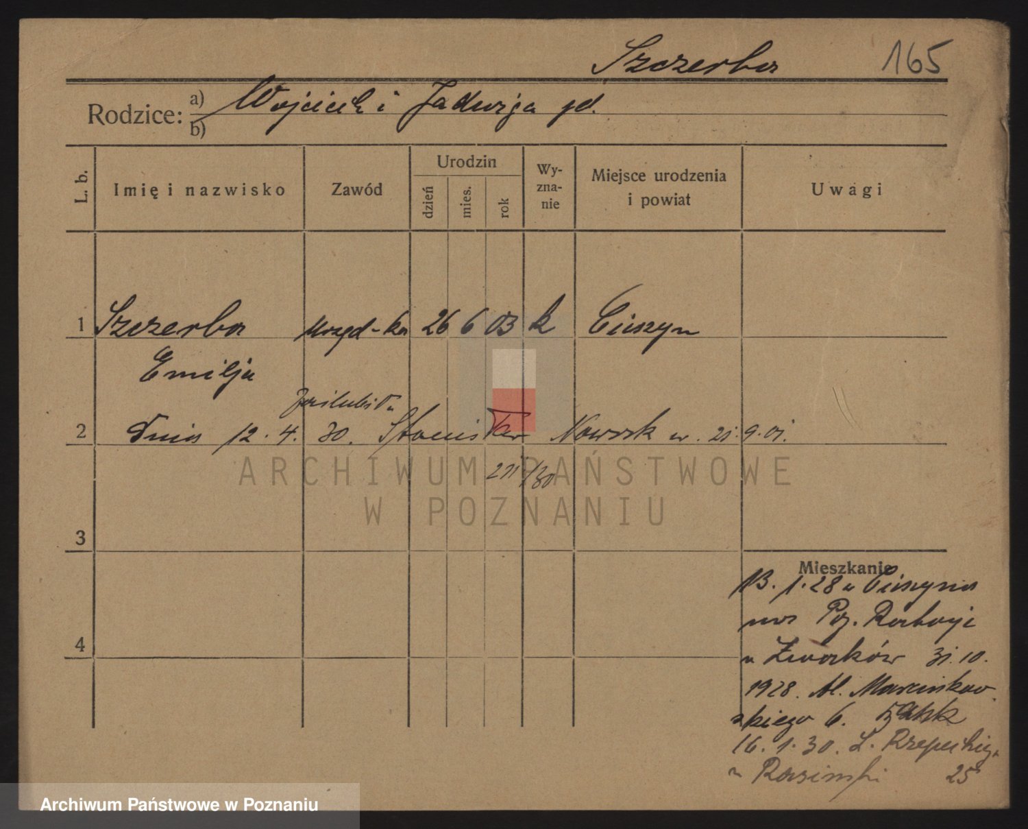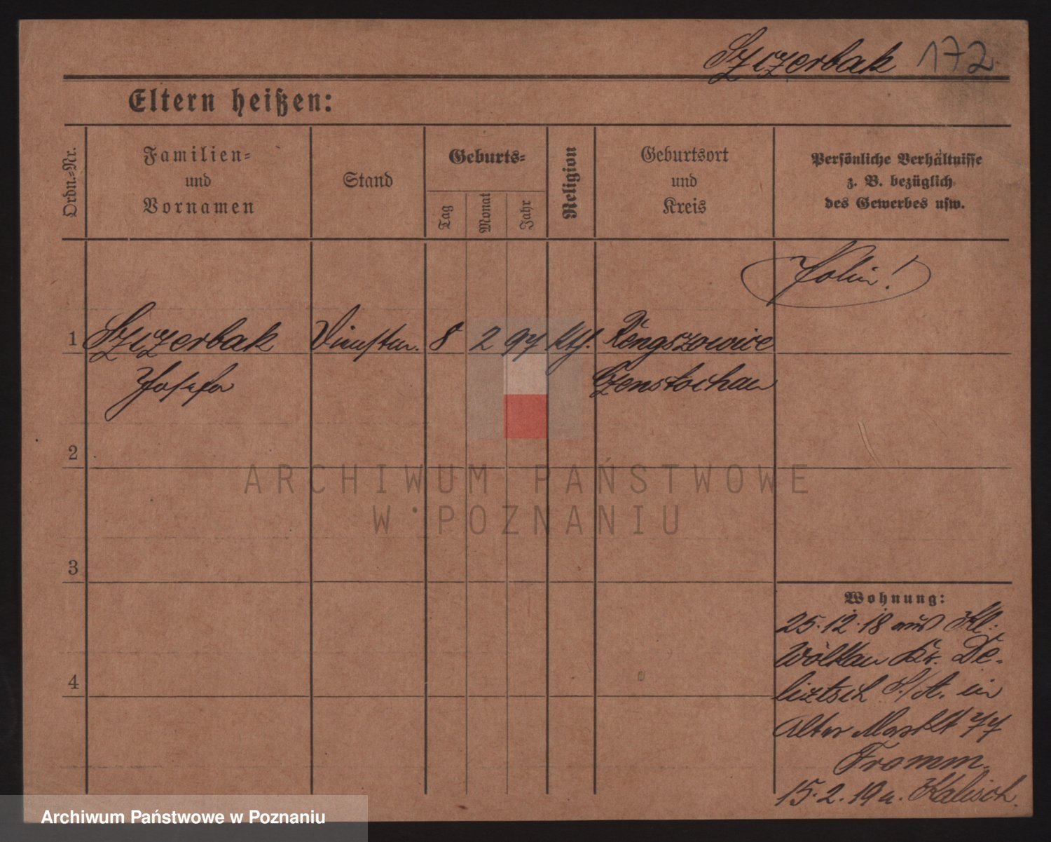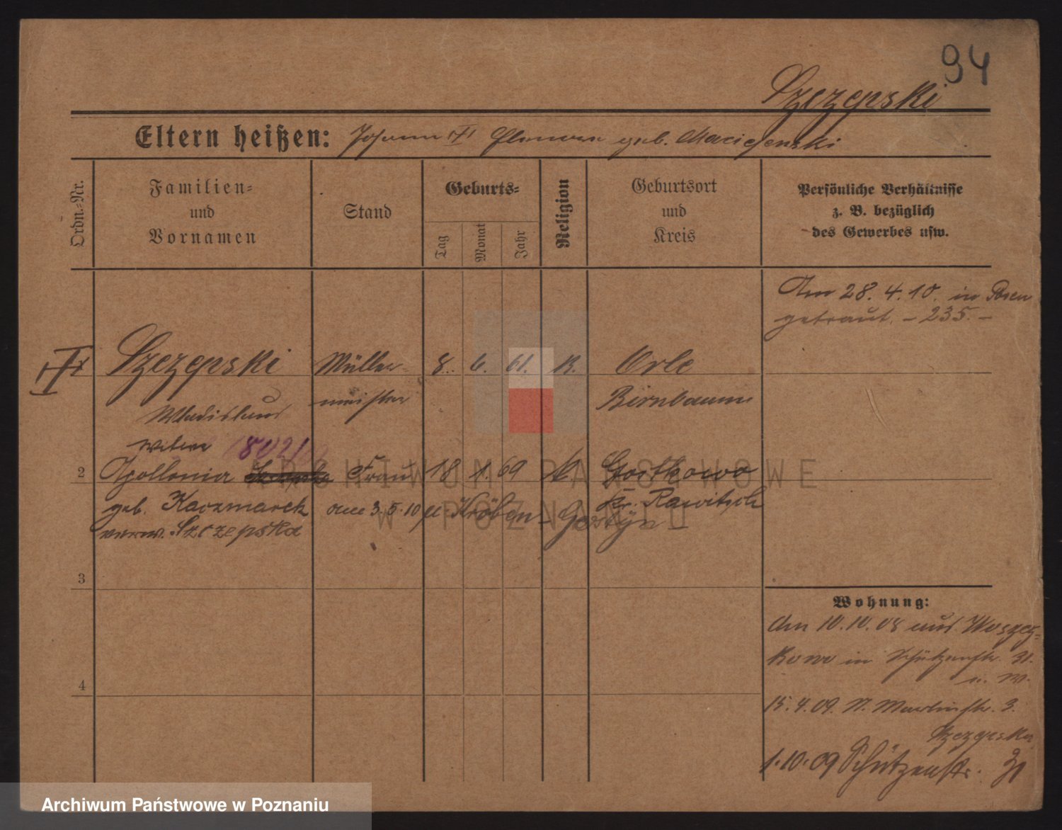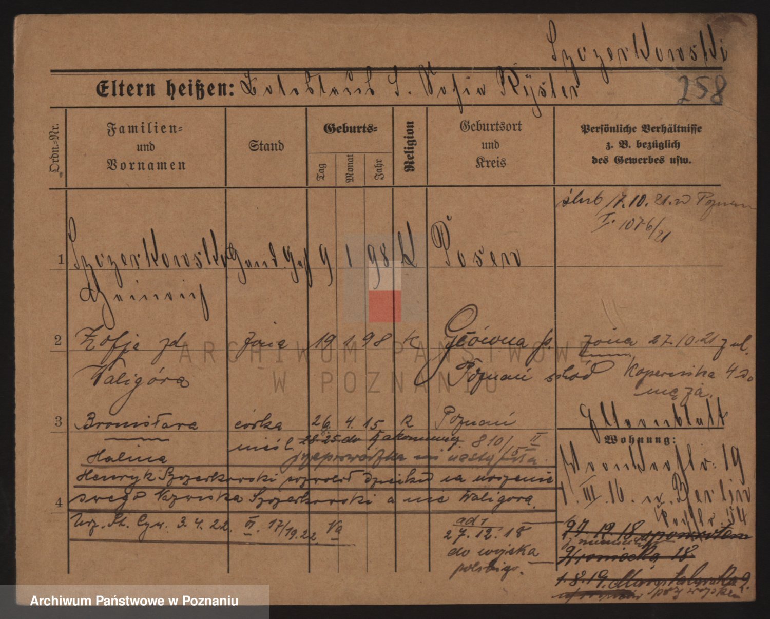 Podgląd karty osobowej dostępny jest po kliknięciu na nazwisko lub ikonkę karty. Można dokonywać powiększenia (ikony na górze) lub przechodzić między kolejnymi skanami (strzałki po bokach).