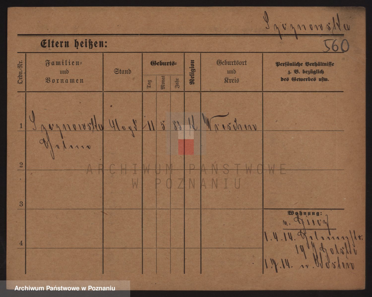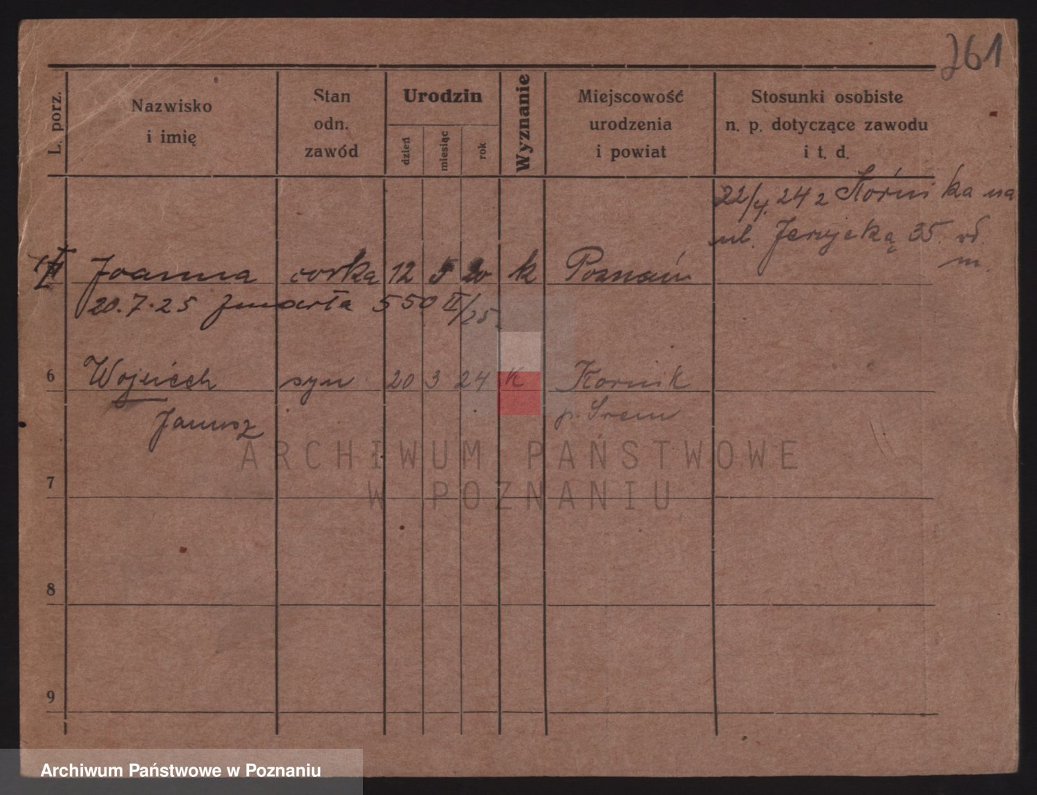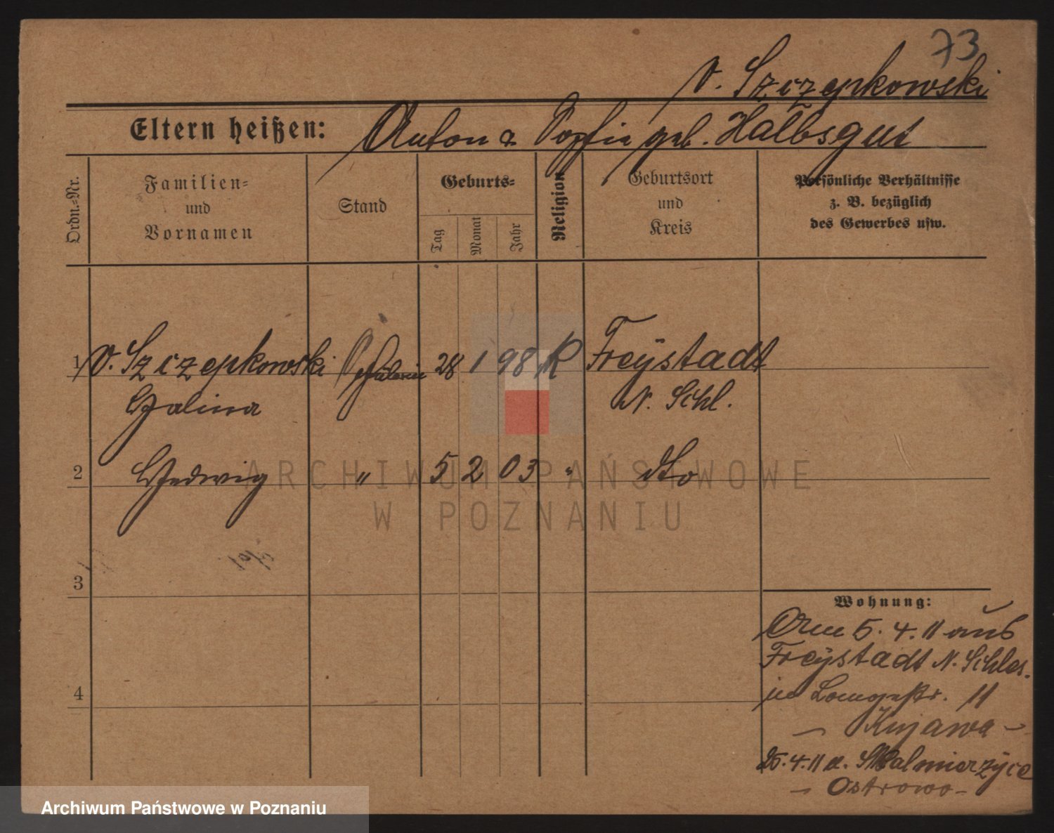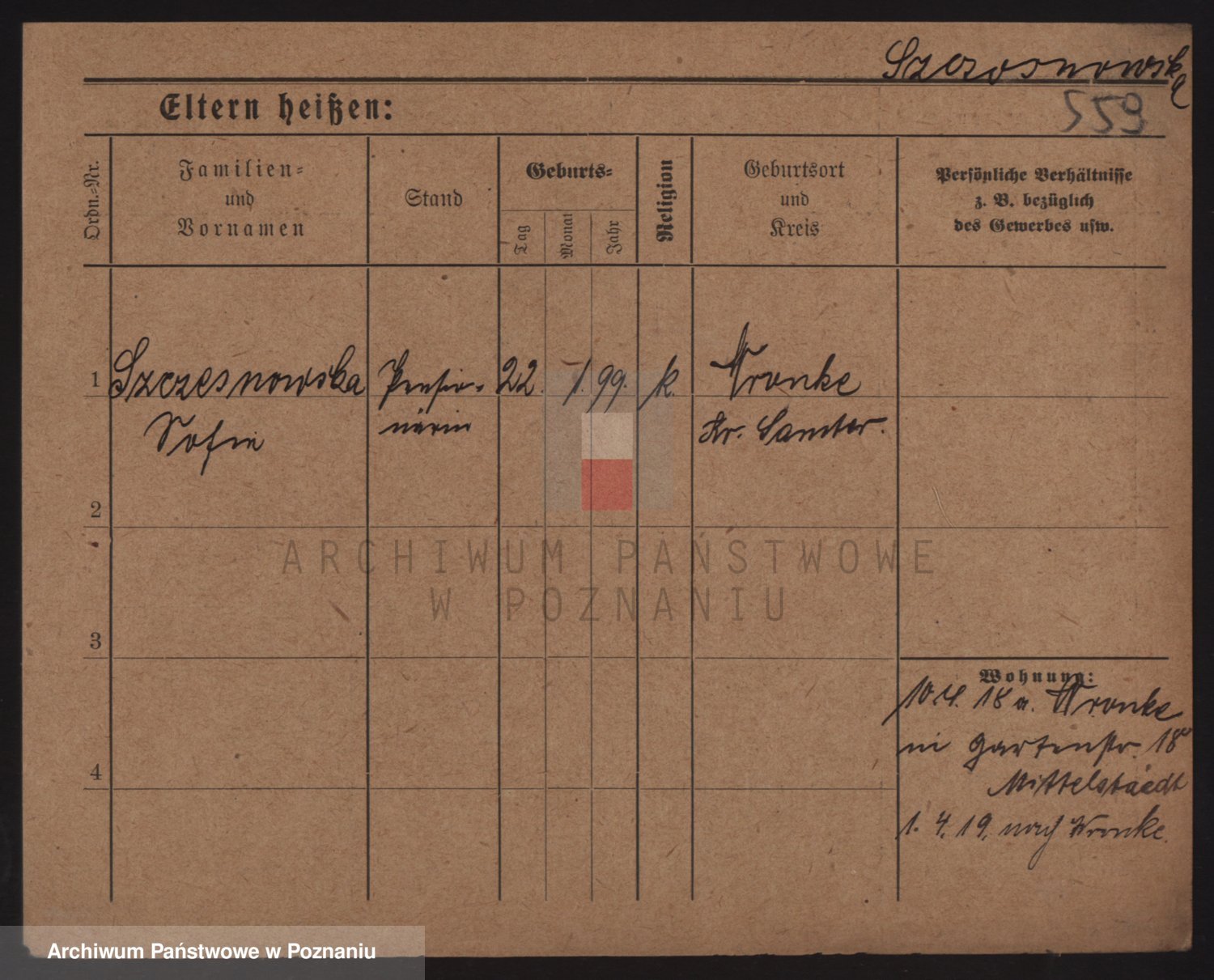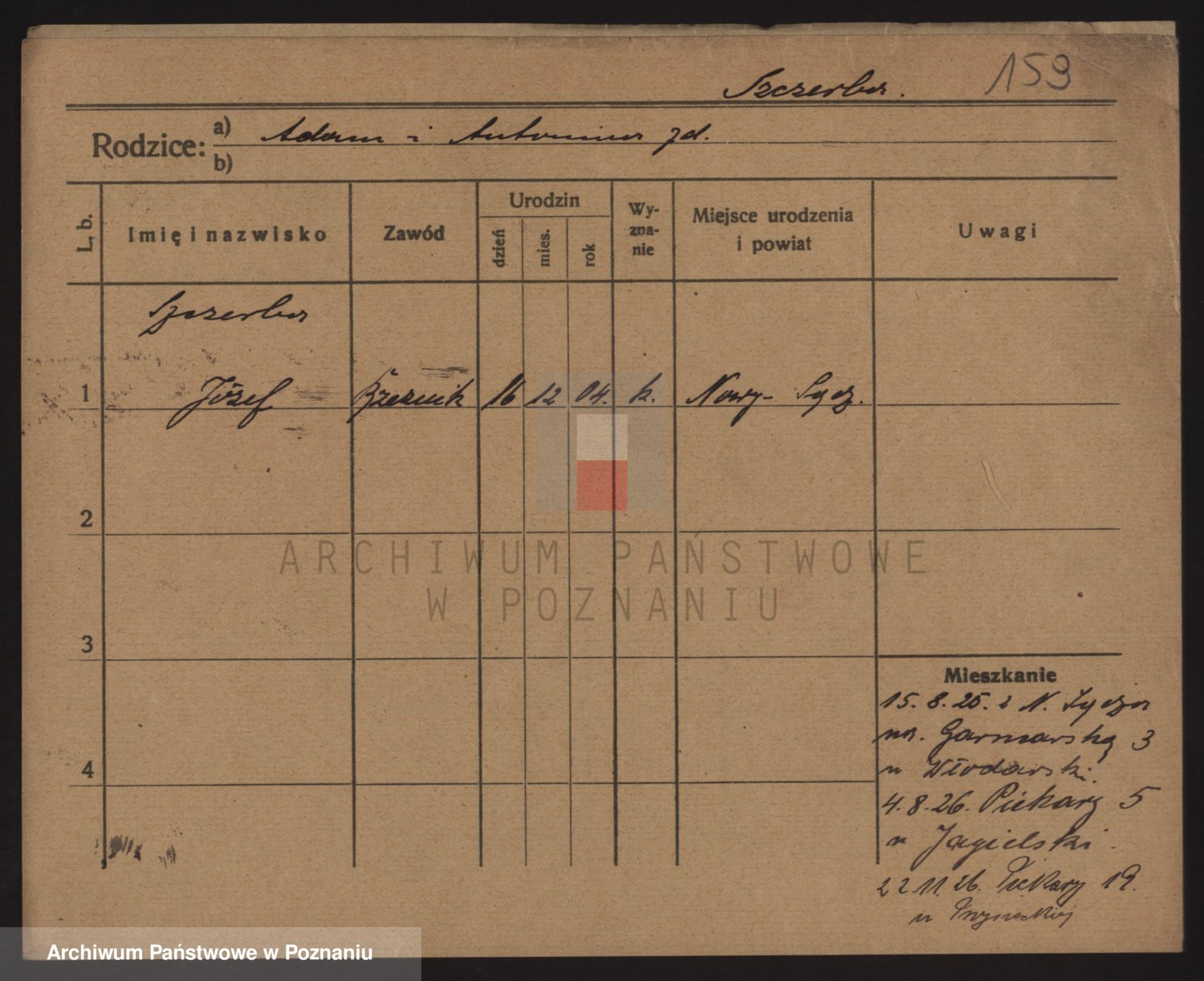 Podgląd karty osobowej dostępny jest po kliknięciu na nazwisko lub ikonkę karty. Można dokonywać powiększenia (ikony na górze) lub przechodzić między kolejnymi skanami (strzałki po bokach).
