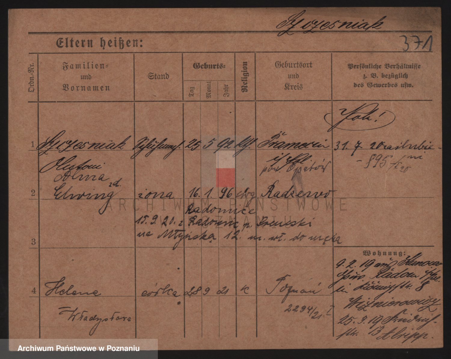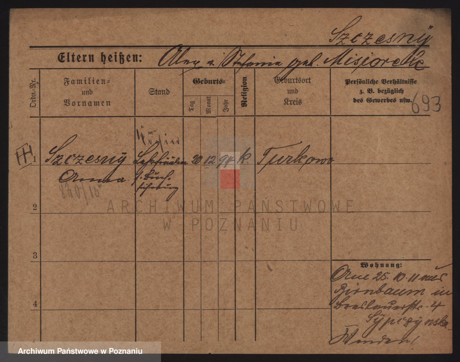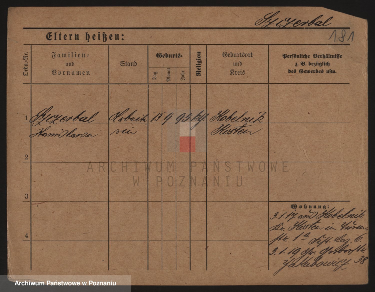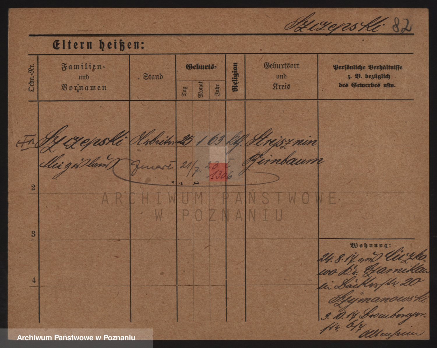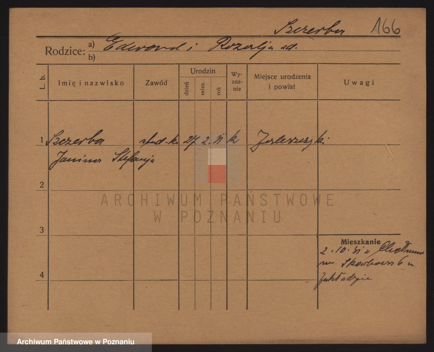 Podgląd karty osobowej dostępny jest po kliknięciu na nazwisko lub ikonkę karty. Można dokonywać powiększenia (ikony na górze) lub przechodzić między kolejnymi skanami (strzałki po bokach).