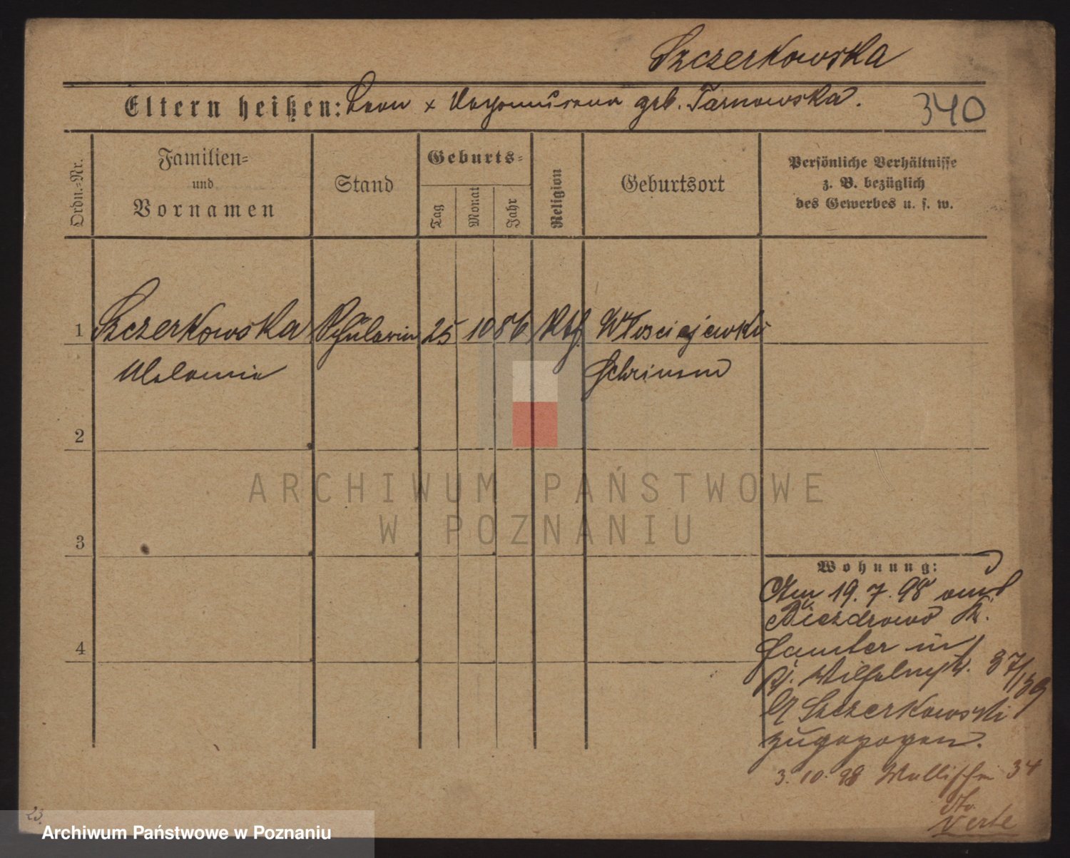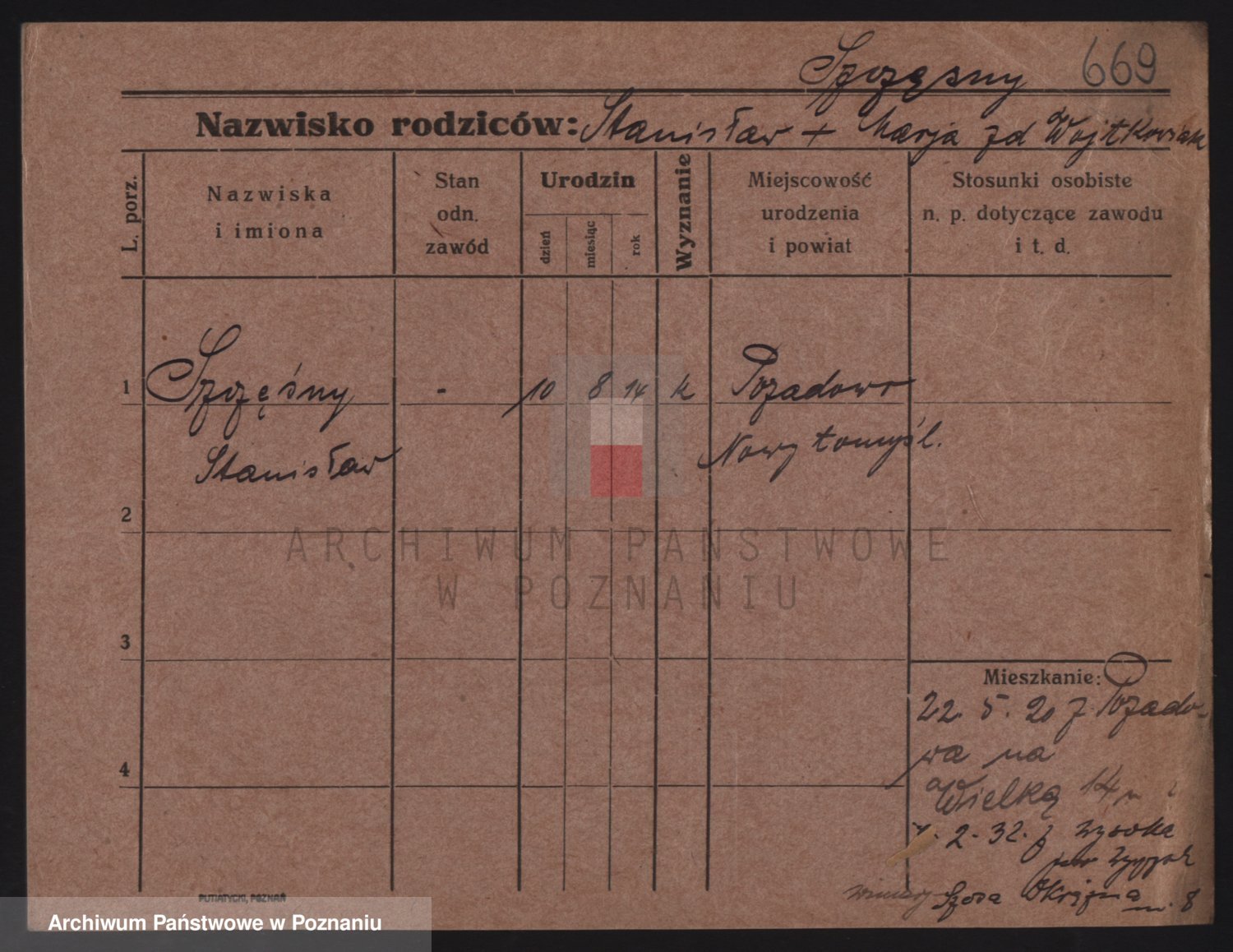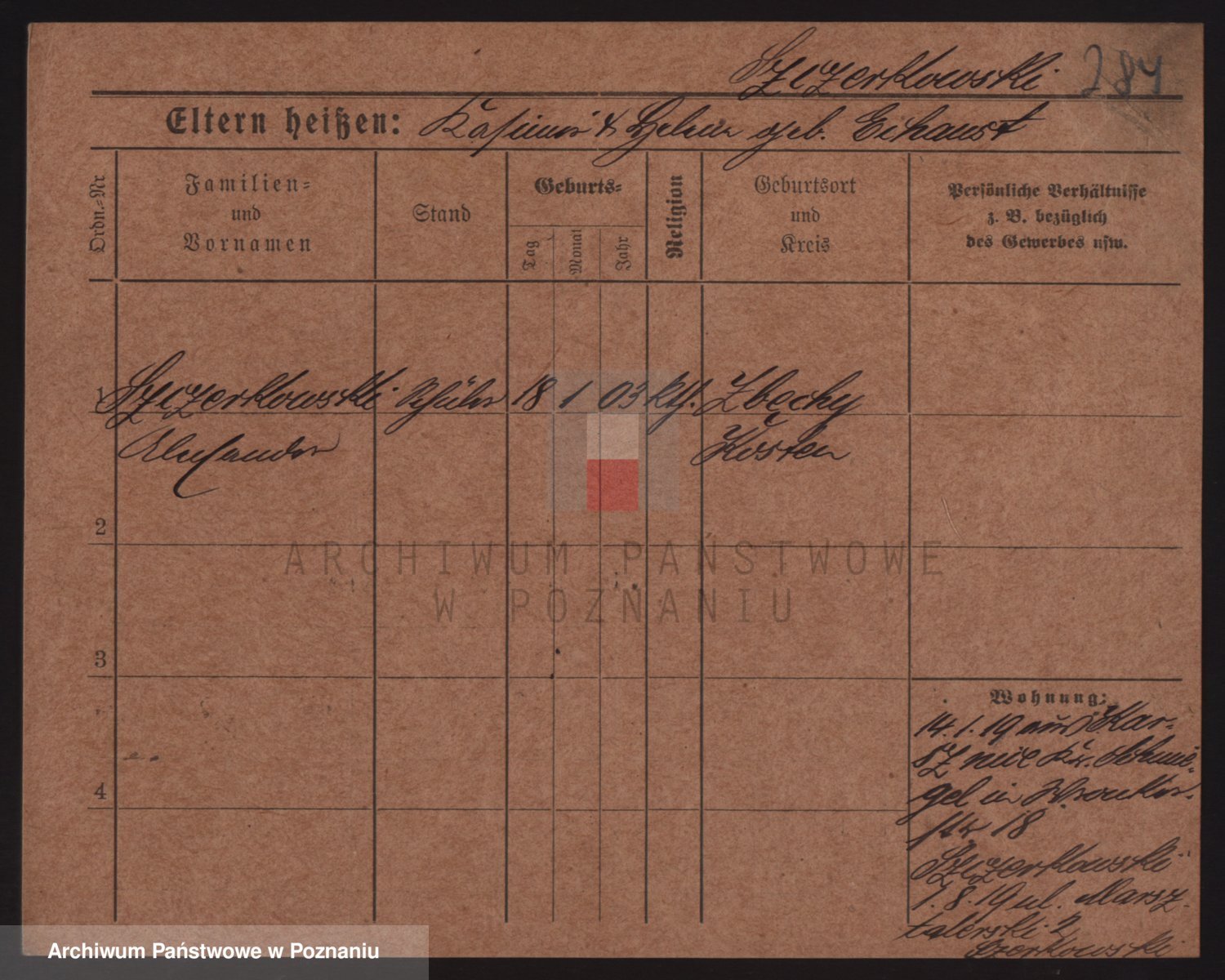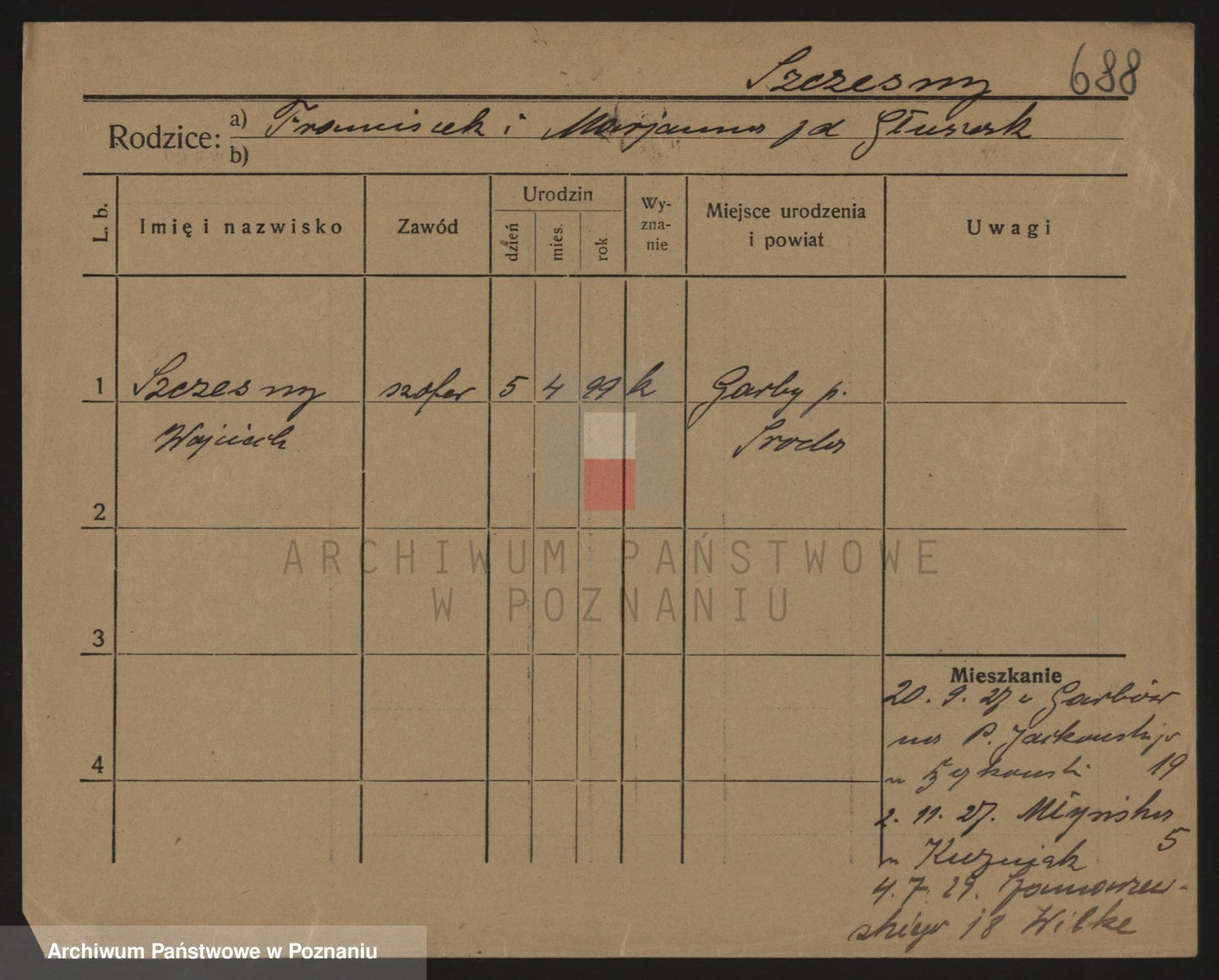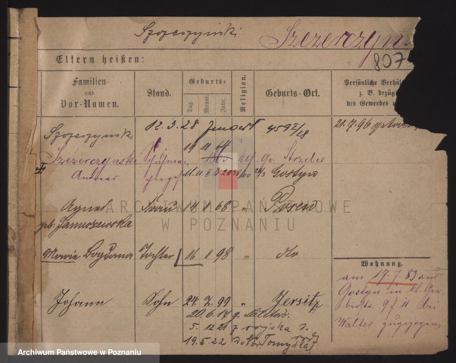 Podgląd karty osobowej dostępny jest po kliknięciu na nazwisko lub ikonkę karty. Można dokonywać powiększenia (ikony na górze) lub przechodzić między kolejnymi skanami (strzałki po bokach).