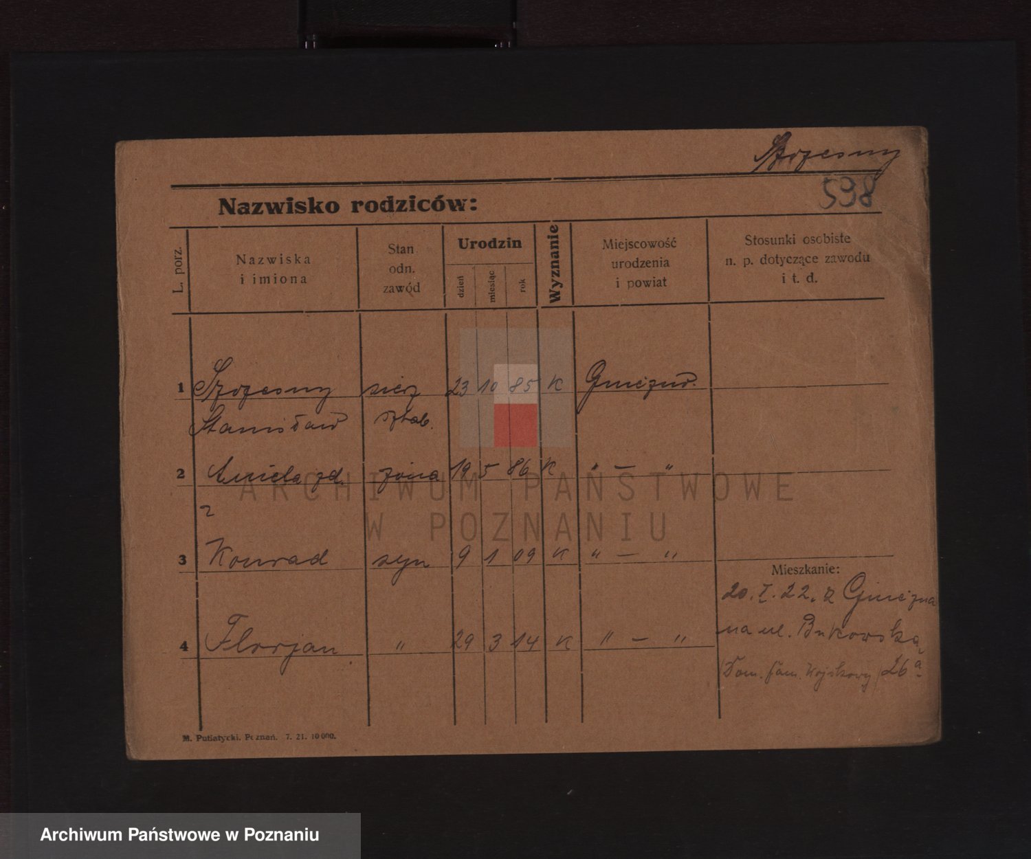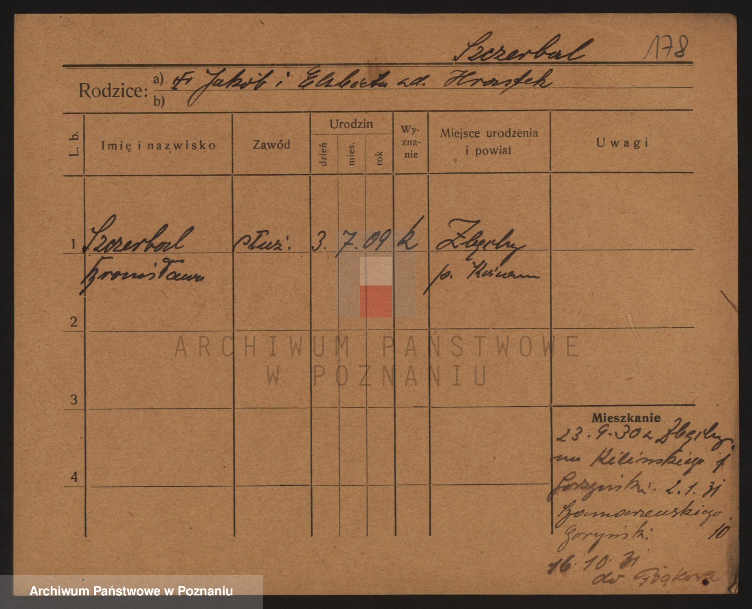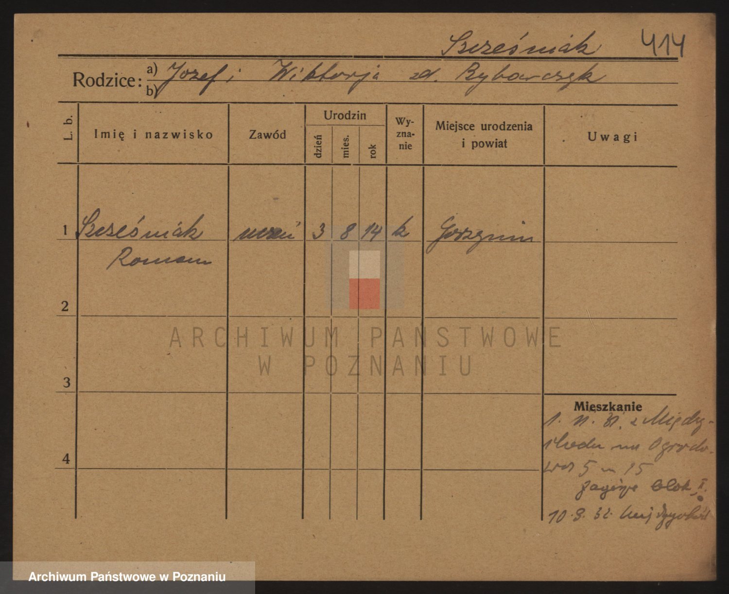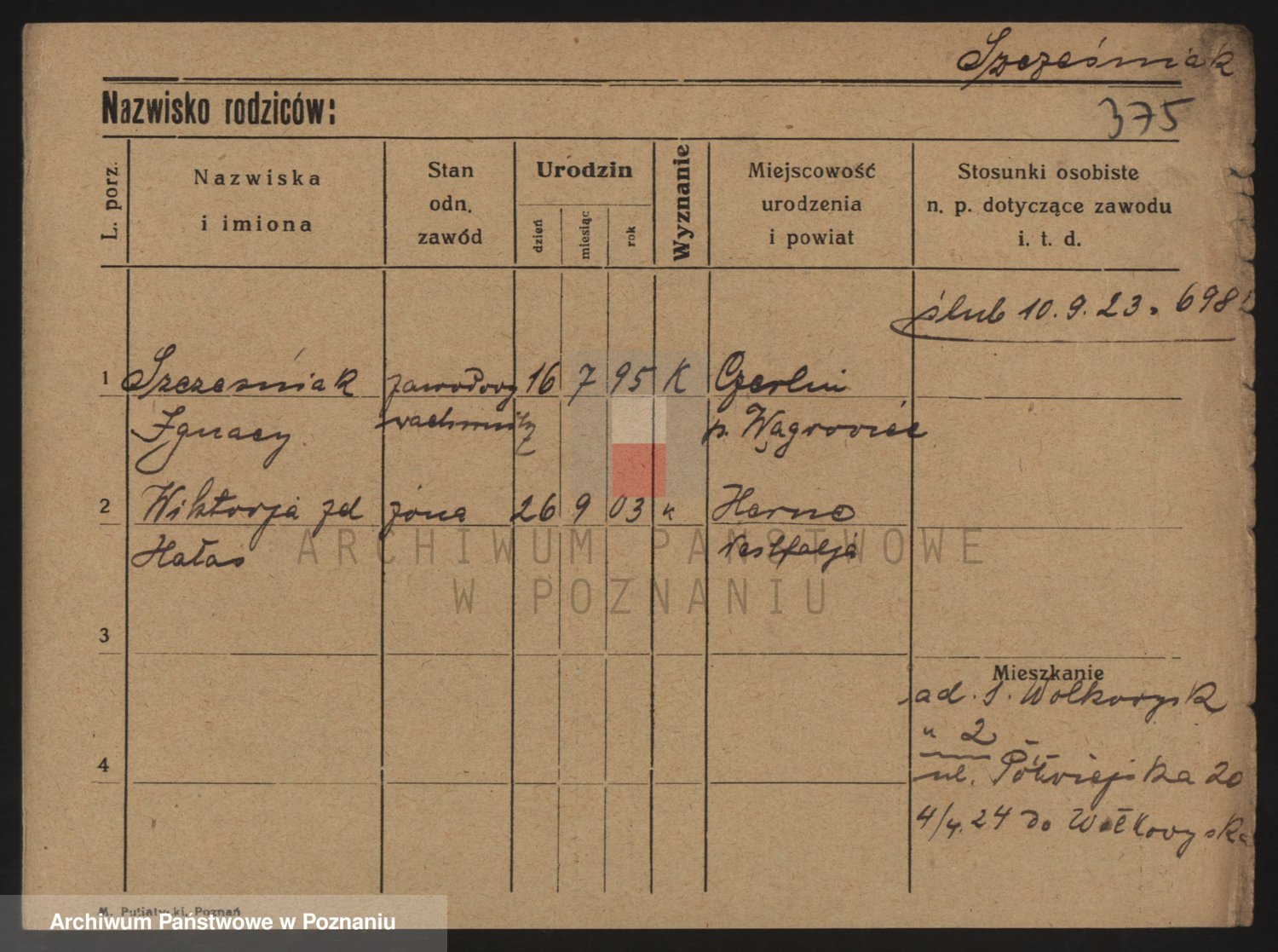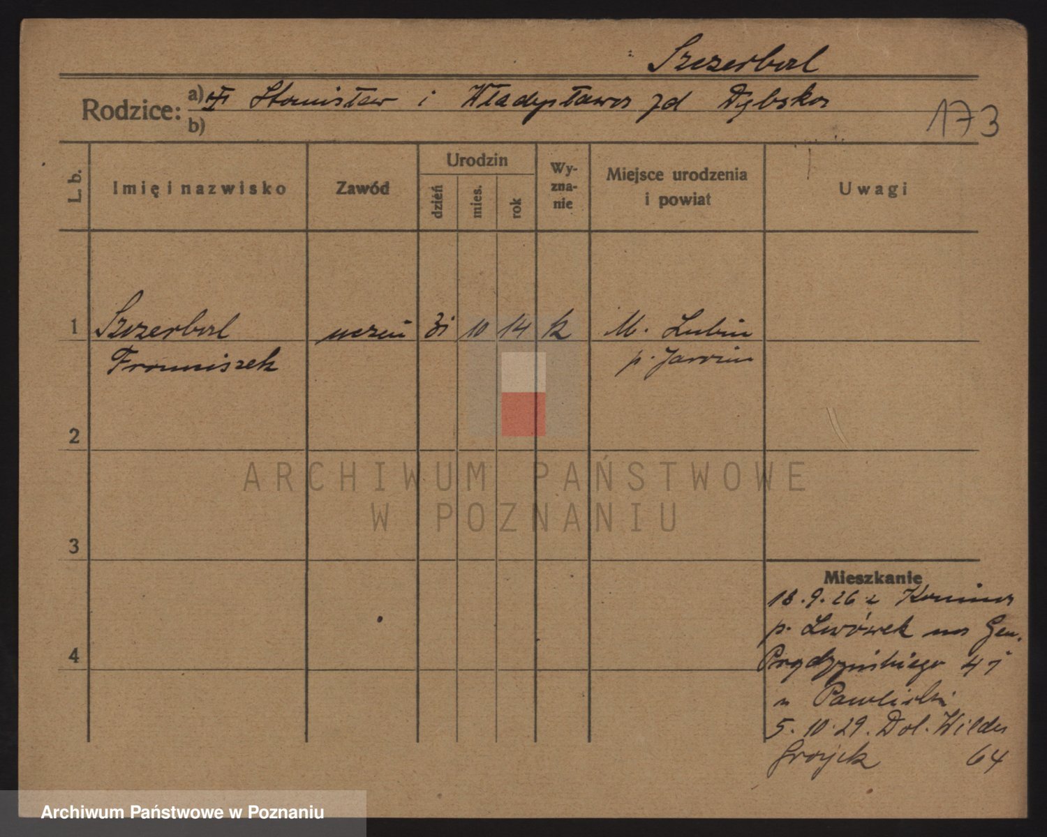 Podgląd karty osobowej dostępny jest po kliknięciu na nazwisko lub ikonkę karty. Można dokonywać powiększenia (ikony na górze) lub przechodzić między kolejnymi skanami (strzałki po bokach).