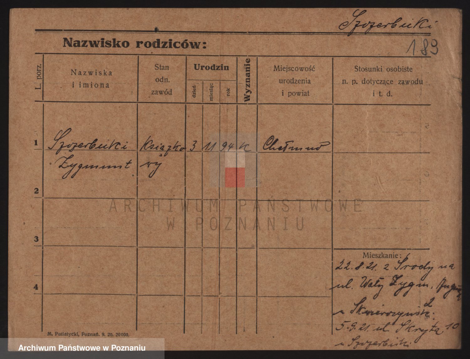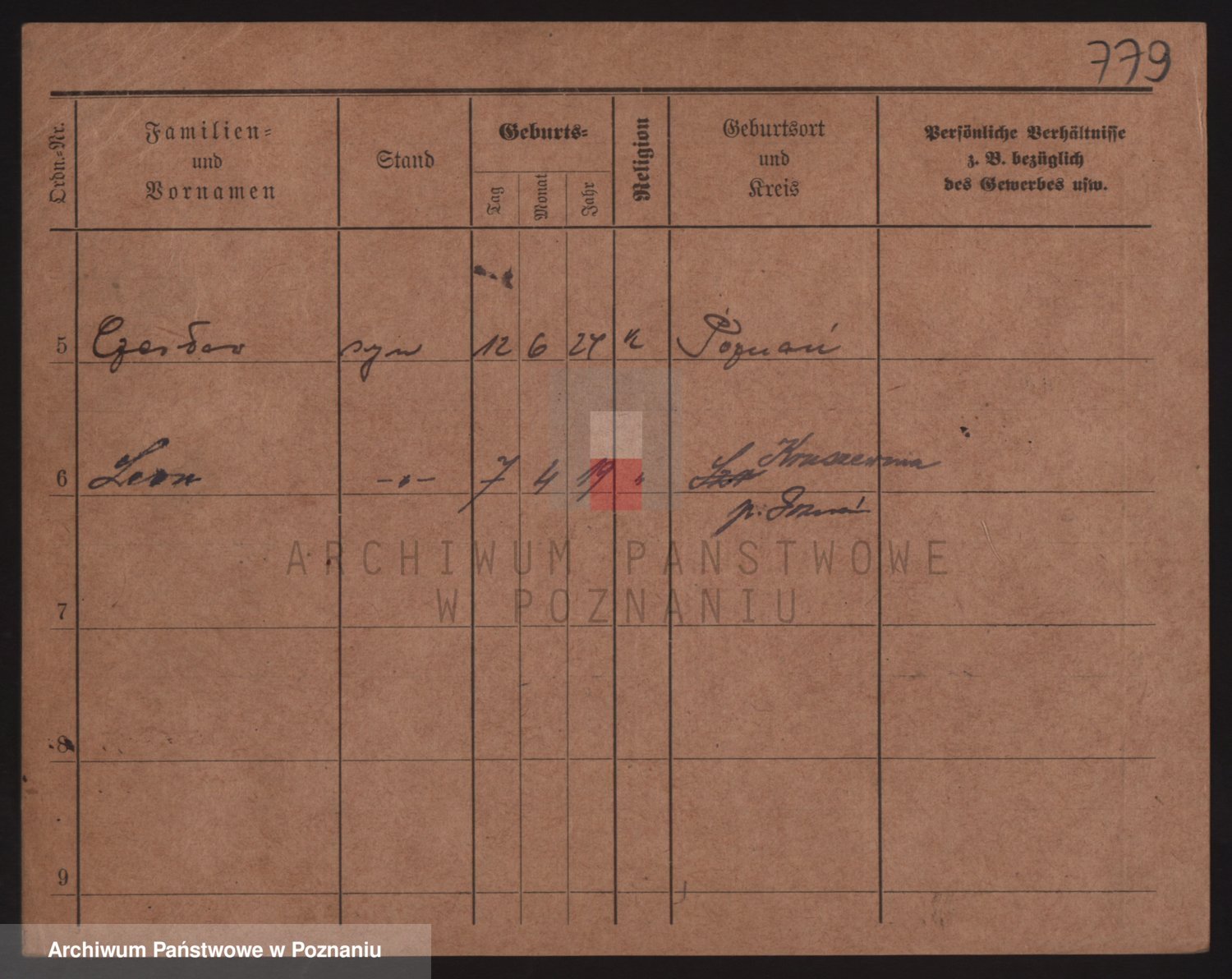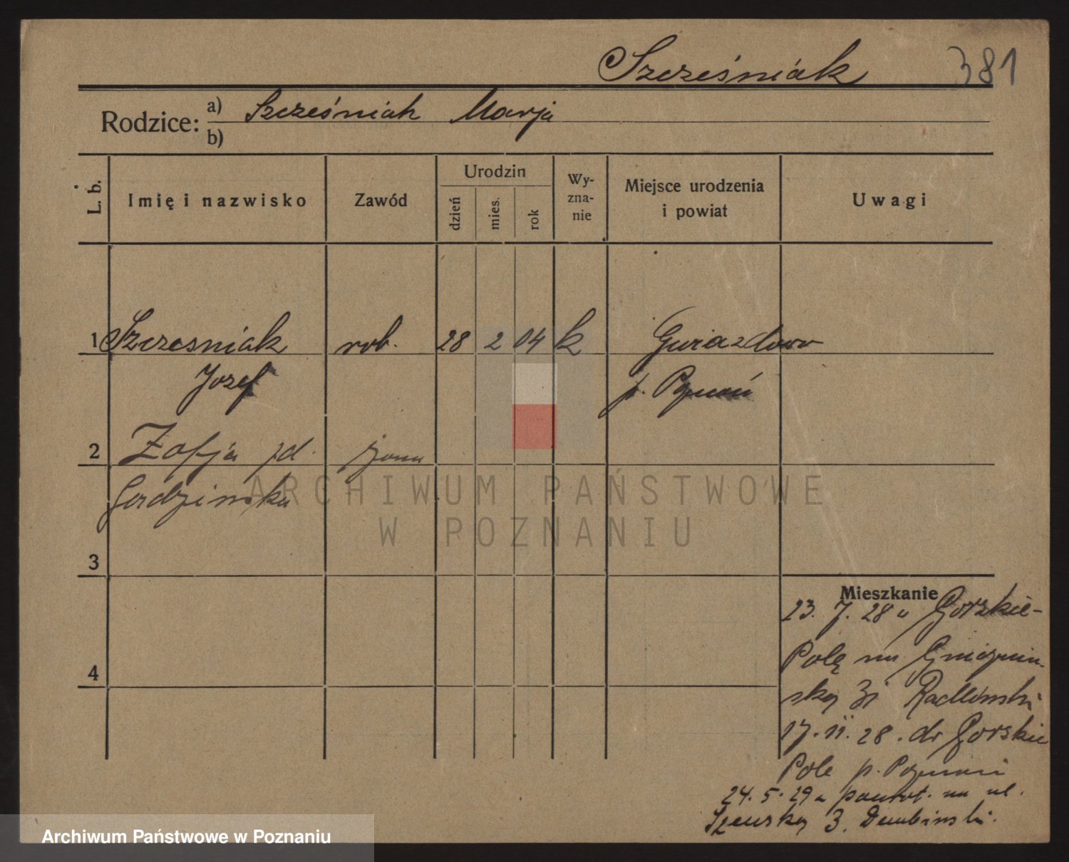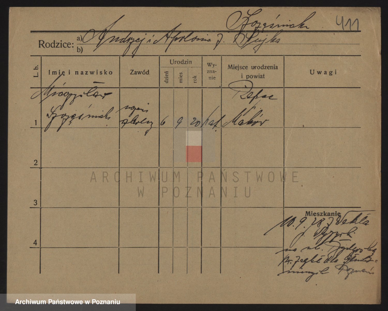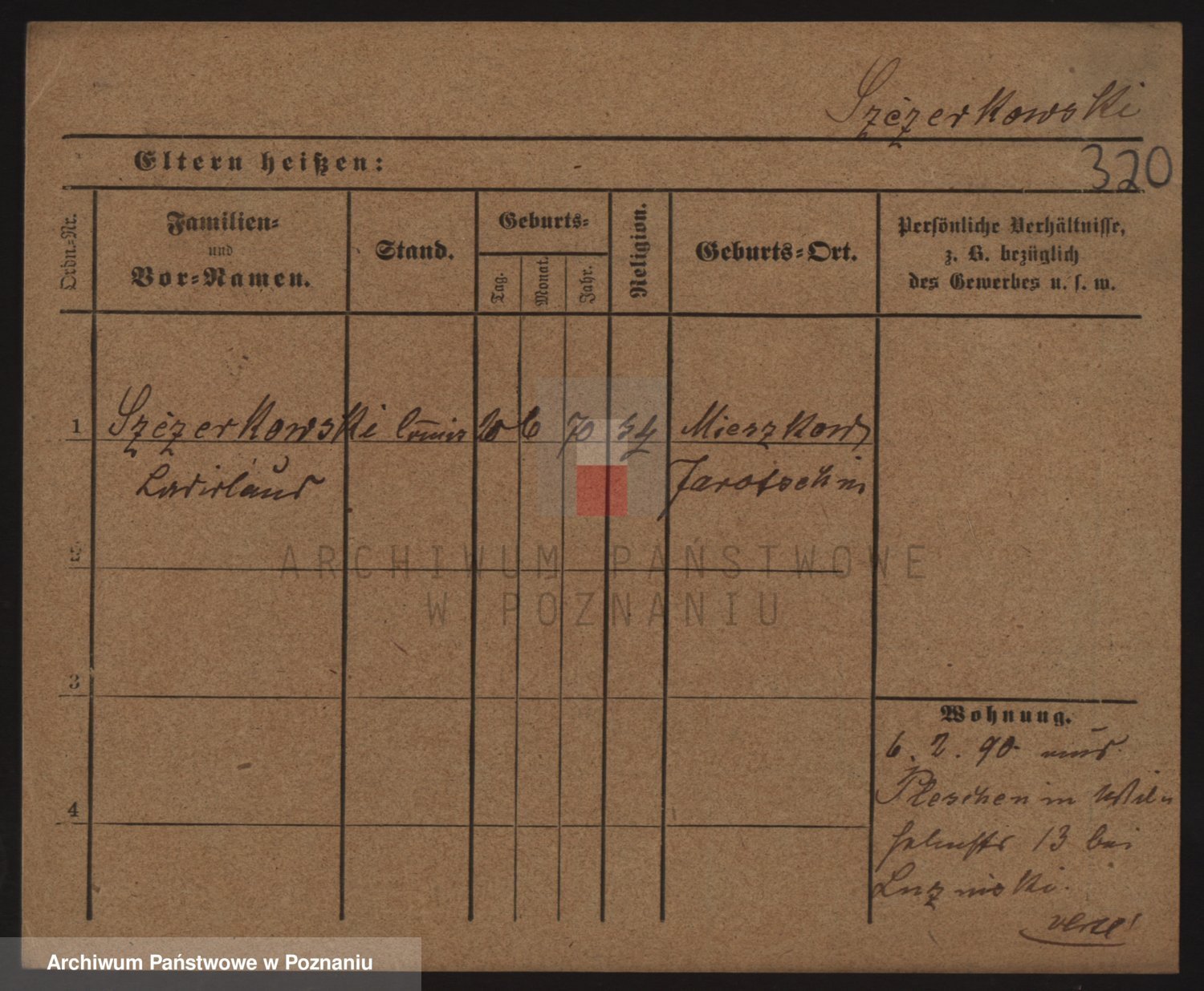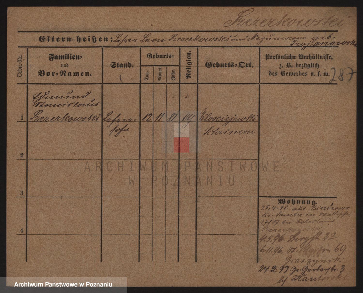 Podgląd karty osobowej dostępny jest po kliknięciu na nazwisko lub ikonkę karty. Można dokonywać powiększenia (ikony na górze) lub przechodzić między kolejnymi skanami (strzałki po bokach).
