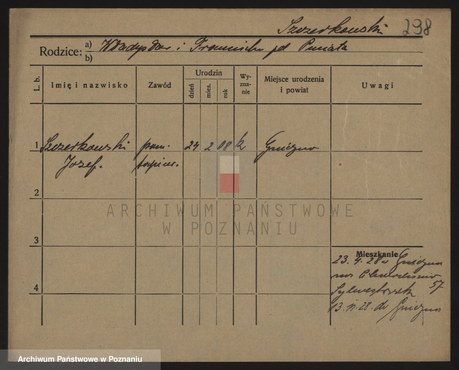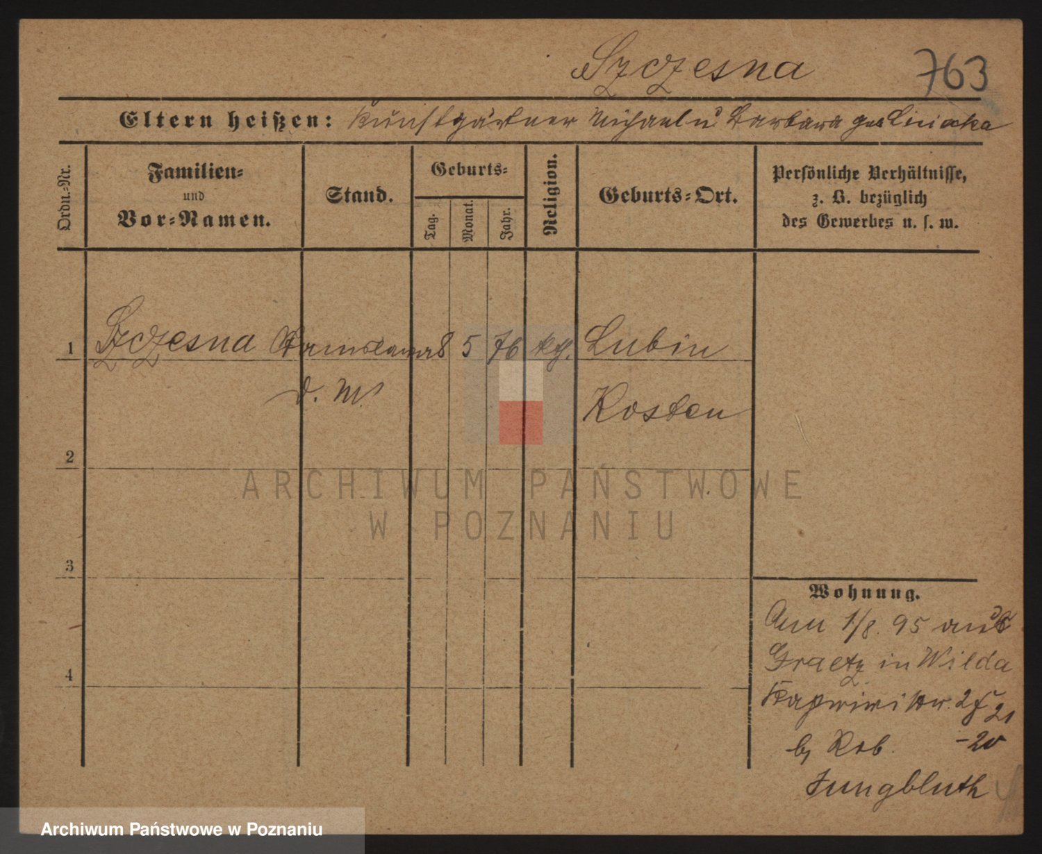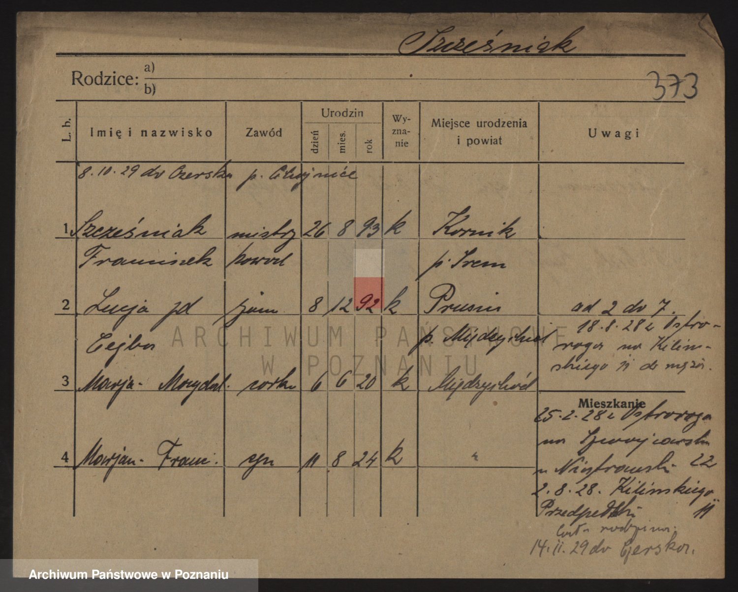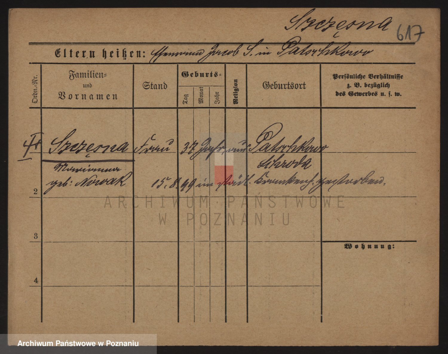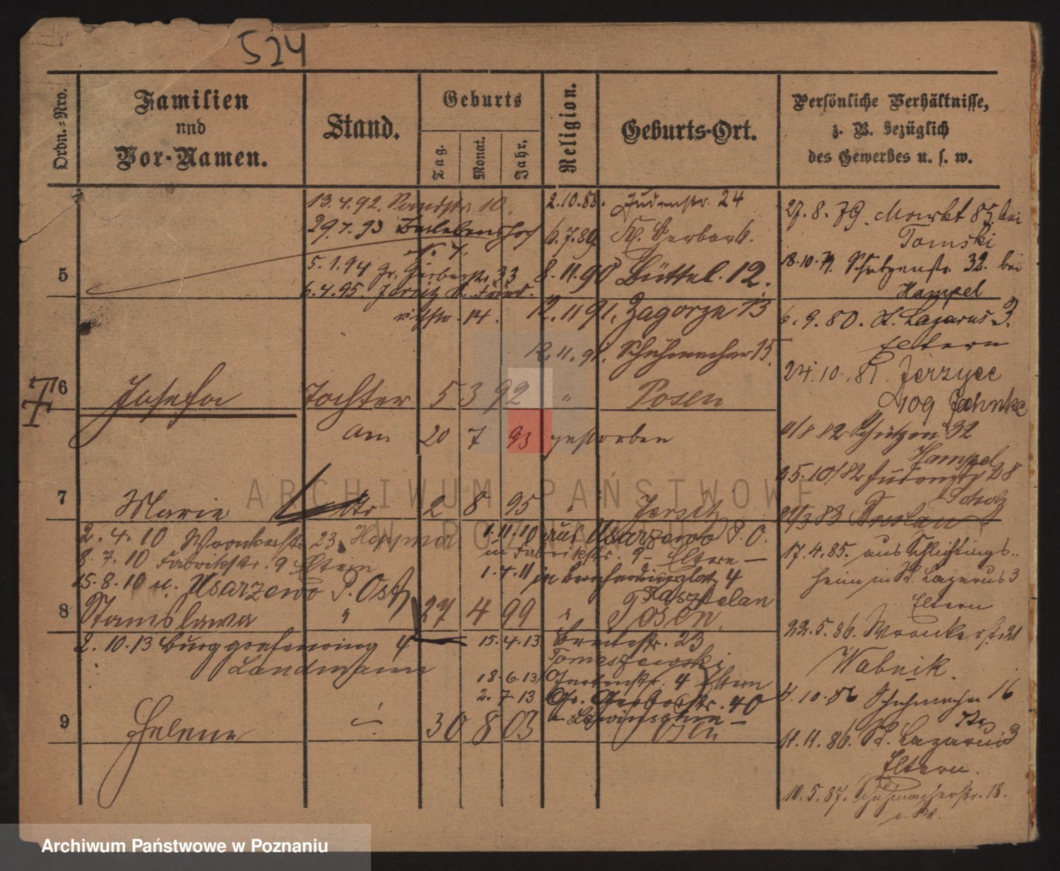 Podgląd karty osobowej dostępny jest po kliknięciu na nazwisko lub ikonkę karty. Można dokonywać powiększenia (ikony na górze) lub przechodzić między kolejnymi skanami (strzałki po bokach).
