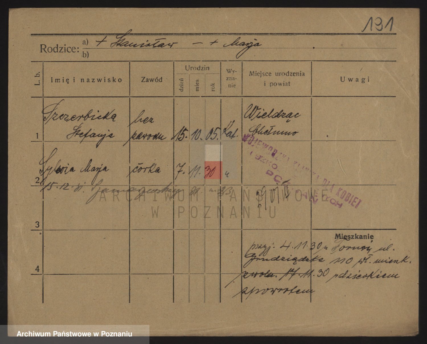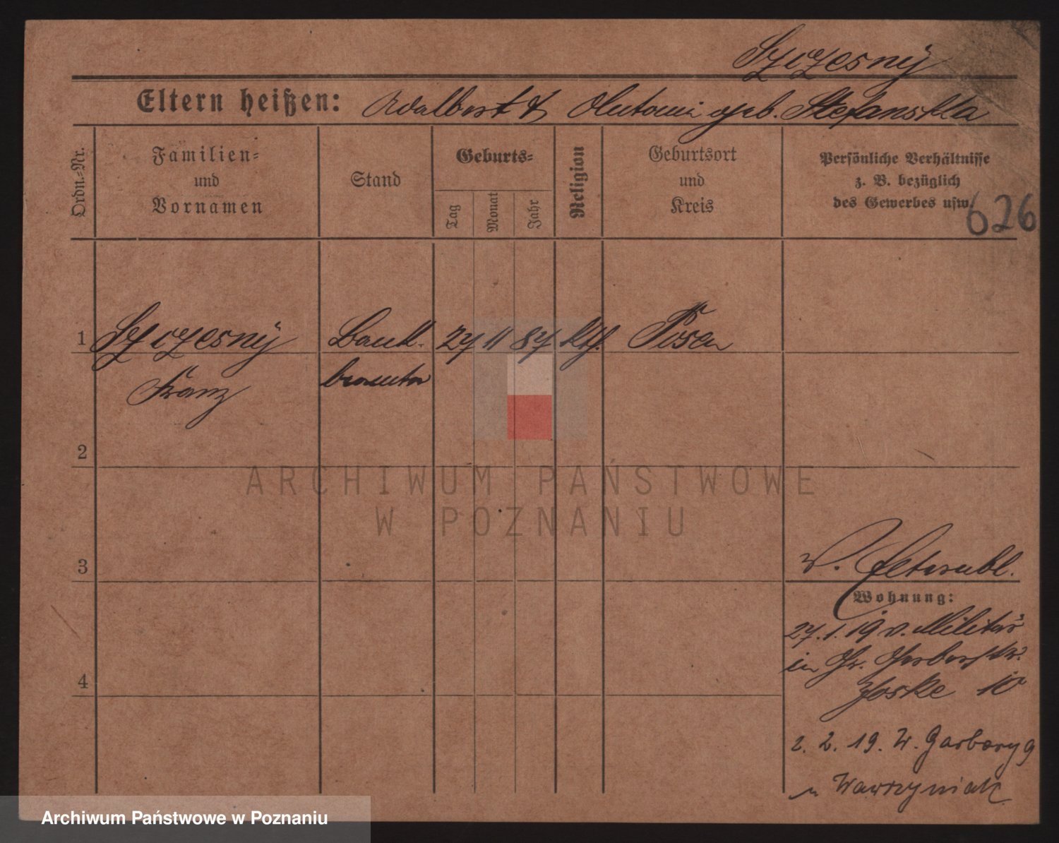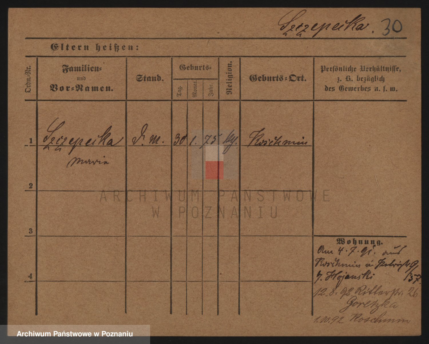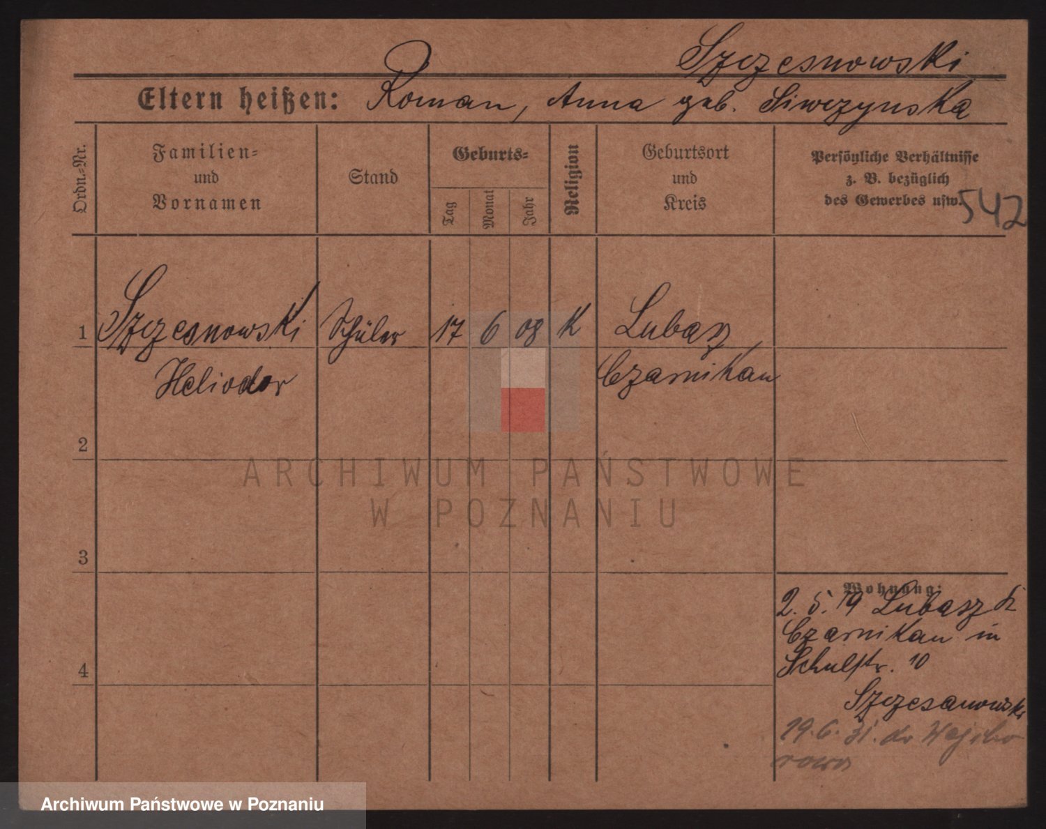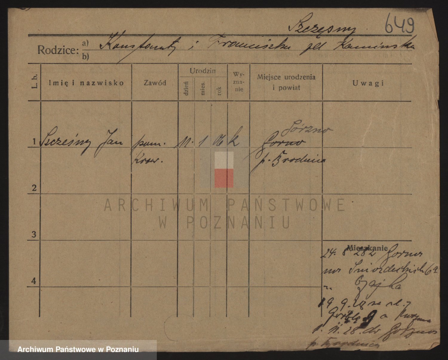 Podgląd karty osobowej dostępny jest po kliknięciu na nazwisko lub ikonkę karty. Można dokonywać powiększenia (ikony na górze) lub przechodzić między kolejnymi skanami (strzałki po bokach).