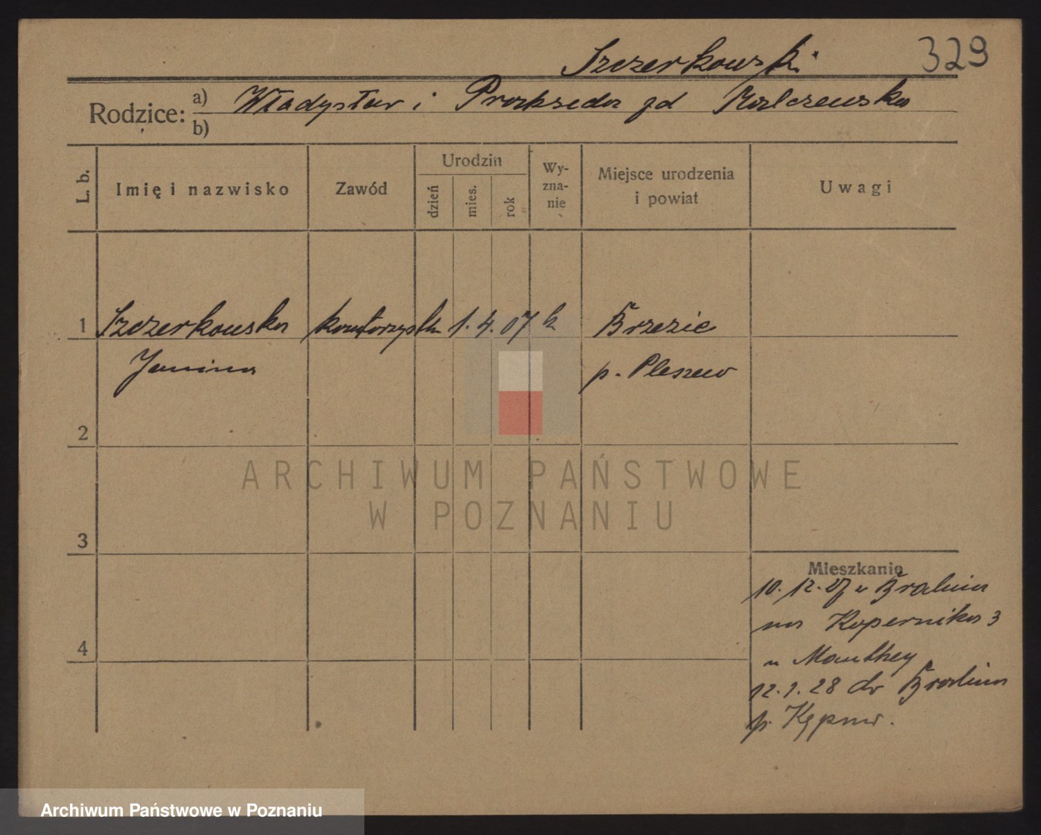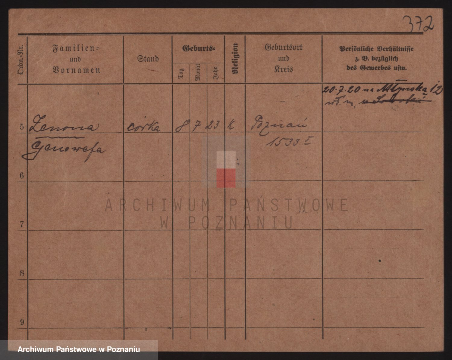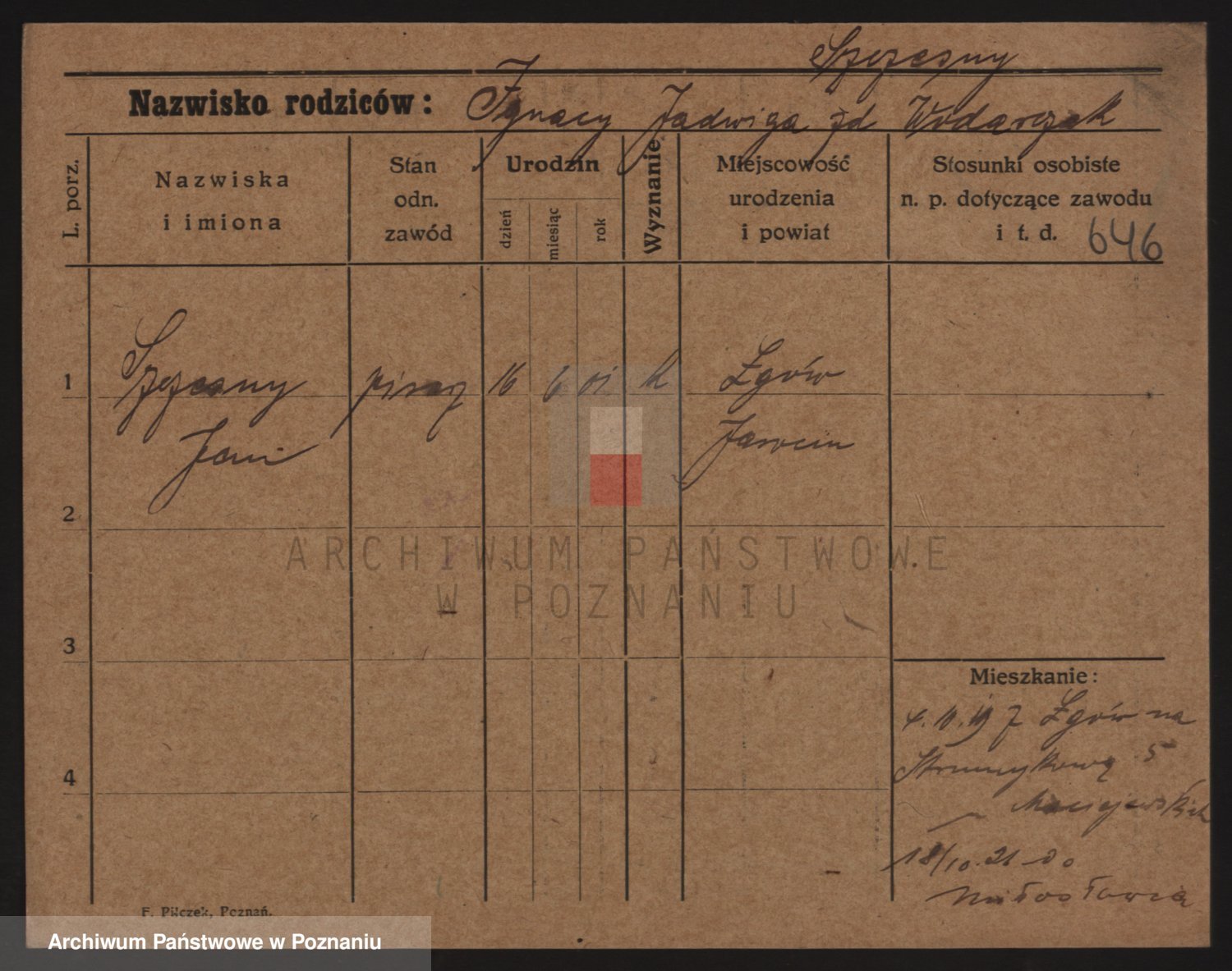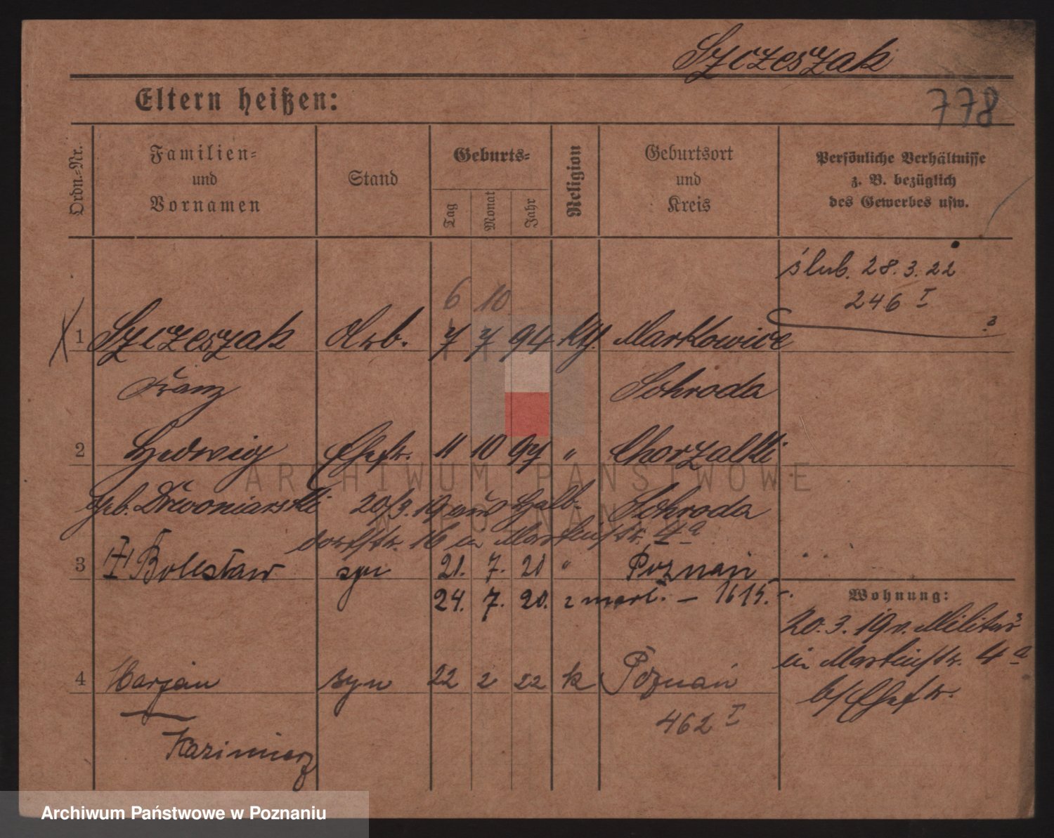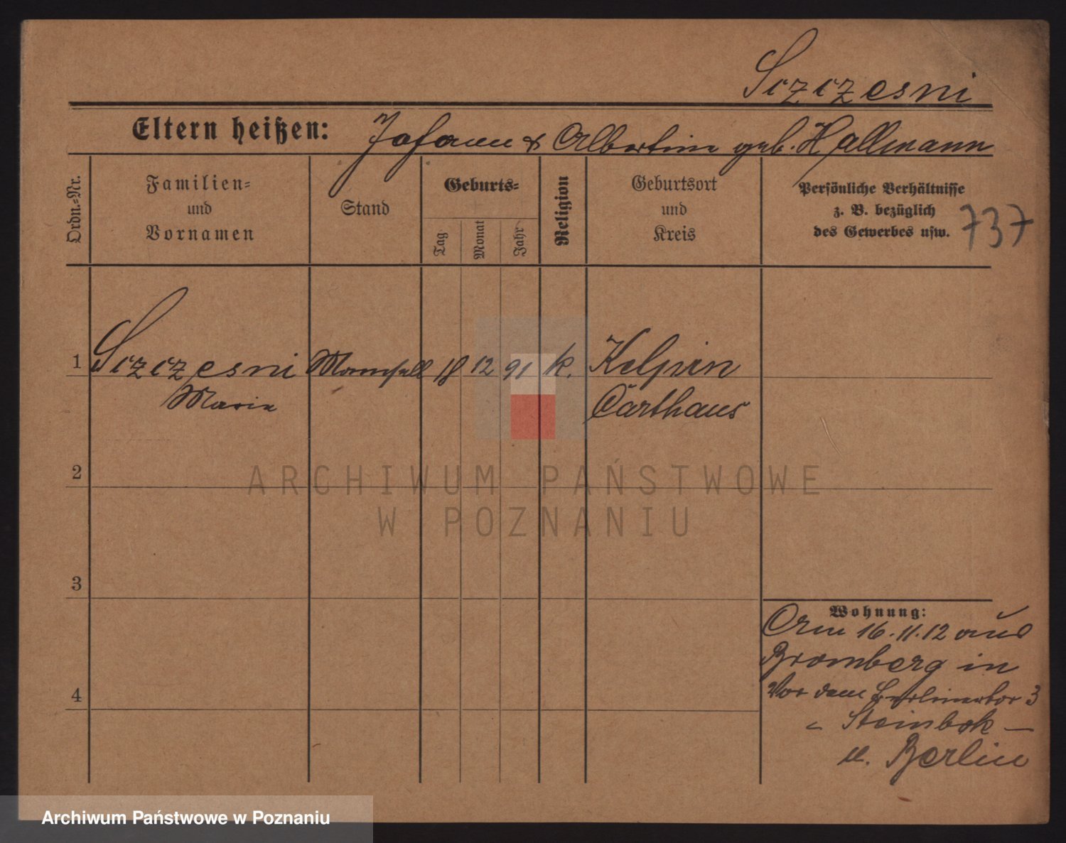 Podgląd karty osobowej dostępny jest po kliknięciu na nazwisko lub ikonkę karty. Można dokonywać powiększenia (ikony na górze) lub przechodzić między kolejnymi skanami (strzałki po bokach).
