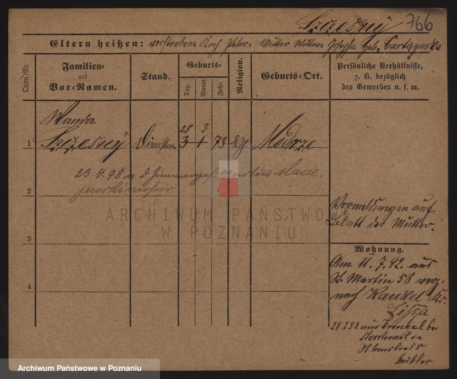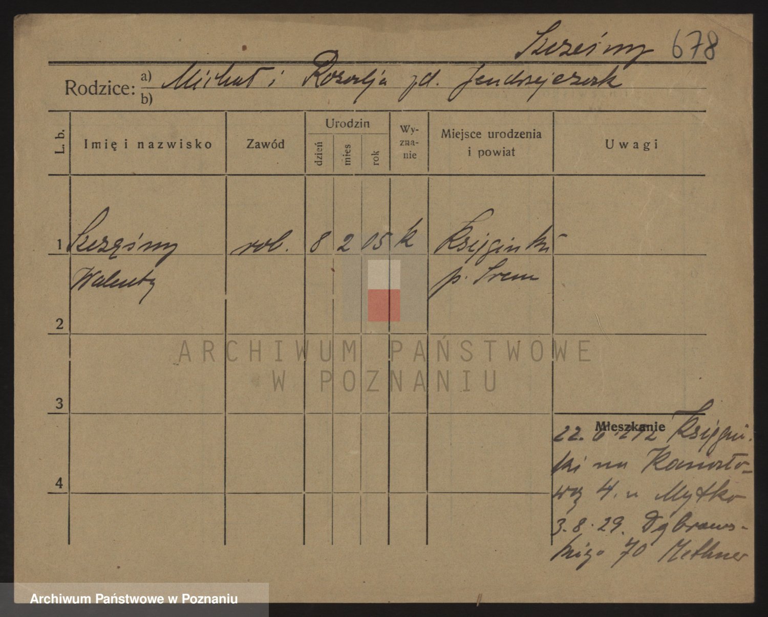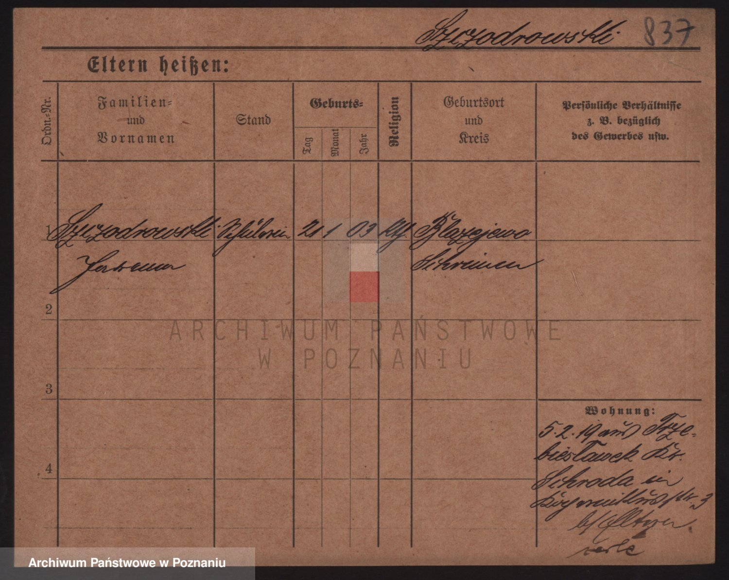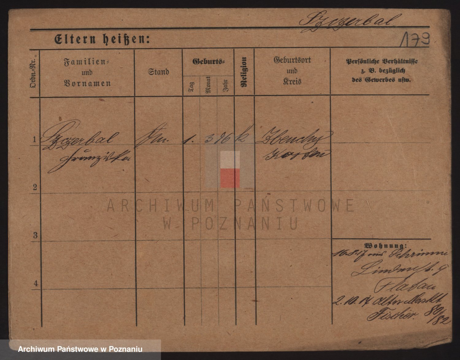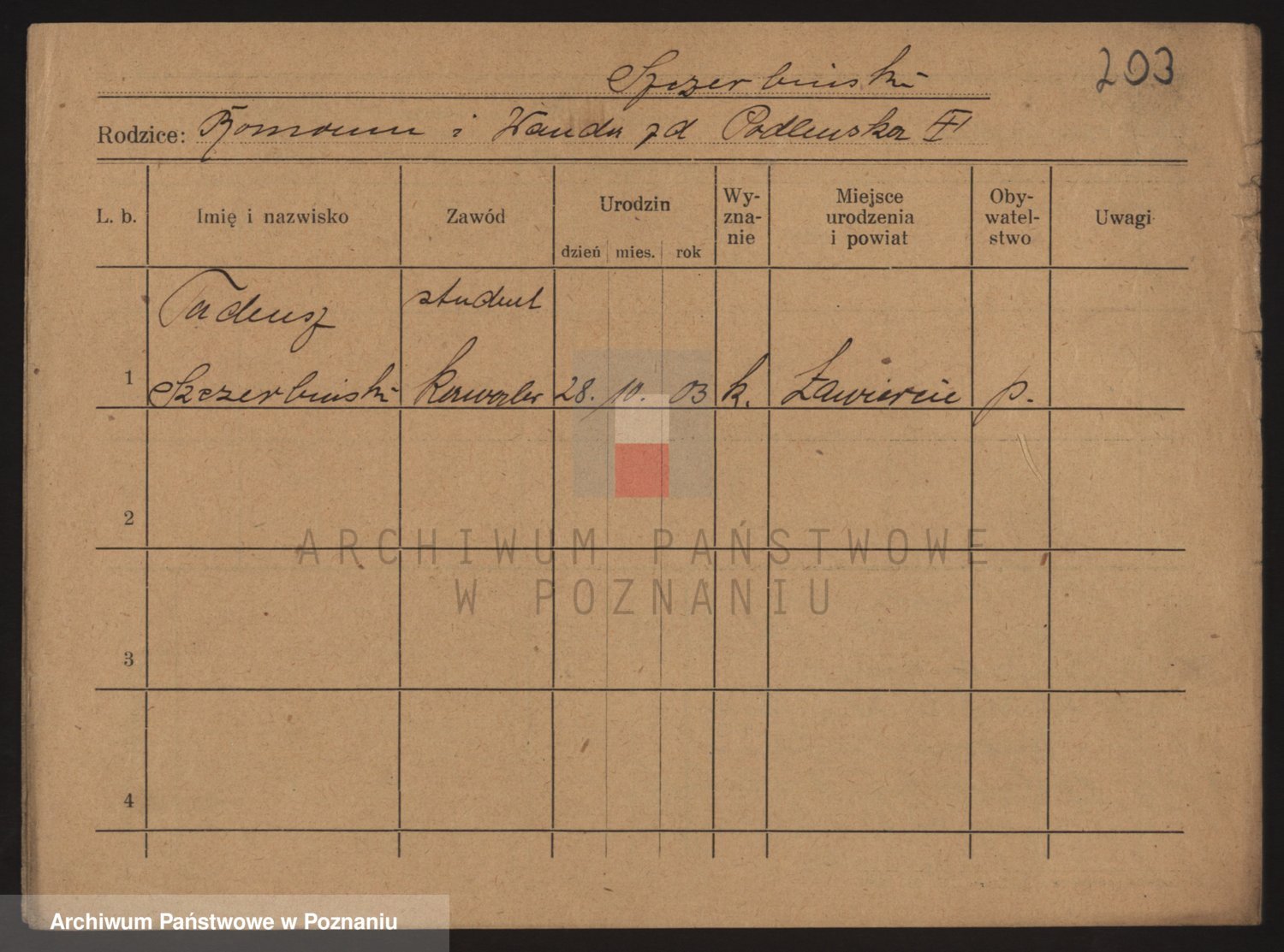 Podgląd karty osobowej dostępny jest po kliknięciu na nazwisko lub ikonkę karty. Można dokonywać powiększenia (ikony na górze) lub przechodzić między kolejnymi skanami (strzałki po bokach).