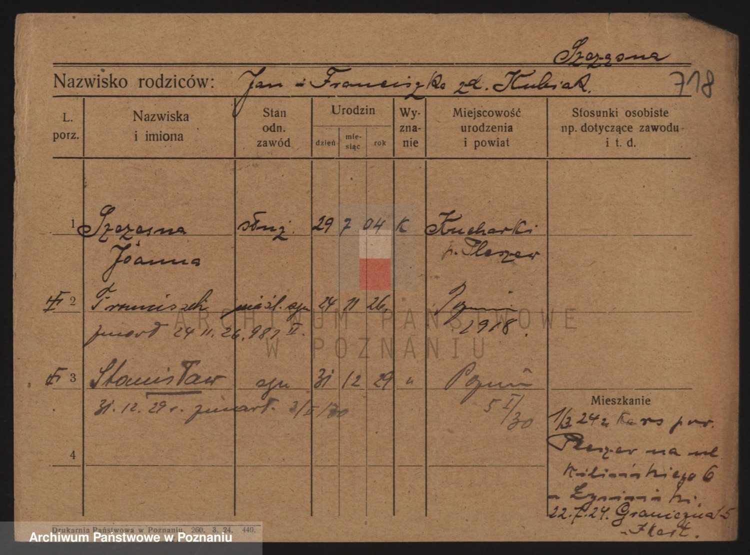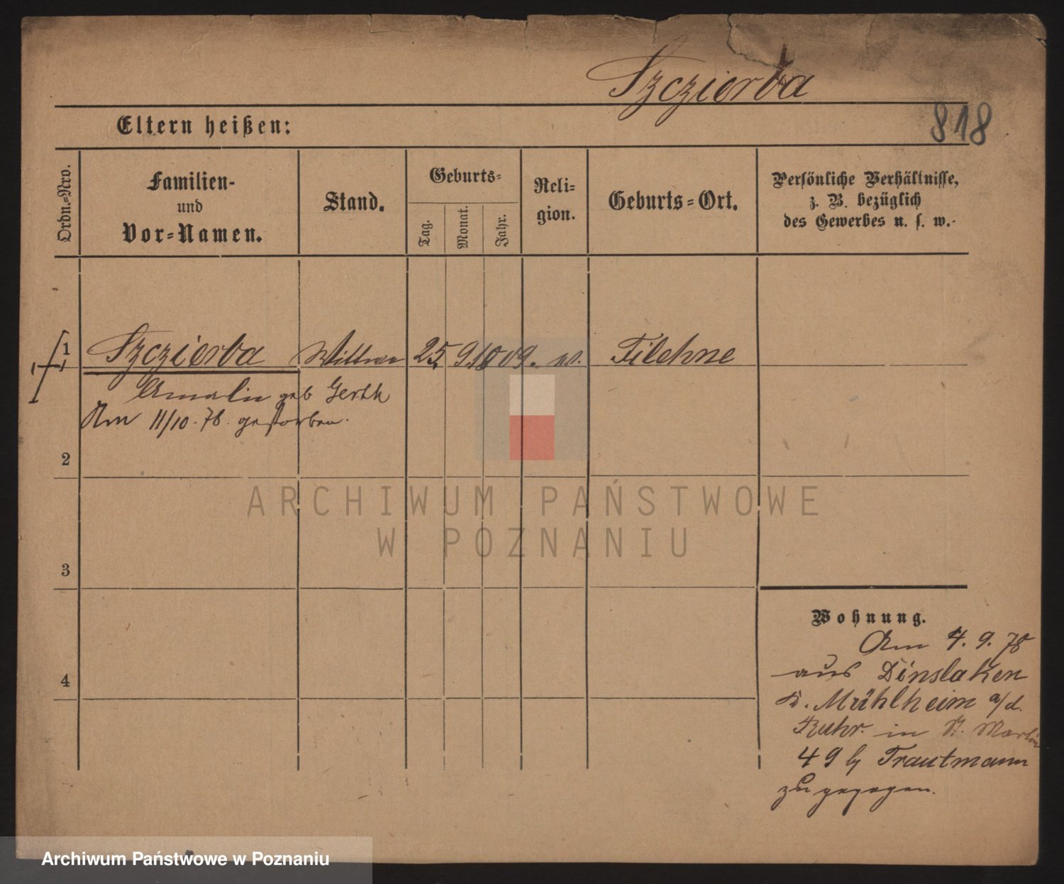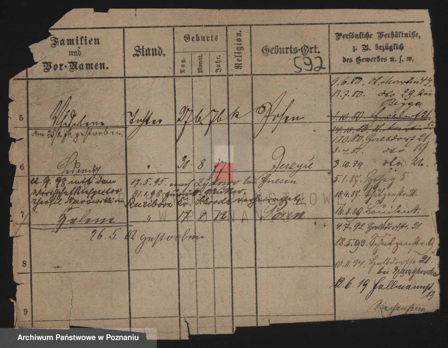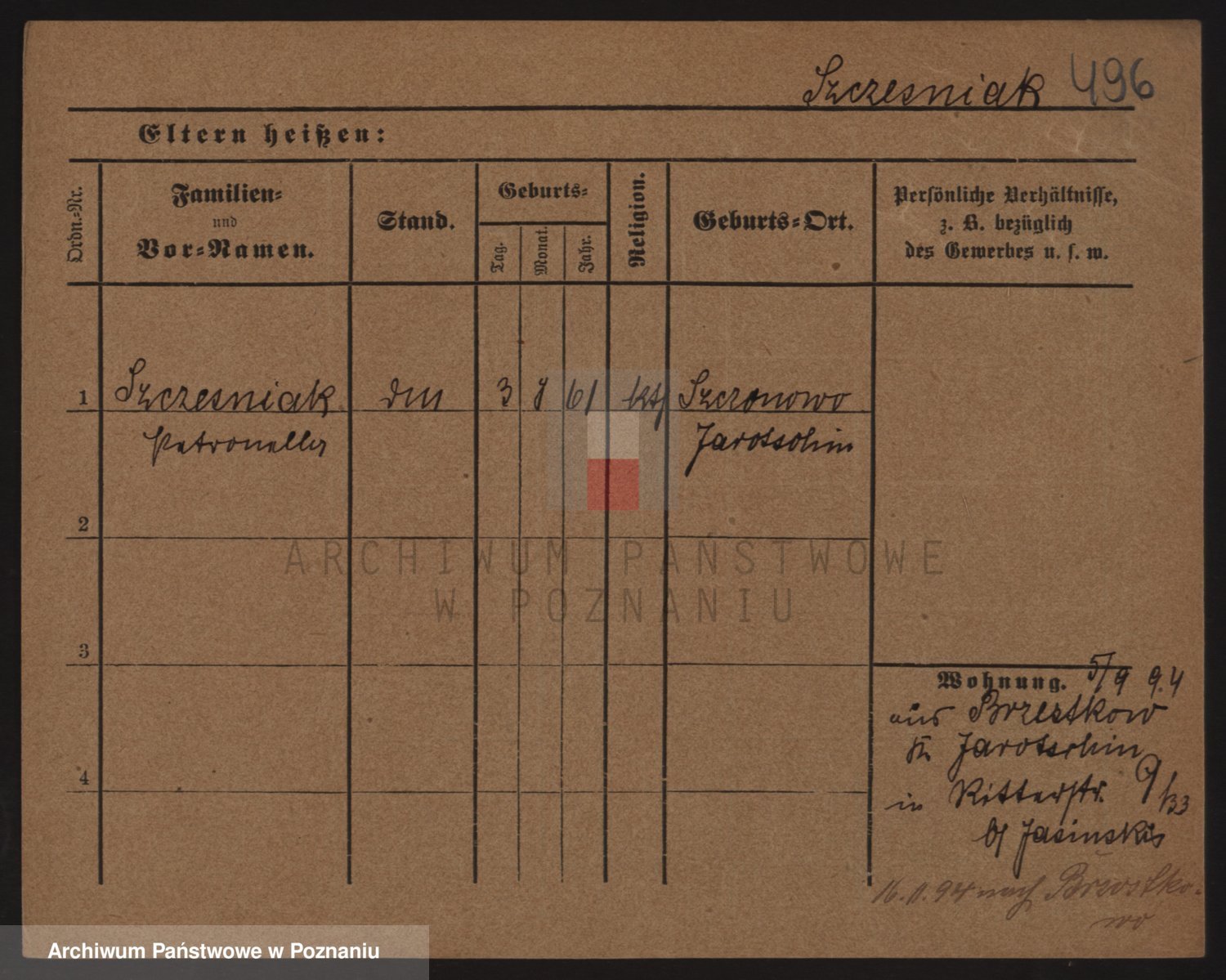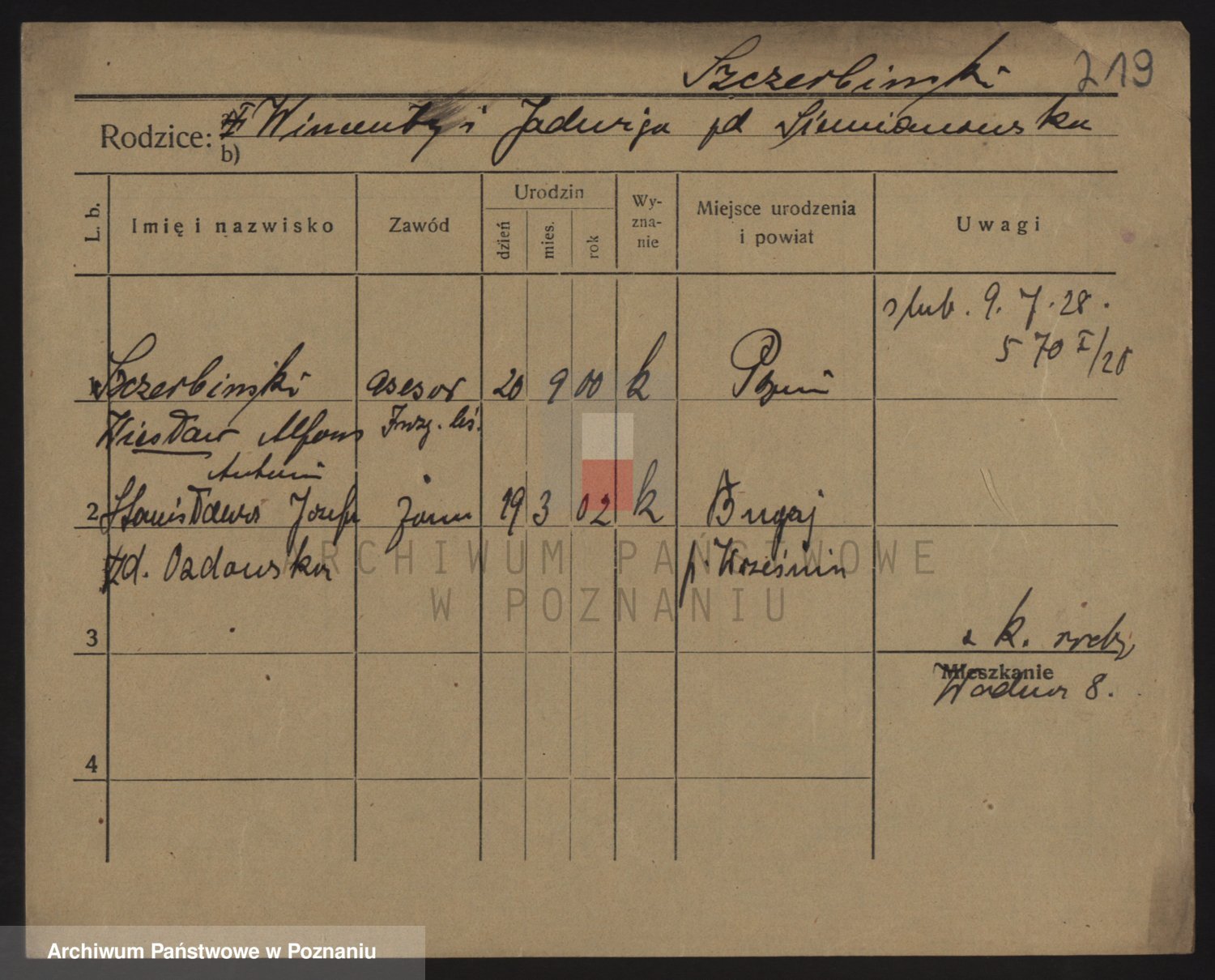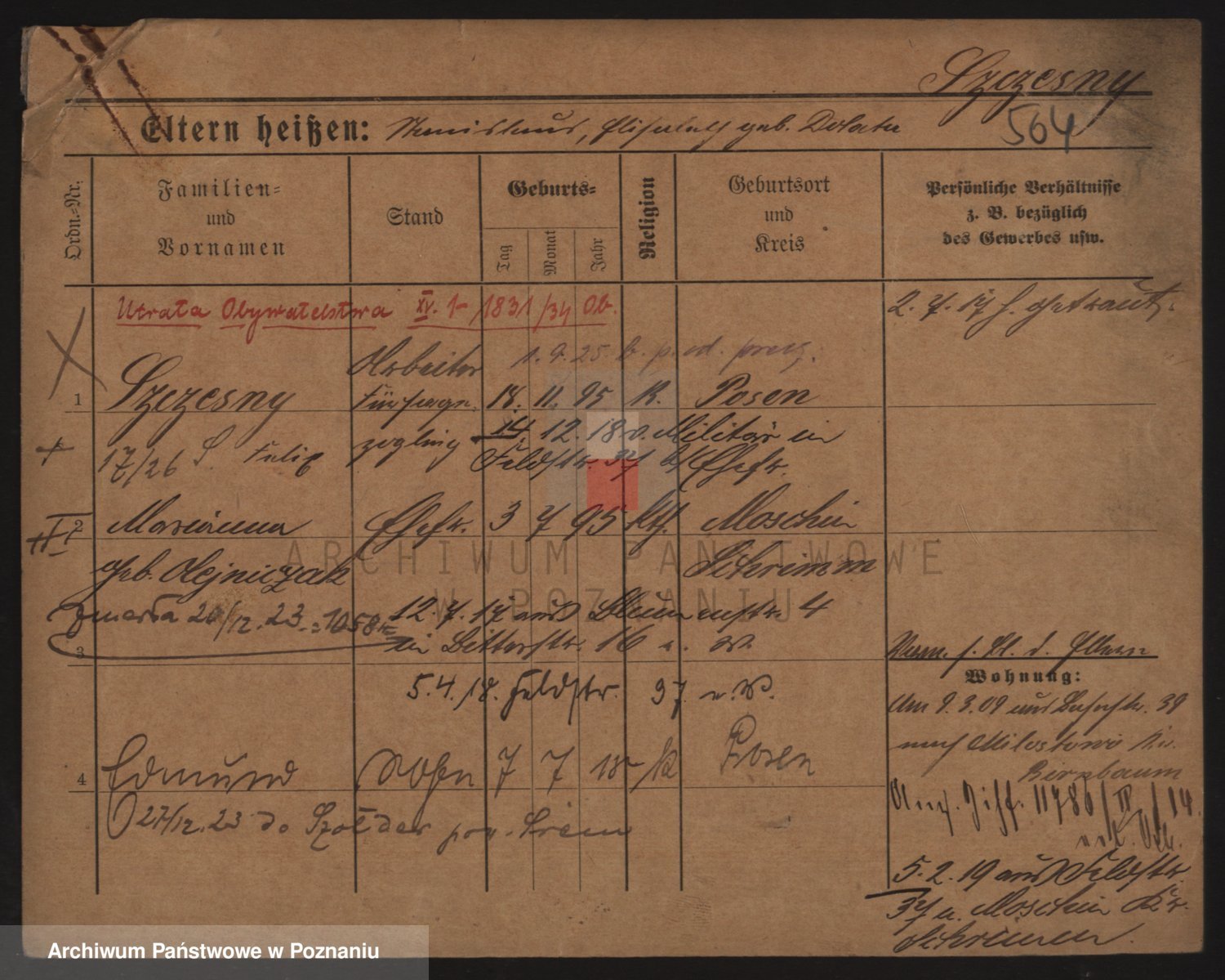 Podgląd karty osobowej dostępny jest po kliknięciu na nazwisko lub ikonkę karty. Można dokonywać powiększenia (ikony na górze) lub przechodzić między kolejnymi skanami (strzałki po bokach).
