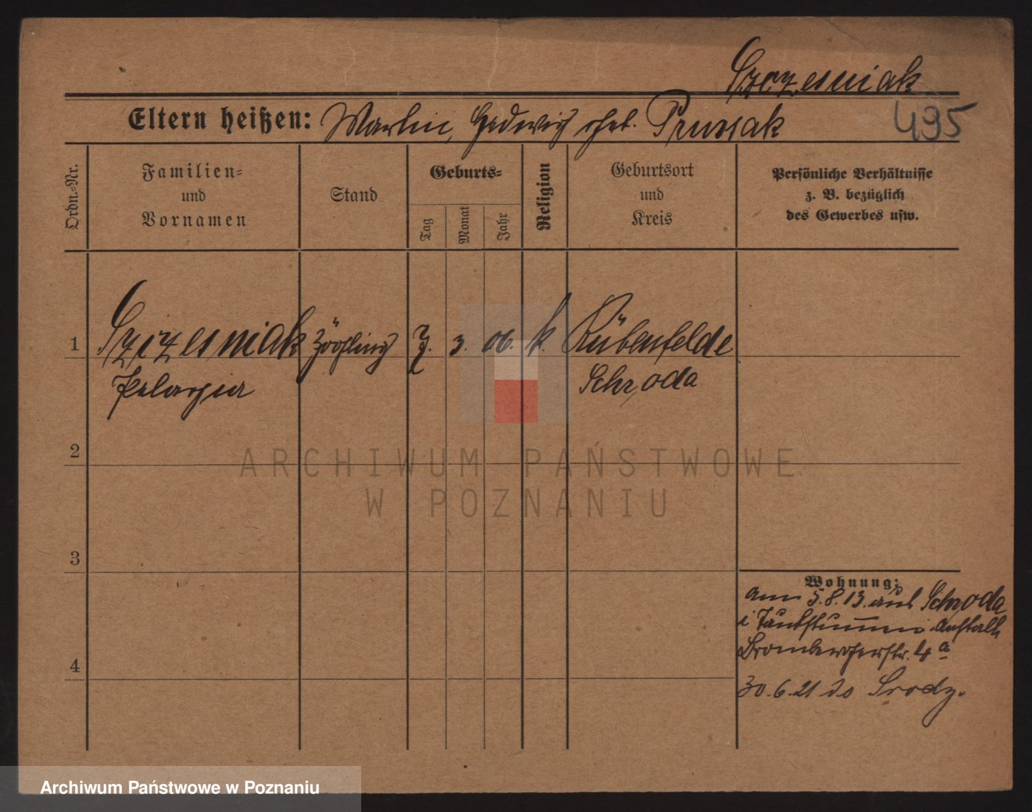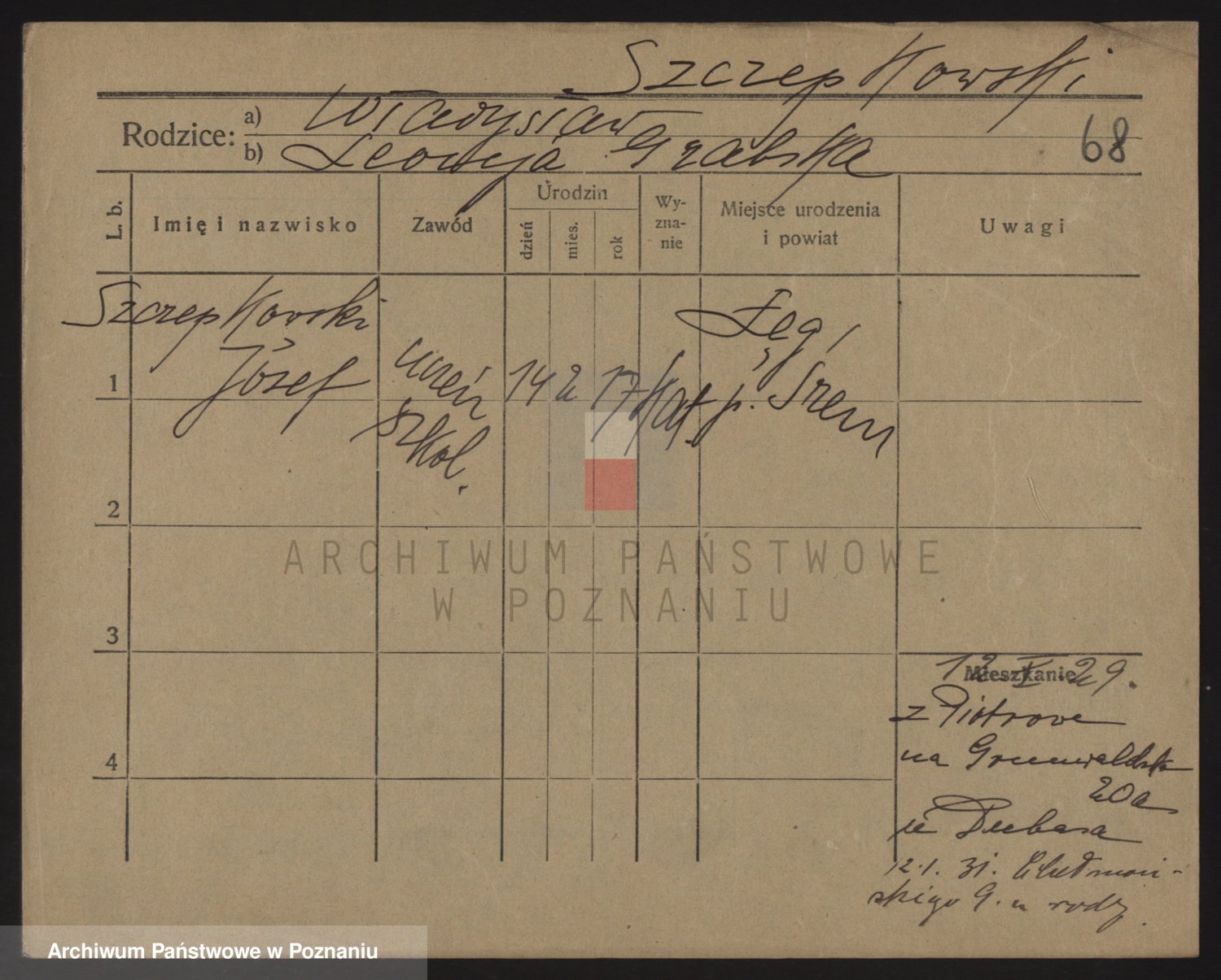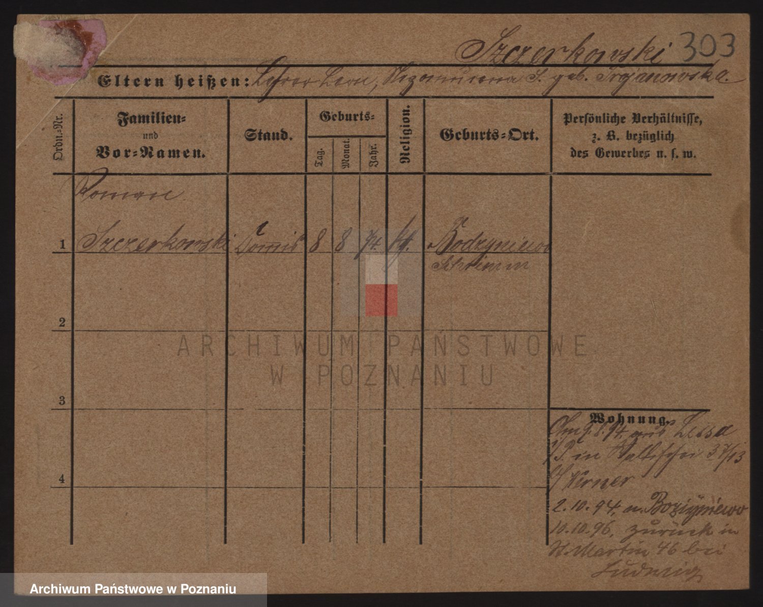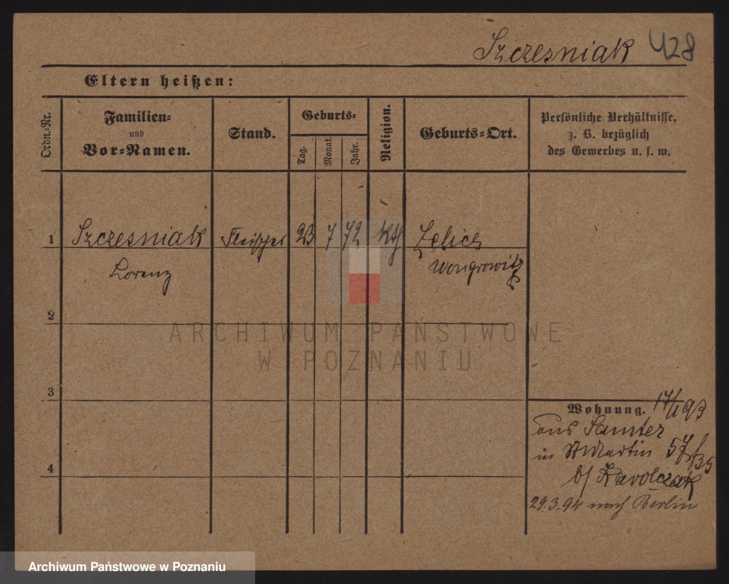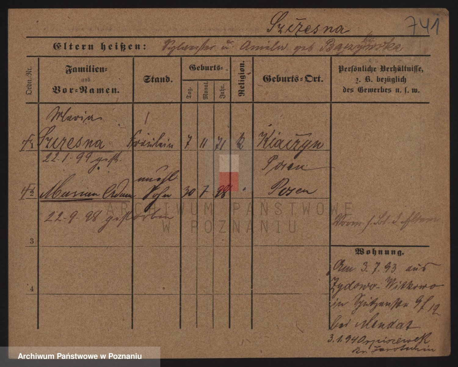 Podgląd karty osobowej dostępny jest po kliknięciu na nazwisko lub ikonkę karty. Można dokonywać powiększenia (ikony na górze) lub przechodzić między kolejnymi skanami (strzałki po bokach).