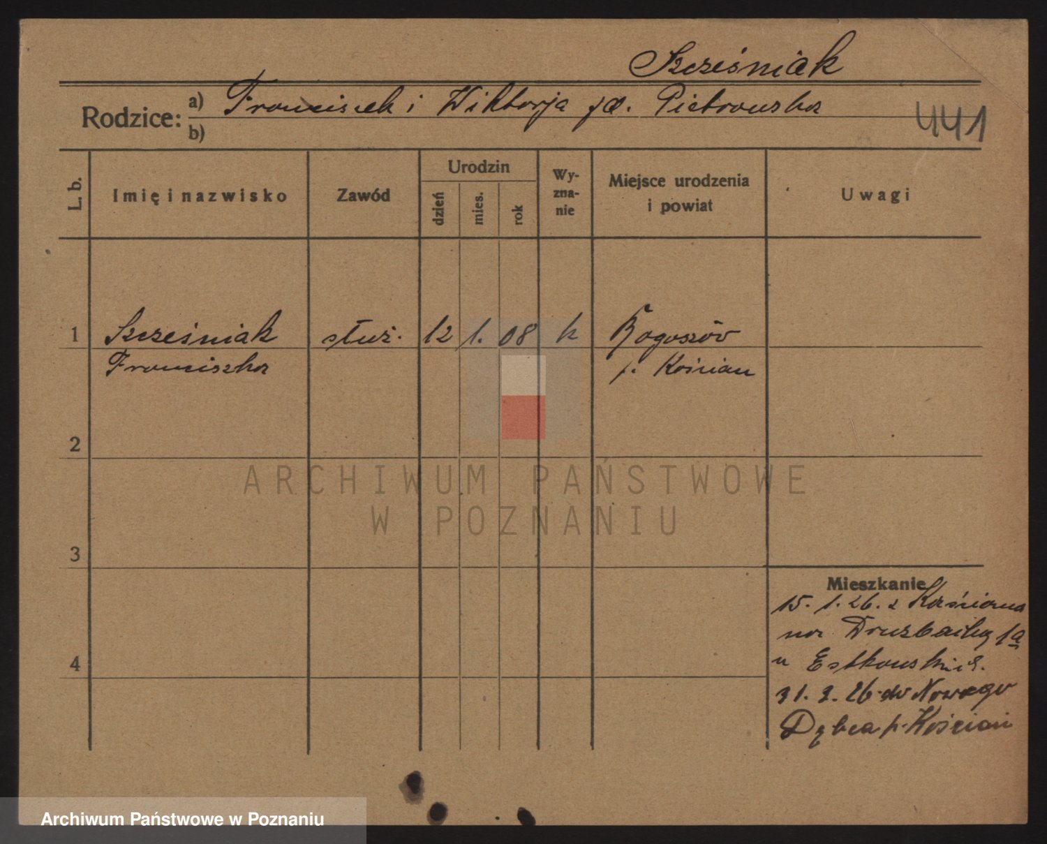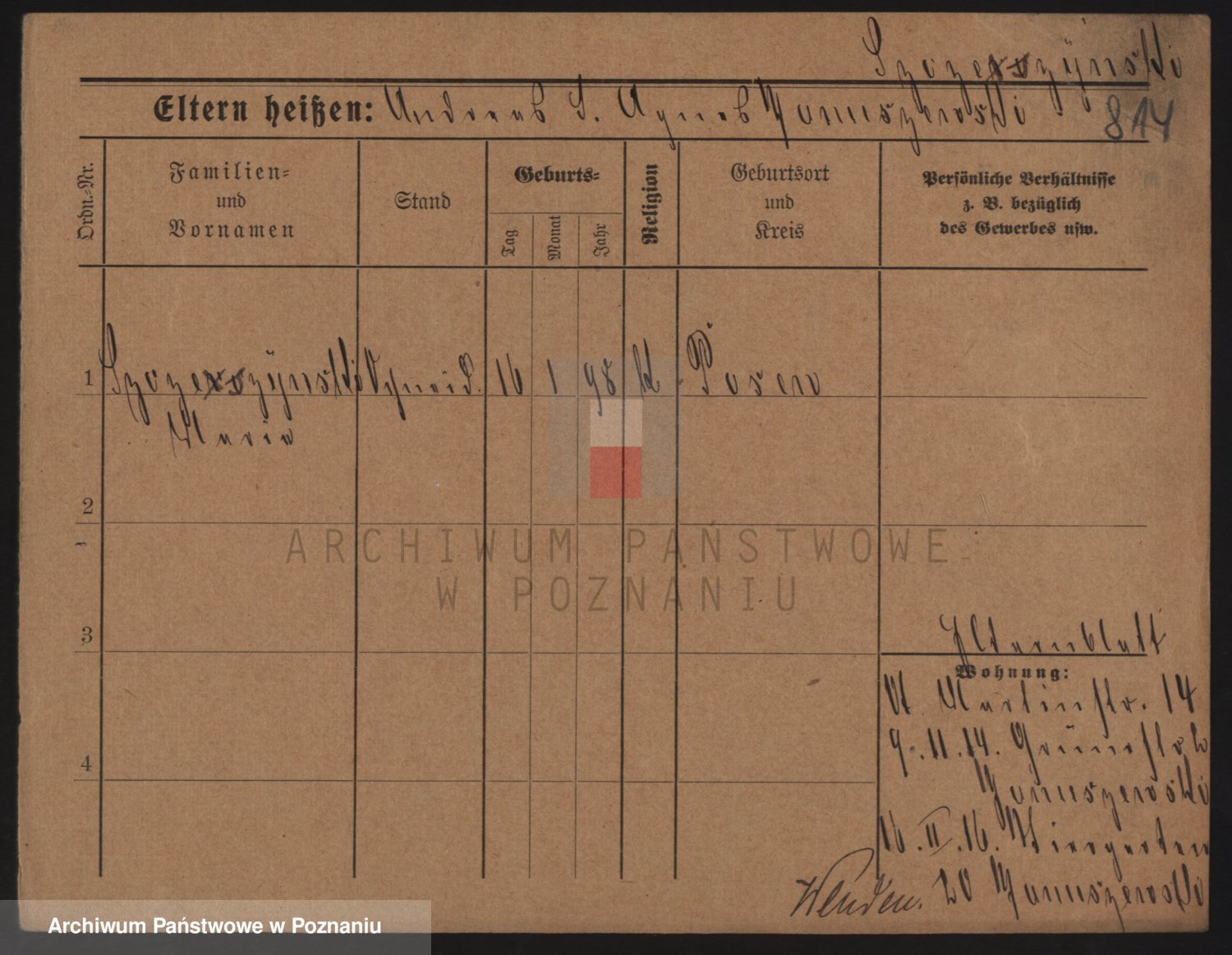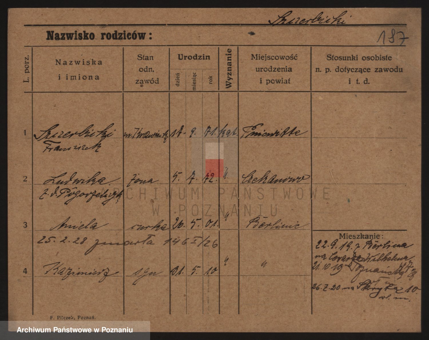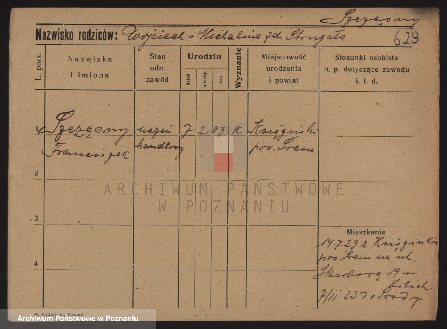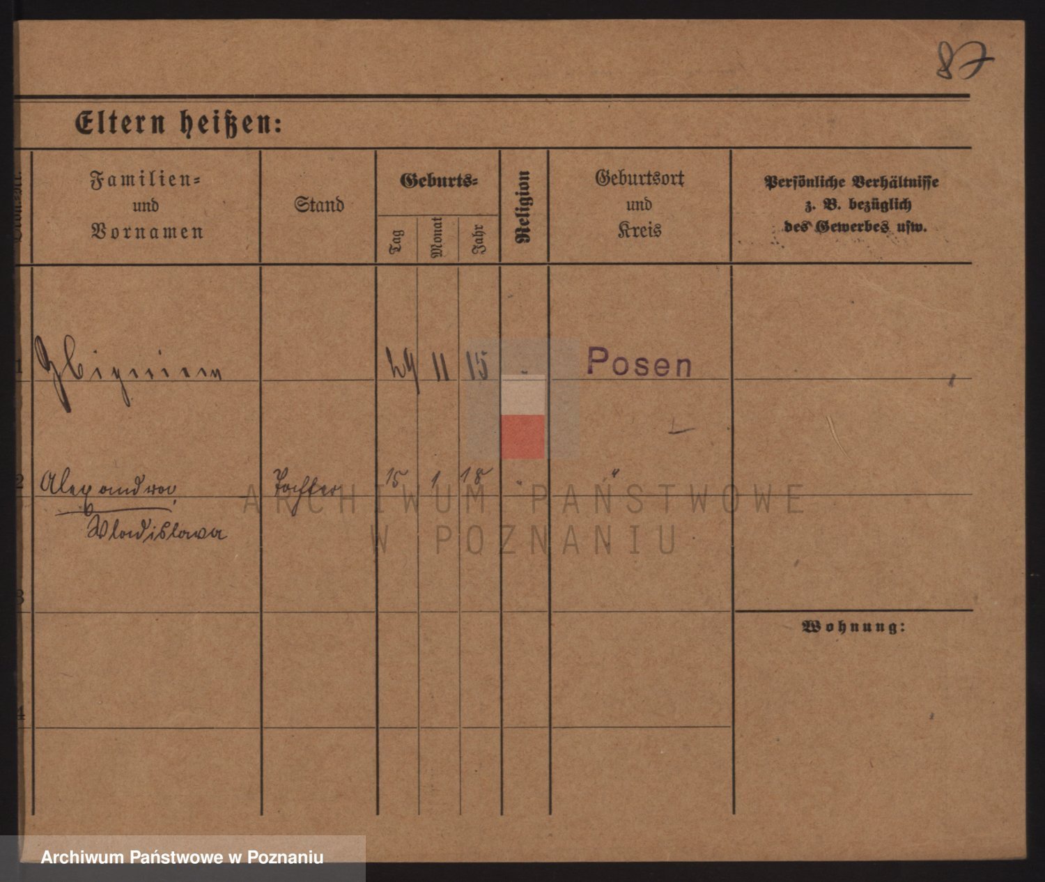 Podgląd karty osobowej dostępny jest po kliknięciu na nazwisko lub ikonkę karty. Można dokonywać powiększenia (ikony na górze) lub przechodzić między kolejnymi skanami (strzałki po bokach).