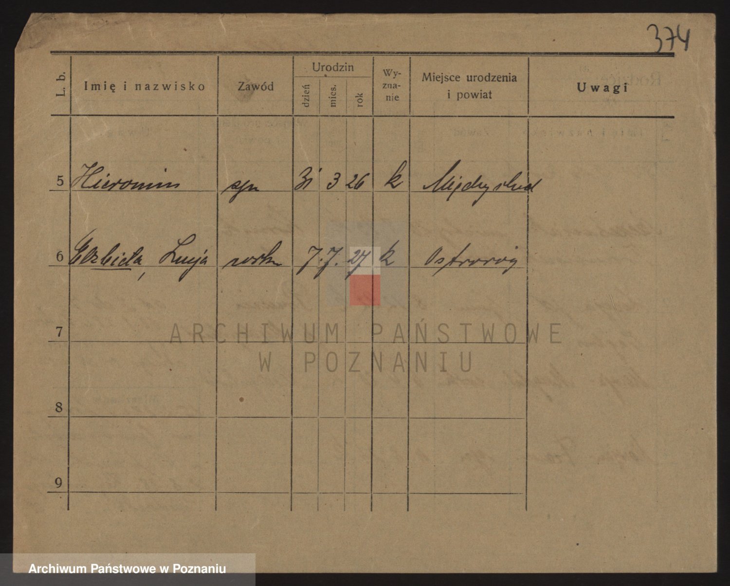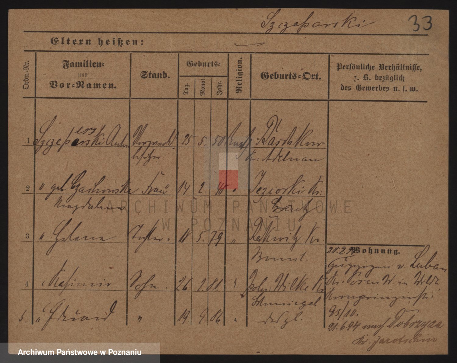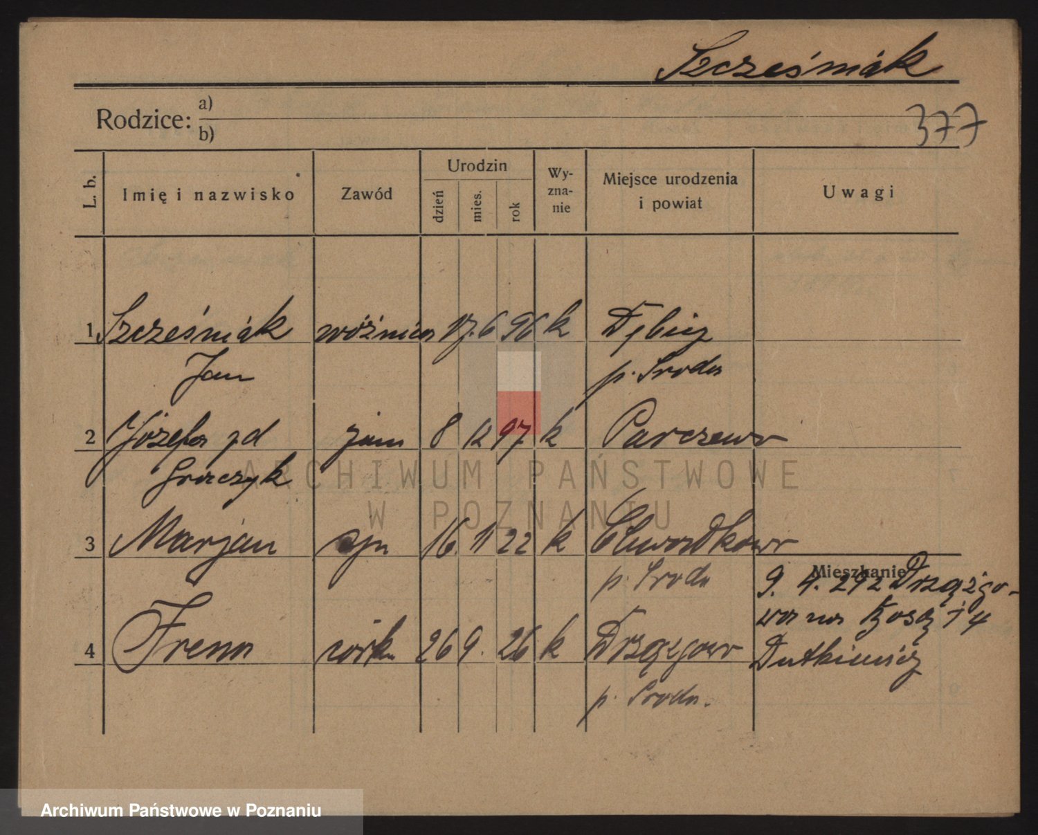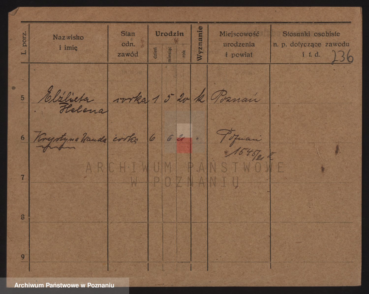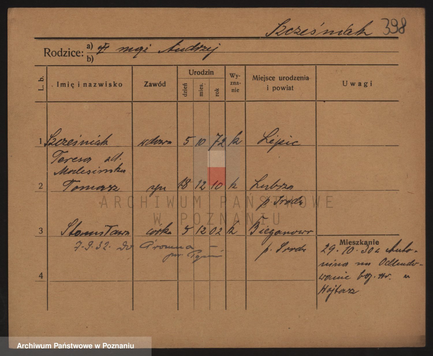 Podgląd karty osobowej dostępny jest po kliknięciu na nazwisko lub ikonkę karty. Można dokonywać powiększenia (ikony na górze) lub przechodzić między kolejnymi skanami (strzałki po bokach).