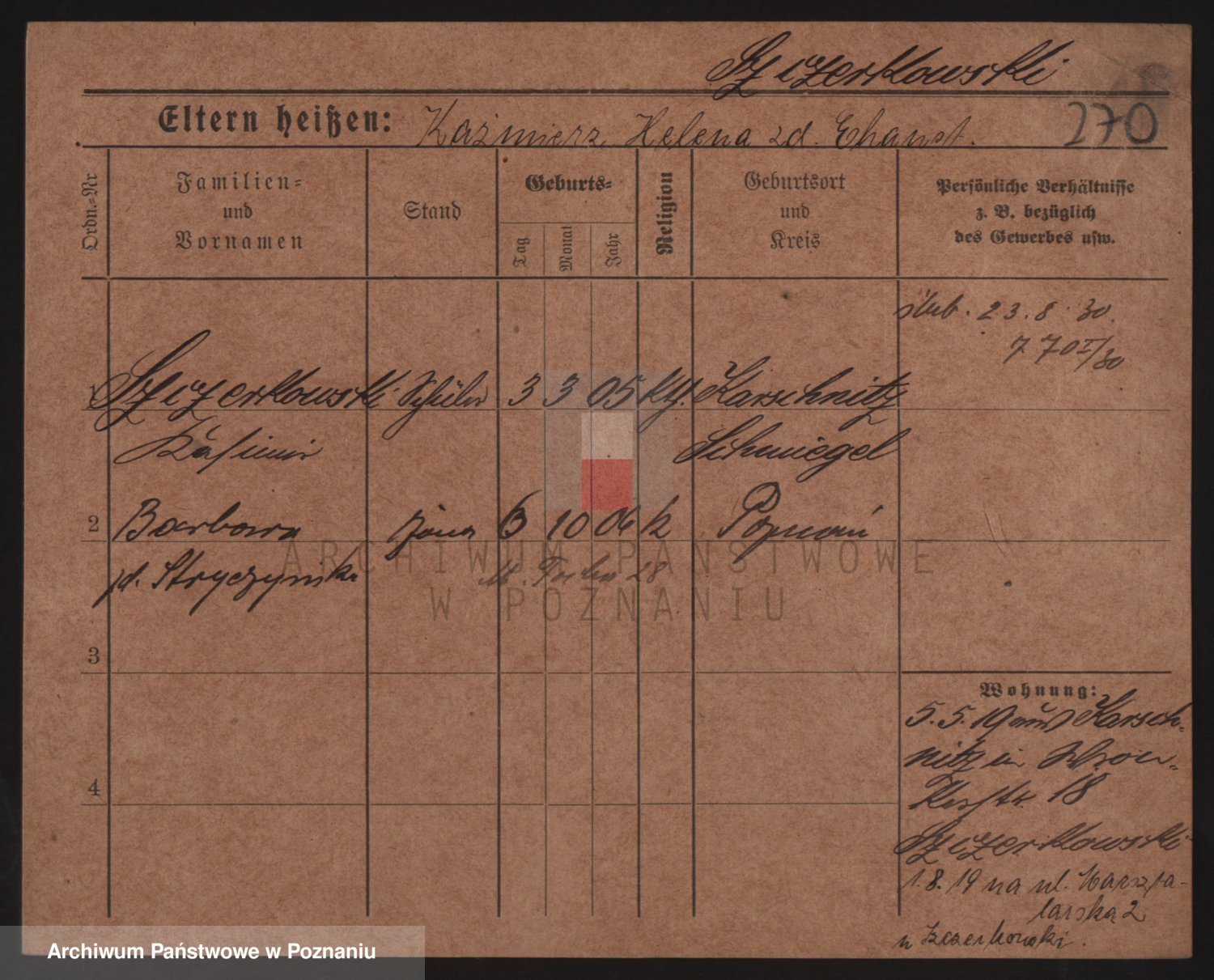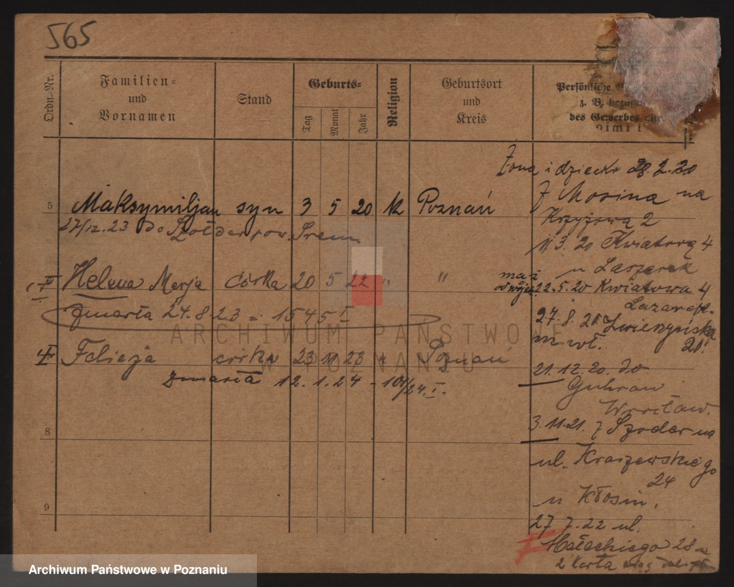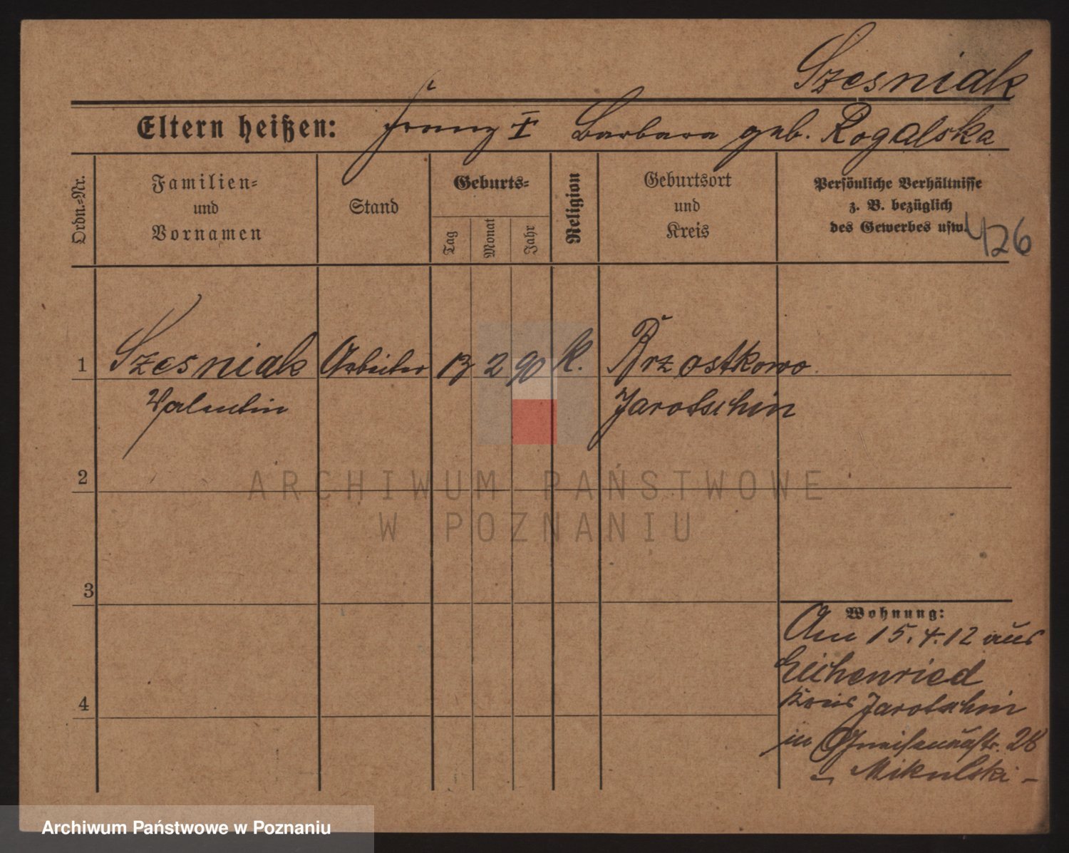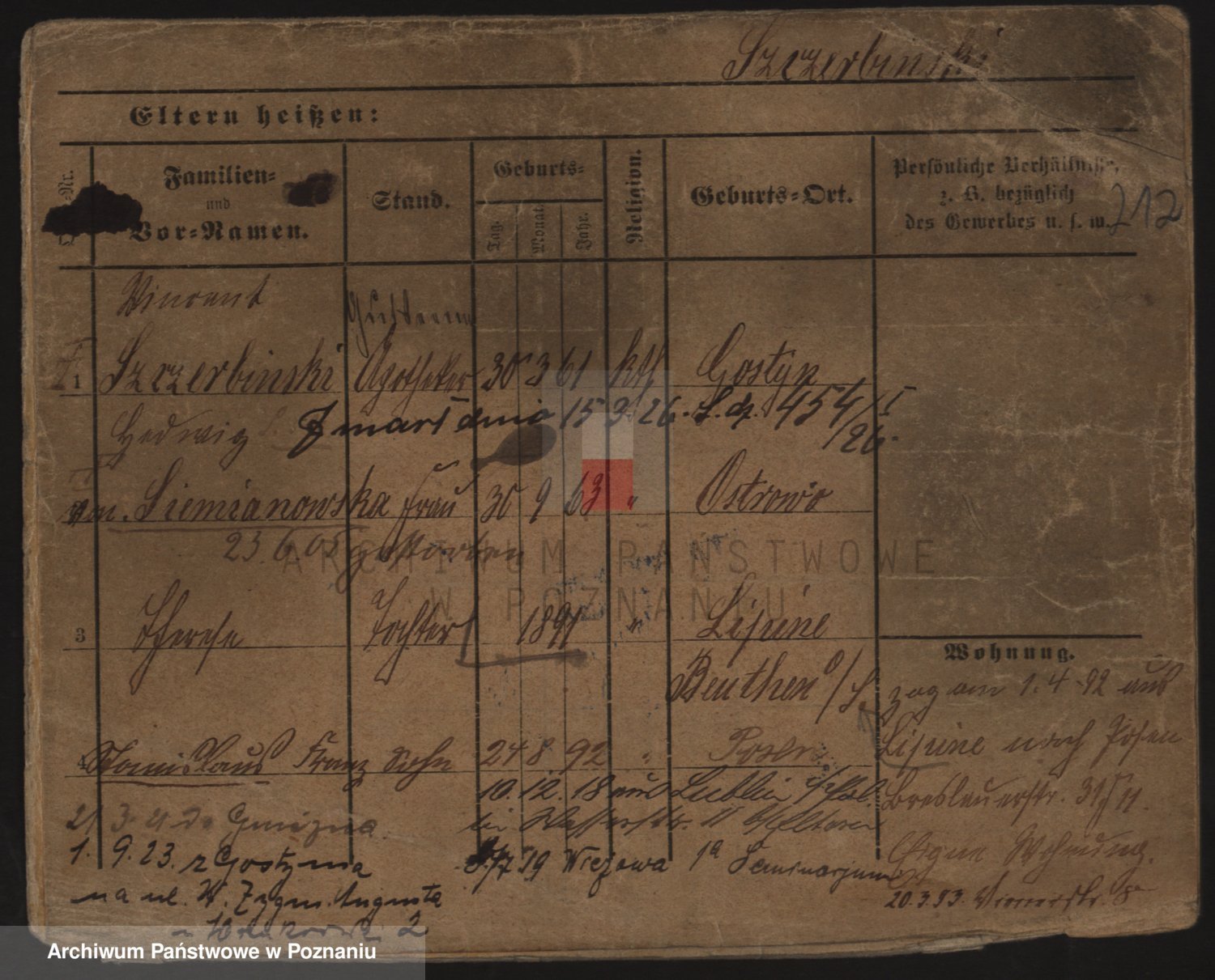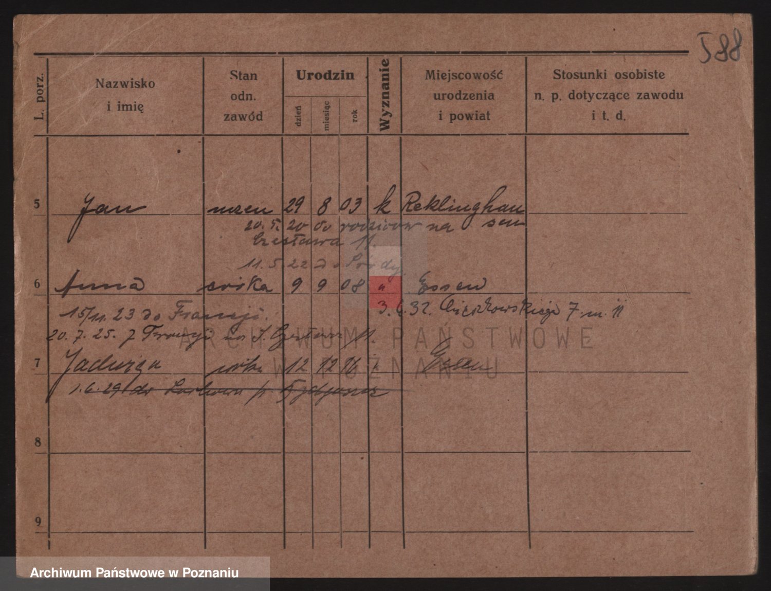 Podgląd karty osobowej dostępny jest po kliknięciu na nazwisko lub ikonkę karty. Można dokonywać powiększenia (ikony na górze) lub przechodzić między kolejnymi skanami (strzałki po bokach).