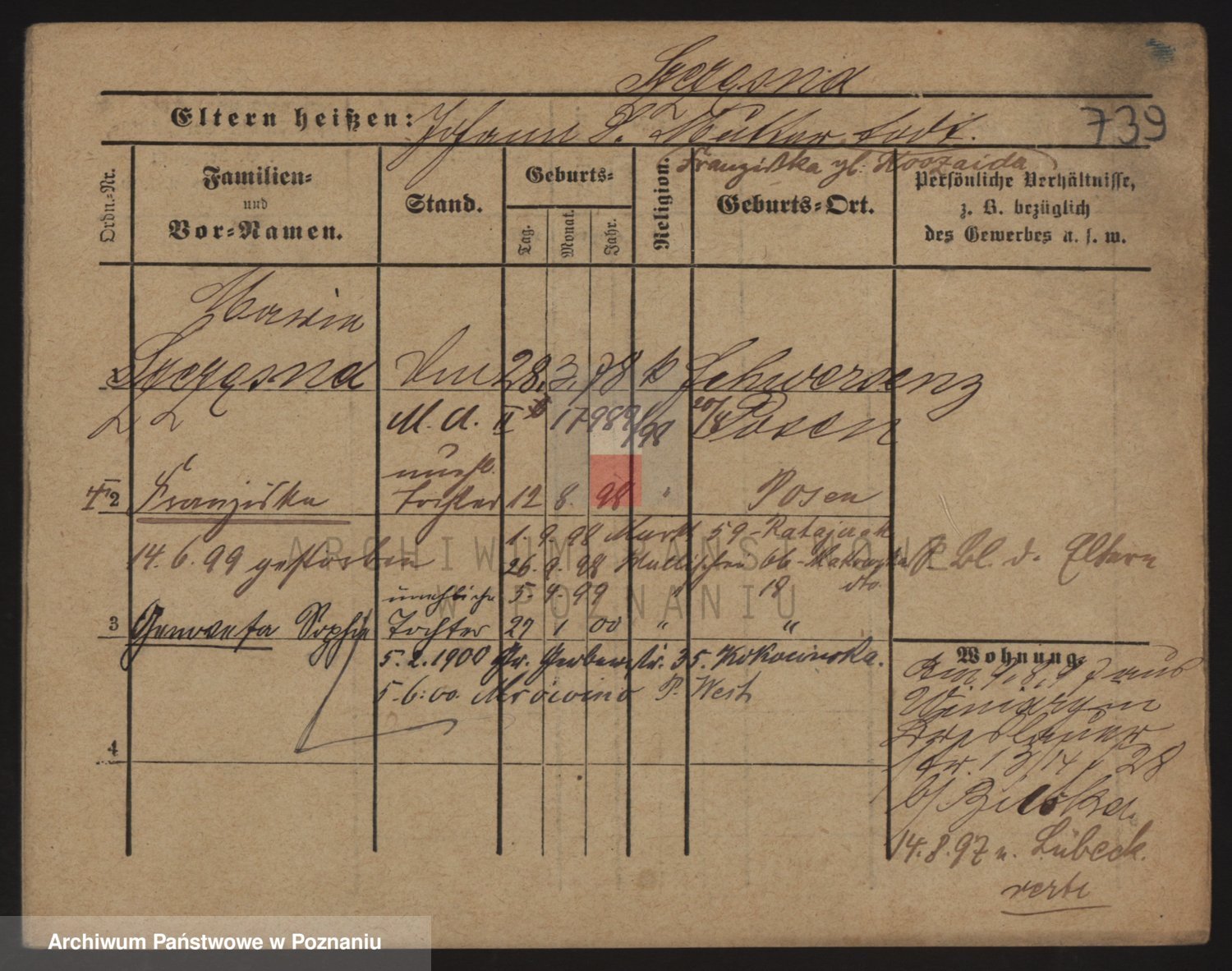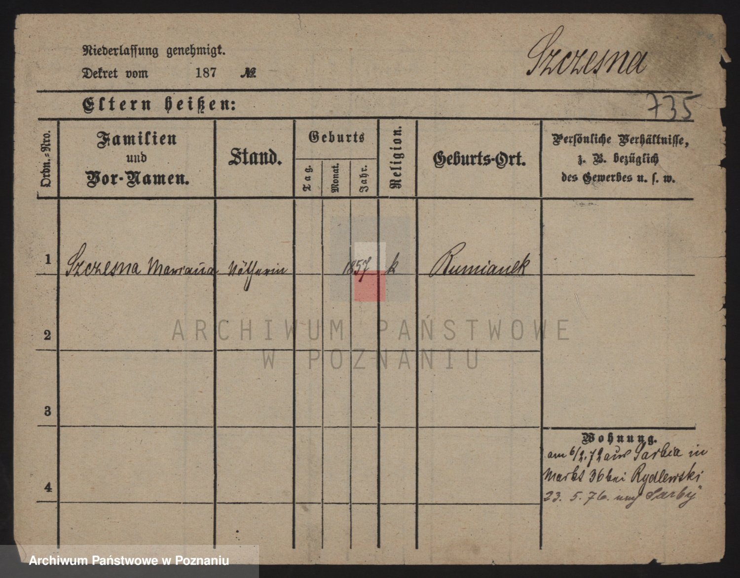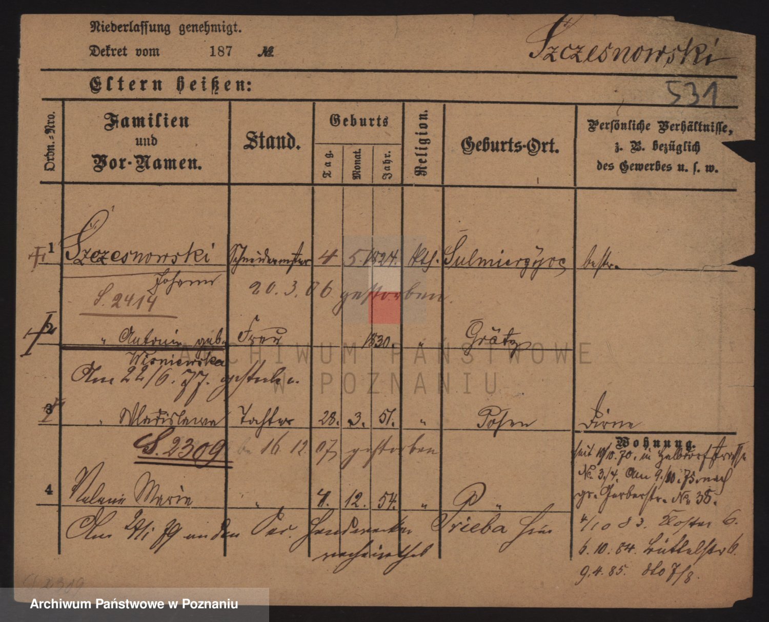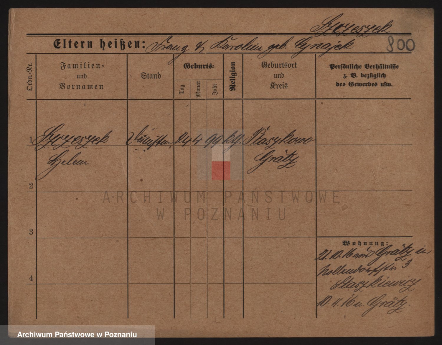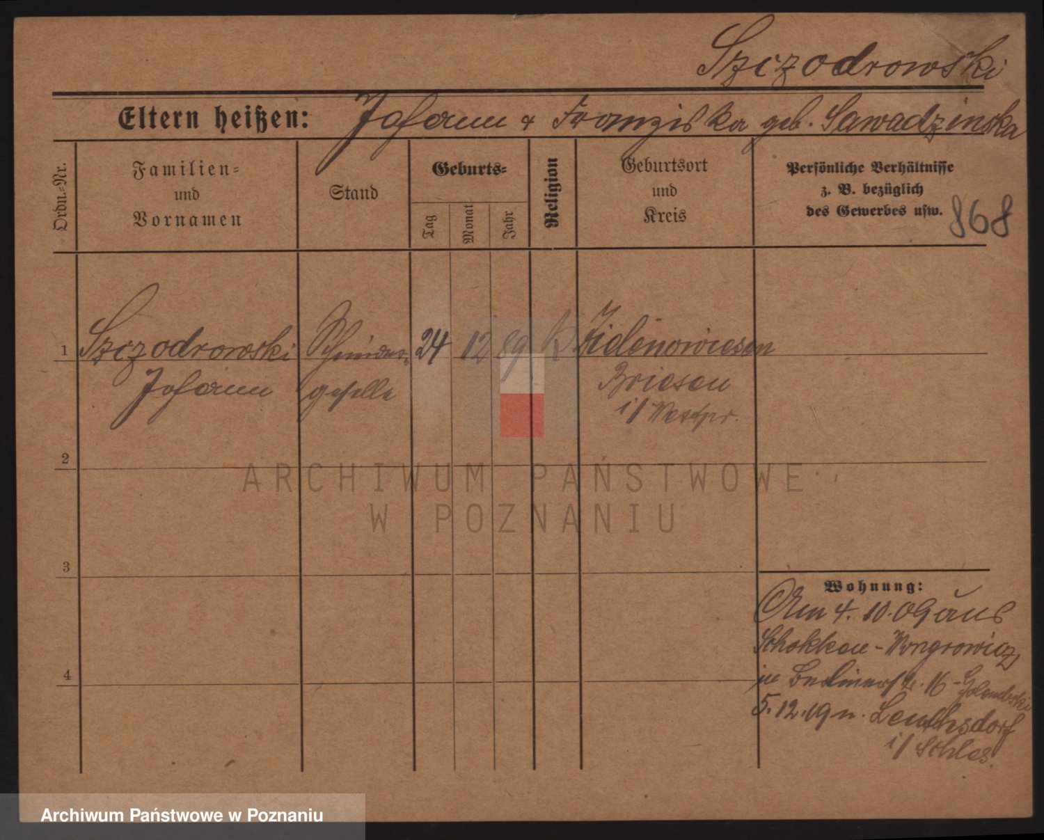 Podgląd karty osobowej dostępny jest po kliknięciu na nazwisko lub ikonkę karty. Można dokonywać powiększenia (ikony na górze) lub przechodzić między kolejnymi skanami (strzałki po bokach).